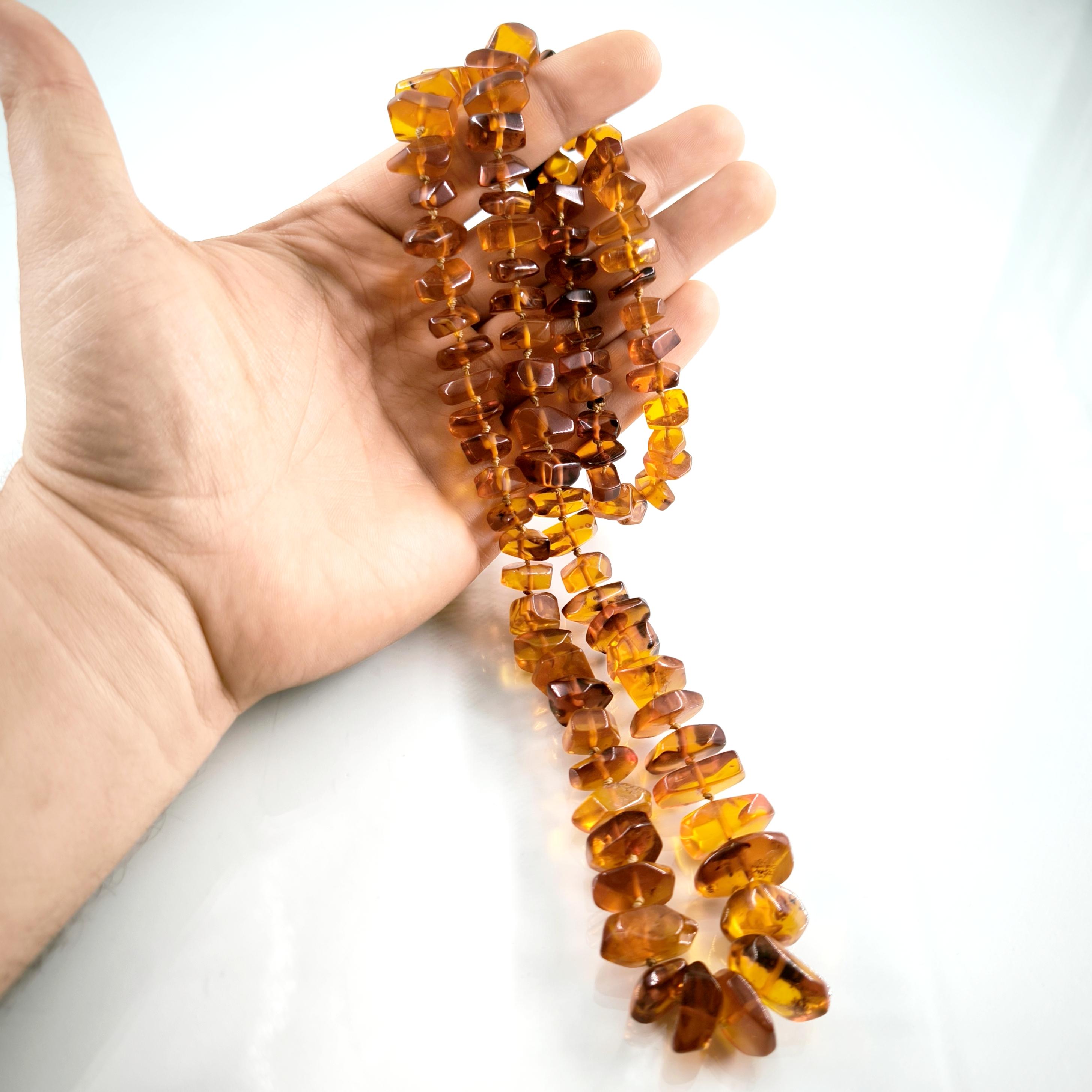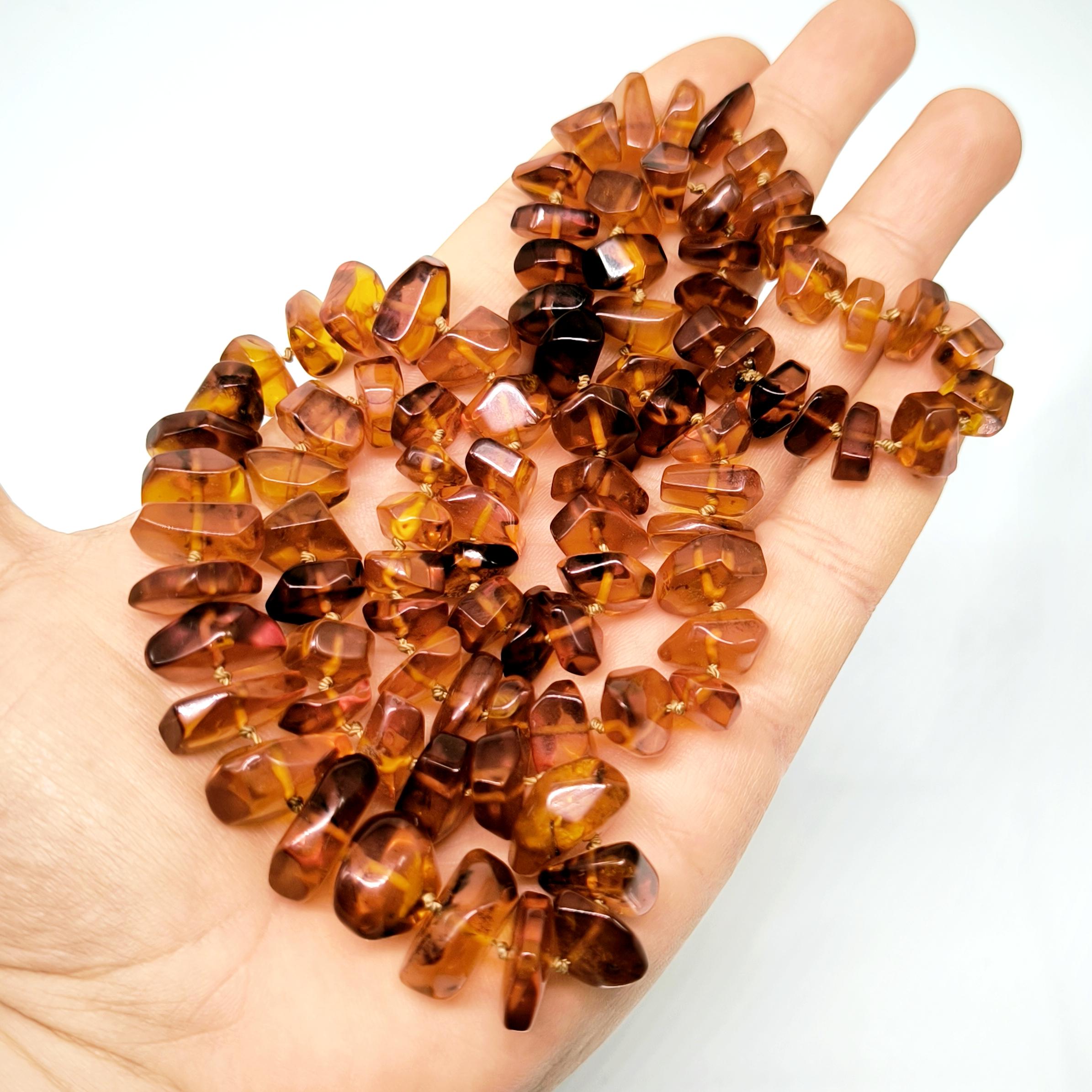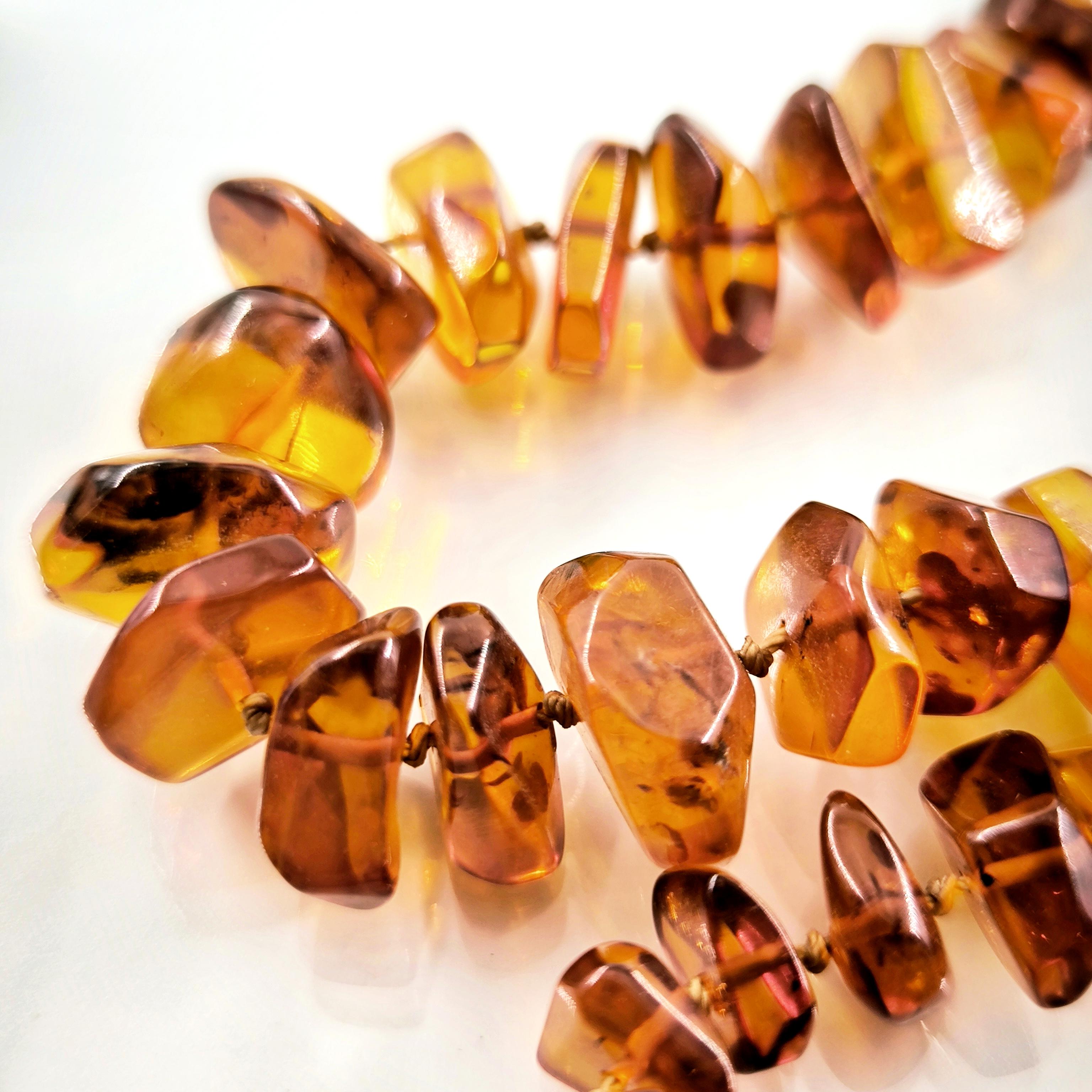 1960'LAR NATÜREL DAMLA KEHRİBAR AMORF KESİM KALLAVİ BOYUTTA ANTİKA KEHRİBAR KOLYE