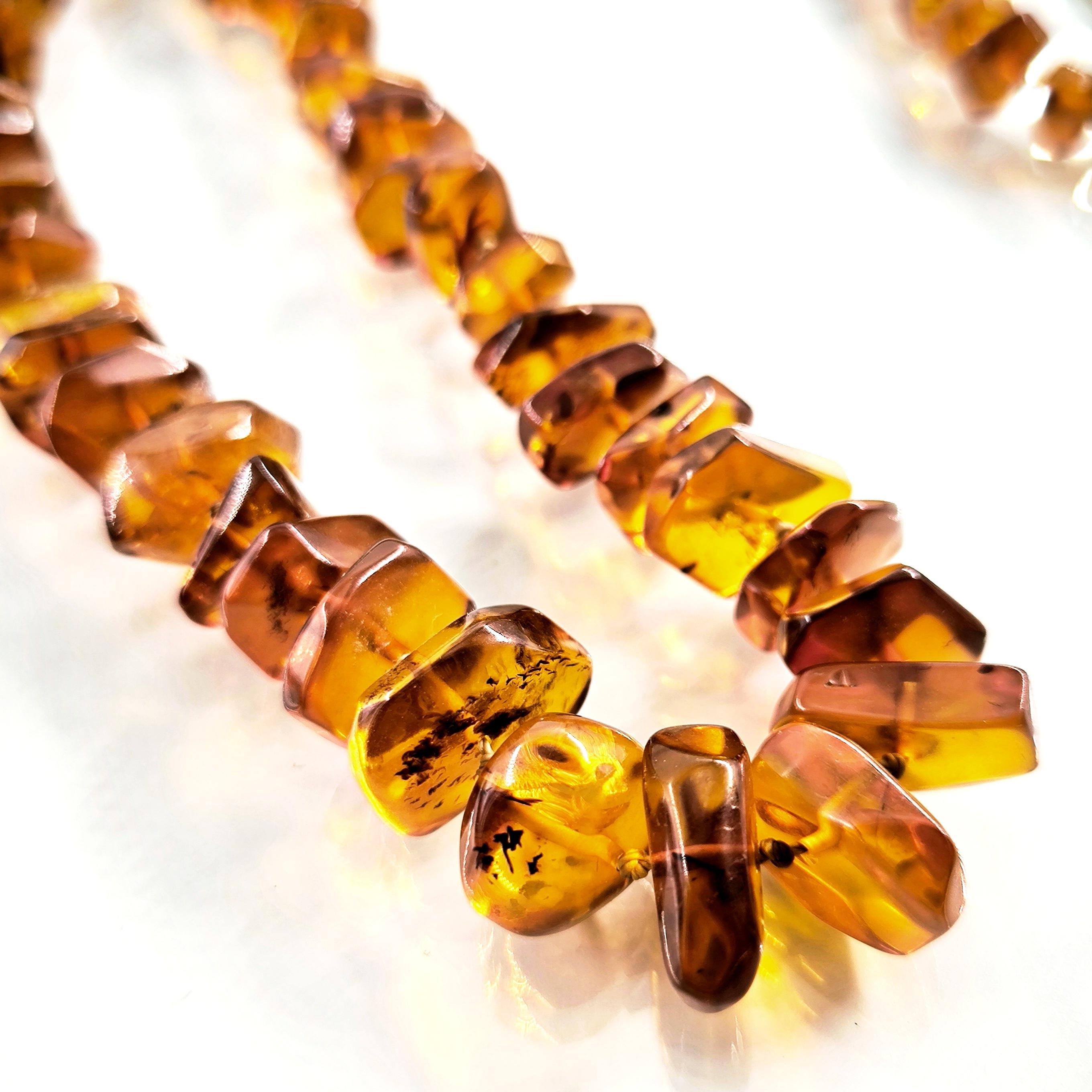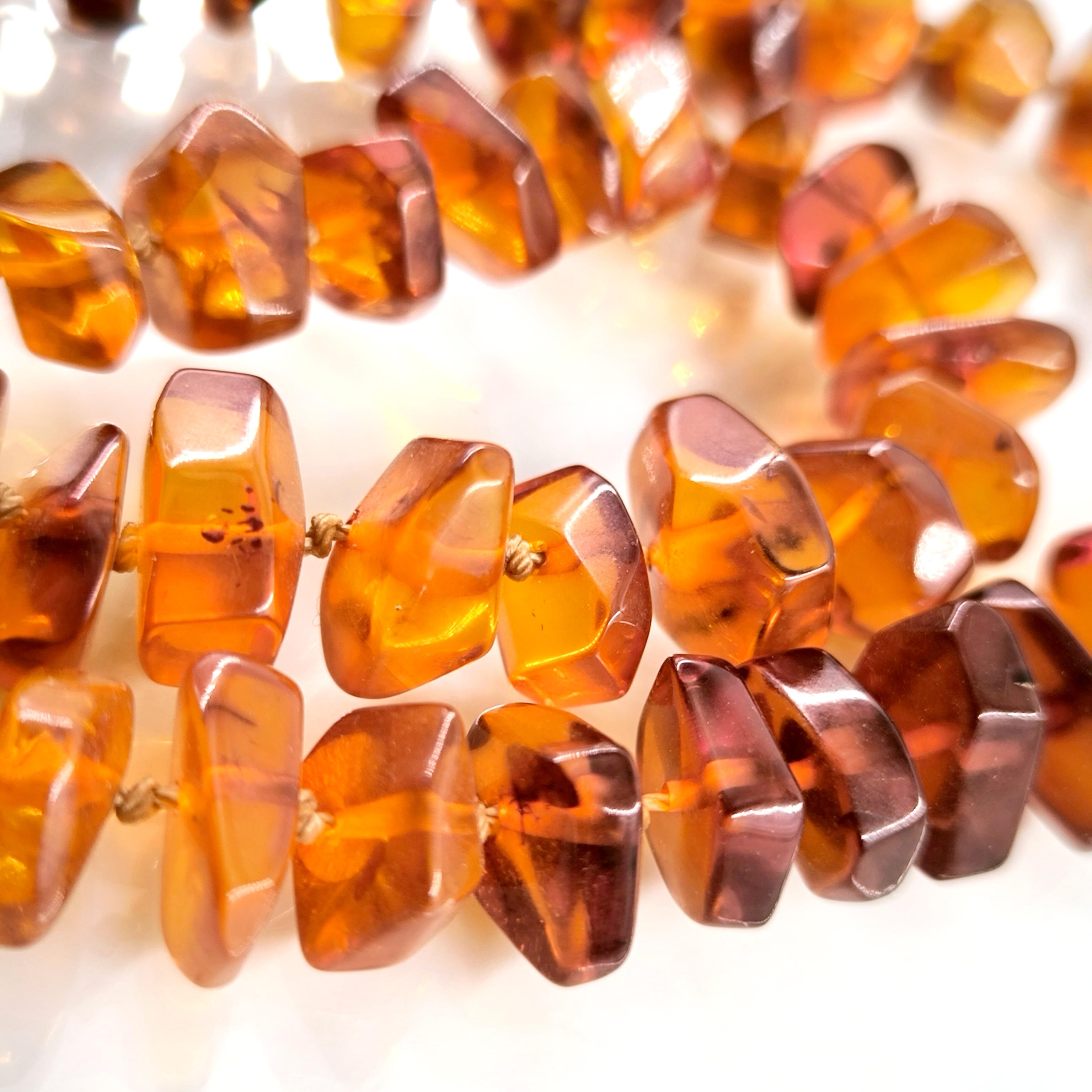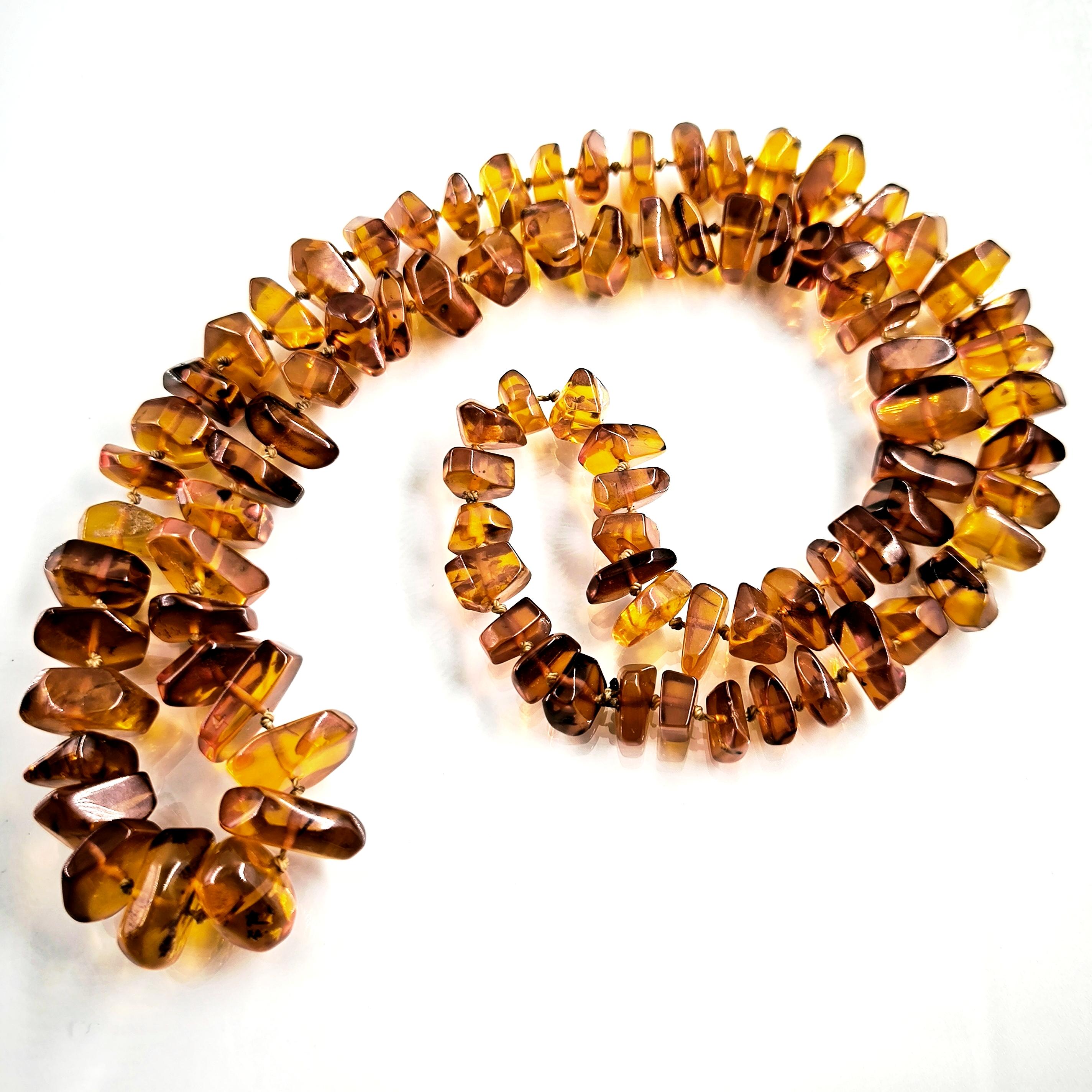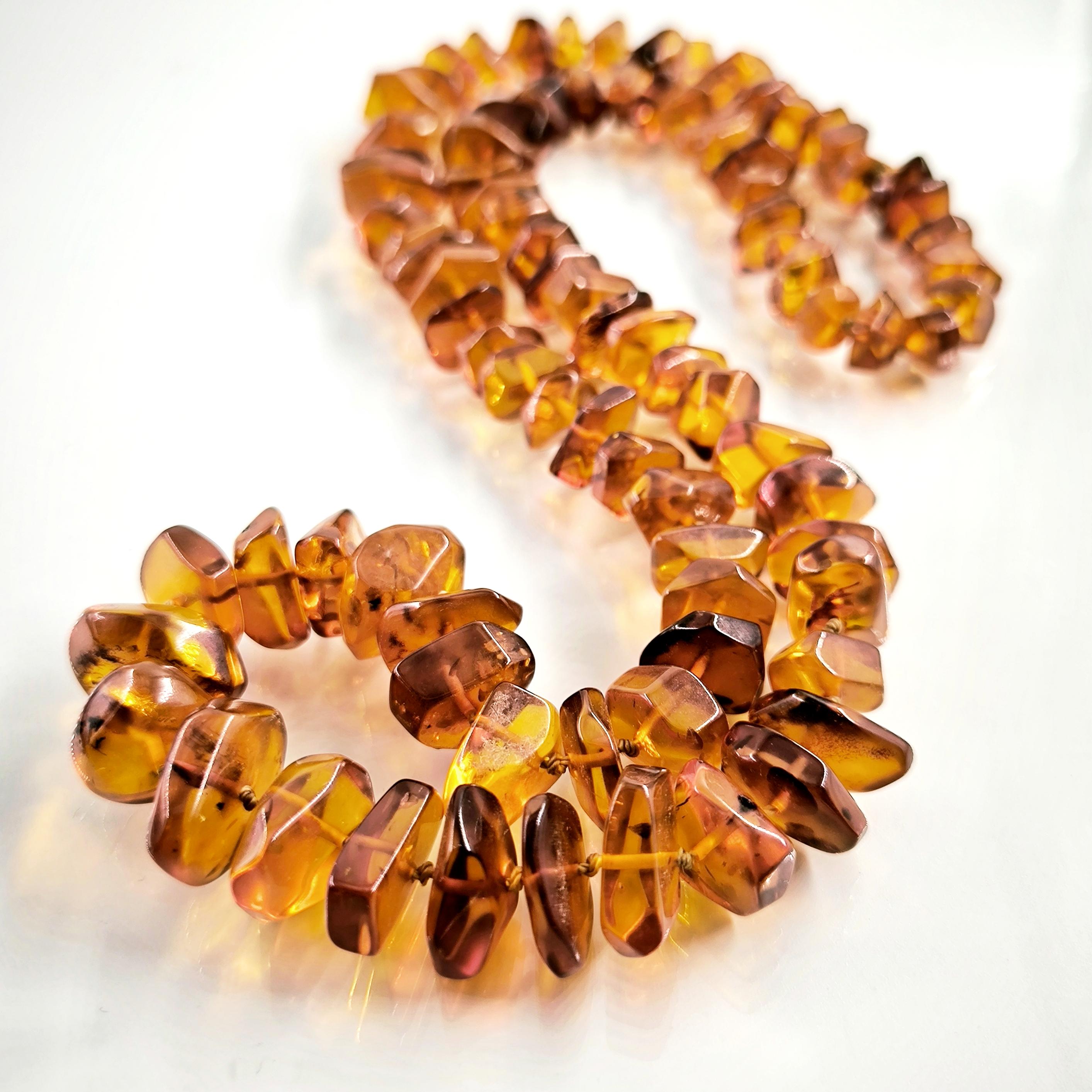 1960'LAR NATÜREL DAMLA KEHRİBAR AMORF KESİM KALLAVİ BOYUTTA ANTİKA KEHRİBAR KOLYE