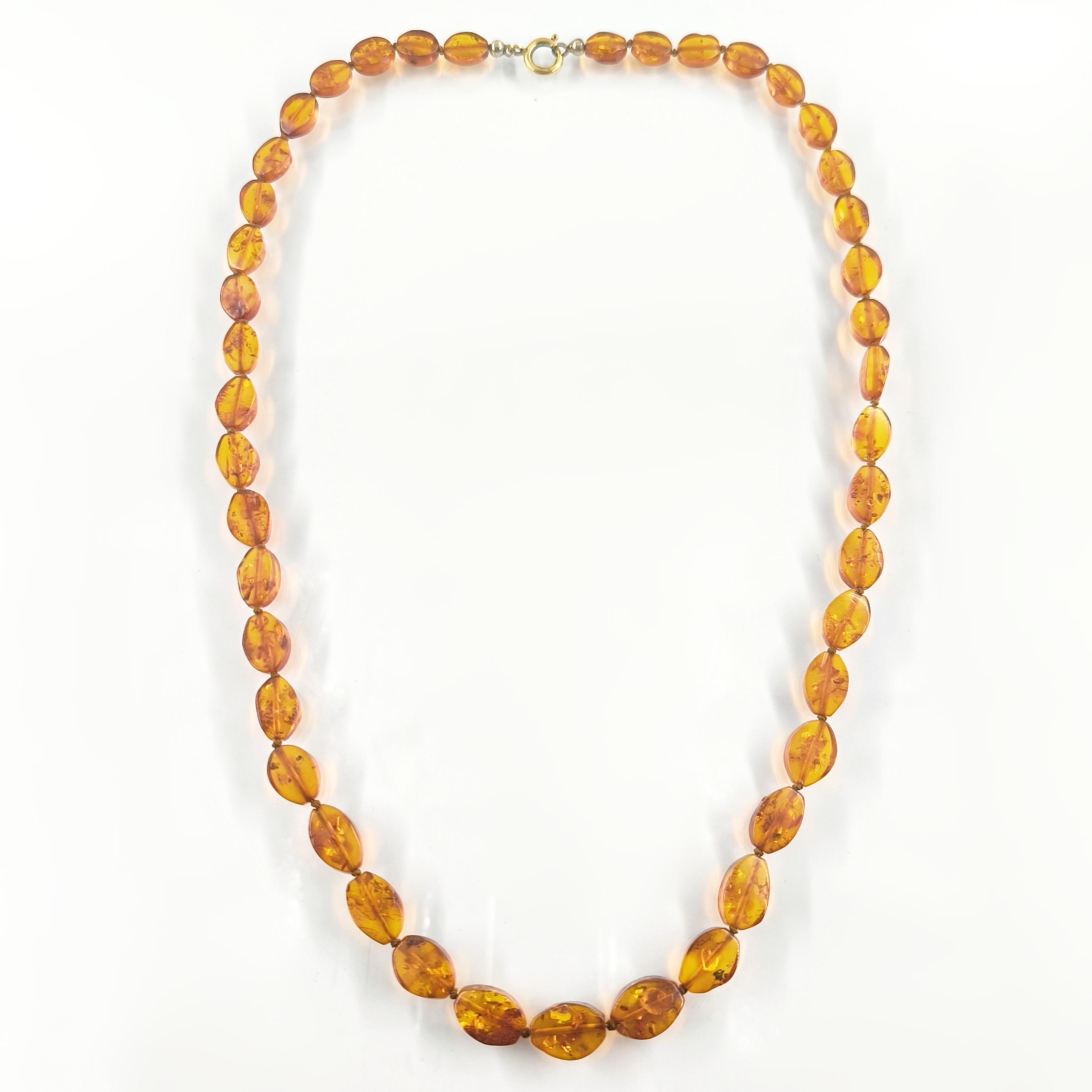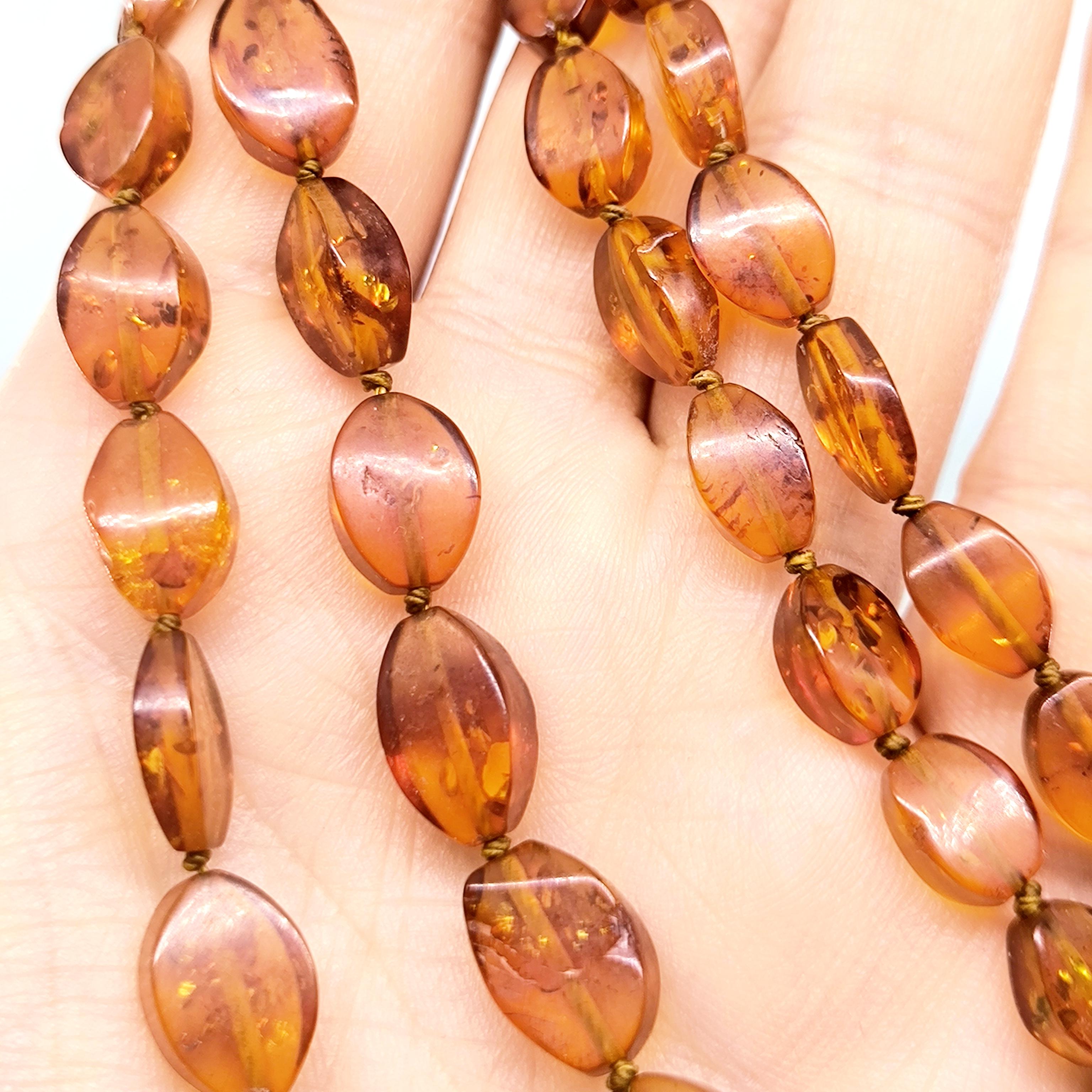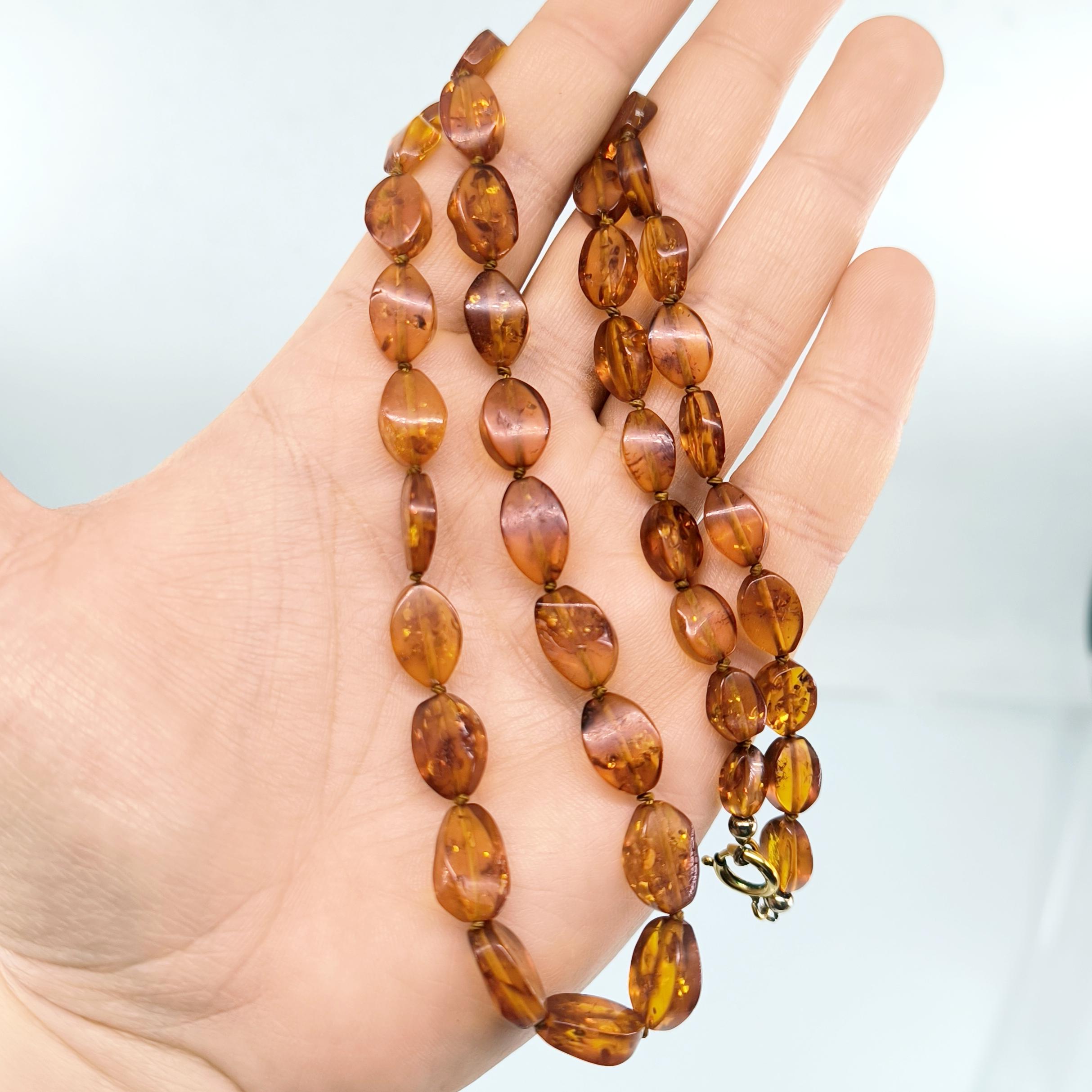 1960’lı yıllardan günümüze ulaşan bu natürel damla kehribar kolye, sade fakat son derece zarif formuyla dikkat çeker. Her bir hatbe, kehribarın iç dünyasını gösteren doğal damarları ve bal tonlarındaki sıcaklığıyla adeta yaşayan bir doku sunar. Dönemin ustalıkla yapılmış işçiliği sayesinde kolye boyunda dengeli ve akıcı bir duruş sergiler. Gösterişten uzak ama güçlü karaktere sahip bu parça, hem koleksiyon değeri hem de zamansız şıklığıyla gerçek bir vintage kehribar örneğidir.