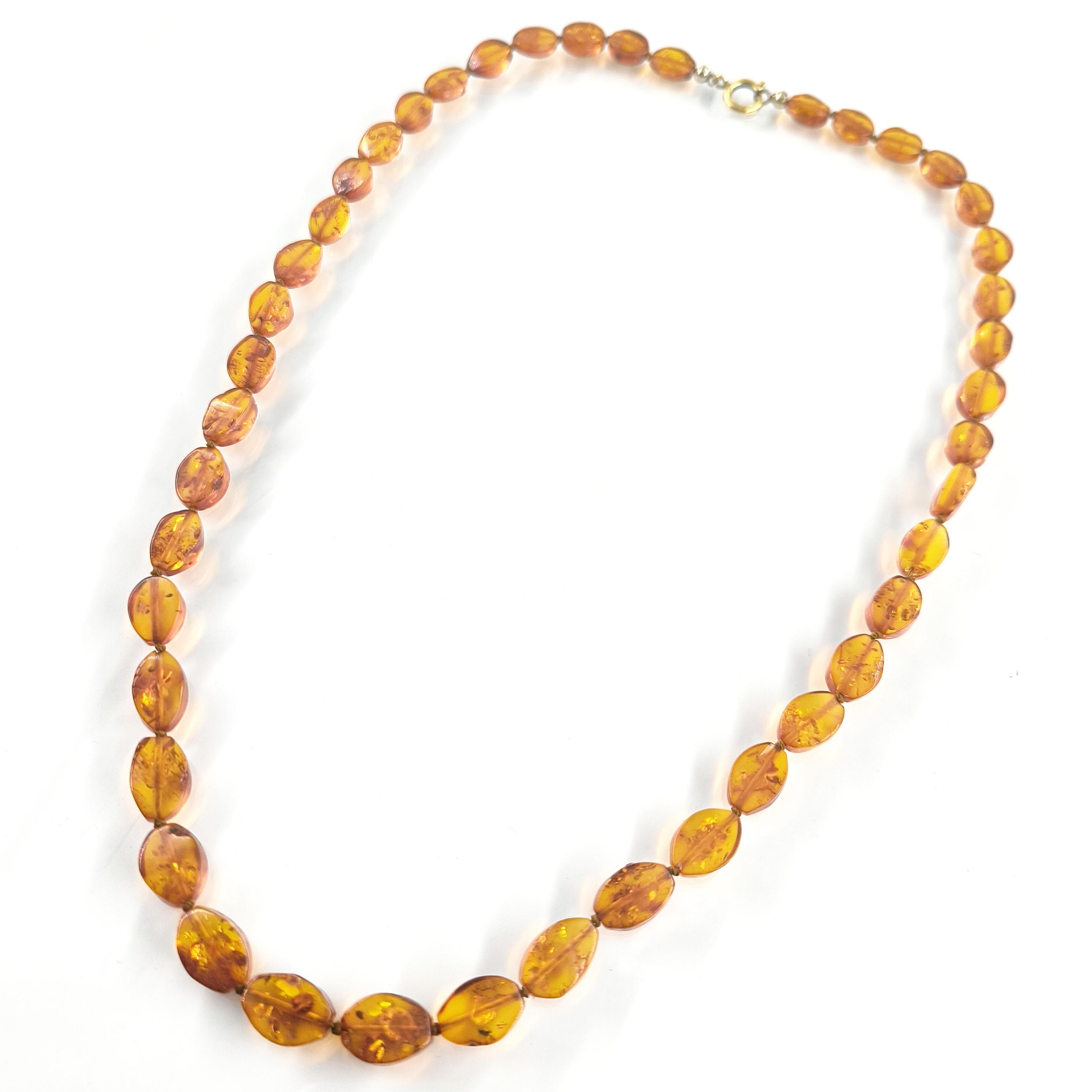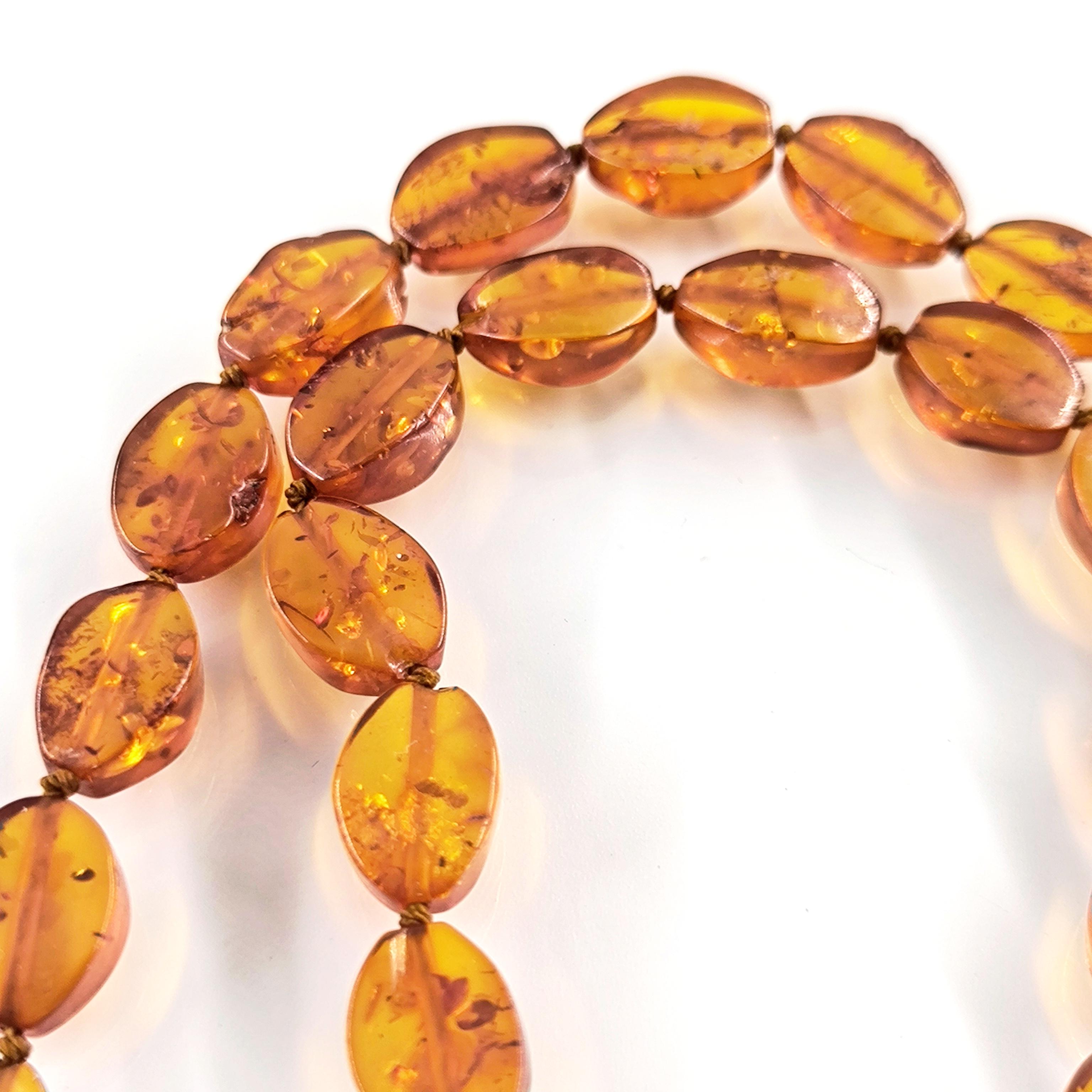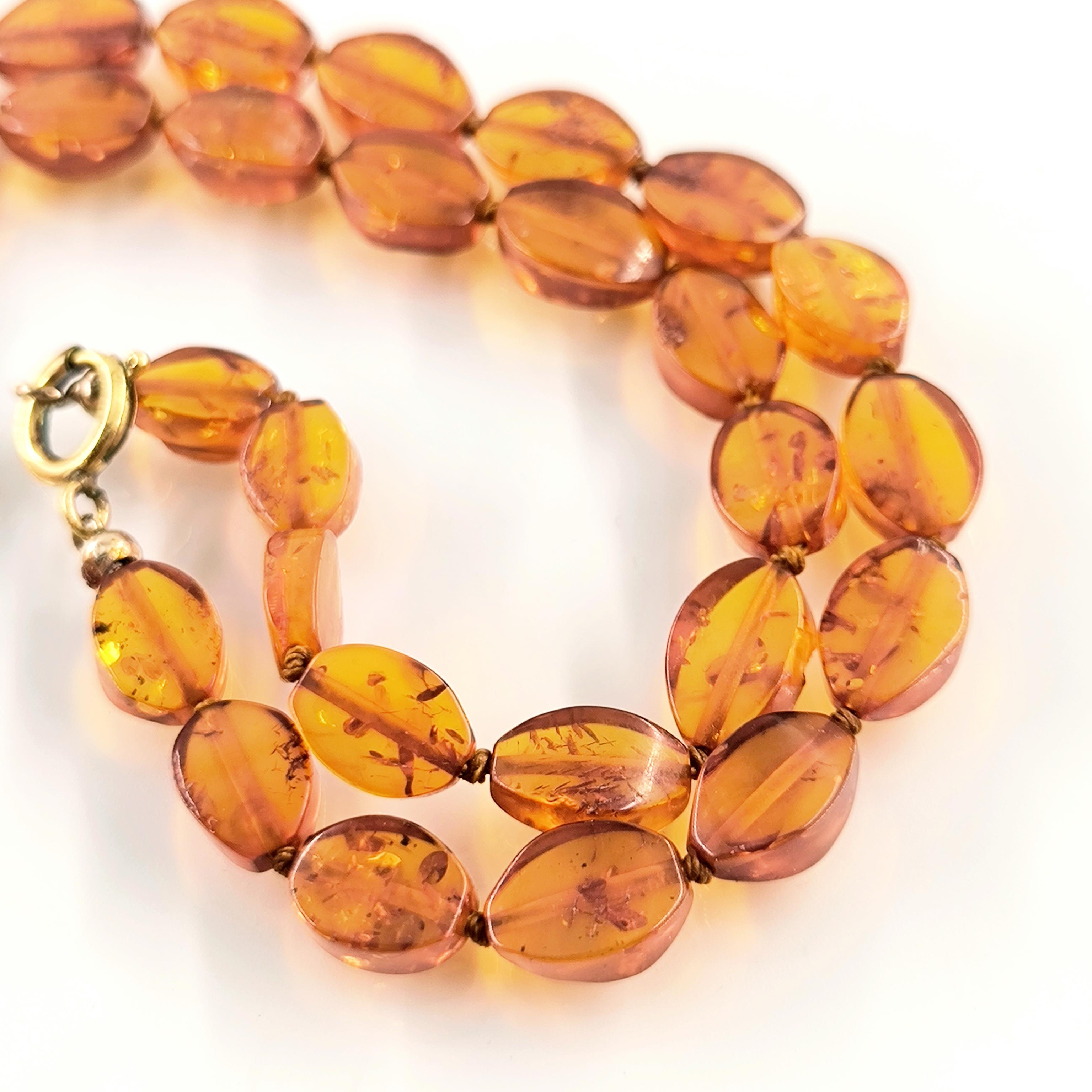 1960’lı yıllardan günümüze ulaşan bu natürel damla kehribar kolye, sade fakat son derece zarif formuyla dikkat çeker. Her bir hatbe, kehribarın iç dünyasını gösteren doğal damarları ve bal tonlarındaki sıcaklığıyla adeta yaşayan bir doku sunar. Dönemin ustalıkla yapılmış işçiliği sayesinde kolye boyunda dengeli ve akıcı bir duruş sergiler. Gösterişten uzak ama güçlü karaktere sahip bu parça, hem koleksiyon değeri hem de zamansız şıklığıyla gerçek bir vintage kehribar örneğidir.