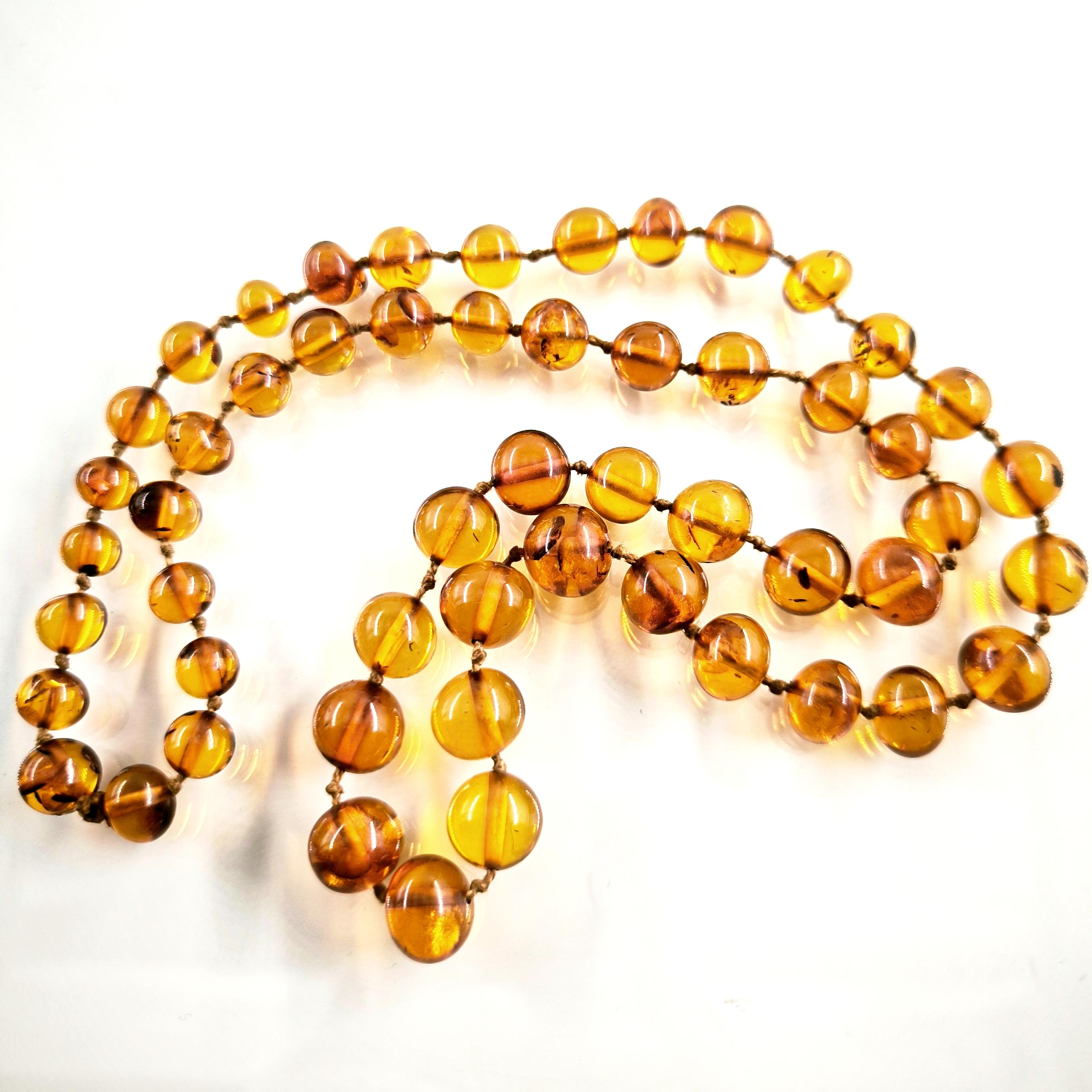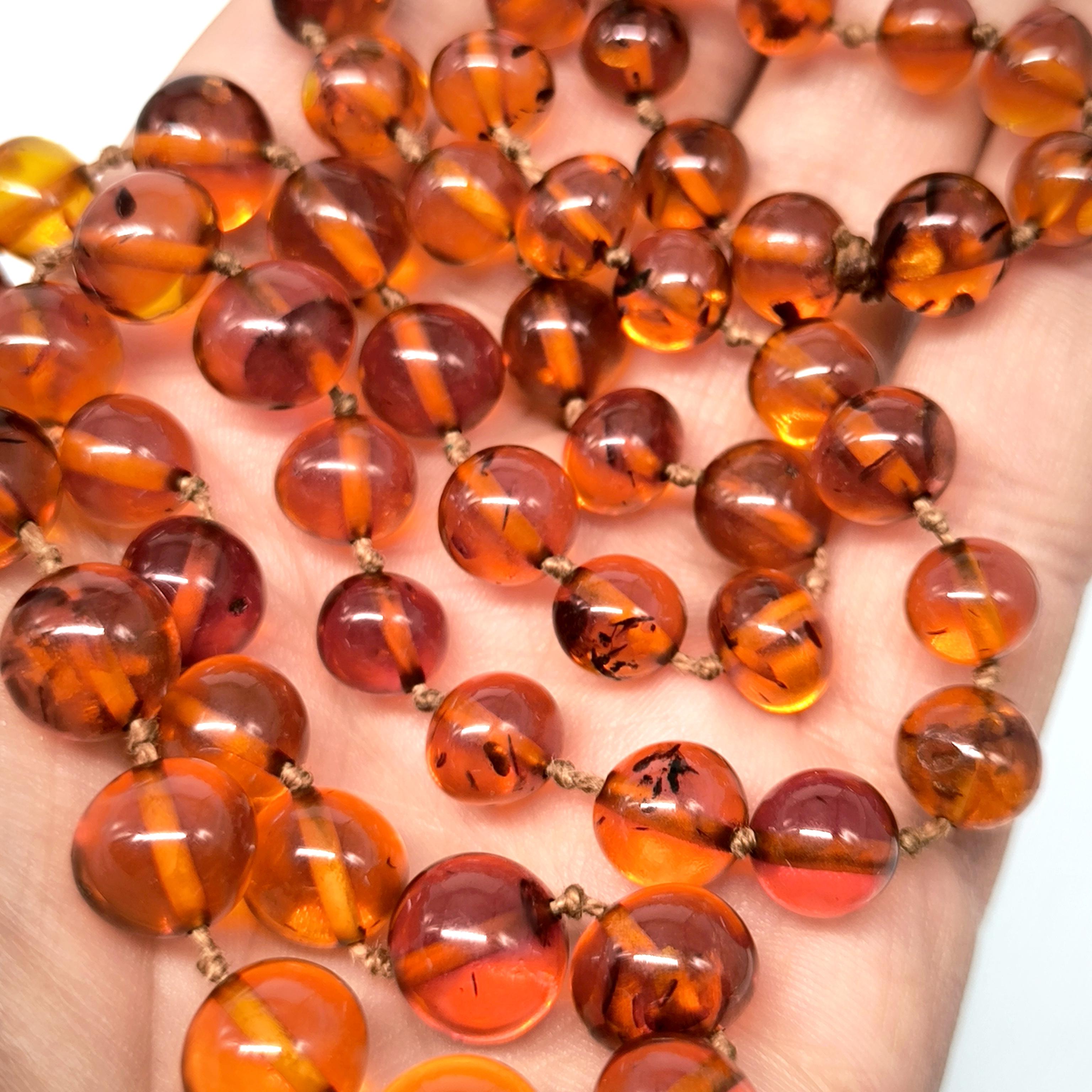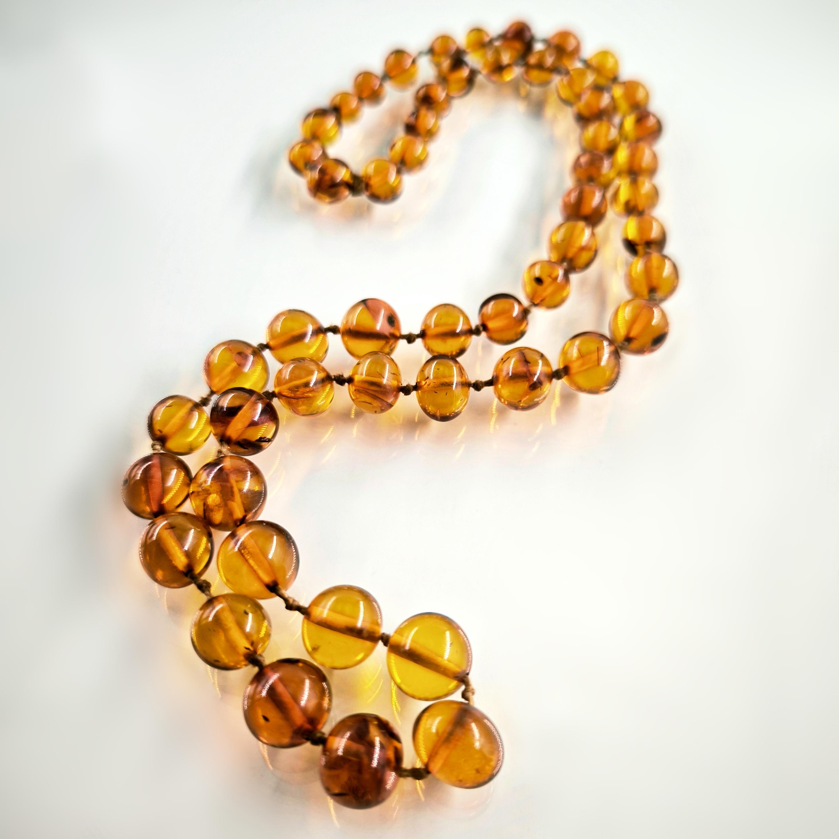 1960'LAR NATÜREL DAMLA KEHRİBAR KÜRE KESİM ANTİKA KEHRİBAR KOLYE