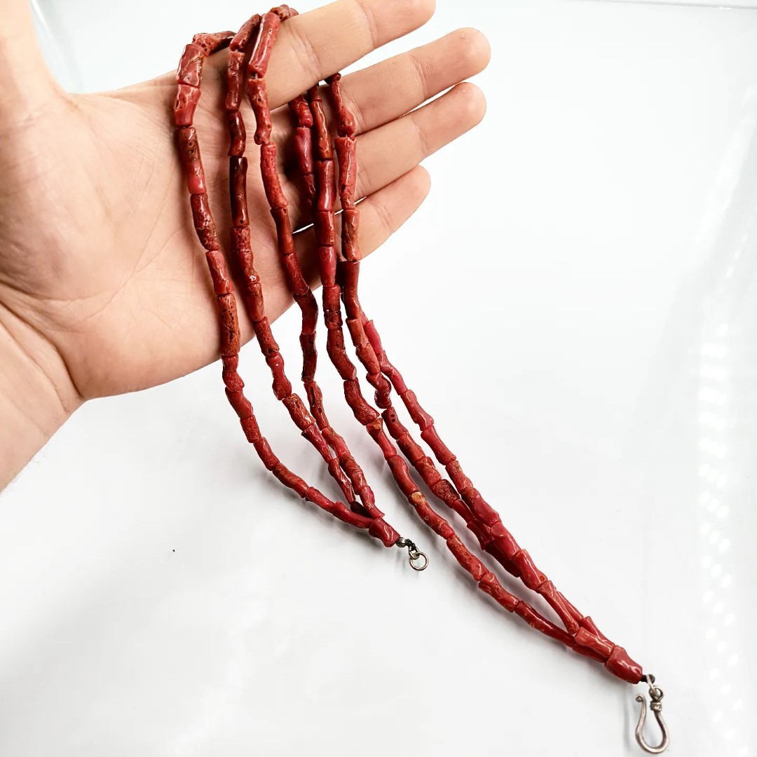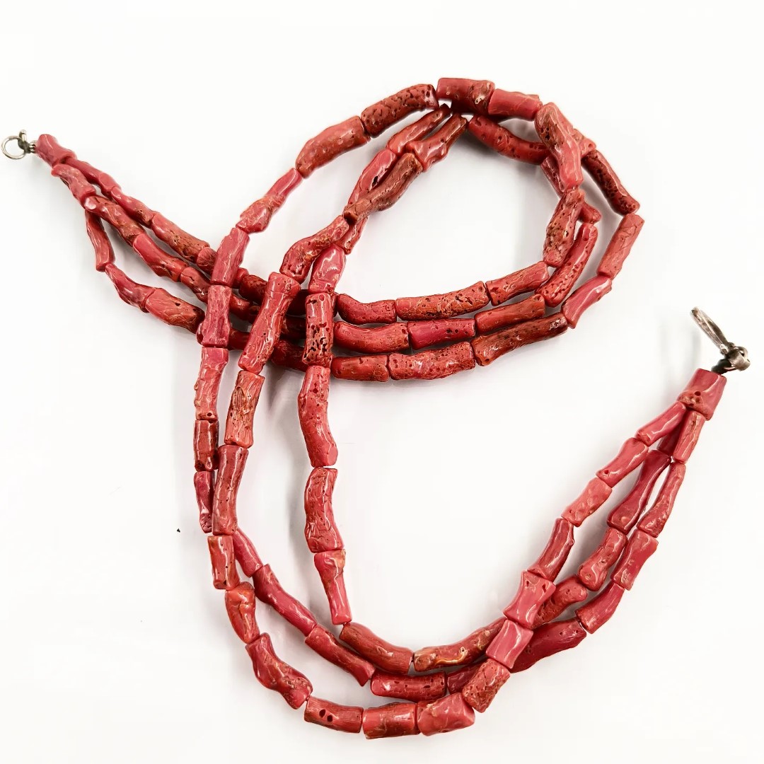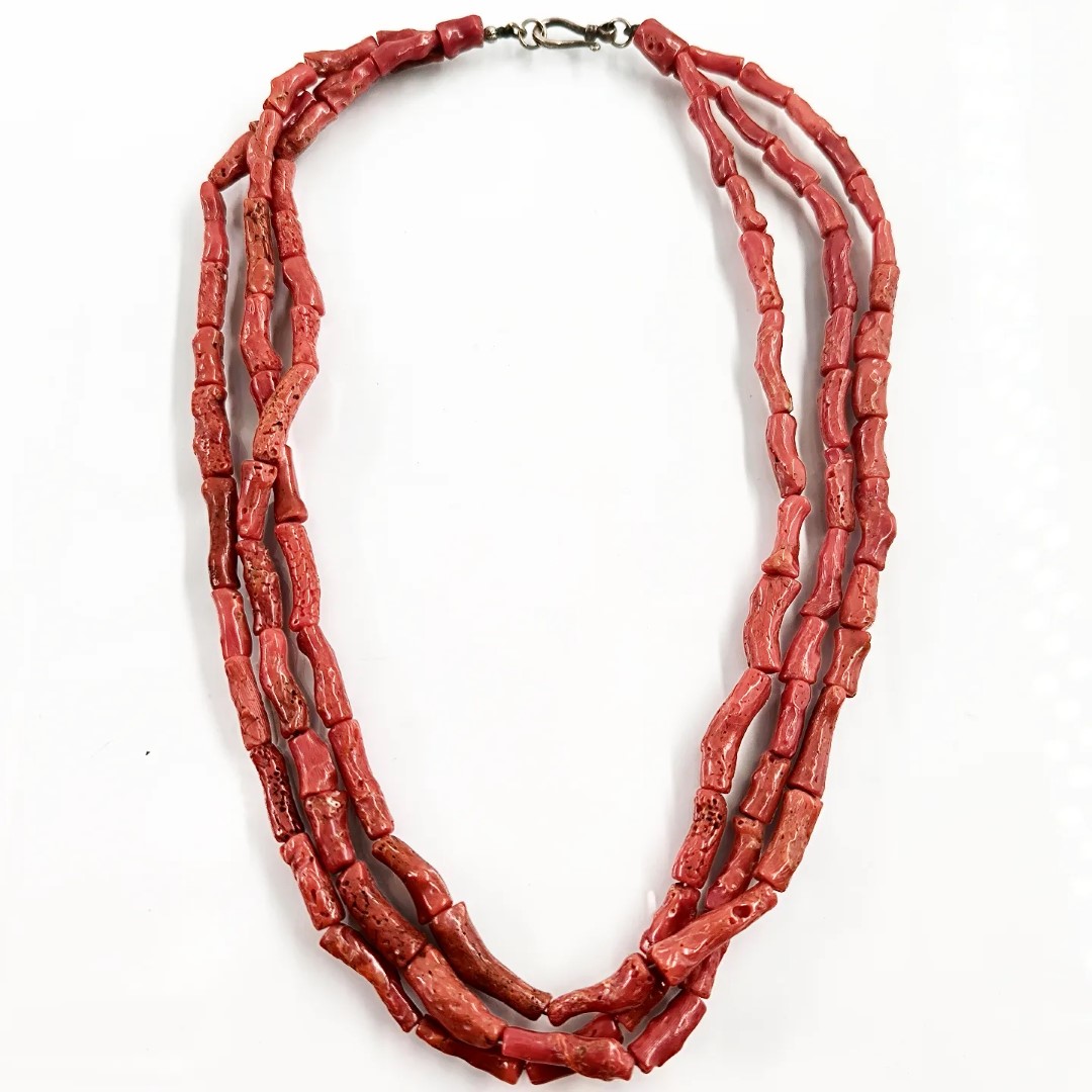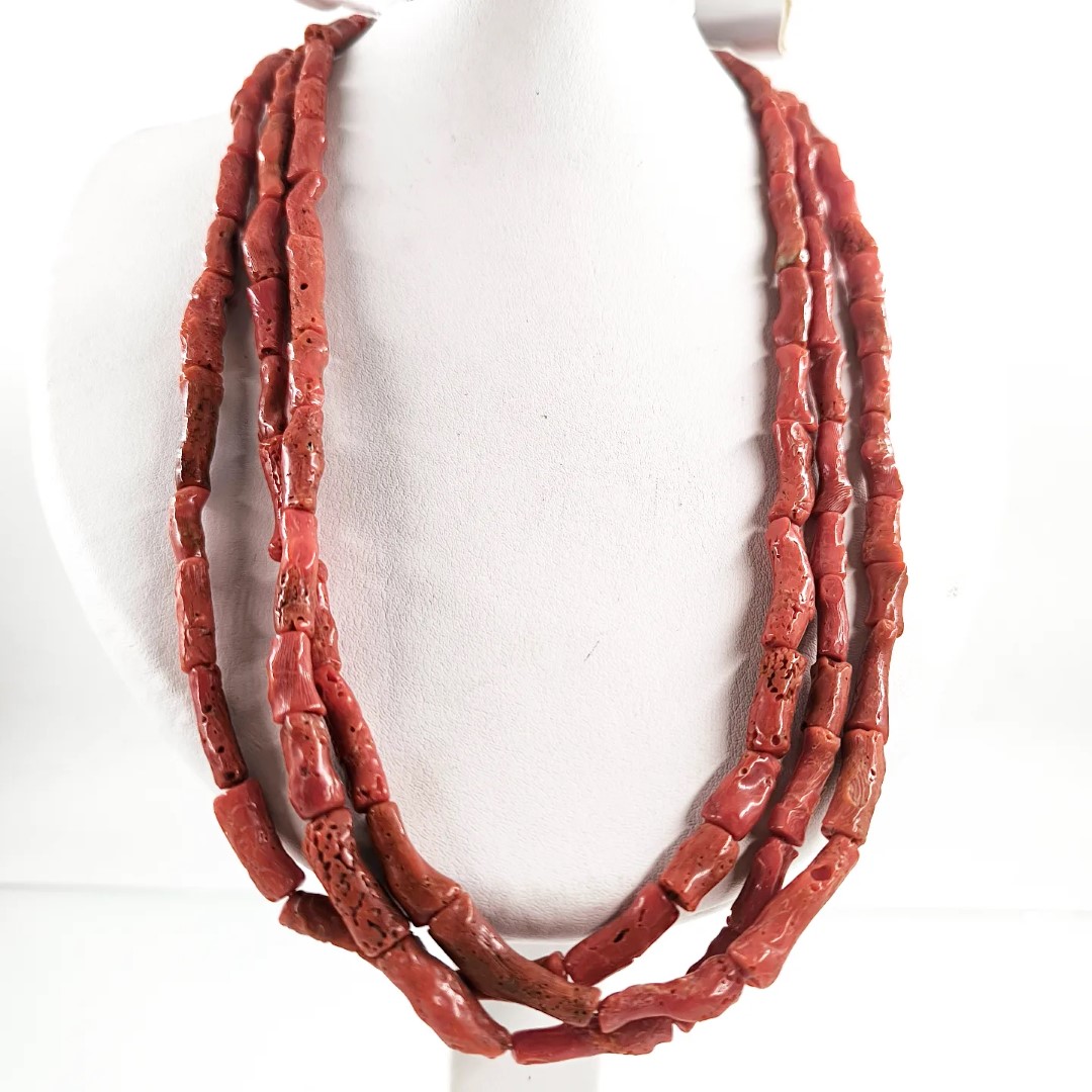 Muhteşem işçilikte 3 dizili Natürel Tunus kurtlu mercan üst seviye renk ve kondüsyonda, düzenli dallar kesilerek yapılmış eşsiz bir mücevher gerdanlık! Klips kısımları gümüştür.