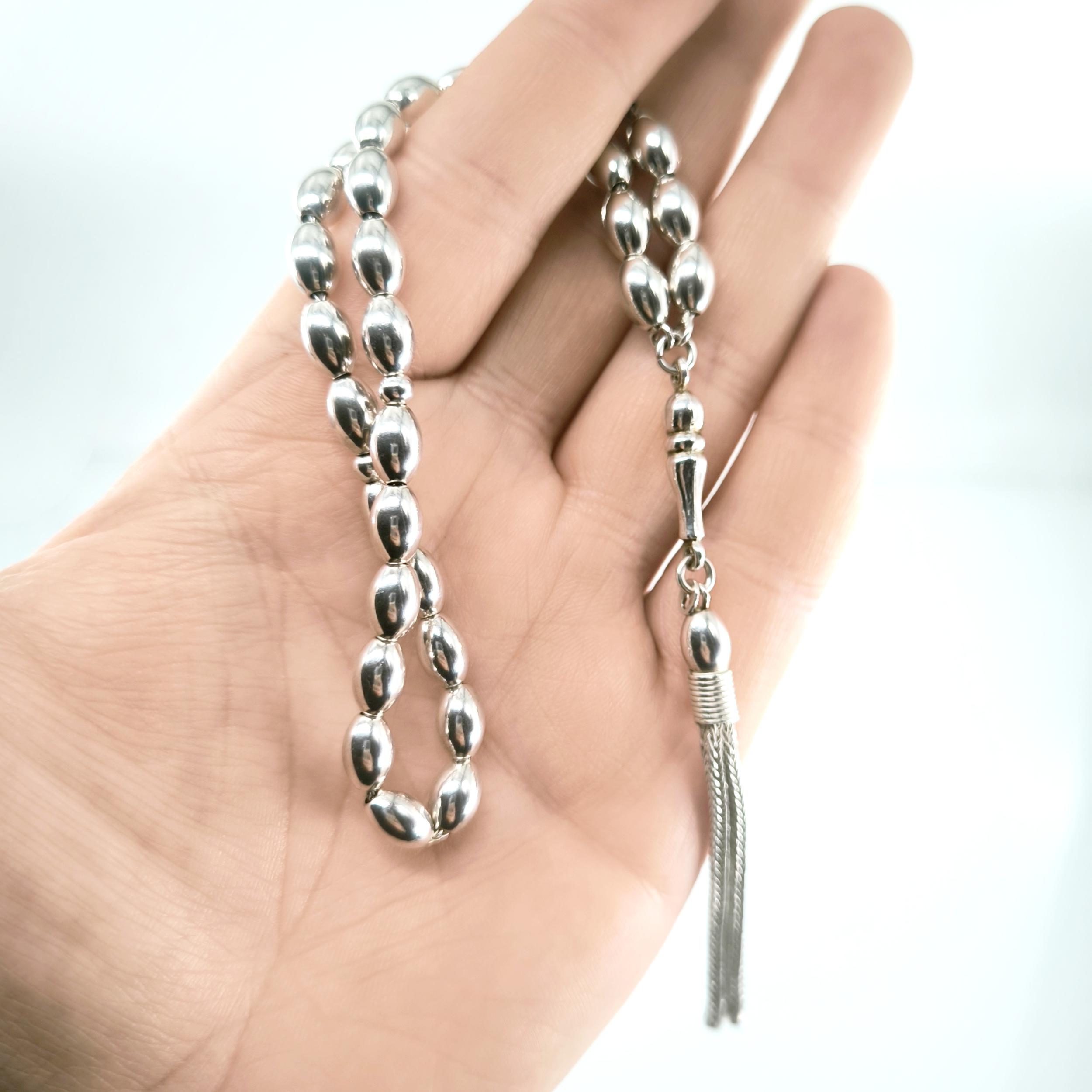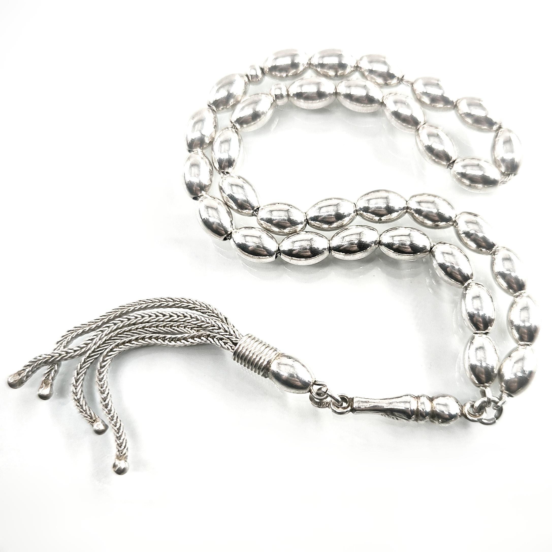 TAMAMI 925 AYAR GÜMÜŞTEN OLUŞAN ÇEKİMİ MUHTEŞEM DÜZEYDE GÜMÜŞ TESBİHİMİZ.