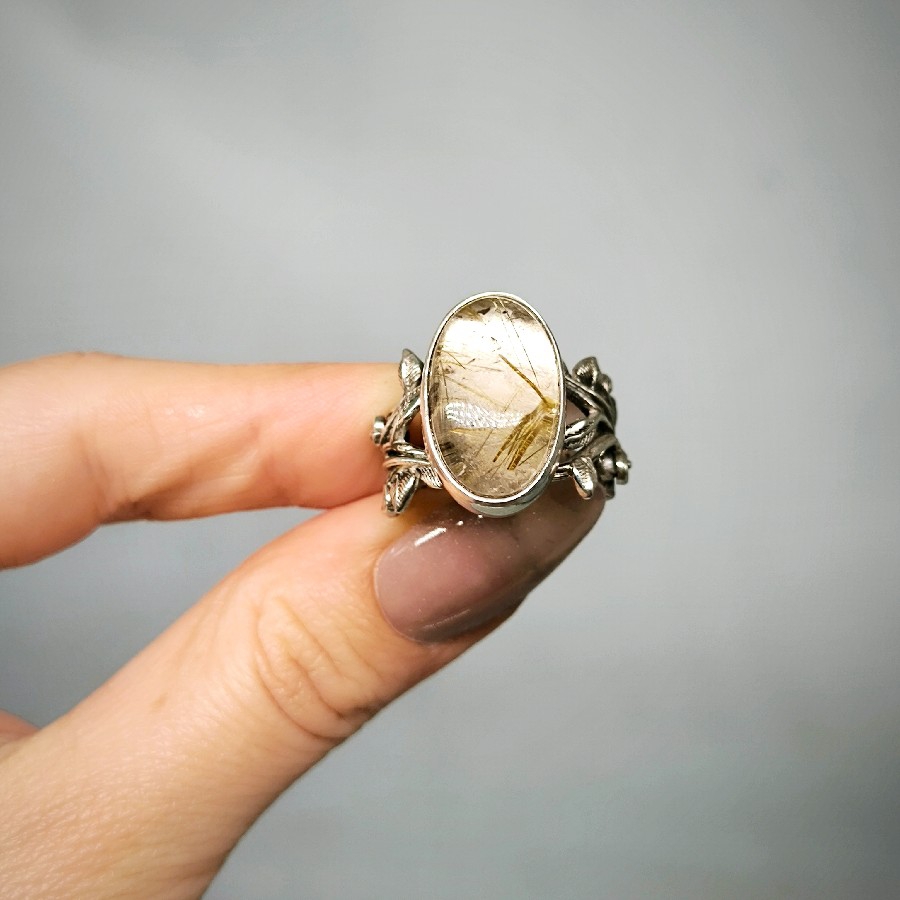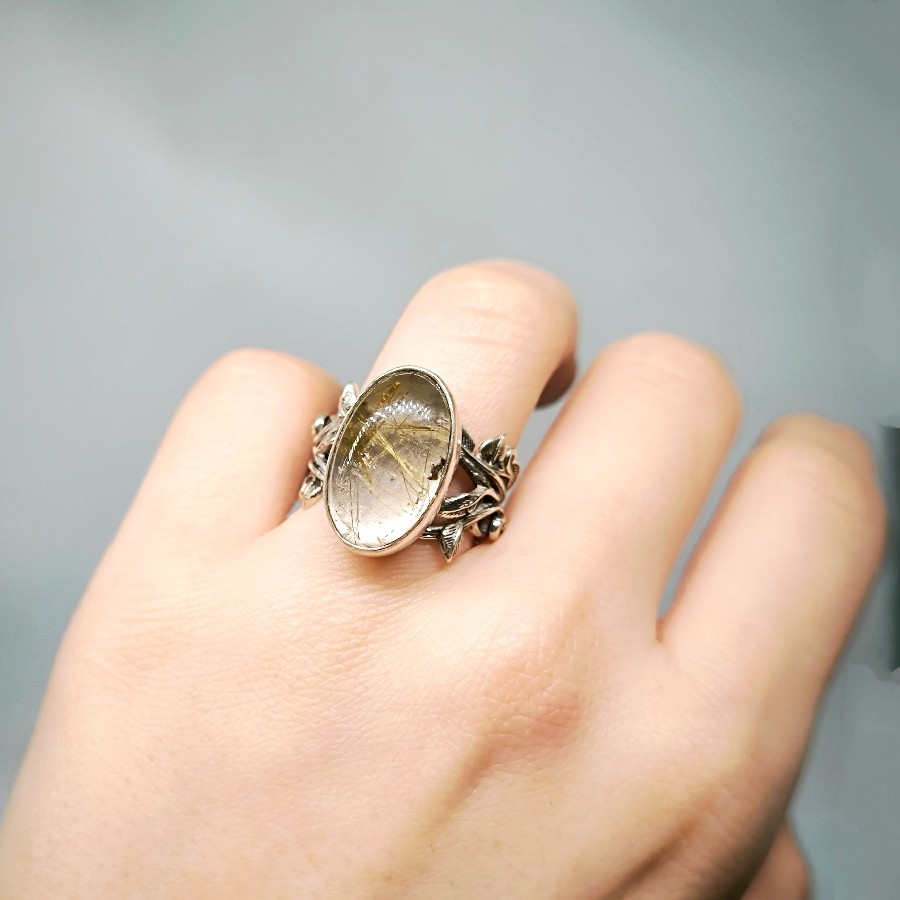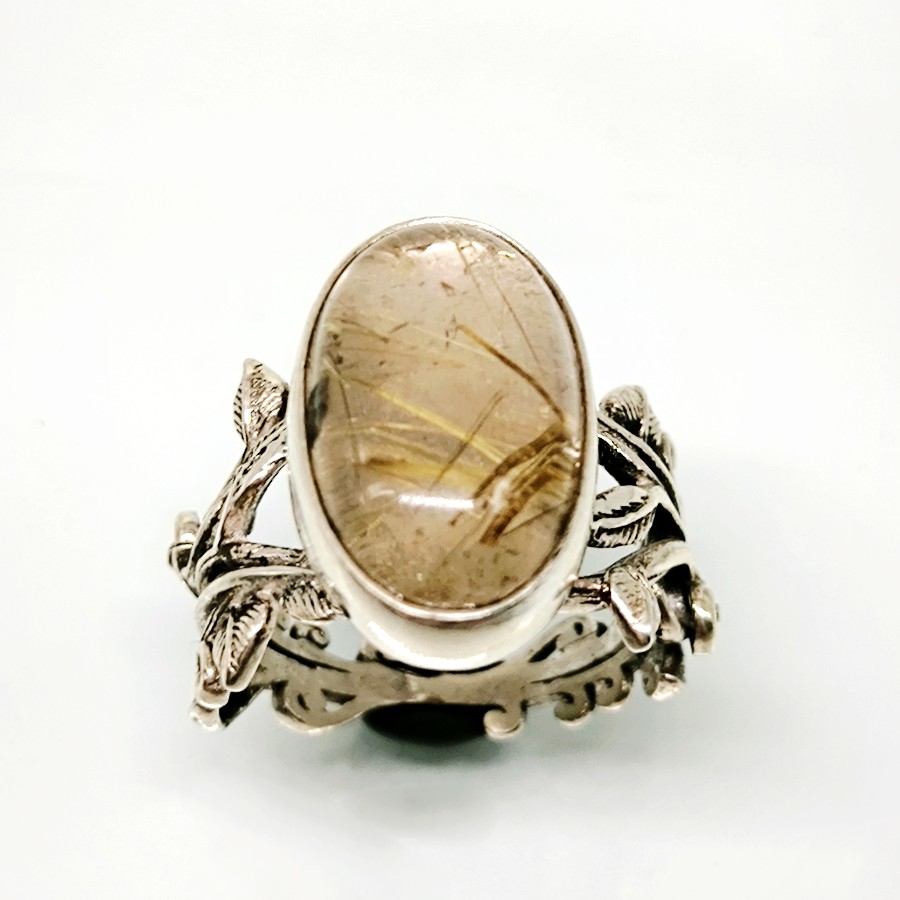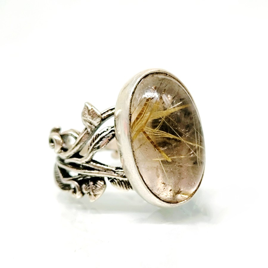 ALTIN RUTİLLİ KUVARS TAŞ TASARIMLI GÜMÜŞ YÜZÜK