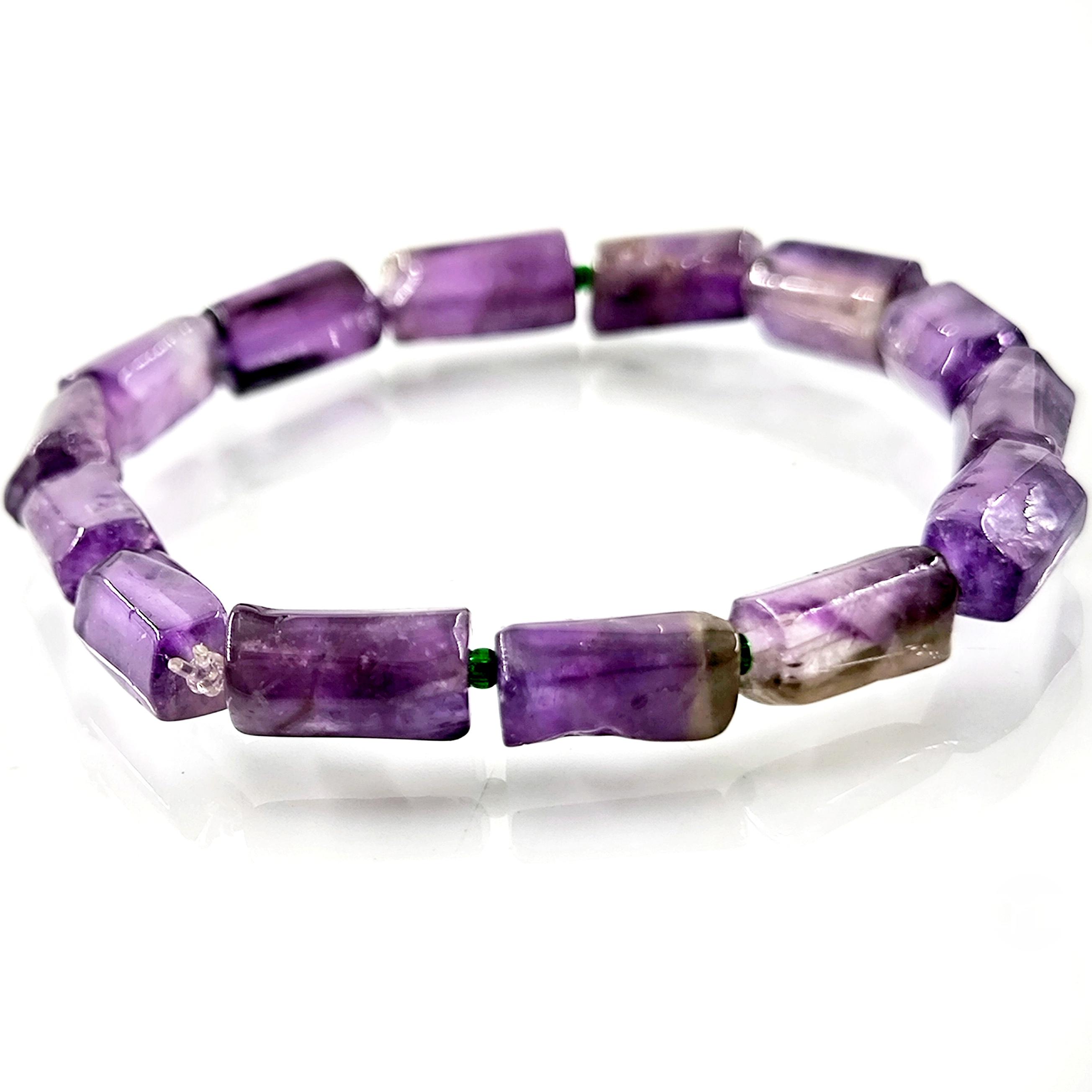 AMETİST DOĞALTAŞ BİLEKLİK, doğanın büyüleyici güzelliği ile modern tasarımın birleştiği eşsiz bir takıdır. Bu muhteşem bileklik, doğal bir taş olan ametistin özel enerjisiyle doludur ve farklı boyutlardaki ametist taşlarının bir araya getirilmesiyle elde edilmiştir.