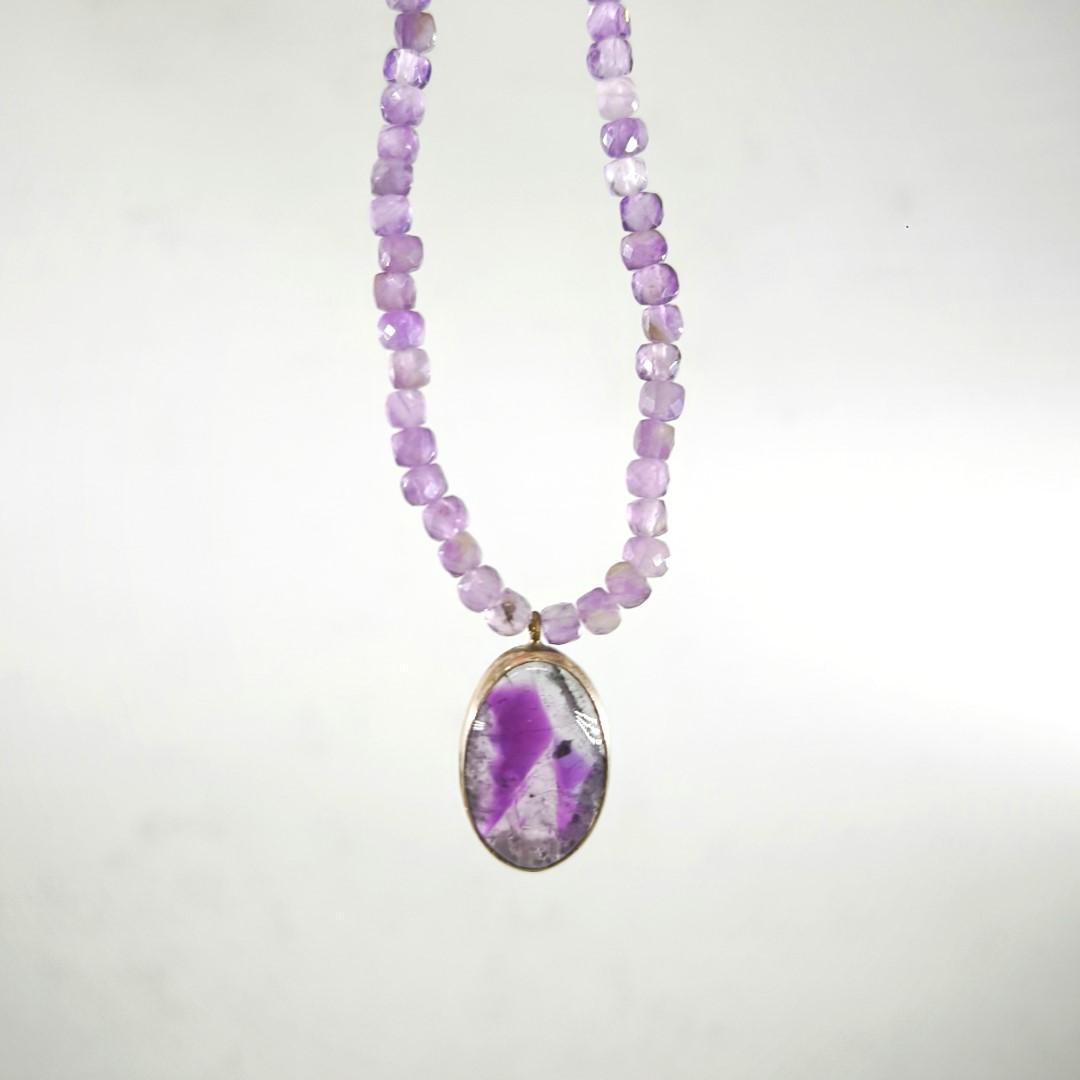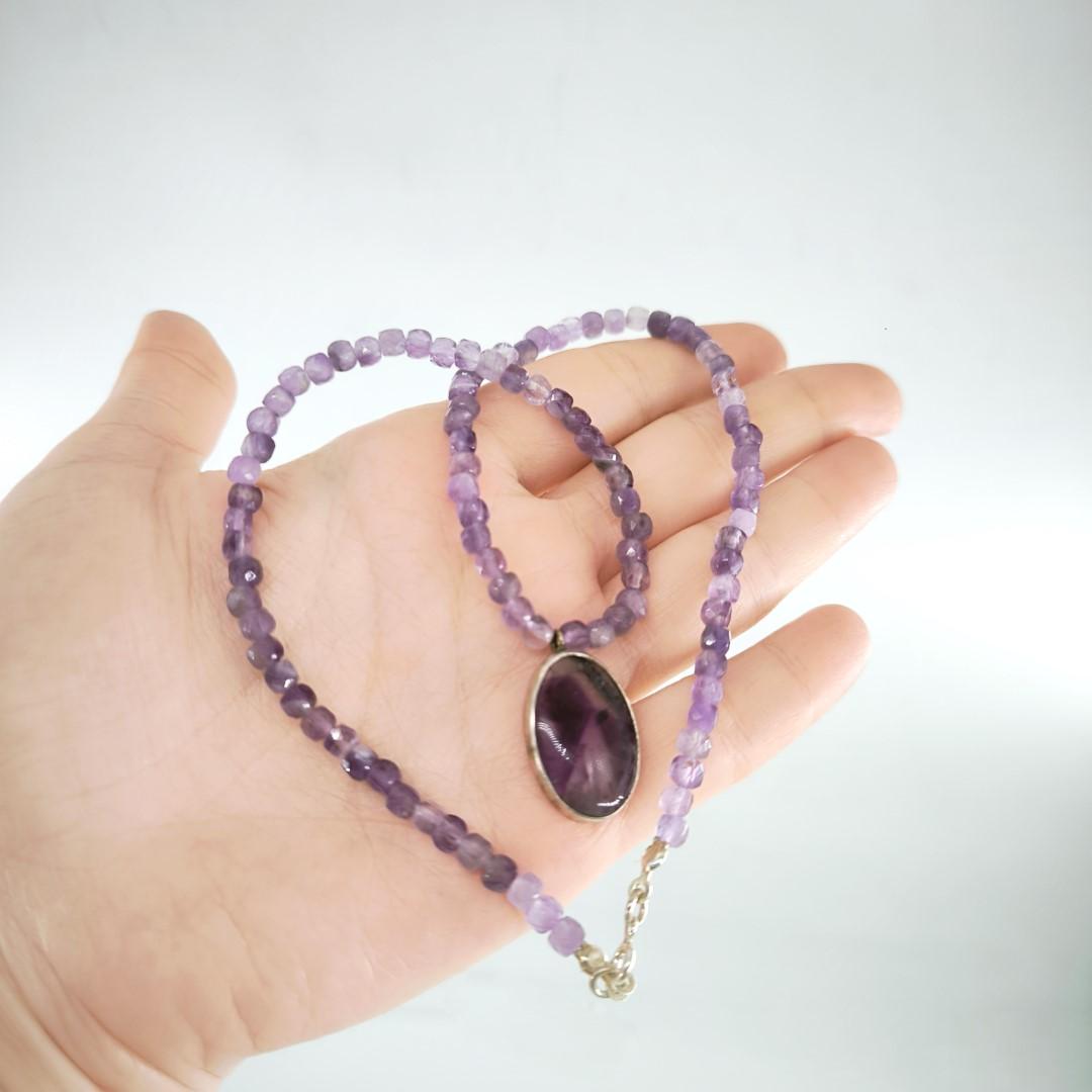 AMETİST TAŞLI GÜMÜŞ KOLYE