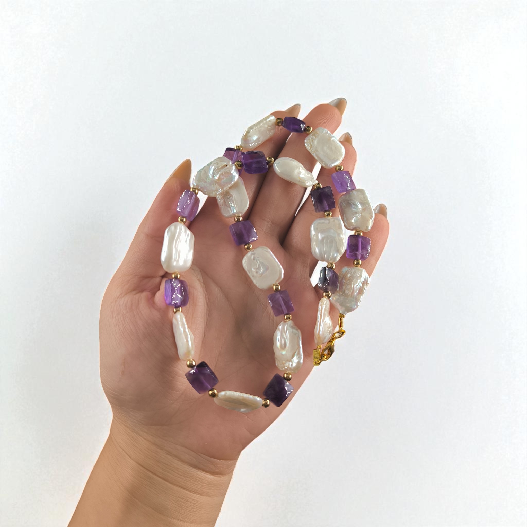 ✨ Malzemeler: Kare ametist & kare barok inci