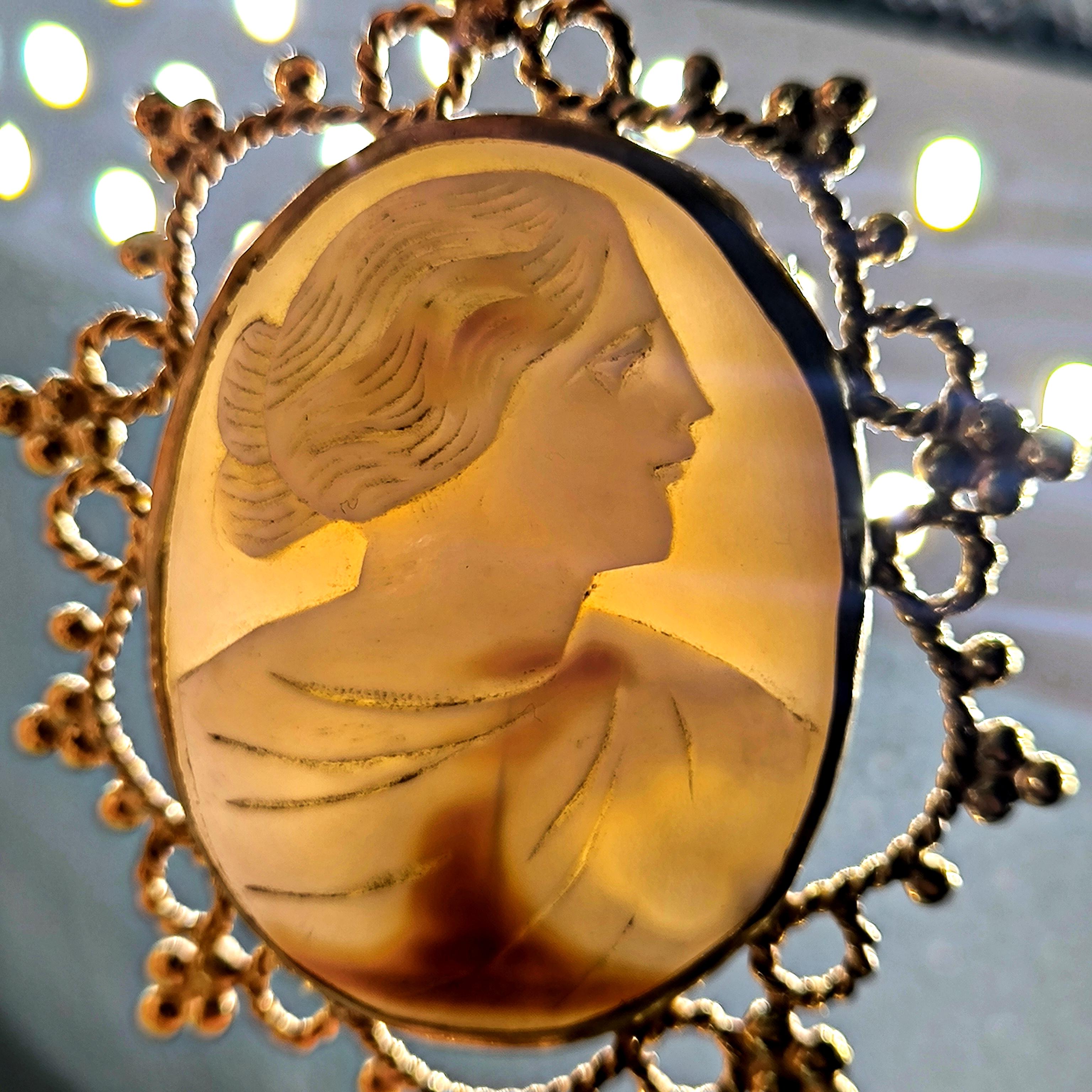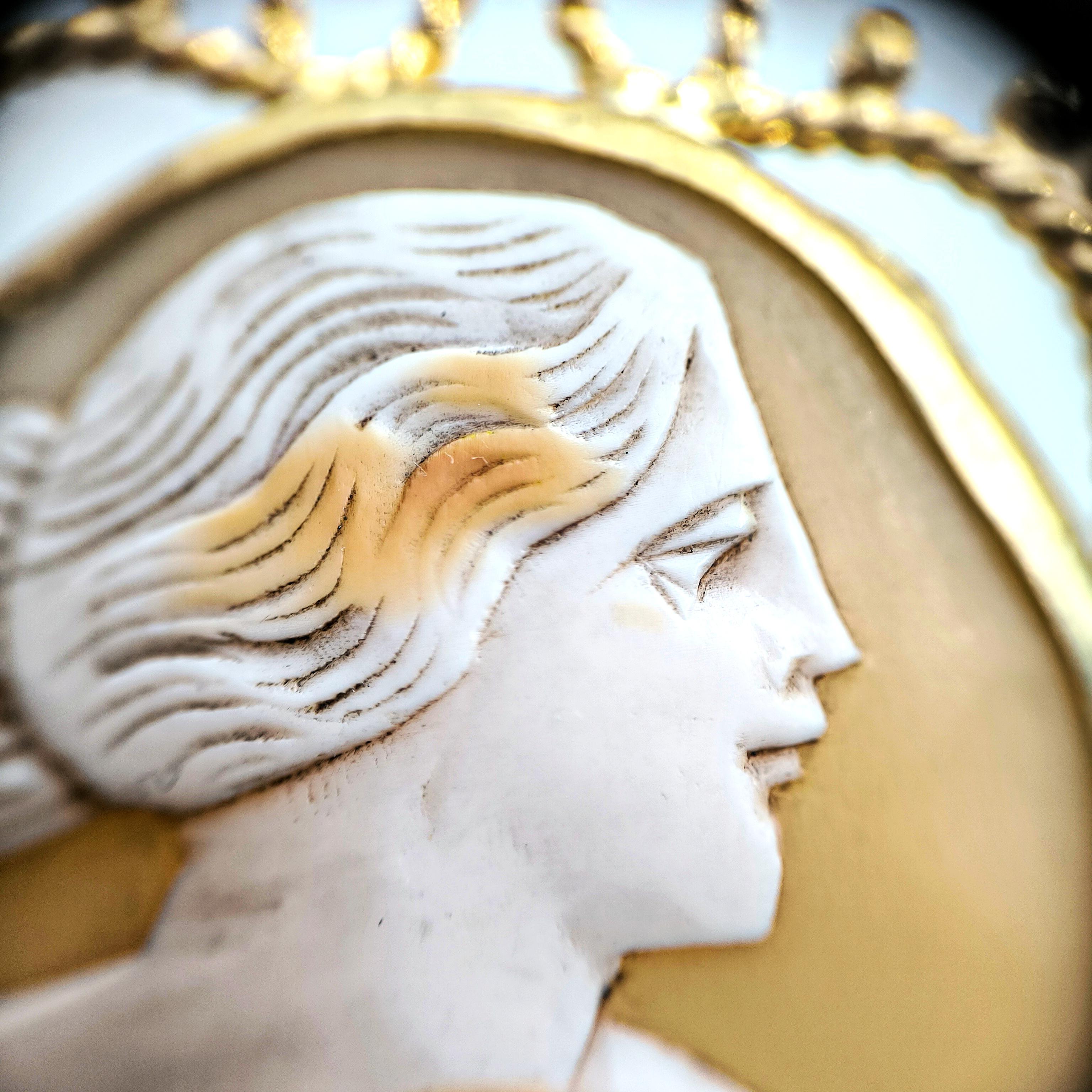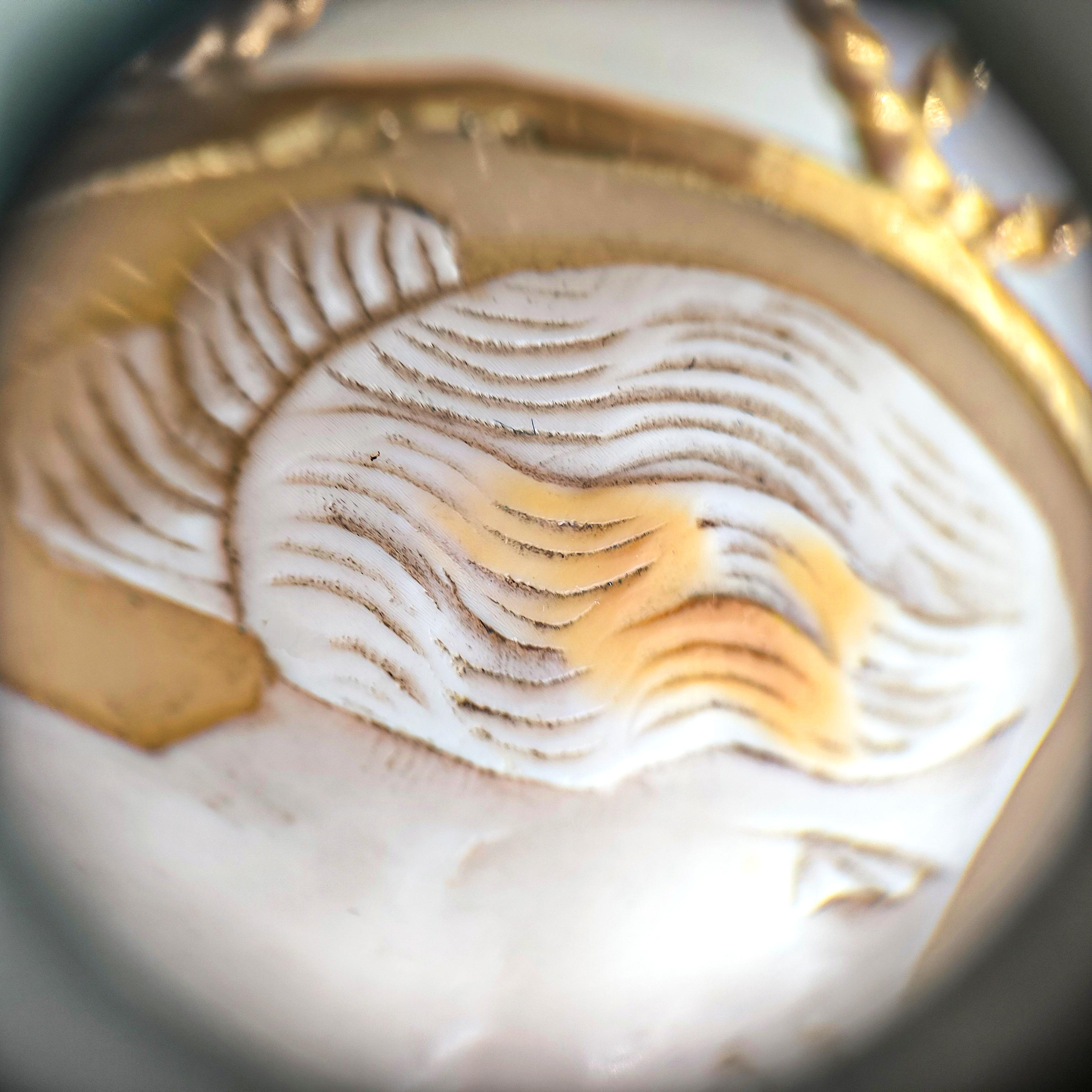 1930- 40’lara tarihlenen bu nadir cameo, klasik estetiğin en sade ama en etkileyici halini taşıyor. Yüz hatlarındaki duruluk, drapedeki hareket, arka plandaki doğal renk geçişleri… Hepsi geçmişin zarafetini bugünün inceliğiyle buluşturuyor.