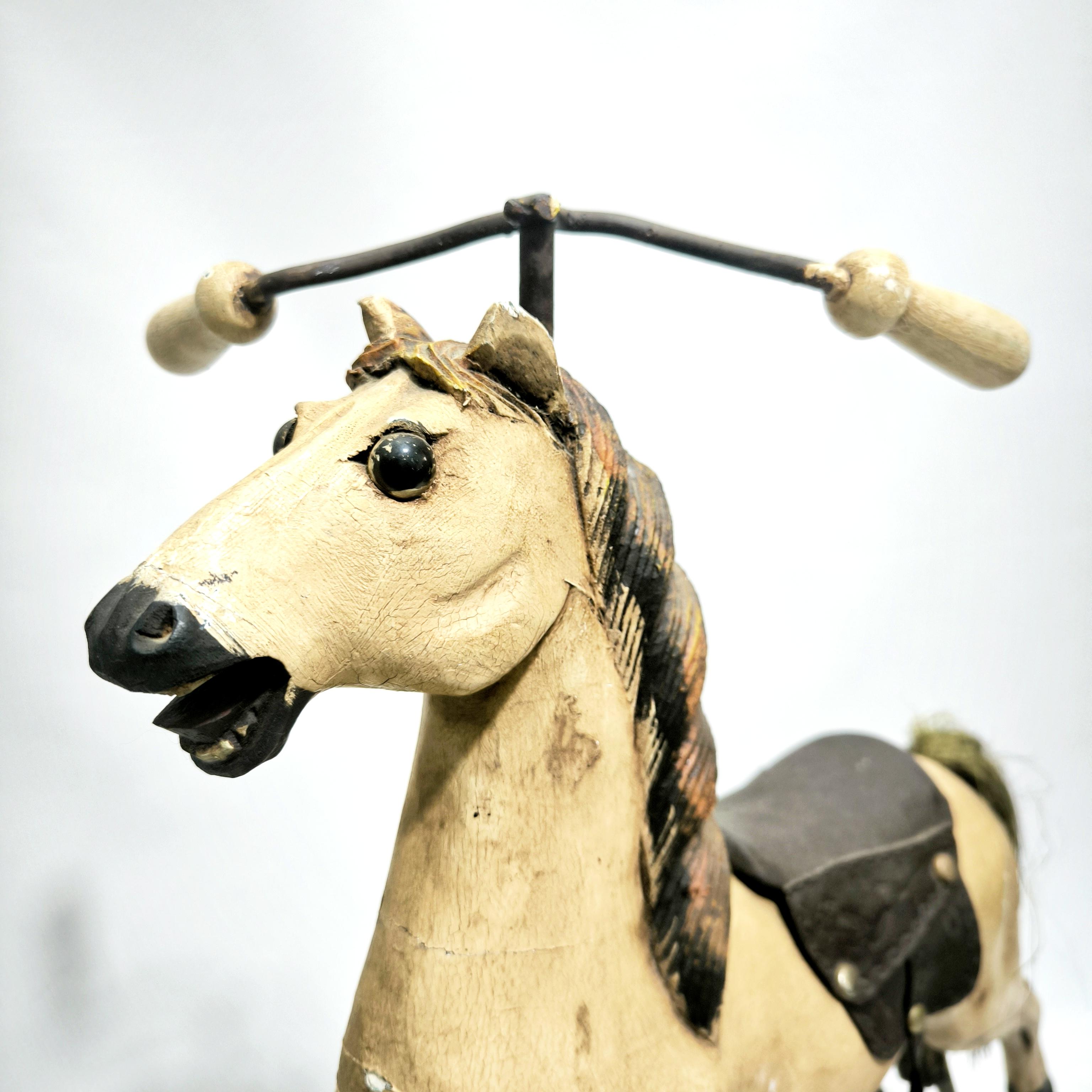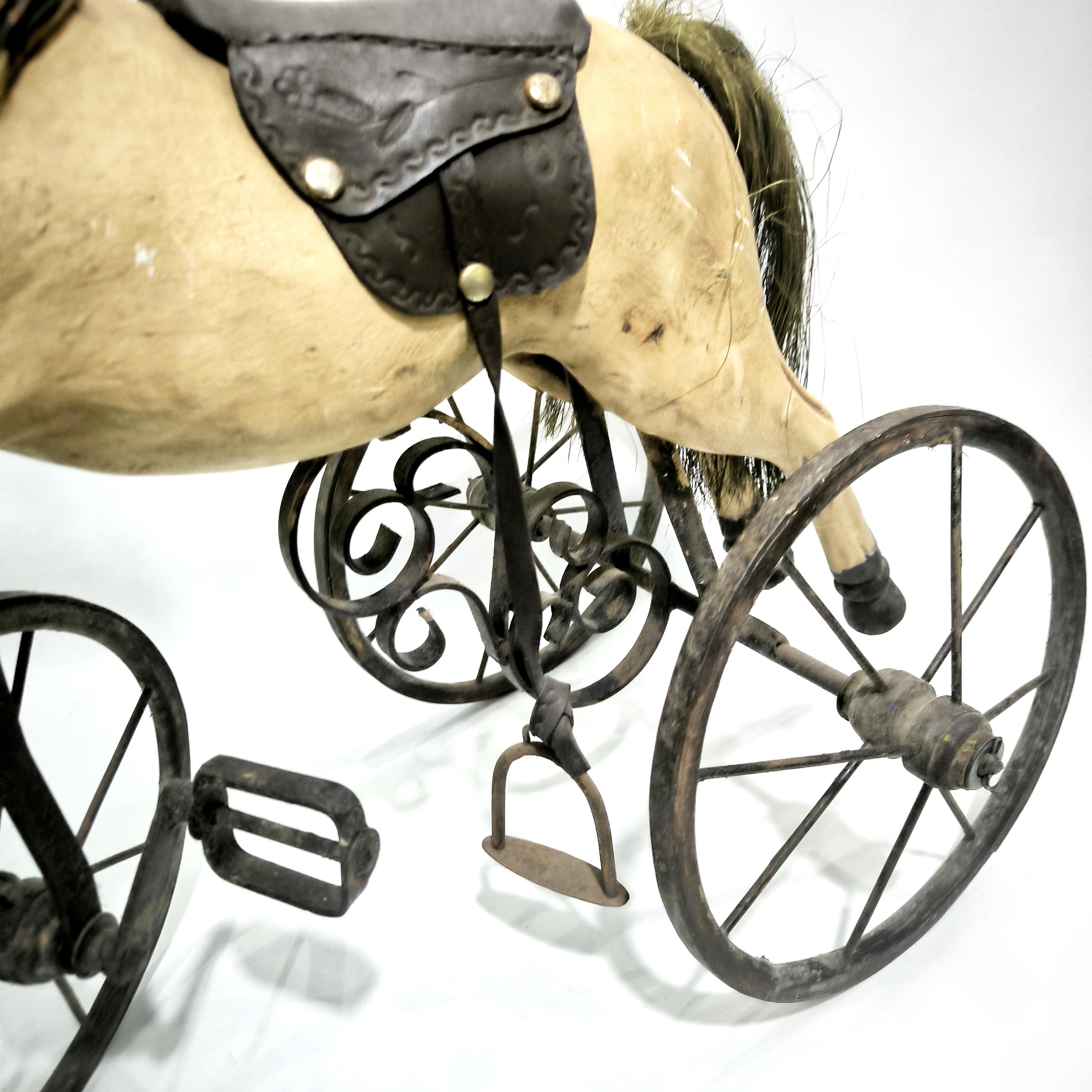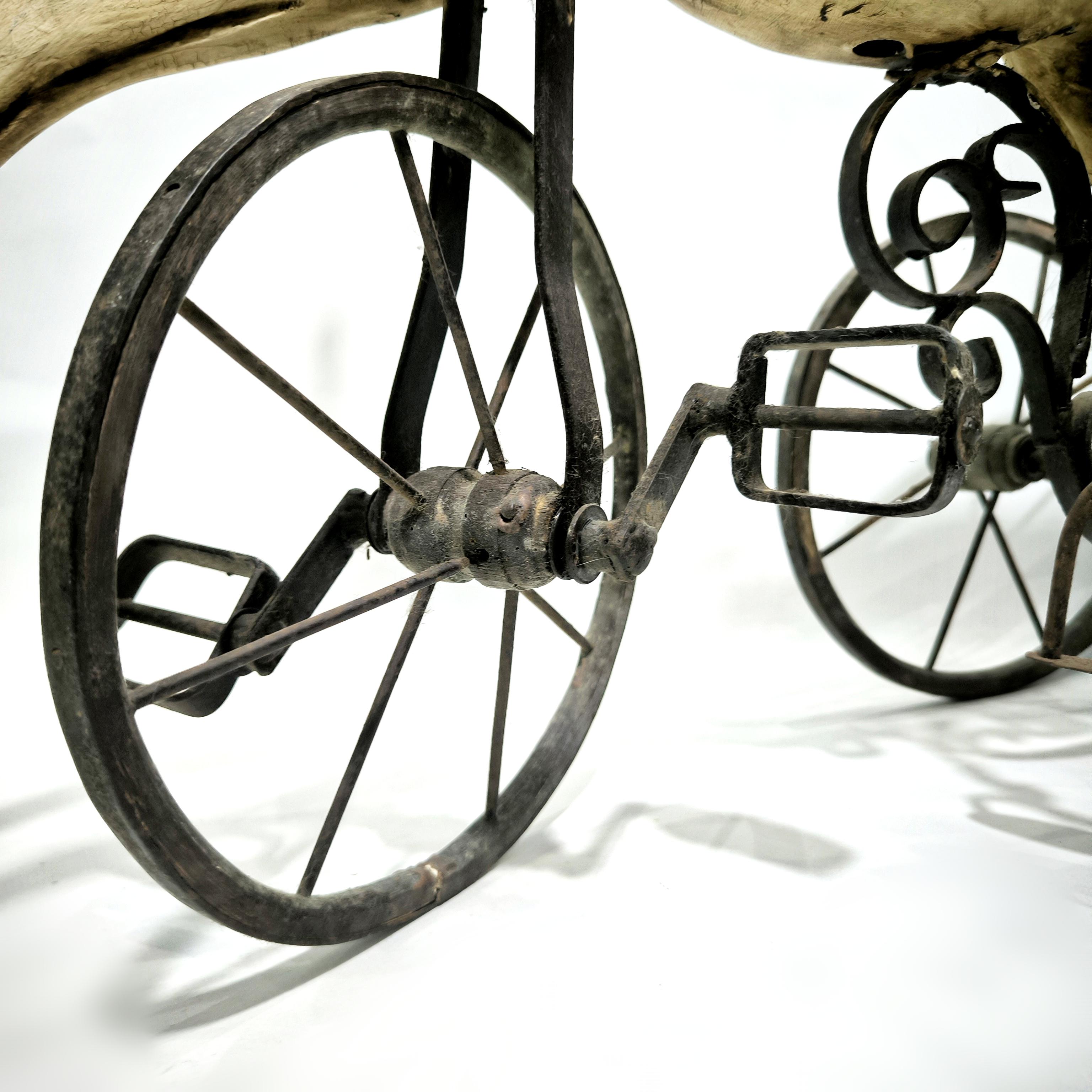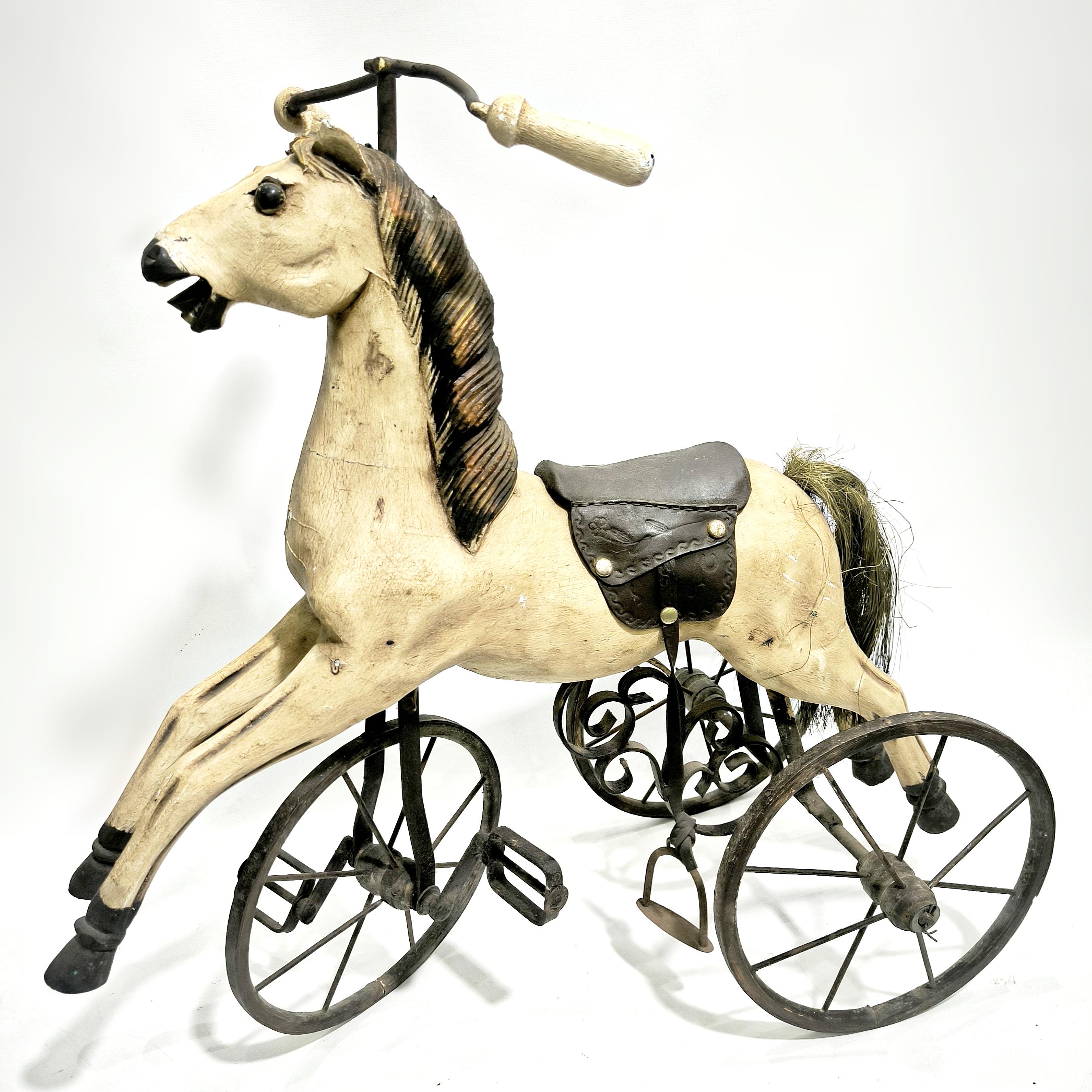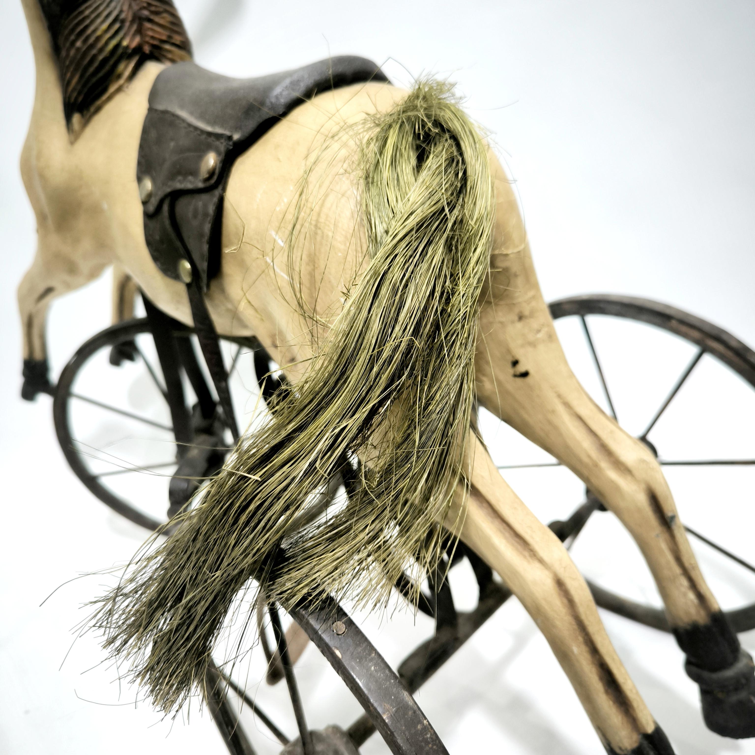 ESKİ AVRUPA İMALATI, TAMAMI EL İŞÇİLİĞİ OLAN AHŞAP ATLI, TAKRİBEN 1900'LÜ YILLARIN İLK YILLARINA AİT AT FORMUNDA ANTİKA ÇOCUK BİSİKLETİ. AKSAMLARI ÇALIŞIR DURUMDA ANCAK BİRAZ BAKIM İSTER. GERÇEK VE MUAZZAM SANATTA BİR ANTİKA OYUNCAK!
