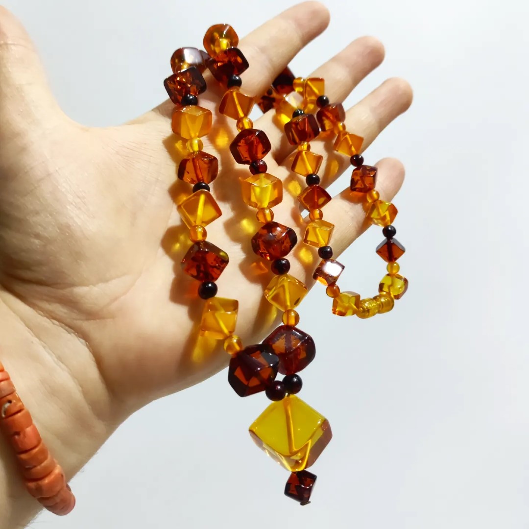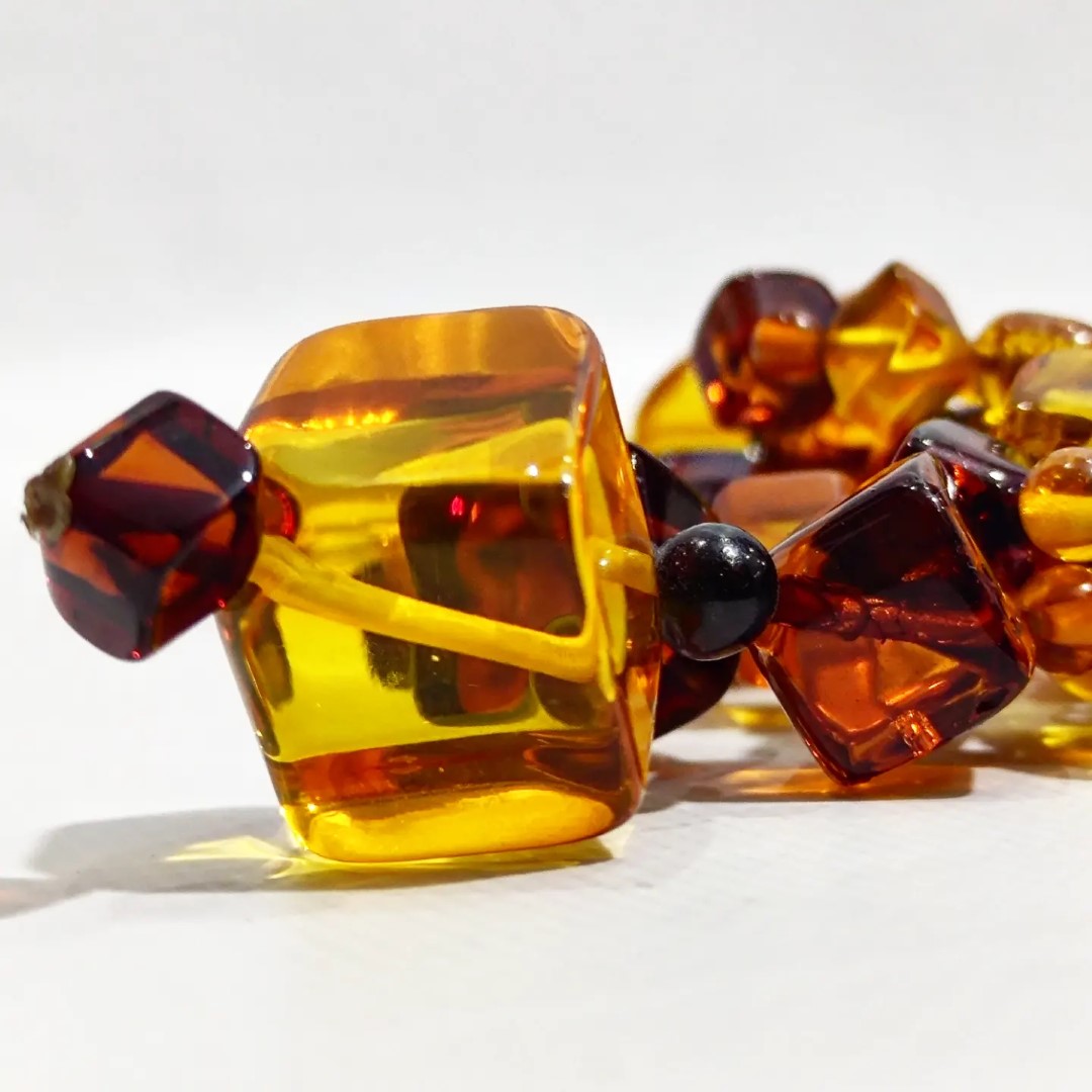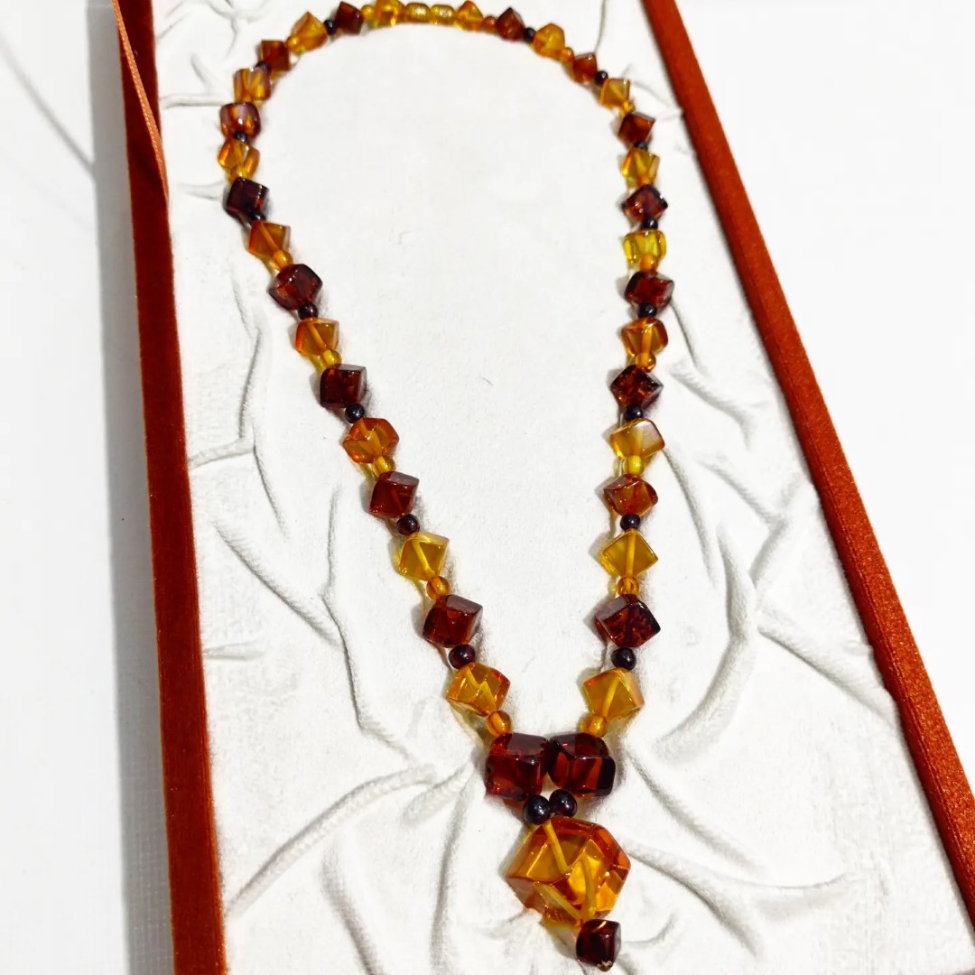 Kehribarda gerçek anlamda uç nokta! Adeta bir film şeridi gibi izlenir cinsten.. 1950-60'li yıllara ait Muhteşem bir Antika Mücevher! Yekpare kehribar kayalardan yapılma komple özel küp kesim natürel Damla Kehribar Gerdanlığımız! Mücevherimizin her noksanı dönemin kıymetli ustaları tarafından el işçiliği ile üretilmiştir. Ayrıca bu gerdanlığımıza özel gömme, işçilikli kadife tasarım kutumuz ile taçlandırdık.!!