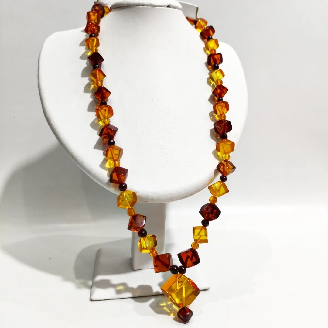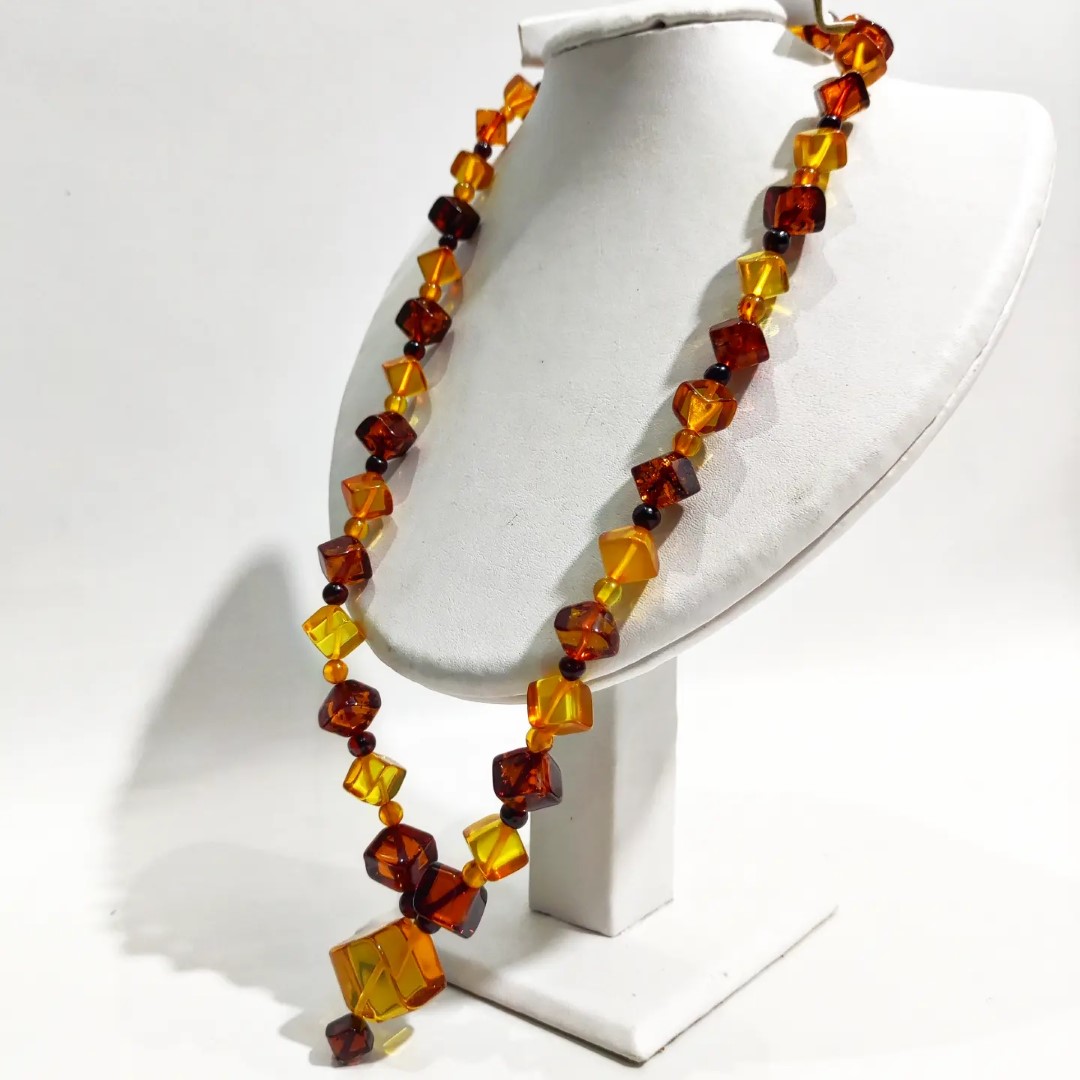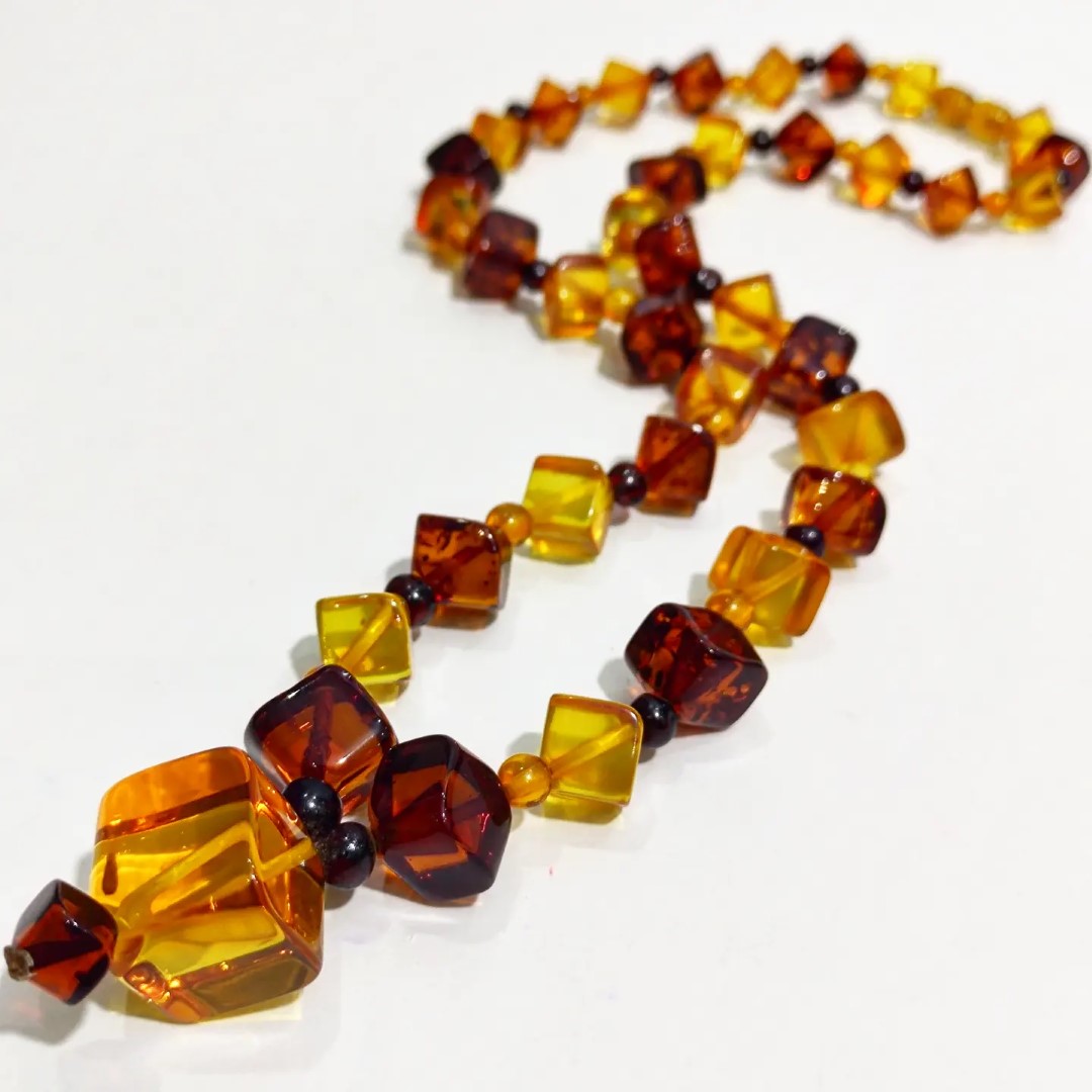 Kehribarda gerçek anlamda uç nokta! Adeta bir film şeridi gibi izlenir cinsten.. 1950-60'li yıllara ait Muhteşem bir Antika Mücevher! Yekpare kehribar kayalardan yapılma komple özel küp kesim natürel Damla Kehribar Gerdanlığımız! Mücevherimizin her noksanı dönemin kıymetli ustaları tarafından el işçiliği ile üretilmiştir. Ayrıca bu gerdanlığımıza özel gömme, işçilikli kadife tasarım kutumuz ile taçlandırdık.!!