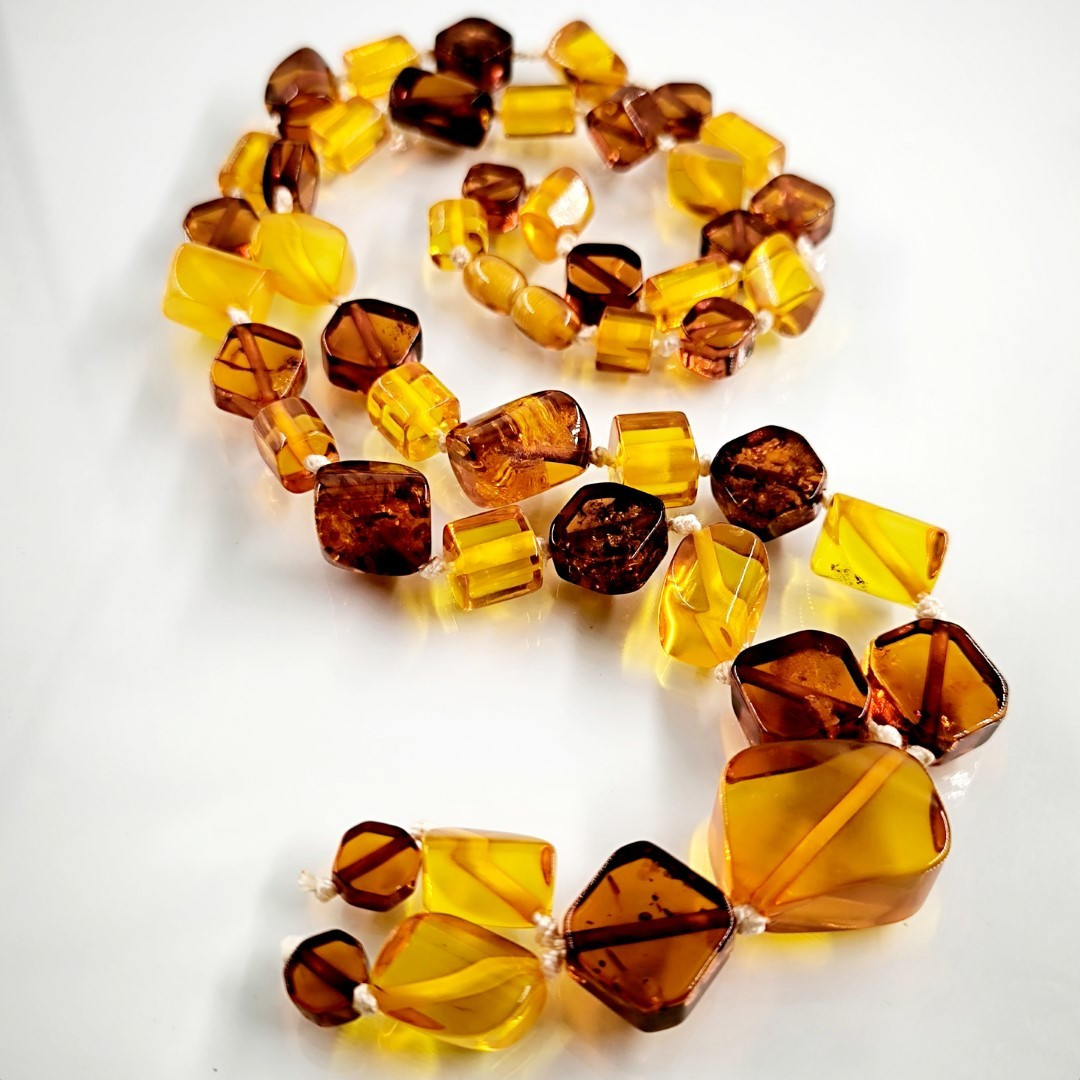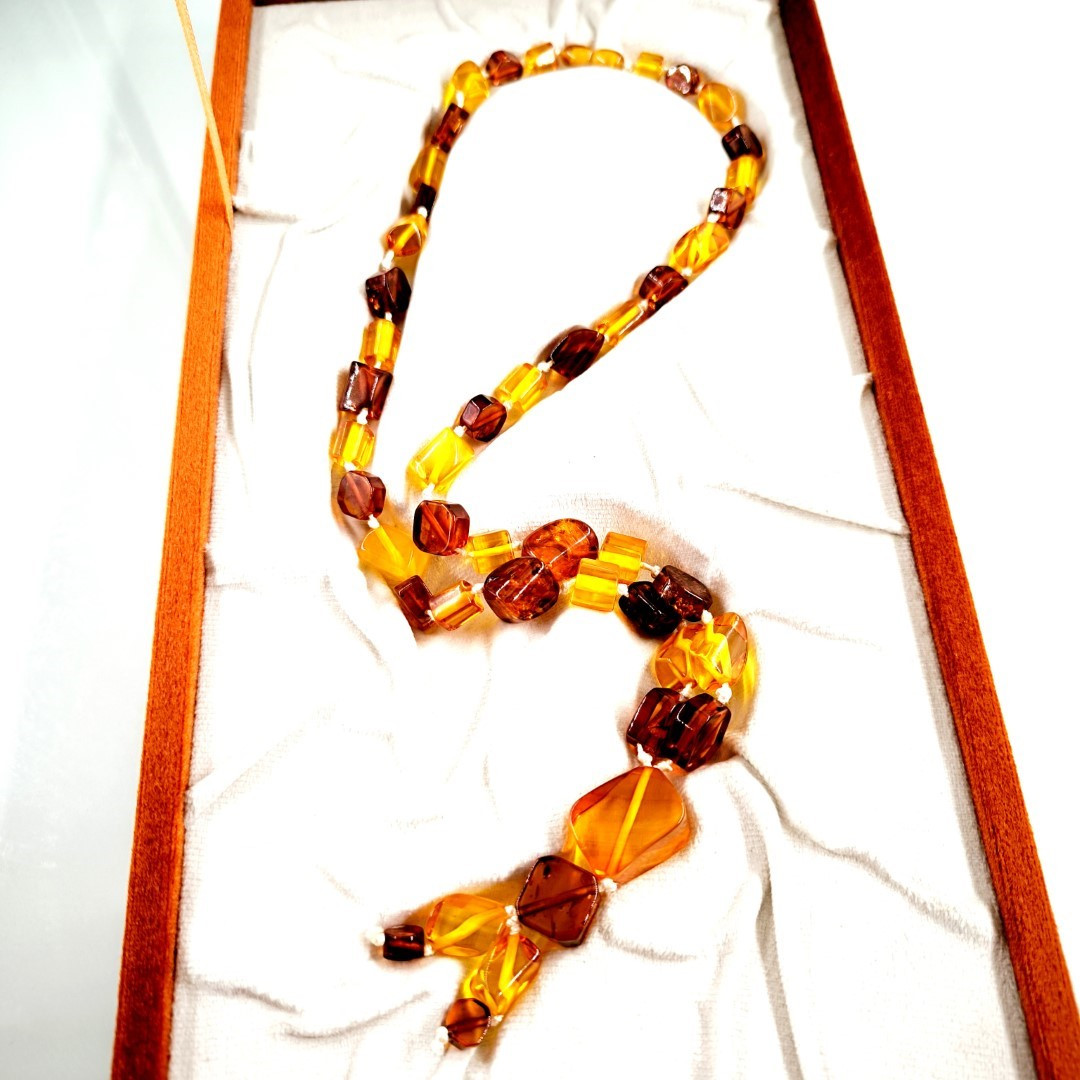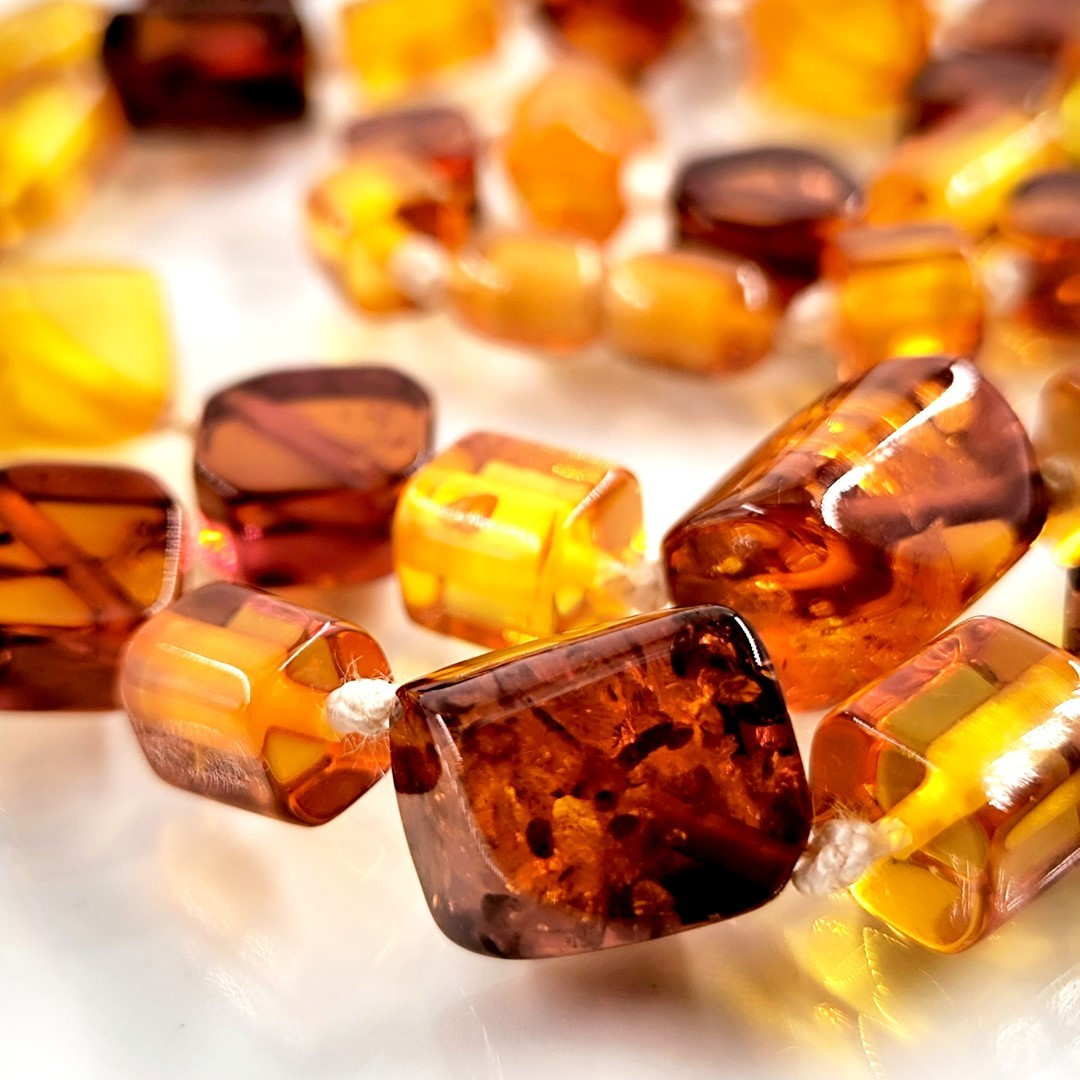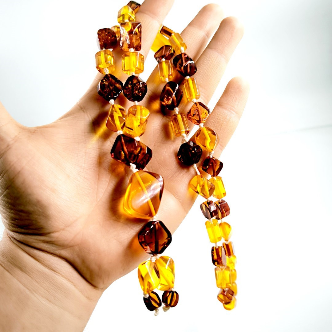 Kehribarda gerçek anlamda uç nokta! Adeta bir film şeridi gibi izlenir cinsten.. 1950-60'li yıllara ait Muhteşem bir Antika Mücevher! Yekpare kehribar kayalardan yapılma komple özel küp kesim natürel Damla Kehribar Gerdanlığımız! Mücevherimizin her noksanı dönemin kıymetli ustaları tarafından el işçiliği ile üretilmiştir. Ayrıca bu gerdanlığımıza özel gömme, işçilikli kadife tasarım kutumuz ile taçlandırdık.!!