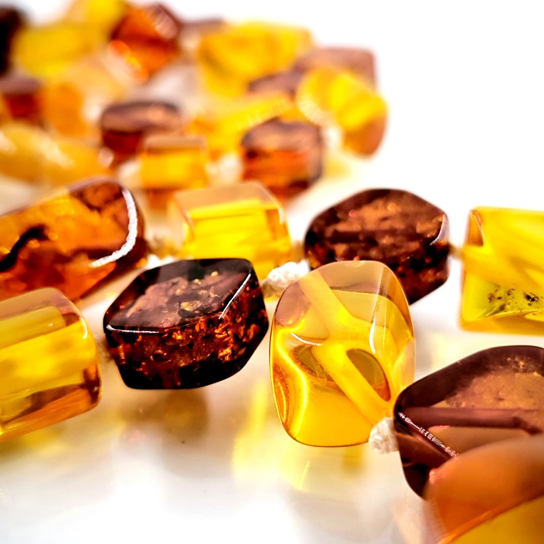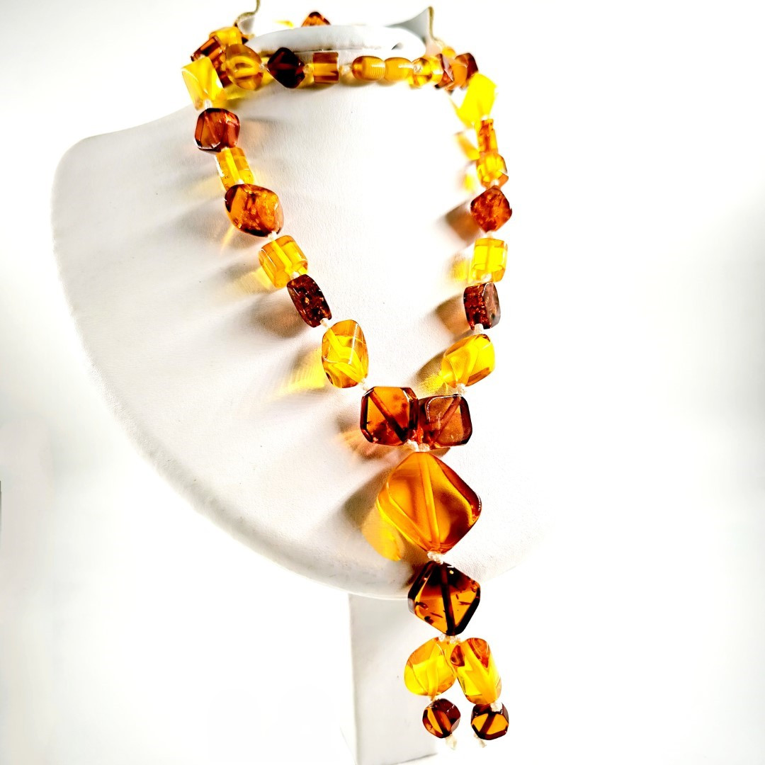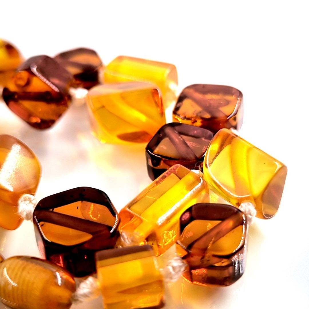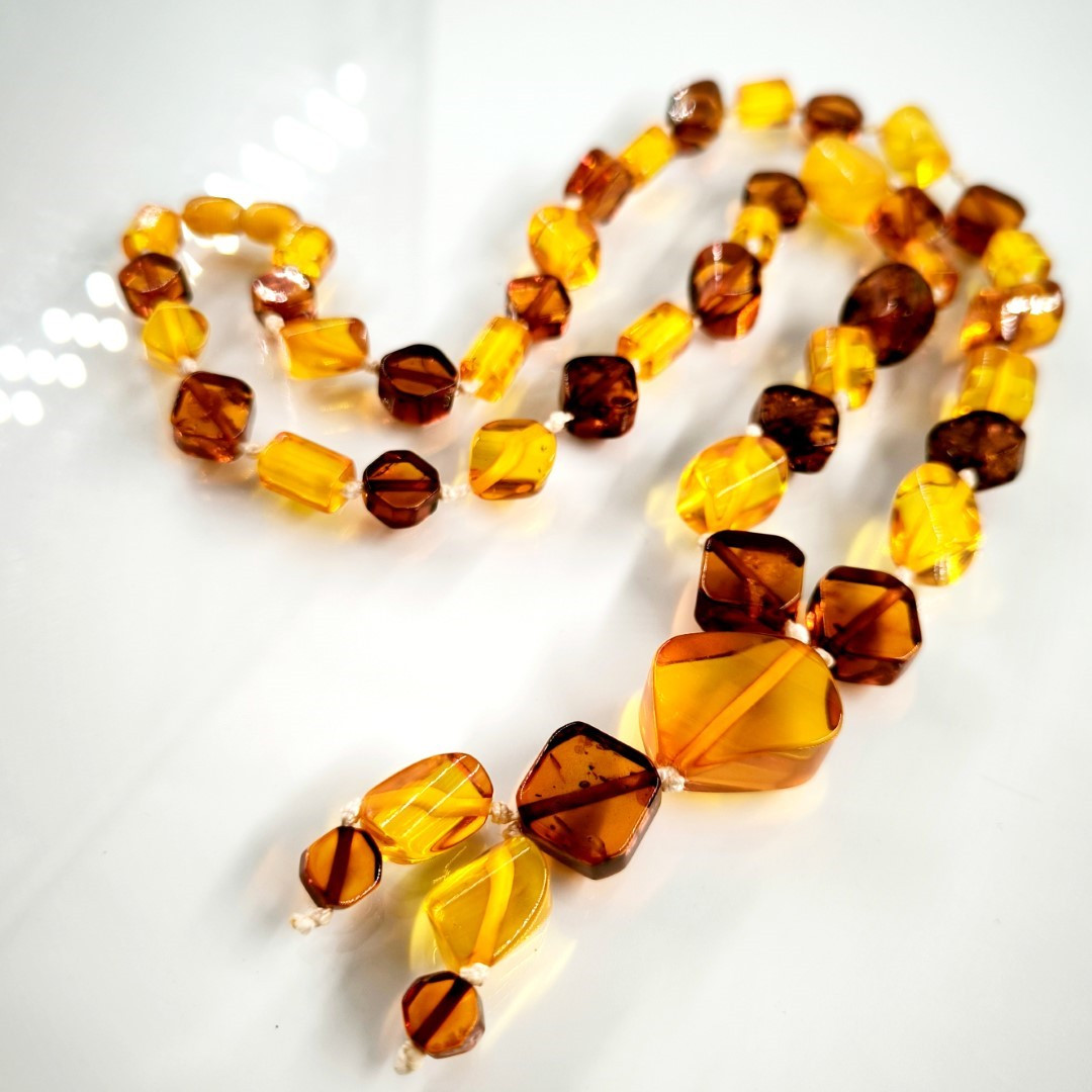 Kehribarda gerçek anlamda uç nokta! Adeta bir film şeridi gibi izlenir cinsten.. 1950-60'li yıllara ait Muhteşem bir Antika Mücevher! Yekpare kehribar kayalardan yapılma komple özel küp kesim natürel Damla Kehribar Gerdanlığımız! Mücevherimizin her noksanı dönemin kıymetli ustaları tarafından el işçiliği ile üretilmiştir. Ayrıca bu gerdanlığımıza özel gömme, işçilikli kadife tasarım kutumuz ile taçlandırdık.!!