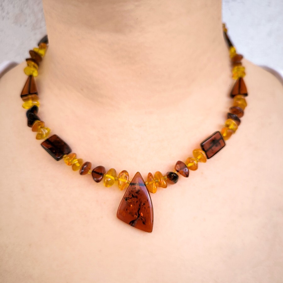 ANTİKA NATÜREL FOSİLLİ DAMLA KEHRİBAR GERDANLIK