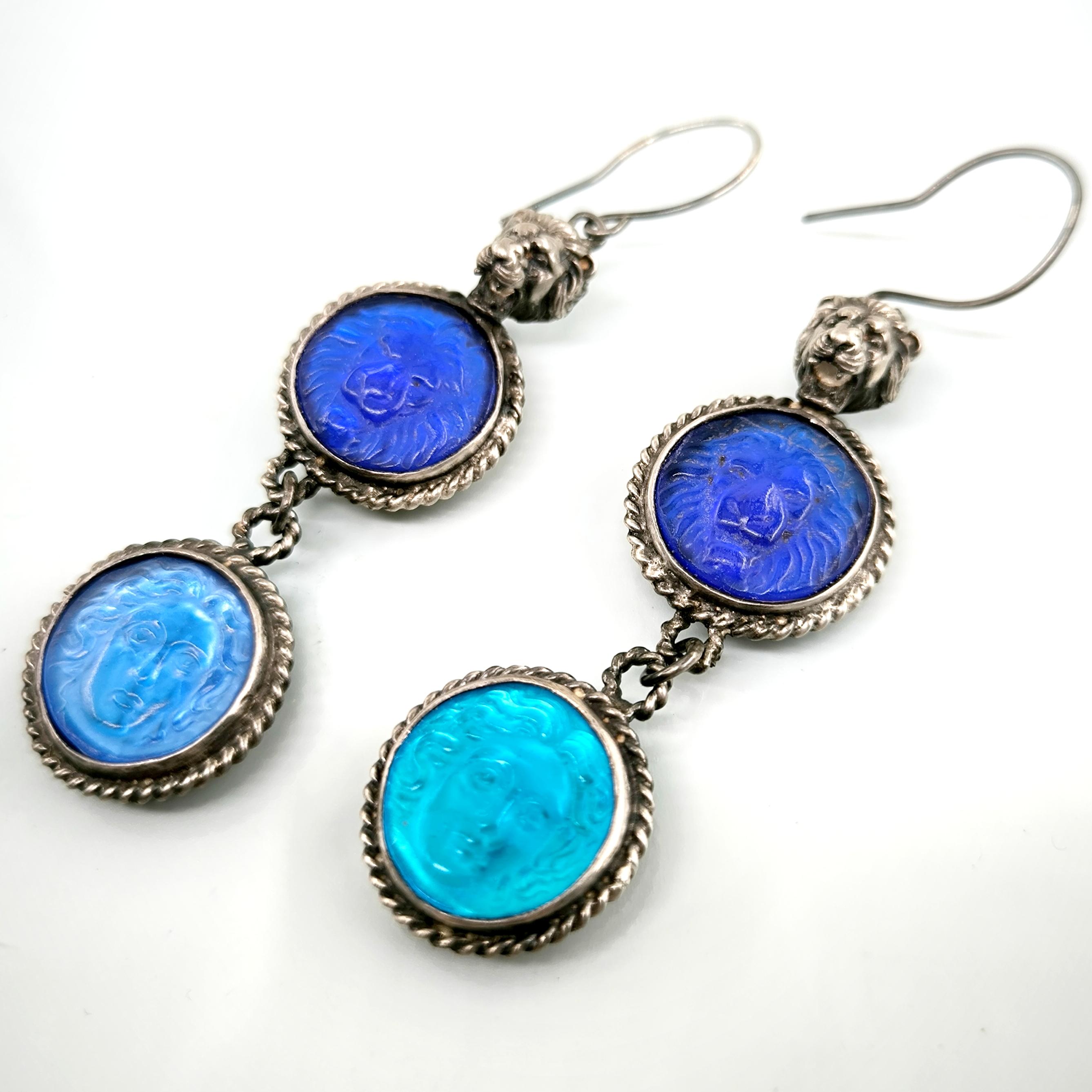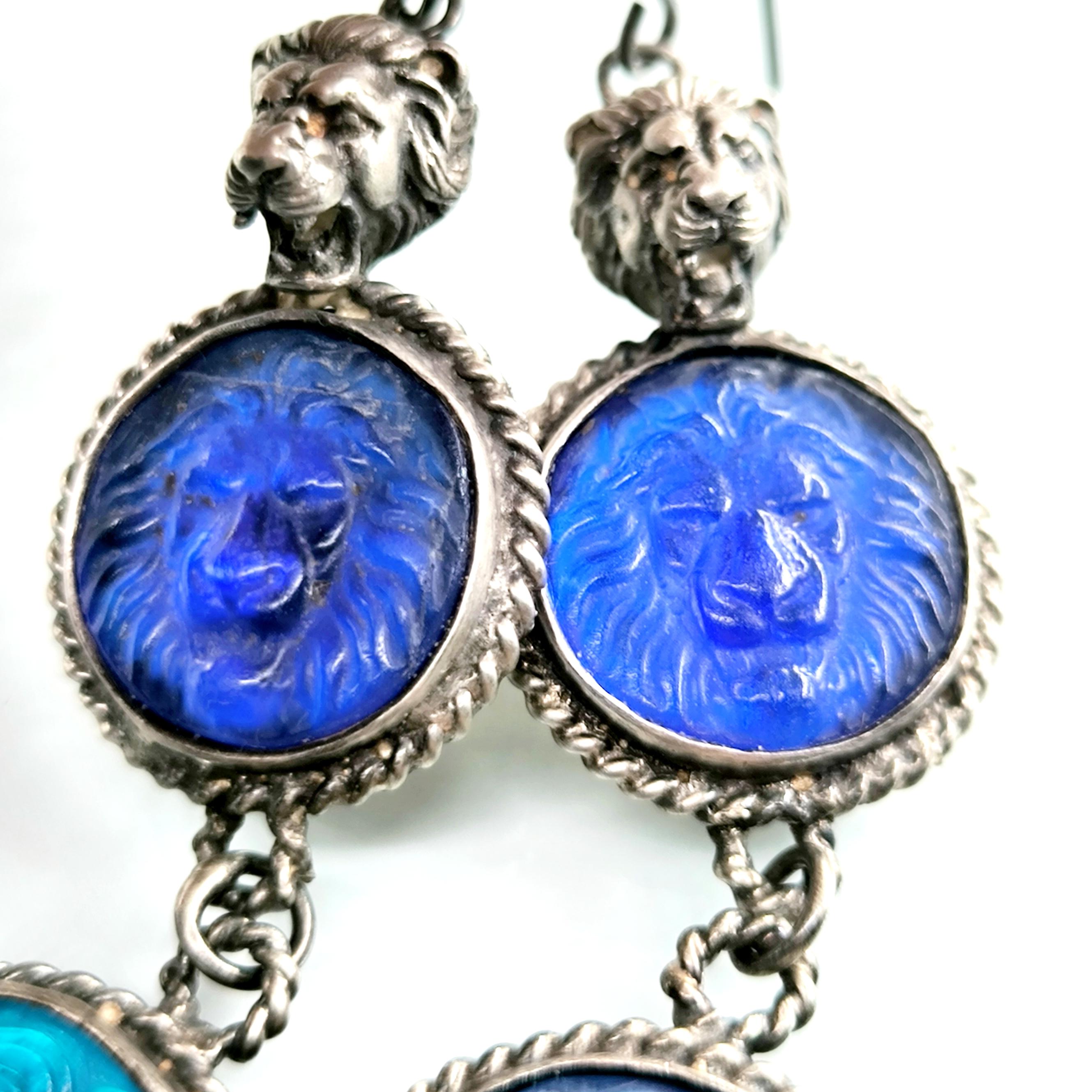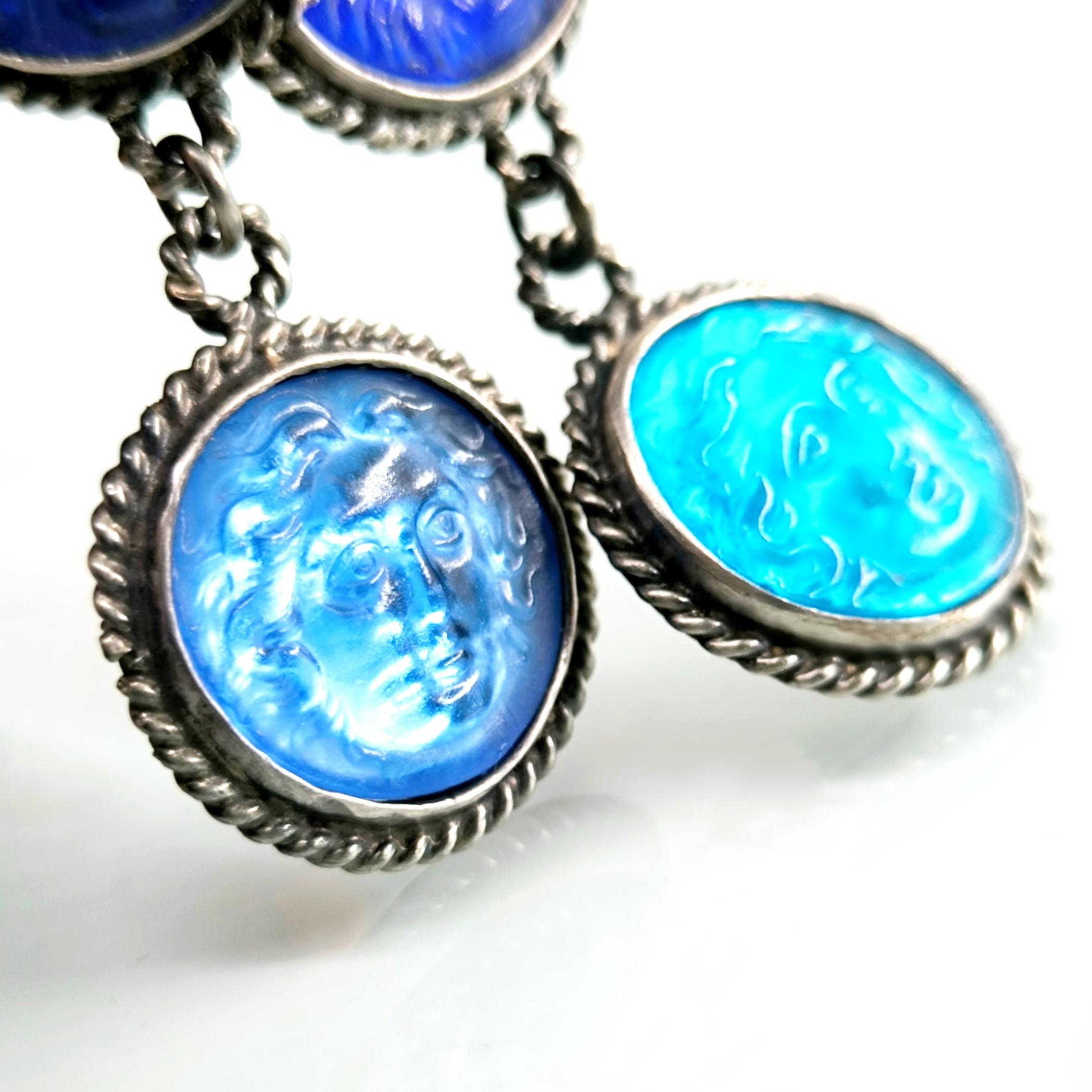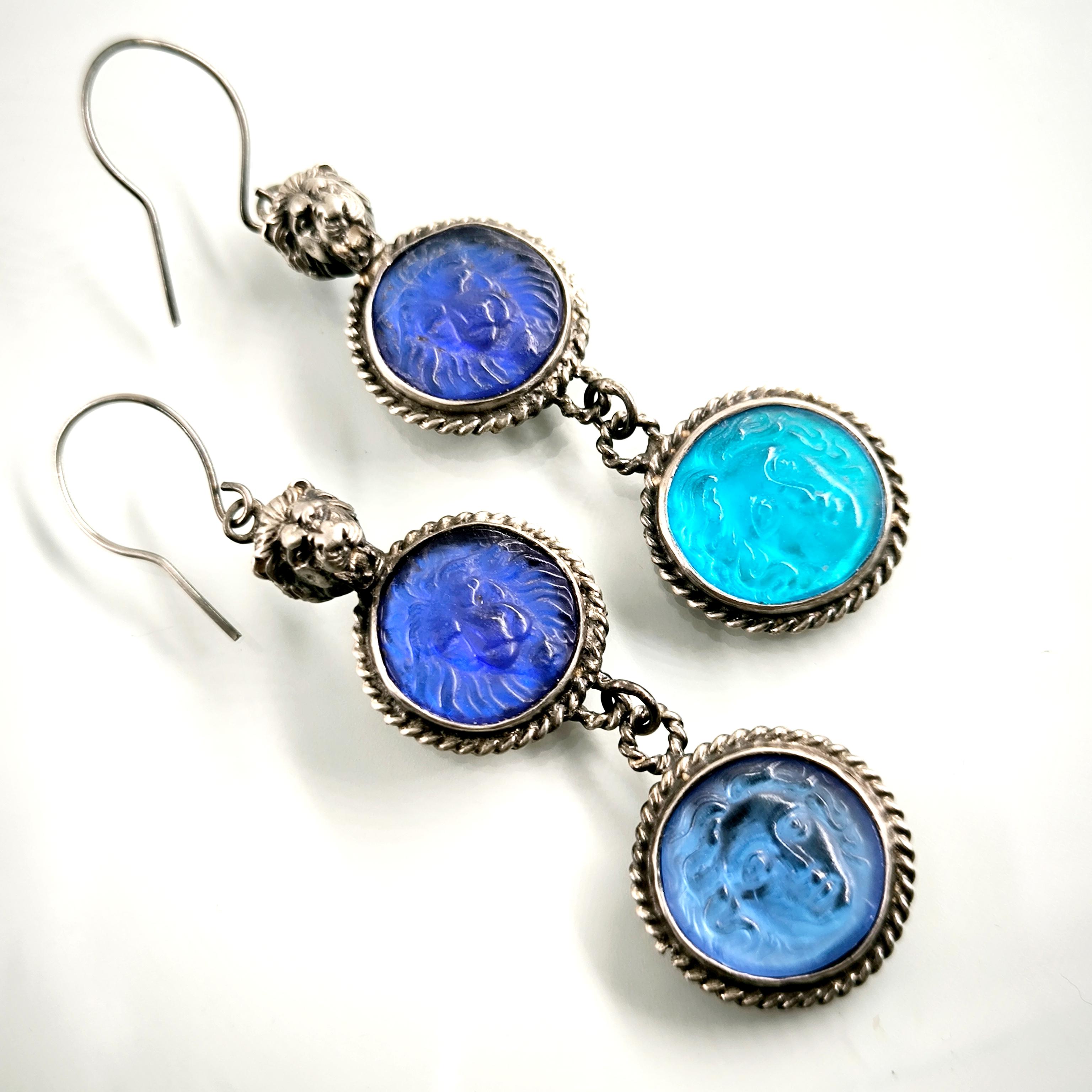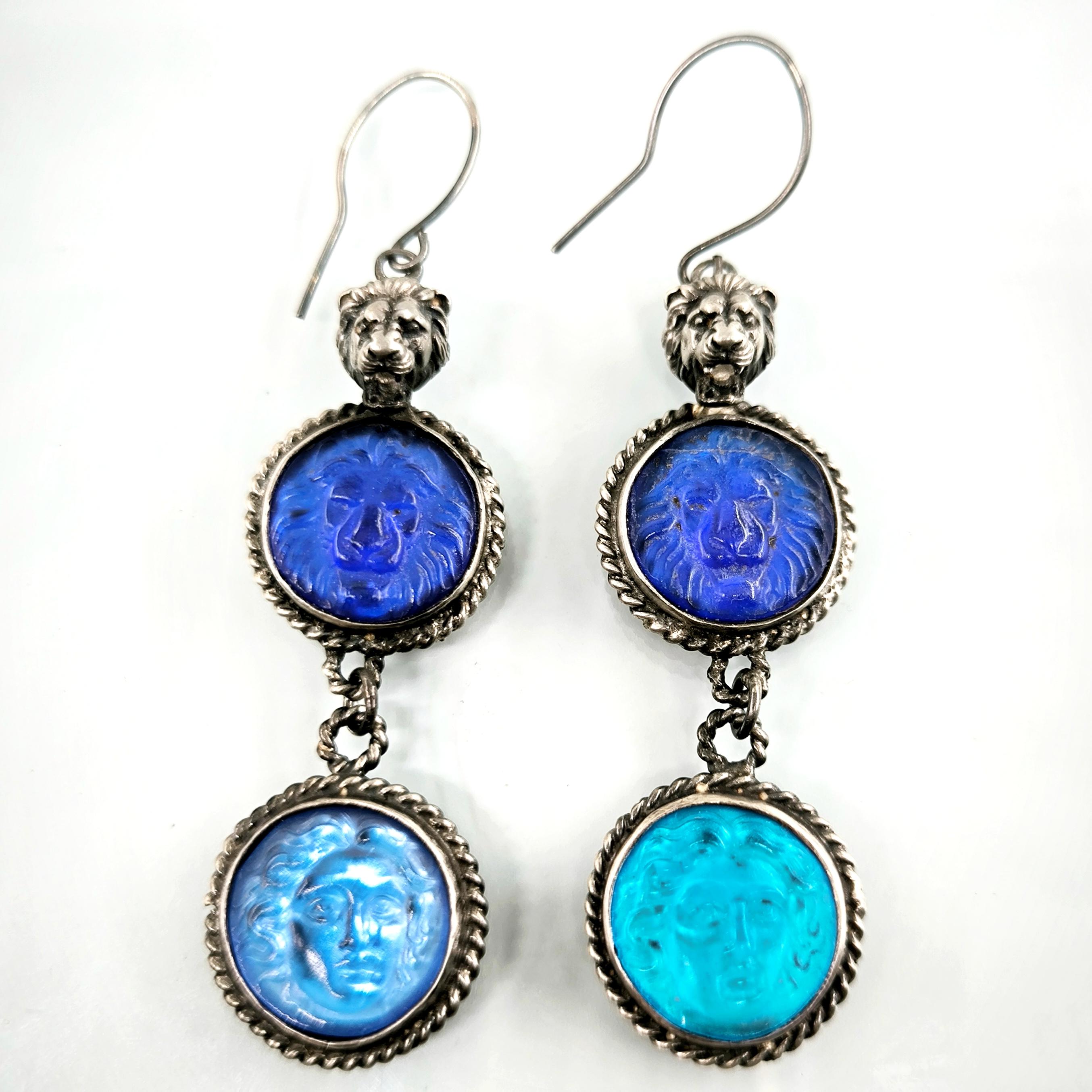 Bu küpeleri tasarlarken antik dünyanın gücünü ve simgelerini tek bir kompozisyonda buluşturmak istedim. Tamamı 925 ayar gümüşten hazırlanan tasarımın en üstünde yer alan hırçın aslan figürü, cesaretin ve otoritenin kadim sembolü olarak parçaya güçlü bir karakter kazandırır. Altında yer alan lacivert cam taş üzerindeki aslan kabartması bu temayı devam ettirirken, en alttaki açık mavi cam taş üzerinde bulunan Rodos sikkesi kabartması tasarıma tarihsel bir derinlik katar. Antik sikkelerden ilham alan bu kompozisyon, ışıkla birlikte canlılık kazanan cam tonları sayesinde dikkat çekici bir görsellik sunar. Her hareketle hafifçe salınan bu küpeler, geçmişin sembollerini modern bir sanat yorumuyla buluşturan karakter sahibi bir mücevherdir. Koleksiyon değeri taşıyan, güçlü ve özgün bir tasarım.