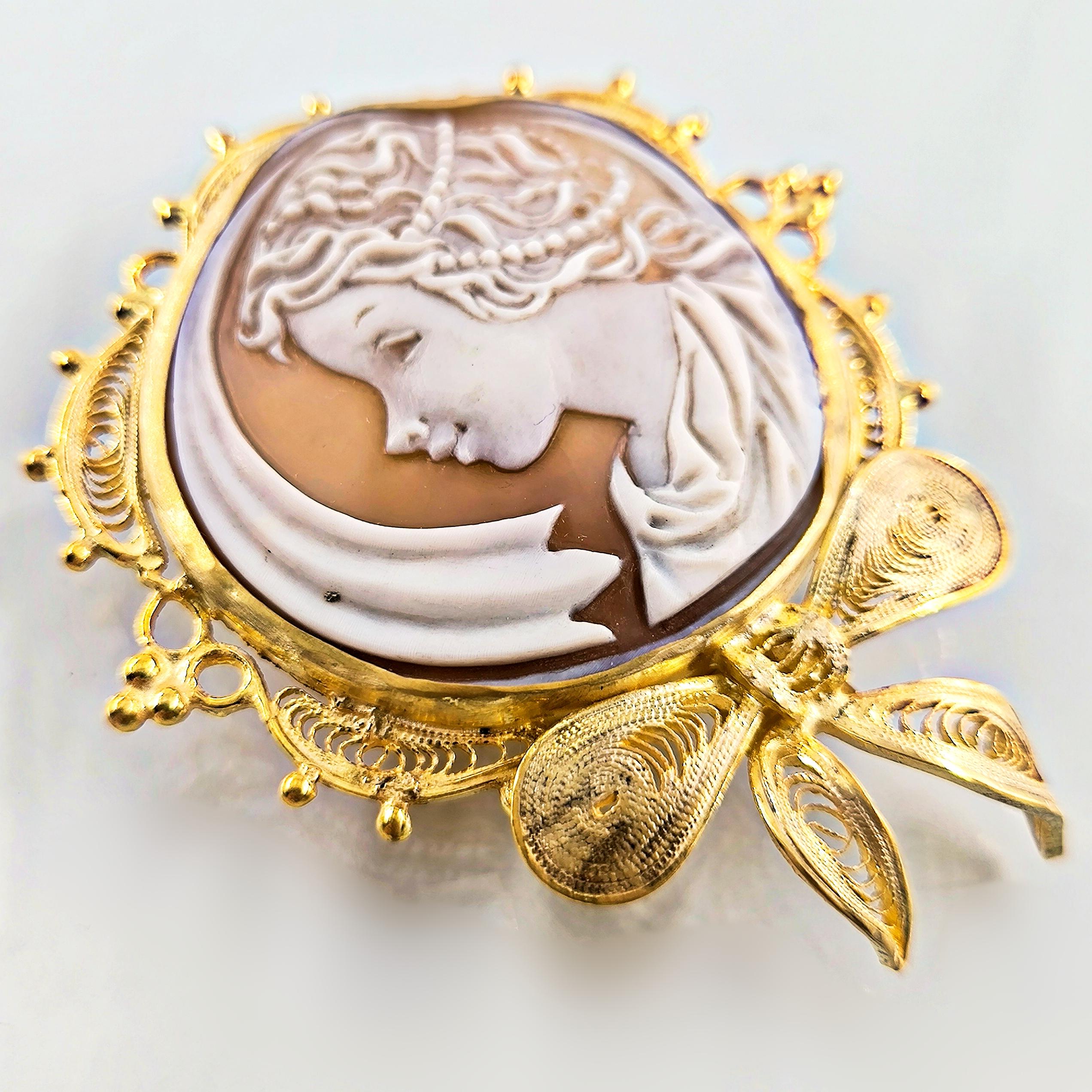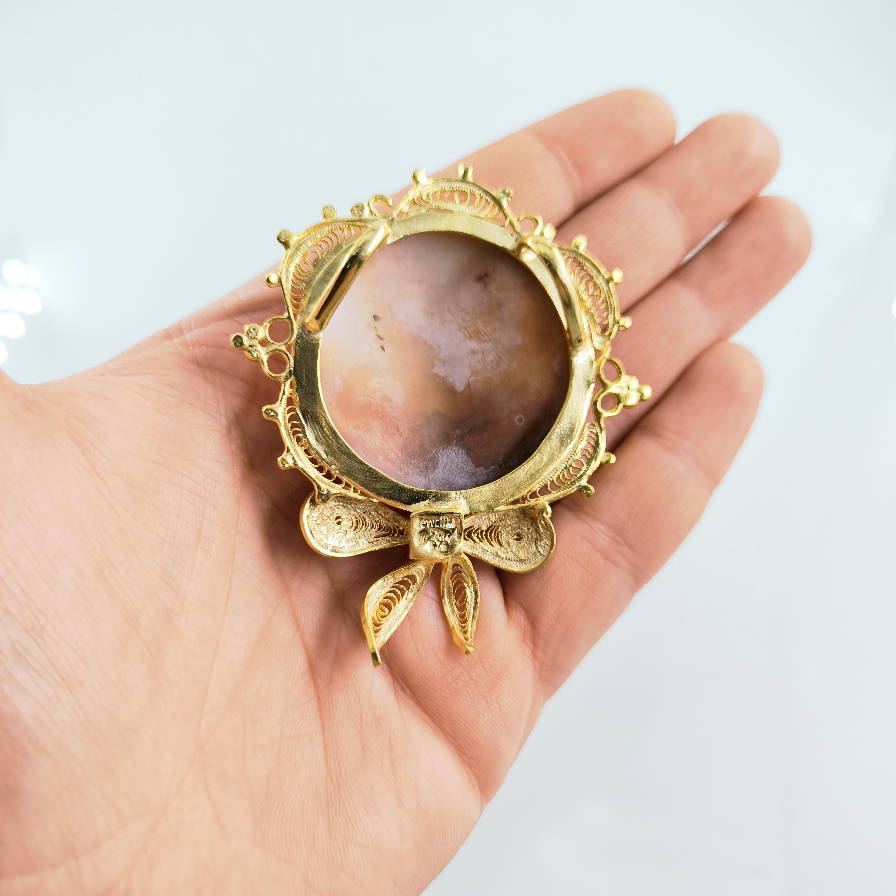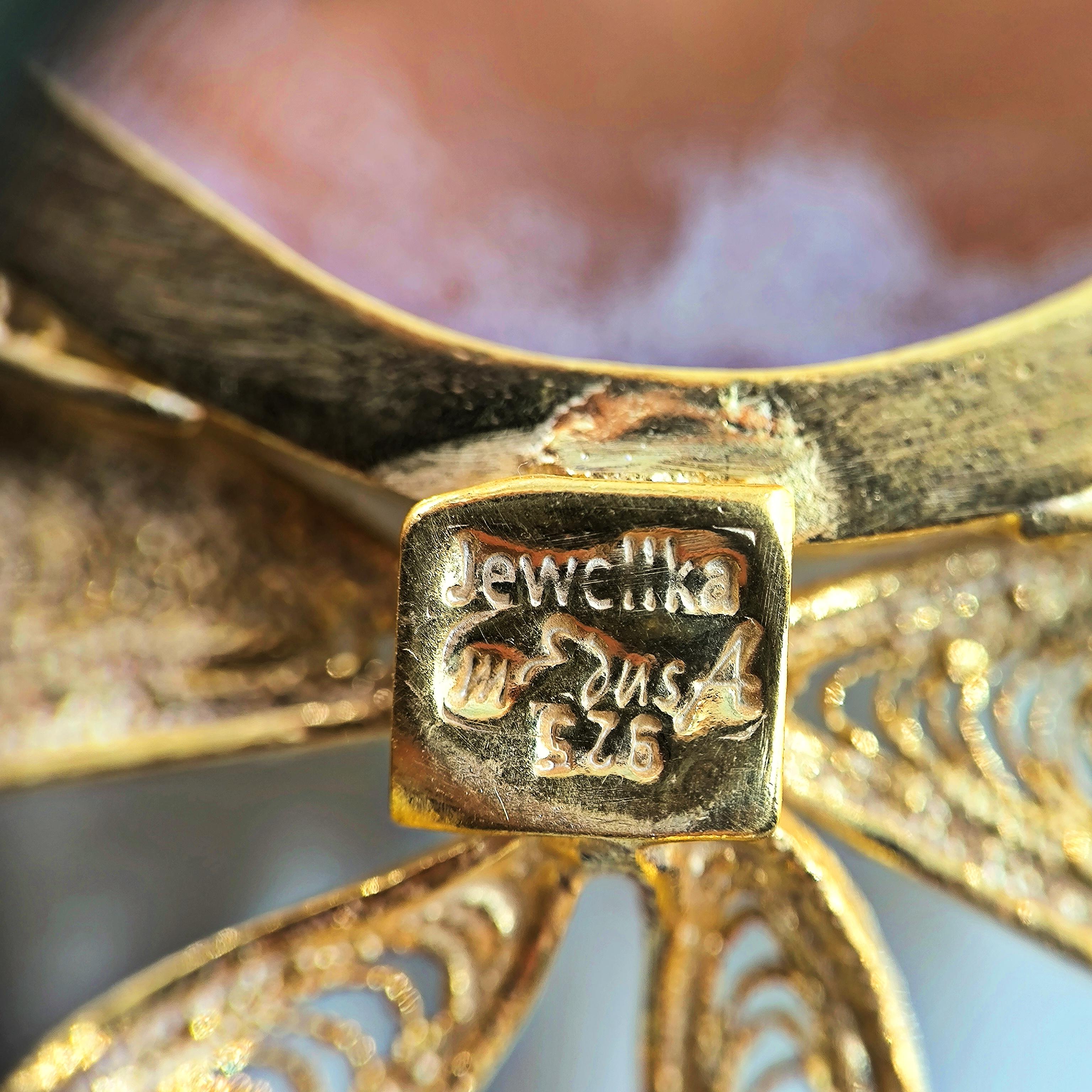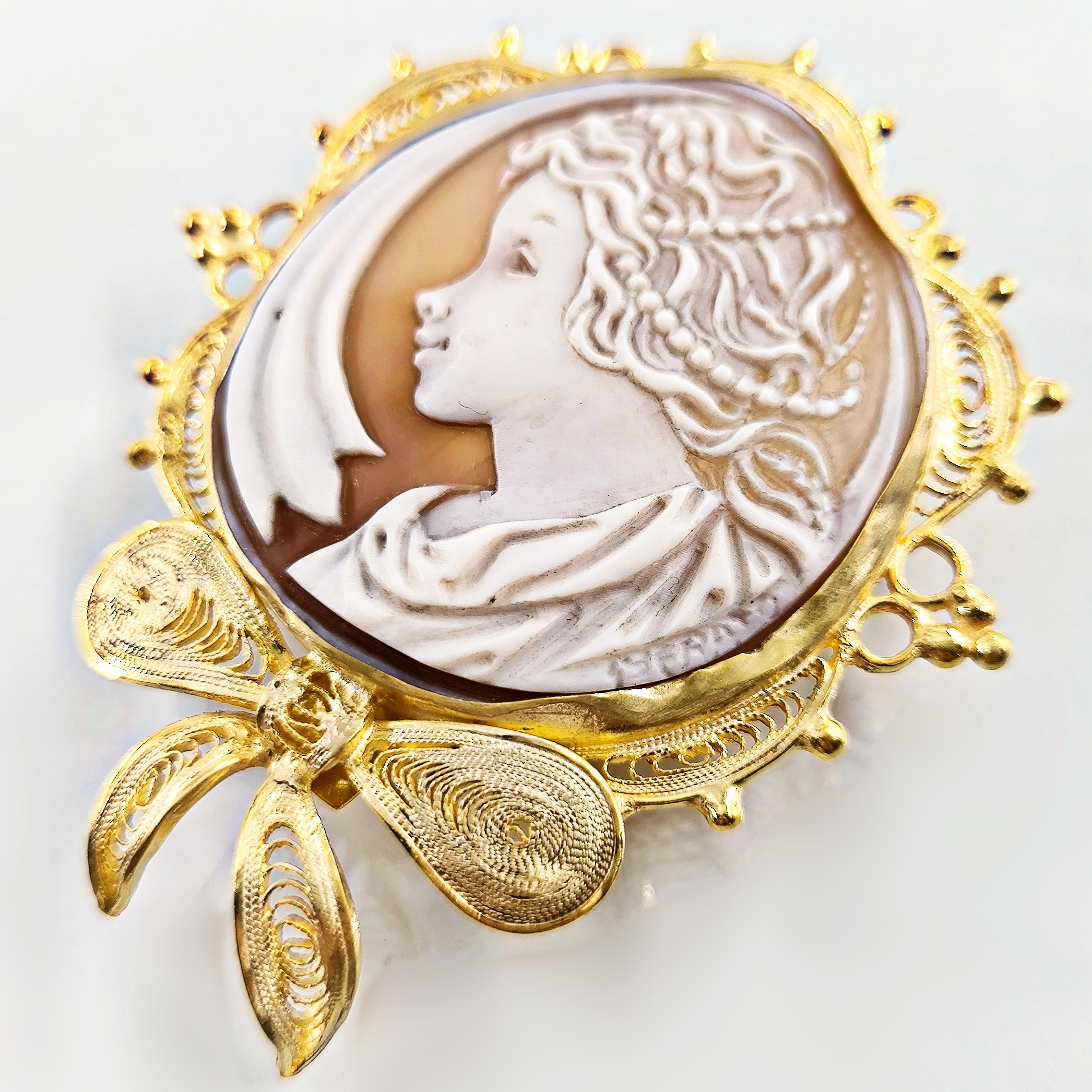 1990’lar yapımı bu imzalı cameo, ay siluetiyle bütünleşen bakışları ve inci gibi işlenmiş saç detaylarıyla büyülüyor.