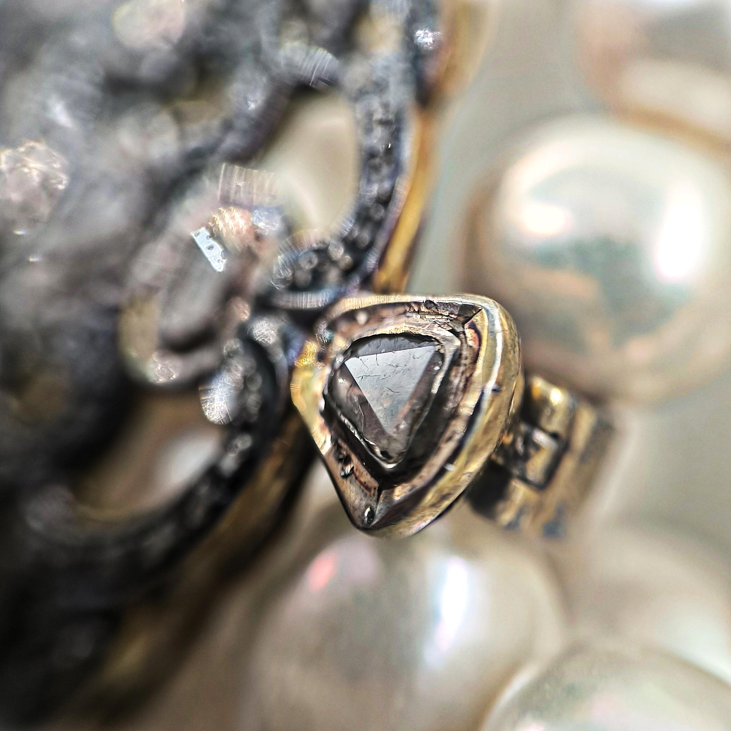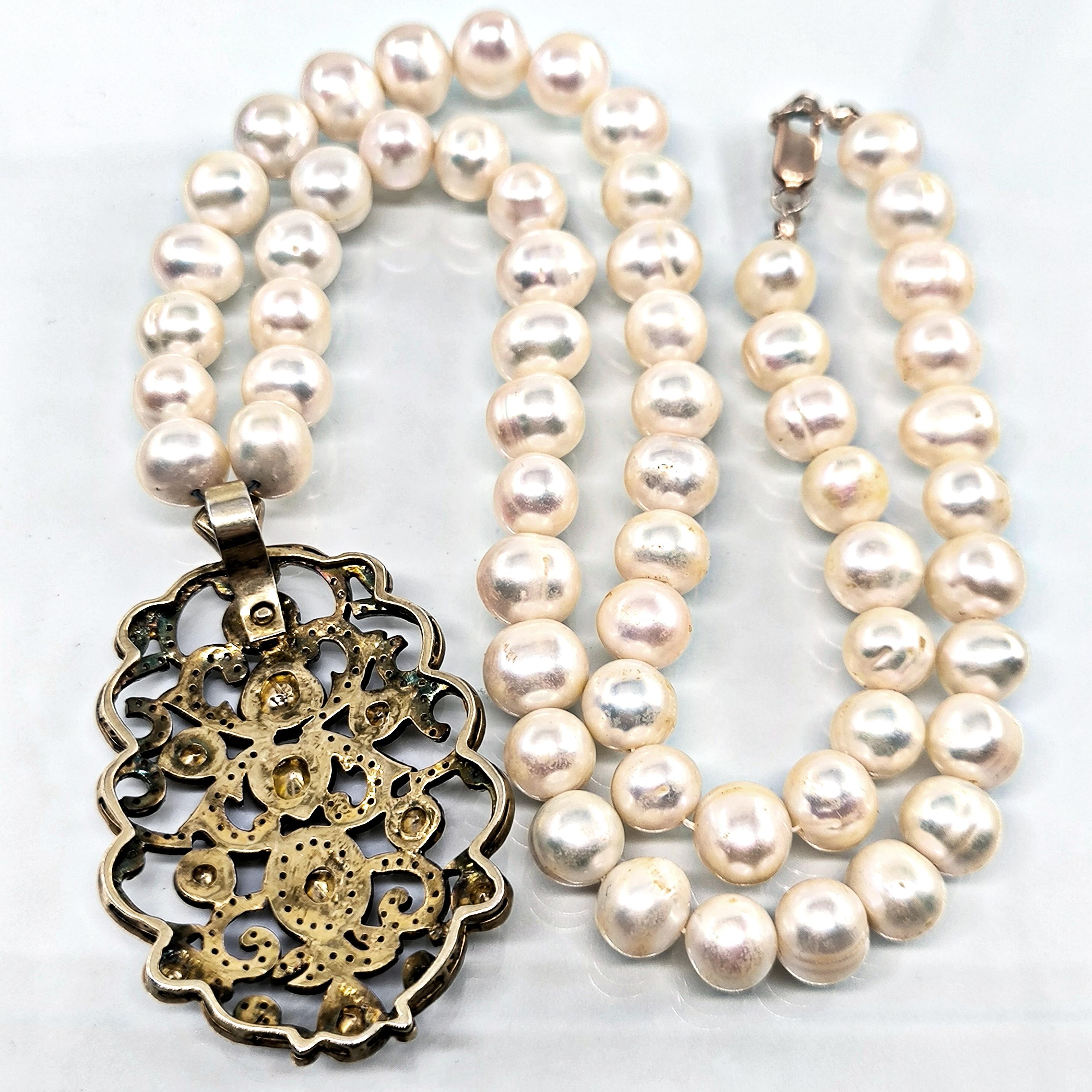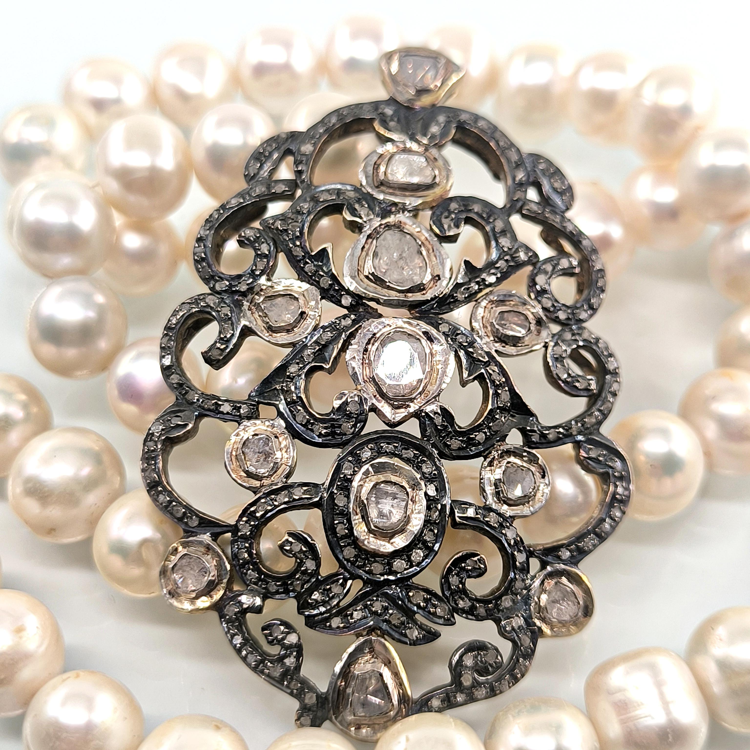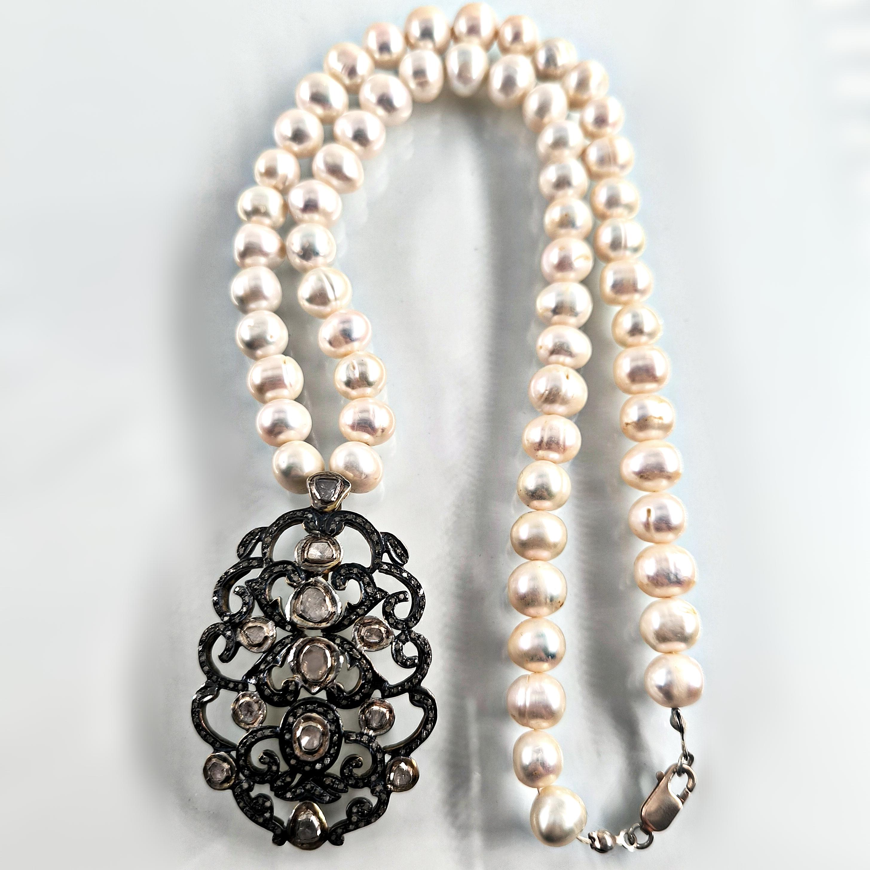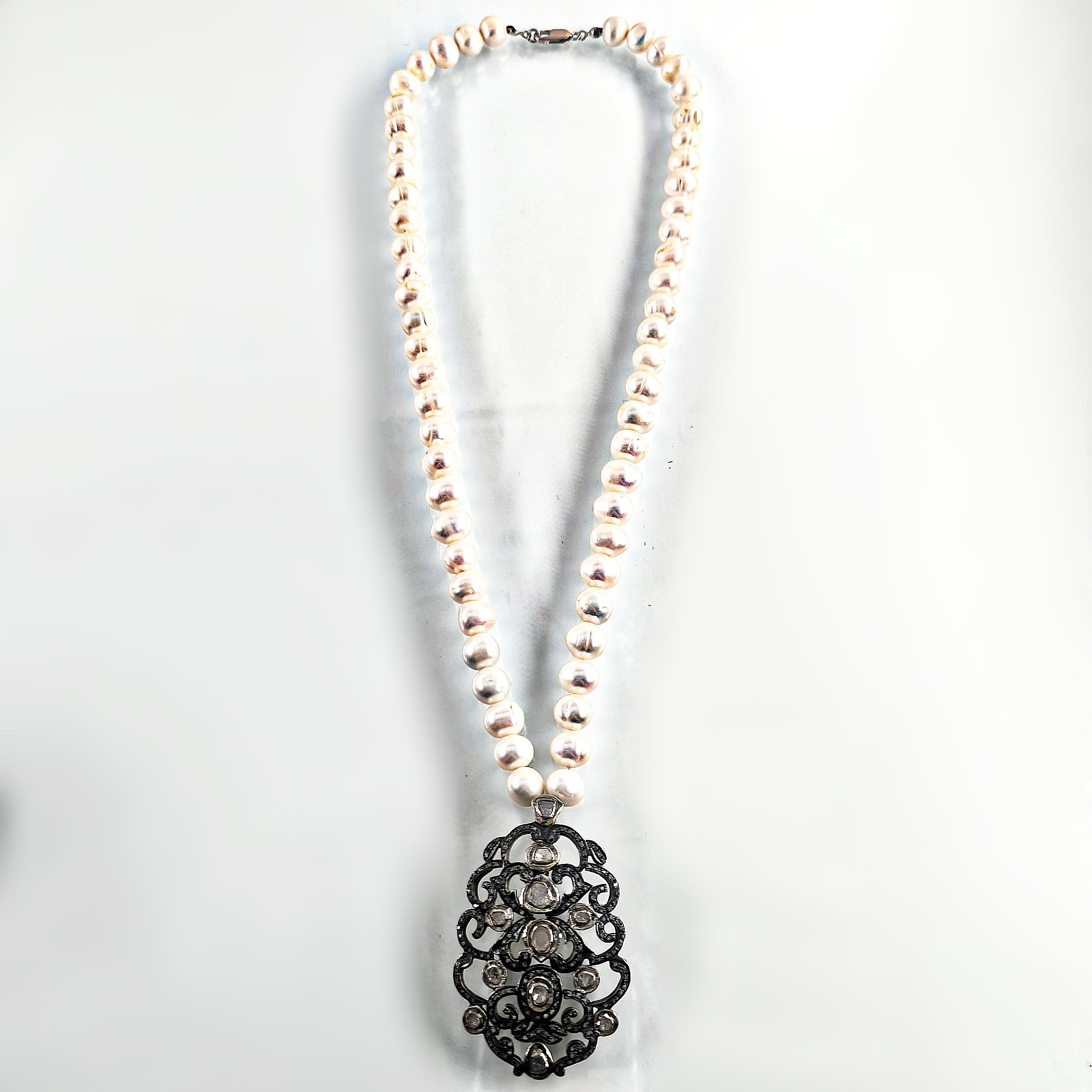 Bu tasarımda zarafetin en saf halini doğanın armağanı olan iri natürel incilerle buluşturdum. İnci tanelerinin yumuşak ışıltısı, zamanın içinden gelen bir asalet hissi taşırken kolye ucundaki Hint işçiliği adeta bir mücevher şiiri gibi karşımıza çıkar. 925 ayar gümüş üzerine işlenmiş ince motifler, iri elmaslar ve etrafa serpiştirilmiş minik elmas kırıntılarıyla büyüleyici bir ışık oyunu oluşturur. Her açıdan farklı bir parıltı veren bu kolye, kadim saray mücevherlerinin ruhunu taşıyan nadide bir parçadır. Boyunda taşındığında yalnızca bir takı değil, zarafetin ve ihtişamın sessiz bir imzası olur. Üzerinde gördüğünüz her taş natürel elmastır.