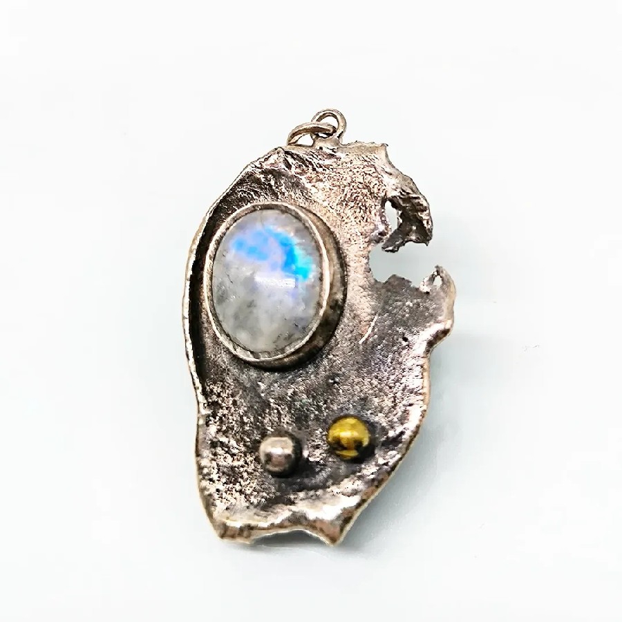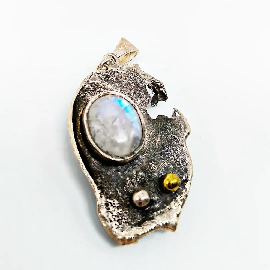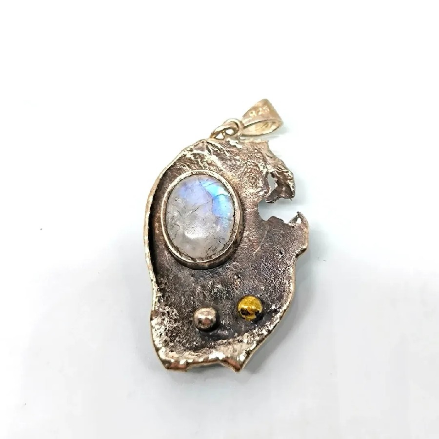 AY TAŞI TASARIM GÜMÜŞ KOLYE