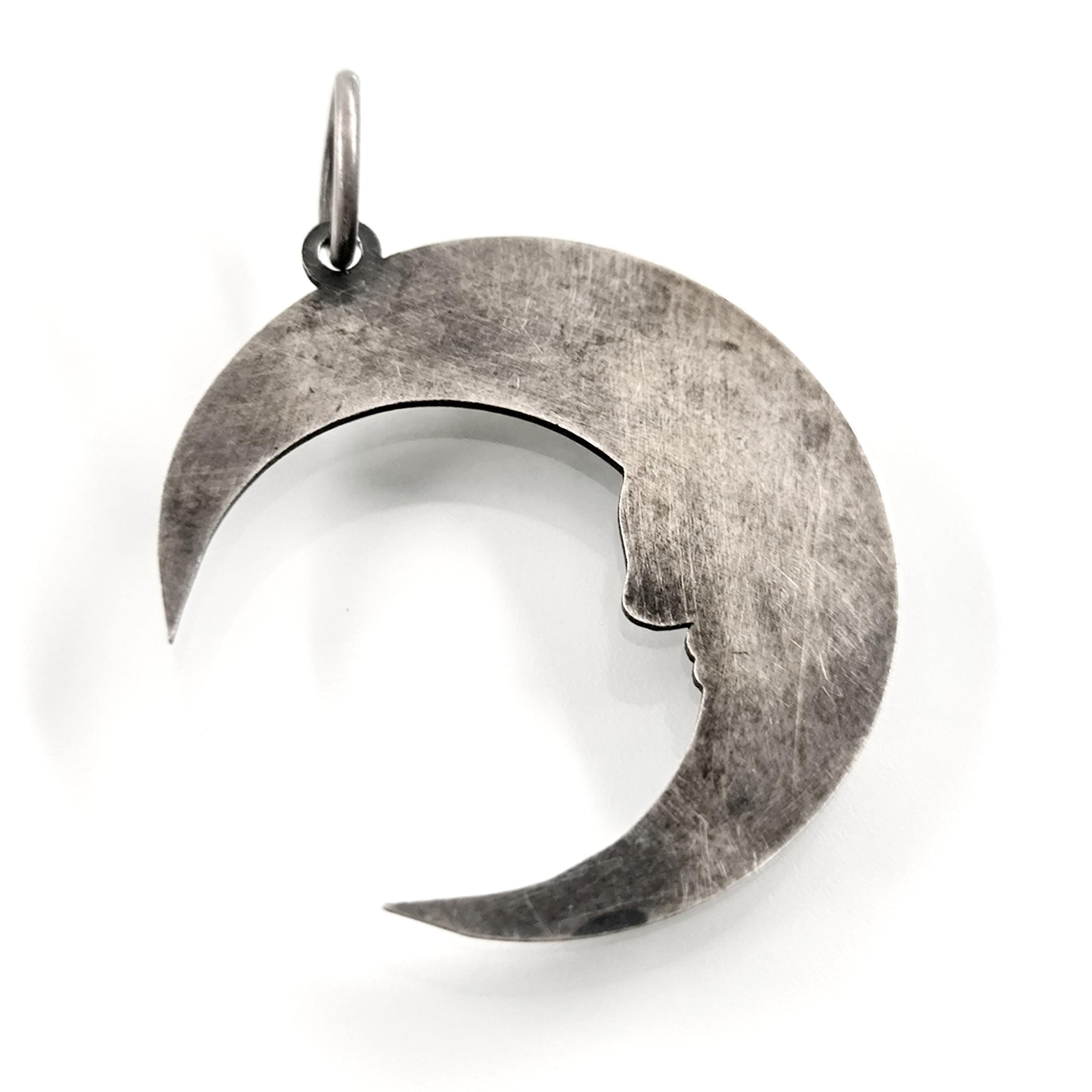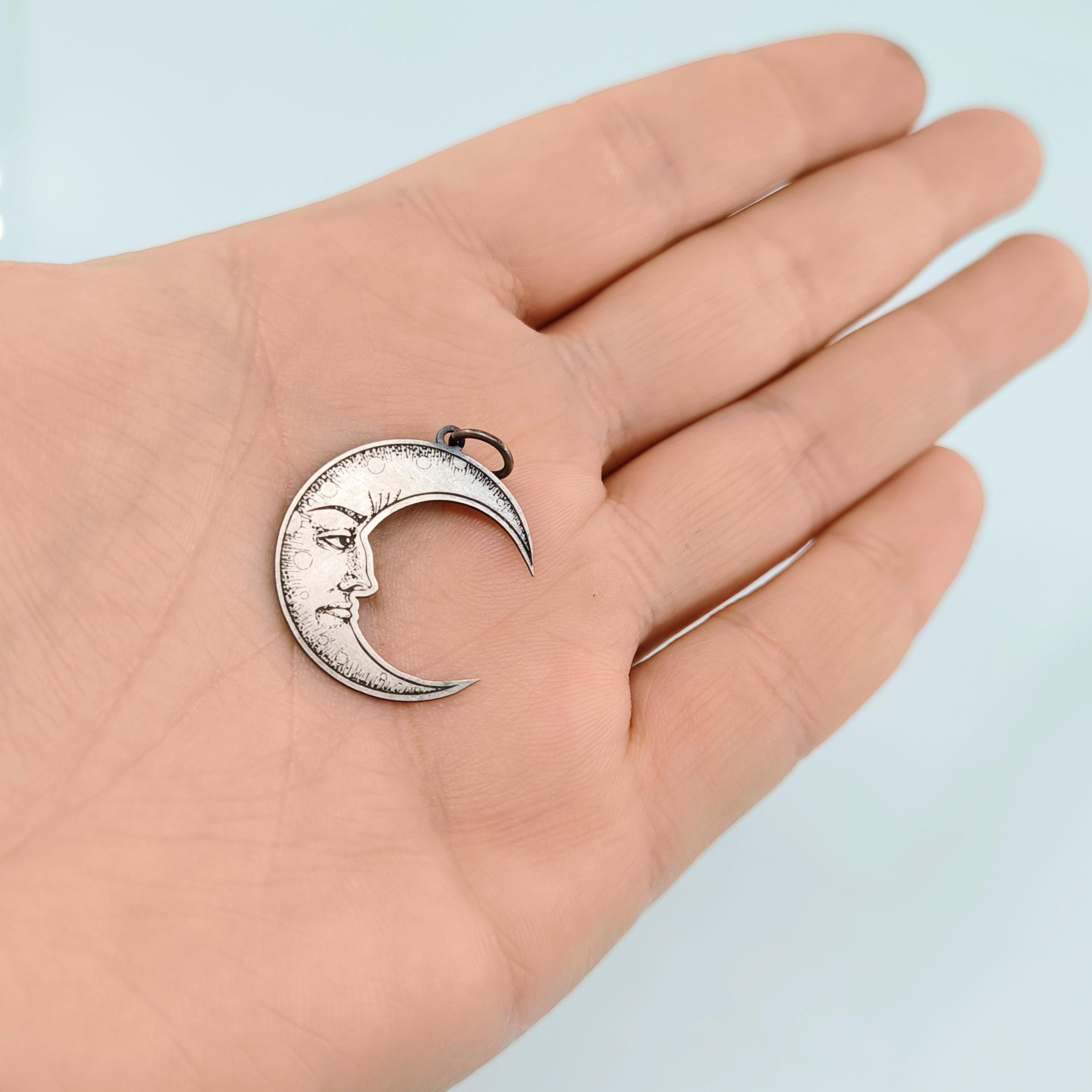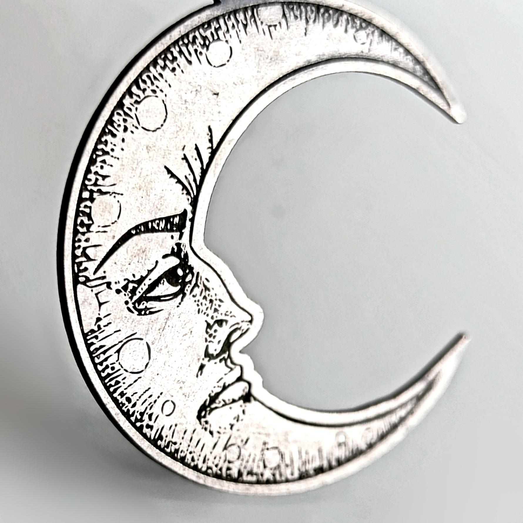 Gökyüzünün kadim sessizliğini taşıyan bu tasarımda, hilal formu içine insan yüzünün derin ifadesini lazer oyma teknolojisi ile işlediğimiz, 925 ayar gümüş yüzey üzerinde milimetrik çizgiler ve nokta detayları, ayın kraterli dokusunu ve ruhsal sembolizmini vurguluyor. Zamanın ötesinden gelen bu bakış; sezgi, rehberlik, koruyuculuk ve geceye hükmeden bilgelik anlamlarını taşır. Minimal ama etkileyici yapısı sayesinde hem gündelik stile hem de koleksiyon niteliği taşıyan özel kombinlere güçlü bir karakter katar. Modern zanaatkârlık ile mistik bir atmosferin kusursuz bileşimi.