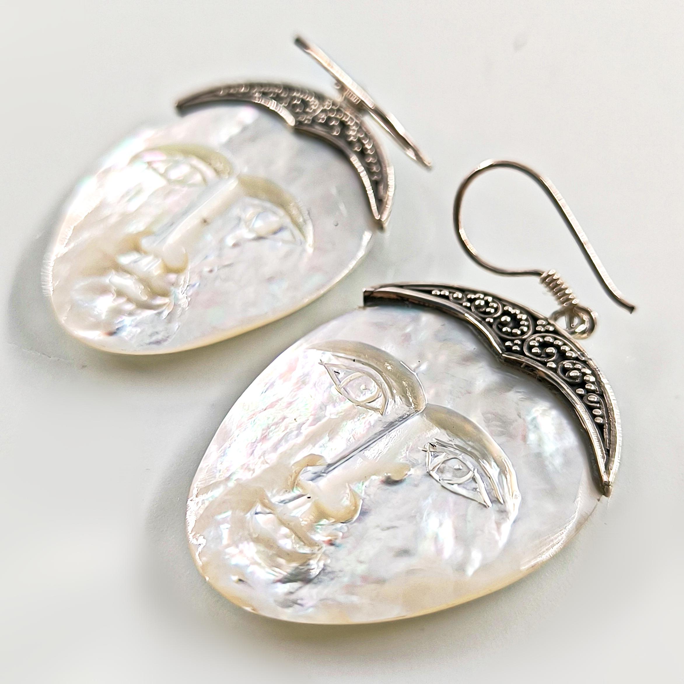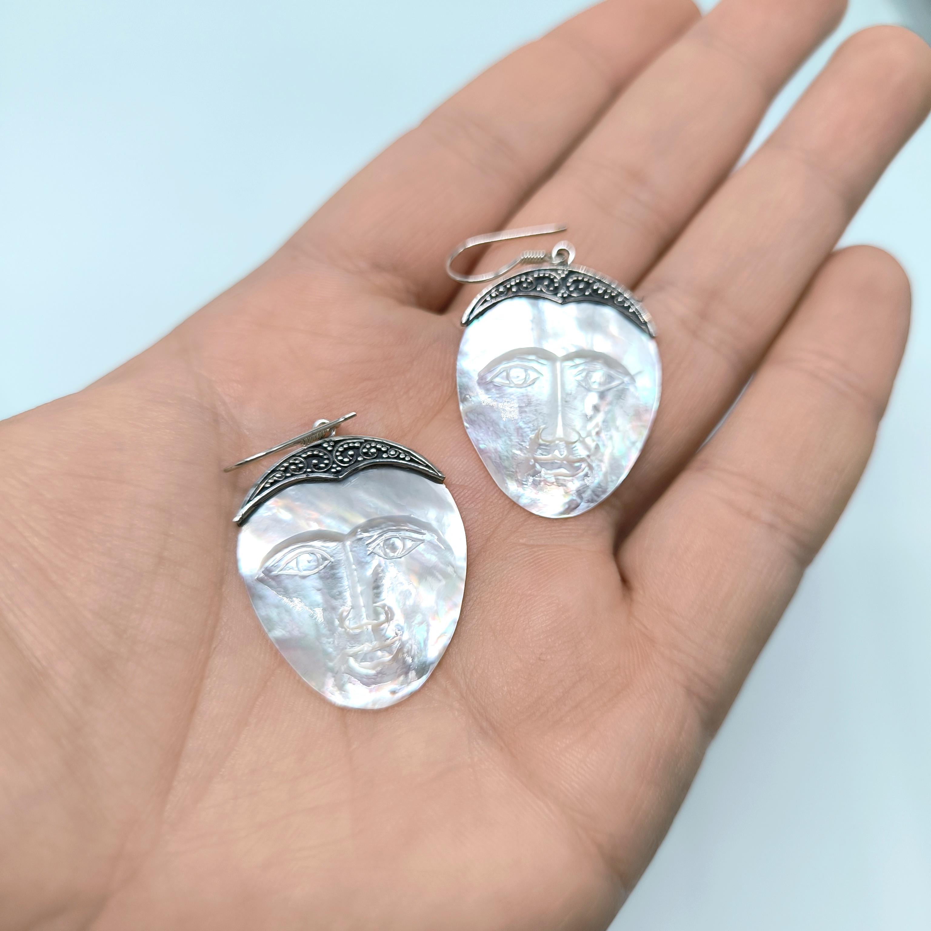 AYIN YÜZÜ – SEDEF ÜZERİNE OYMA MİSTİK KÜPE 🌝✨