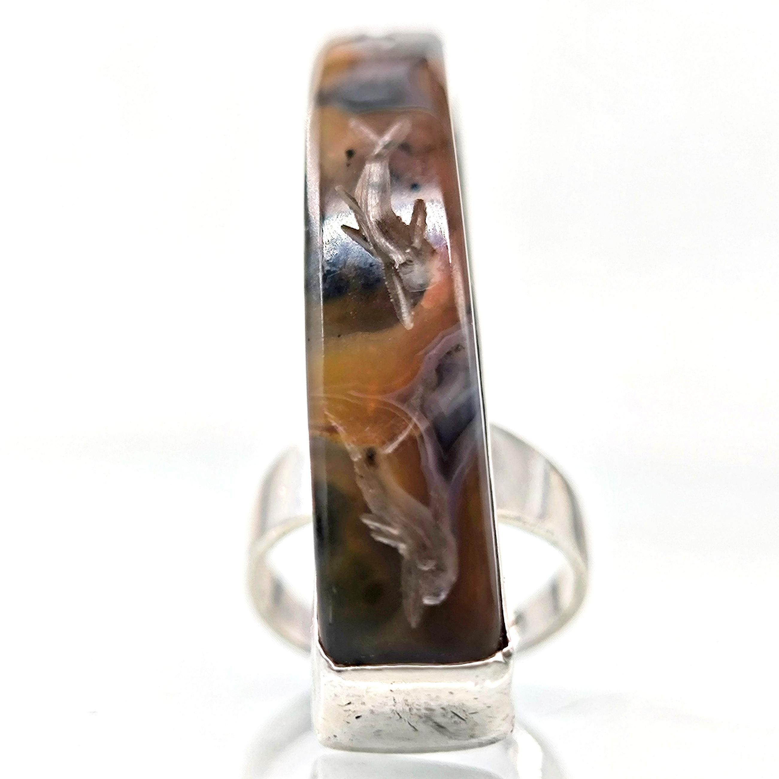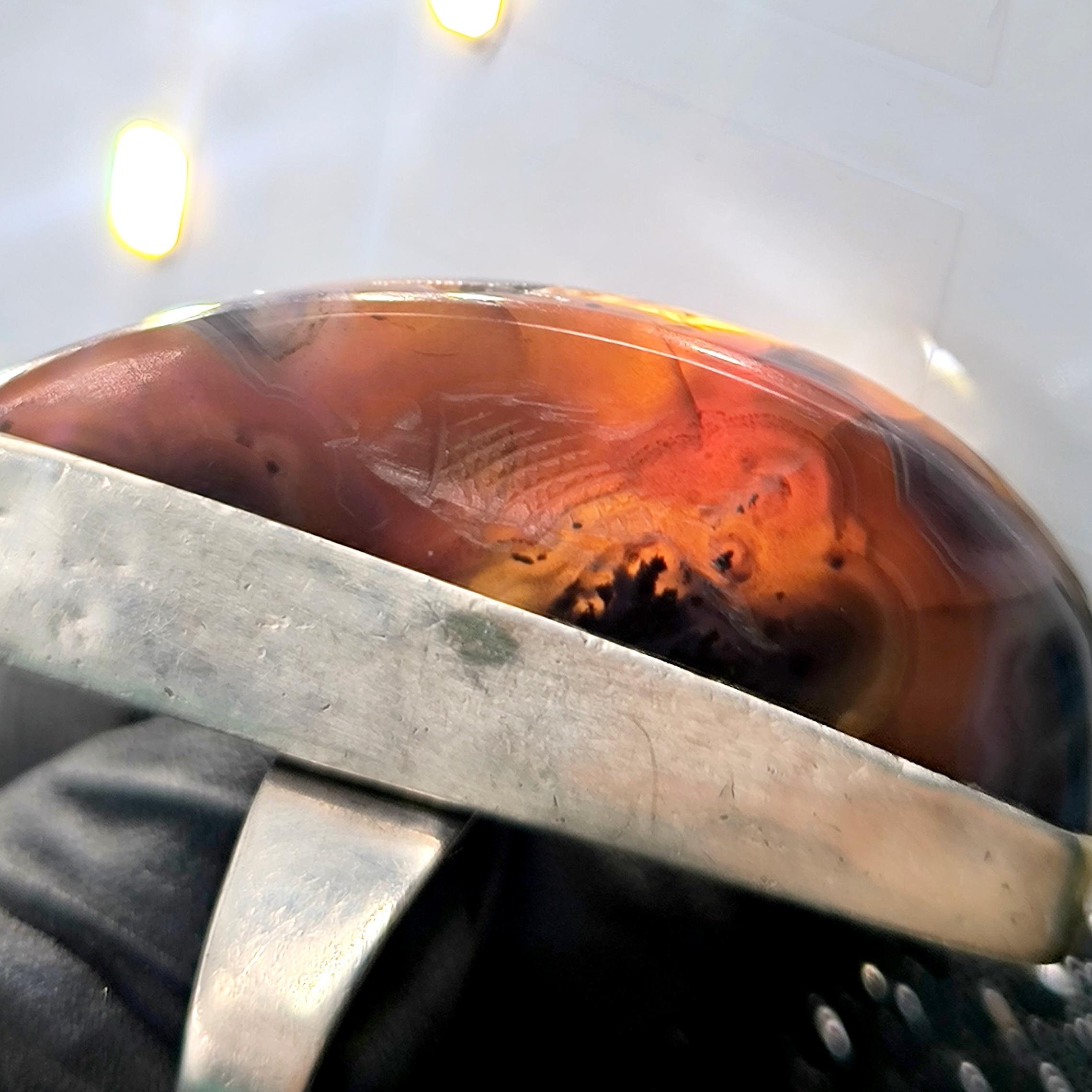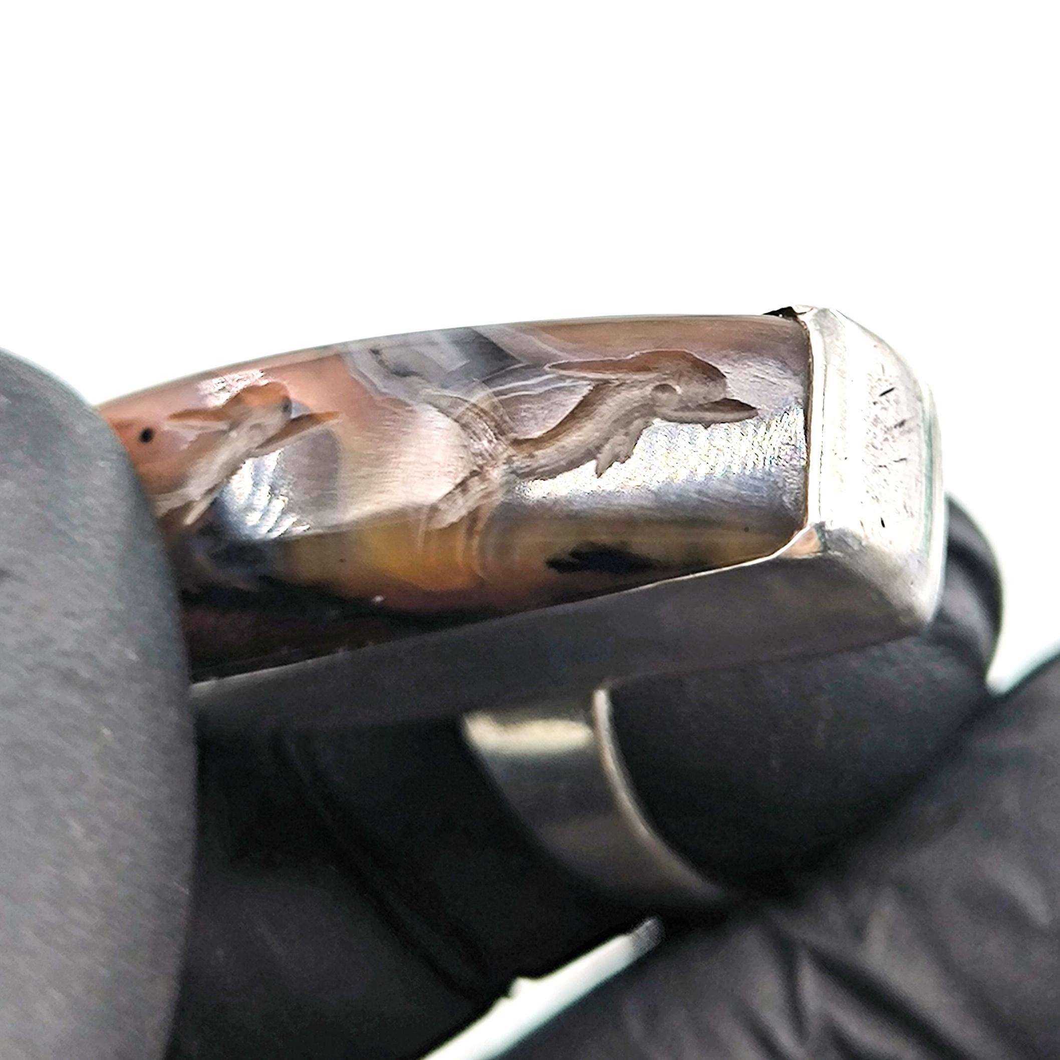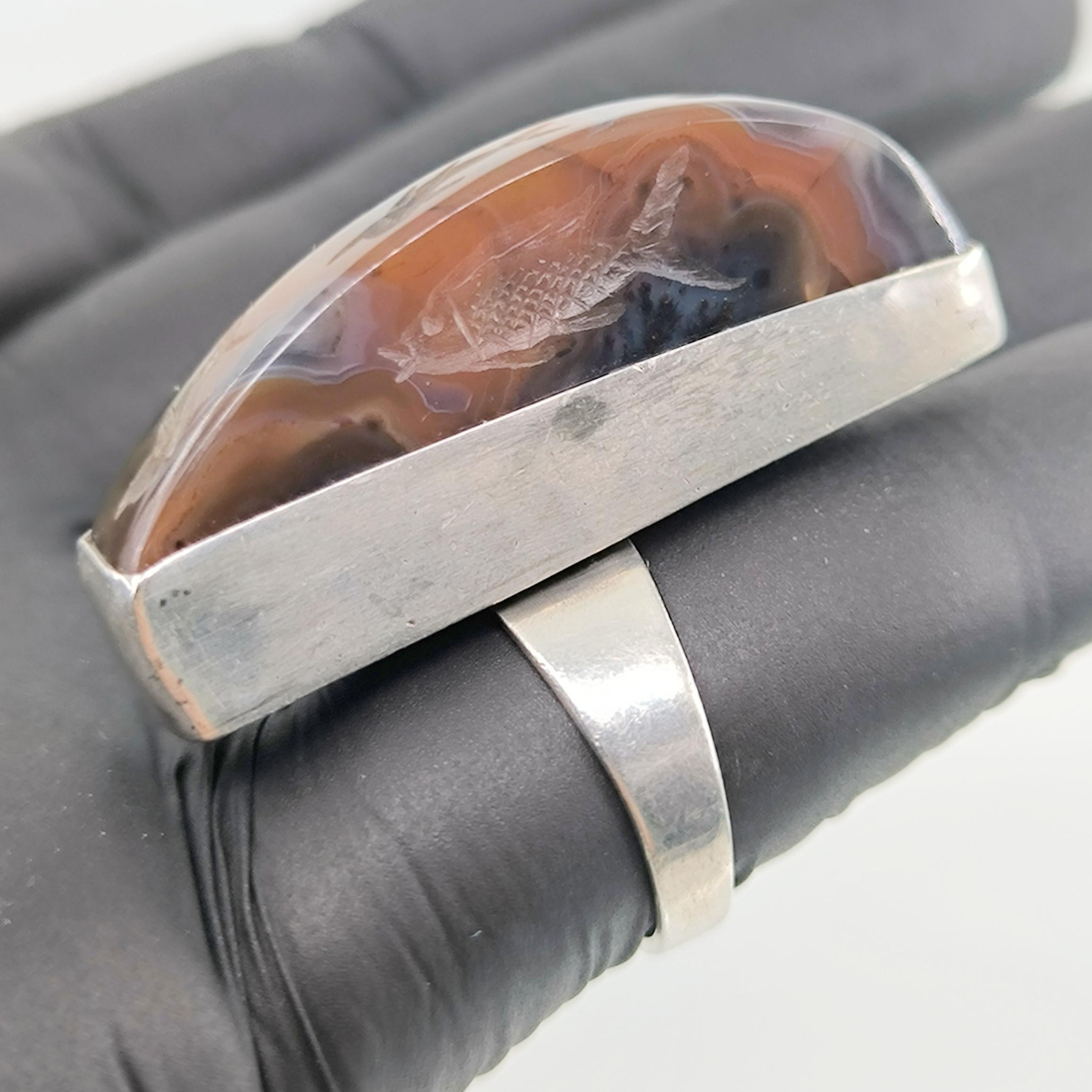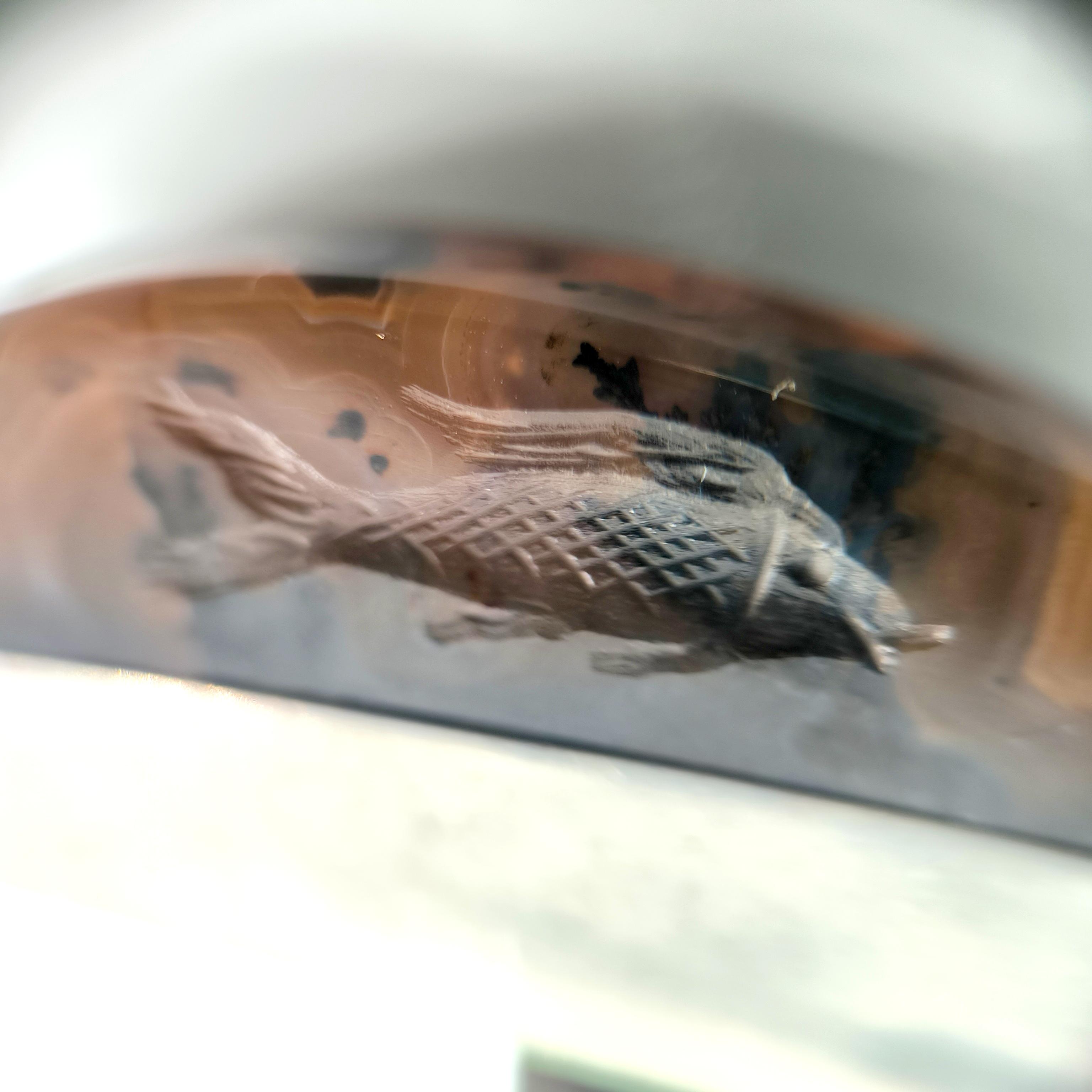 Doğanın damarlarını andıran eşsiz desene sahip özel kesim agat taşının içine, negatif oyma tekniği ile iki balık ve üst bölümde üç yunusun zarif hareketlerini işledim. Su elementinin sonsuz döngüsünü temsil eden bu figürler, hayatın akışına teslim olmanın, bereketin ve şansın güçlü sembolleridir. 925 ayar gümüşten el işçiliğiyle hazırlanan minimalist çerçeve, taşı tüm ihtişamıyla öne çıkarırken doğal tonların derinliğini kusursuzca vurgular. Hem mitolojik hem ruhsal anlamlar taşıyan, özgün ve tek bir adet olarak üretilmiş koleksiyon parçası.