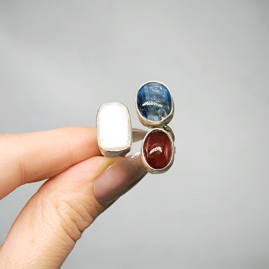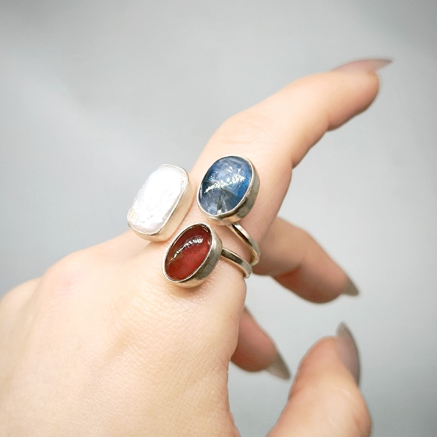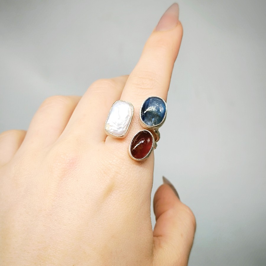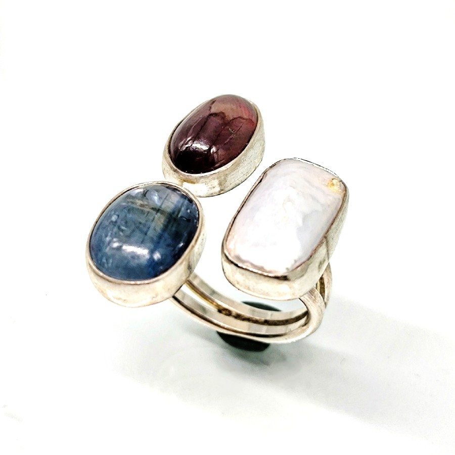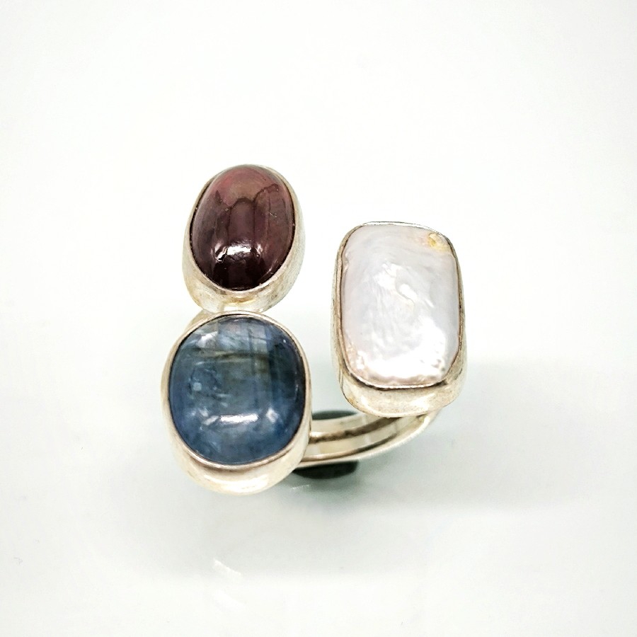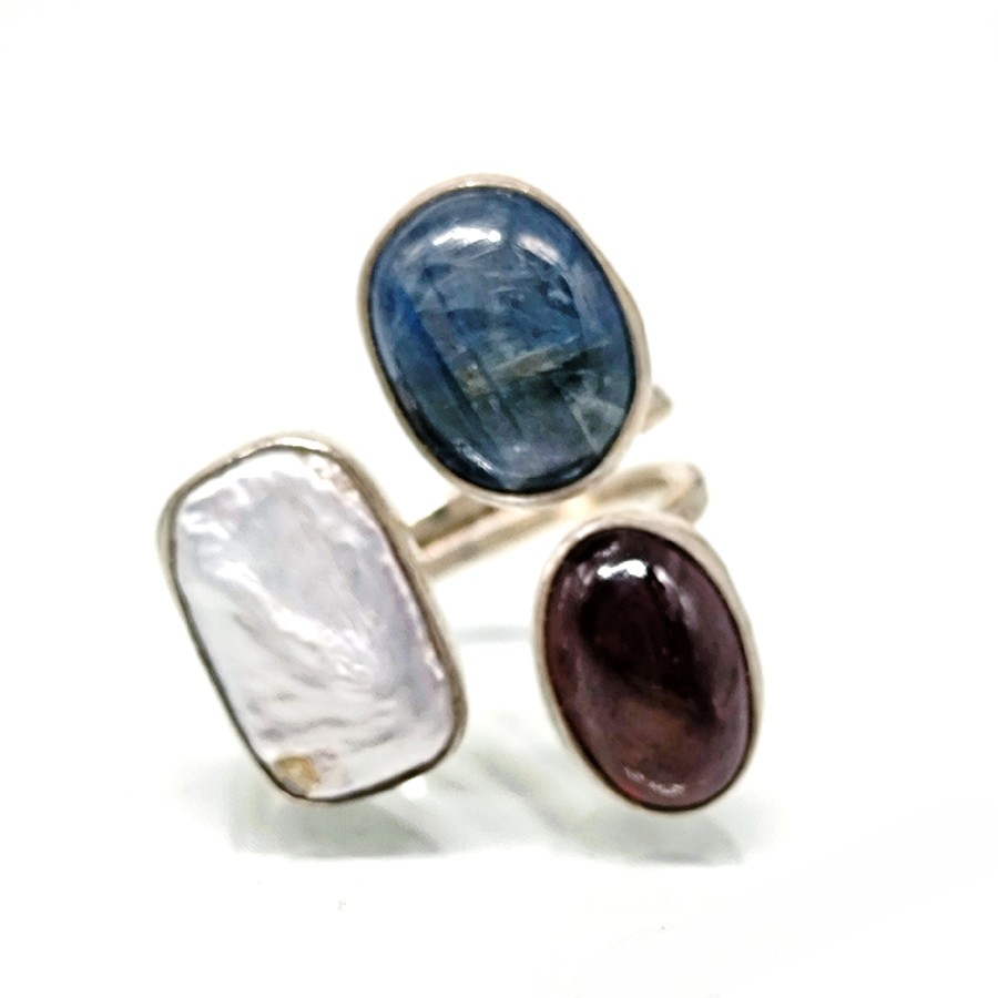 BAROK İNCİ & KYANİT & AKİK TAŞ TASARIMLI GÜMÜŞ YÜZÜK