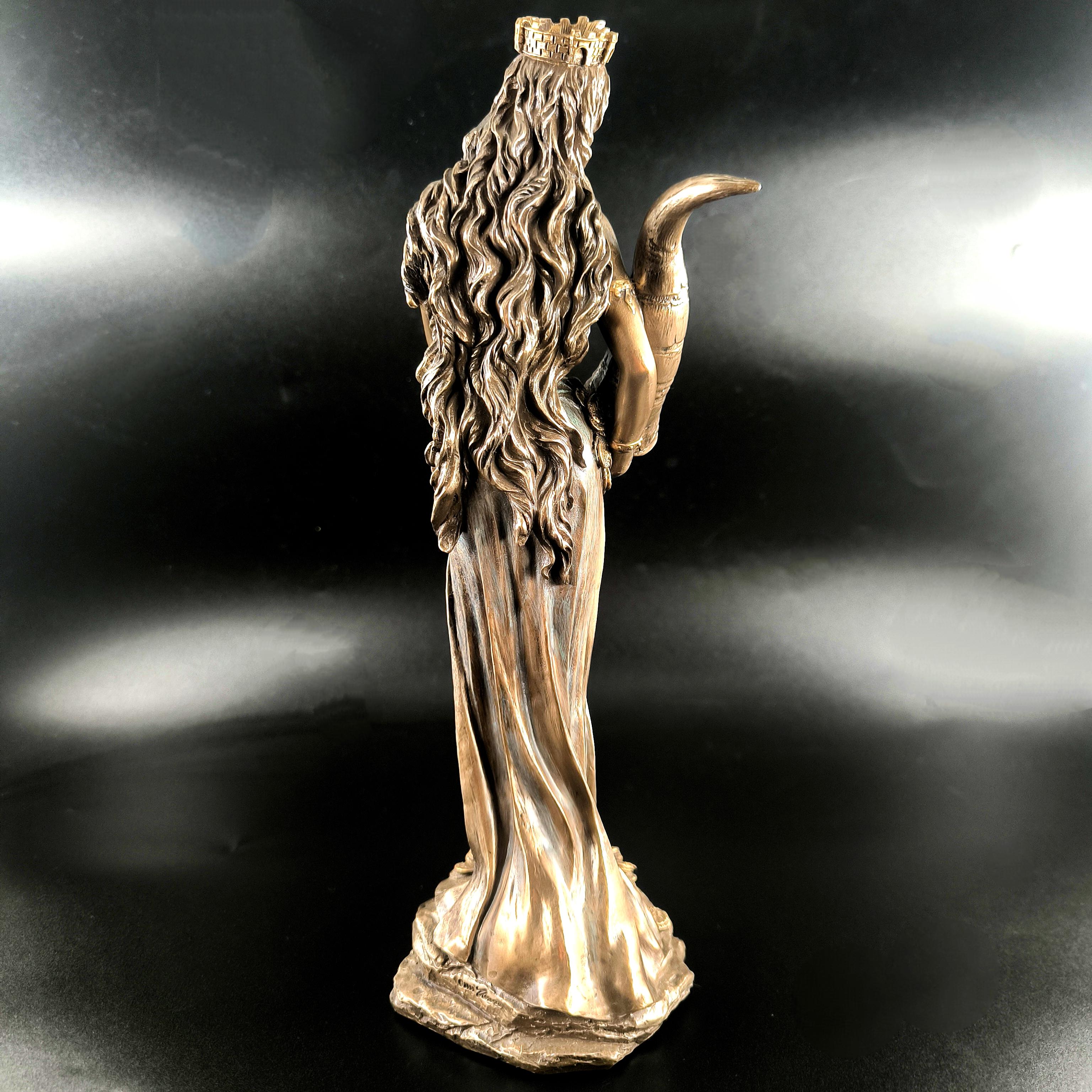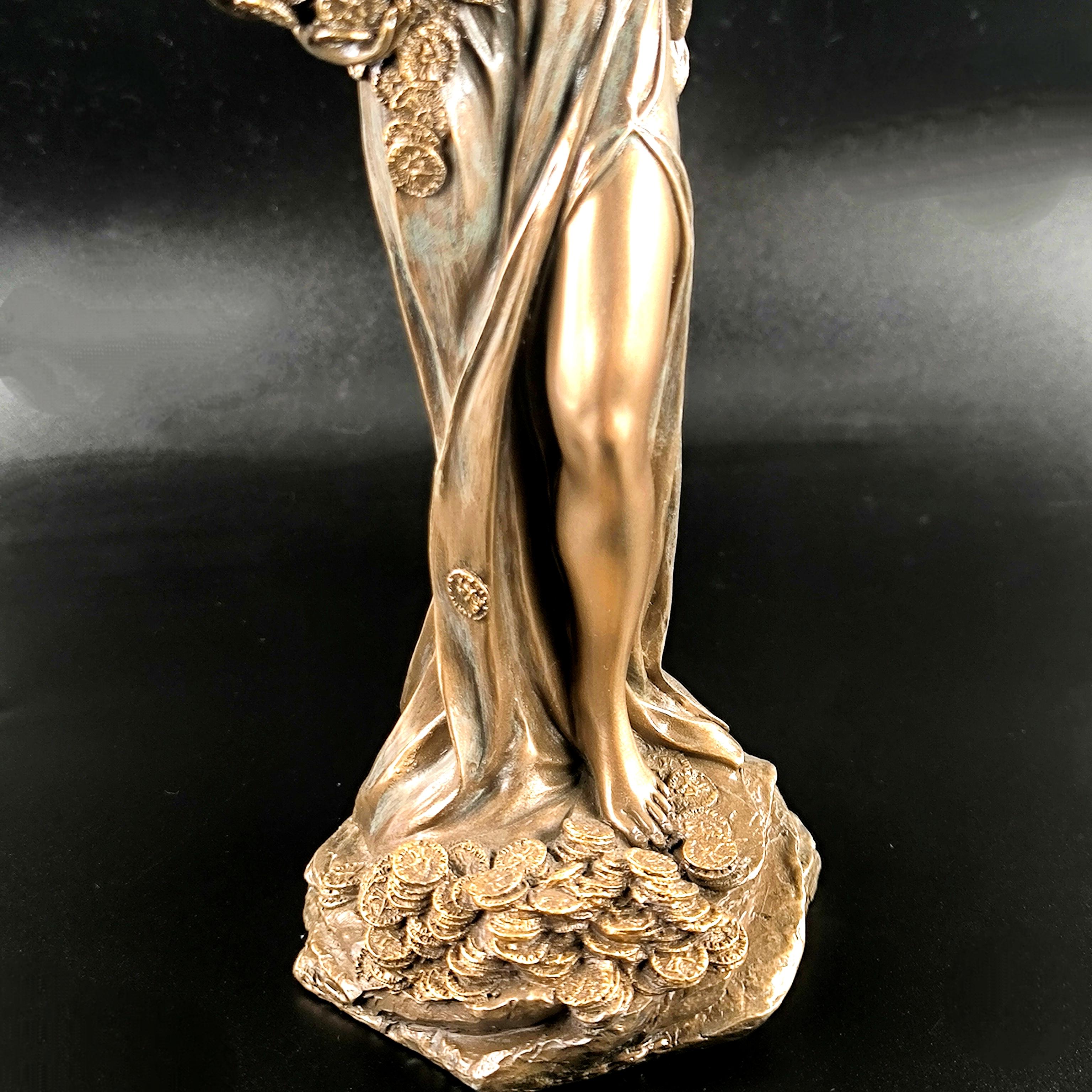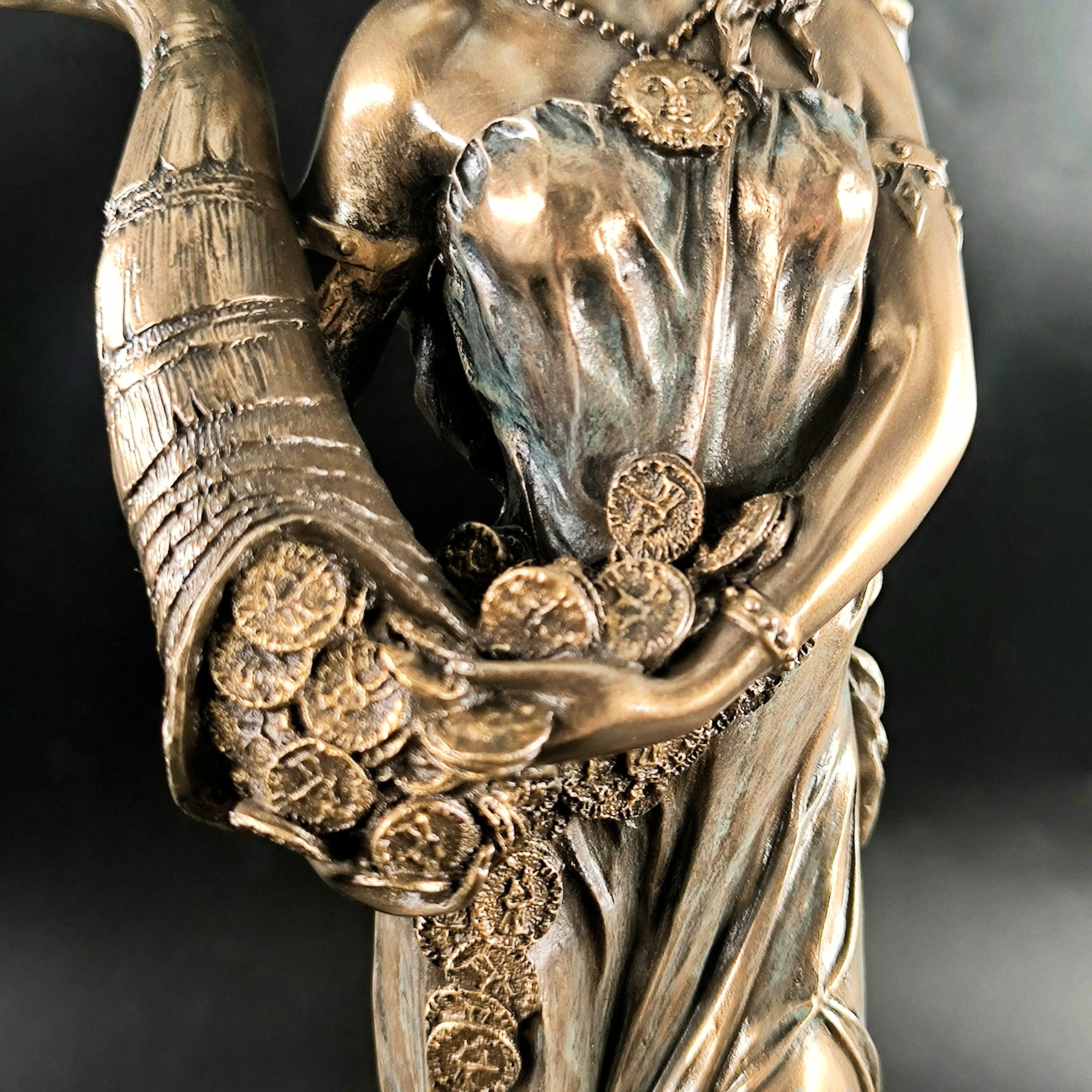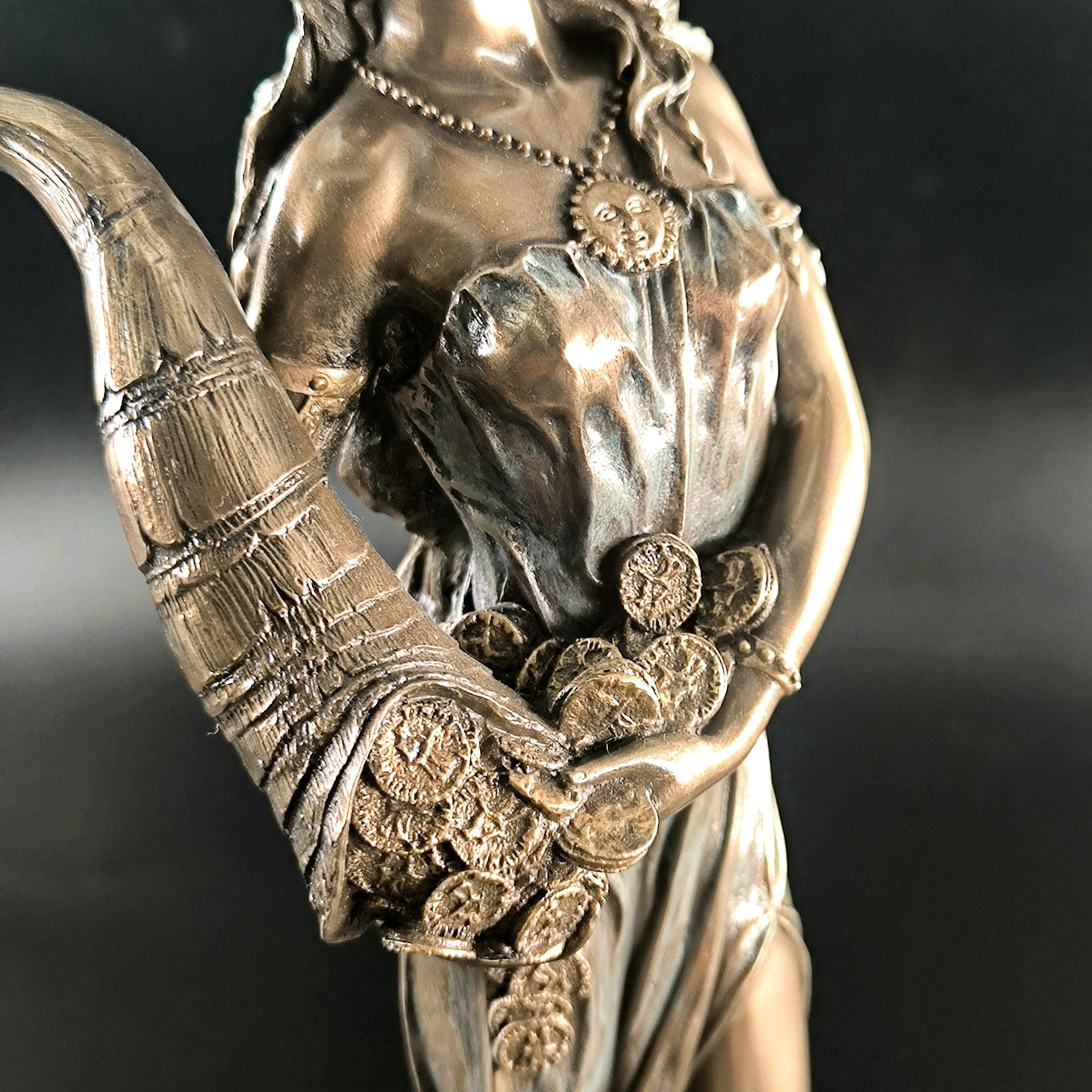 Veronese imzalı Bereket Tanrıçası heykeli, bolluğun ve talihin simgesi olan Cornucopia’yı zarafetle taşıyan figürüyle yaşamın cömertliğini temsil eder; bronz efektli ince detay işçiliği ve etkileyici duruşuyla bulunduğu ortama asil, güçlü ve bereketli bir atmosfer katan özel bir koleksiyon parçasıdır. Mermer ve kemik tozu karışımı özel bir madde ile şekillendirilmiş, usta sanatçılar tarafından itinayla boyanmış olup çok detaylı ve gerçekçi ayrıntılara sahiptir. Veronese markası dünya çapında ince işçiliğiyle öne çıkan, farklı tarihlerde sınırlı koleksiyonlar sunan saygın bir firmadır; marka ve tarih damgası ürünün üzerinde yer almaktadır.