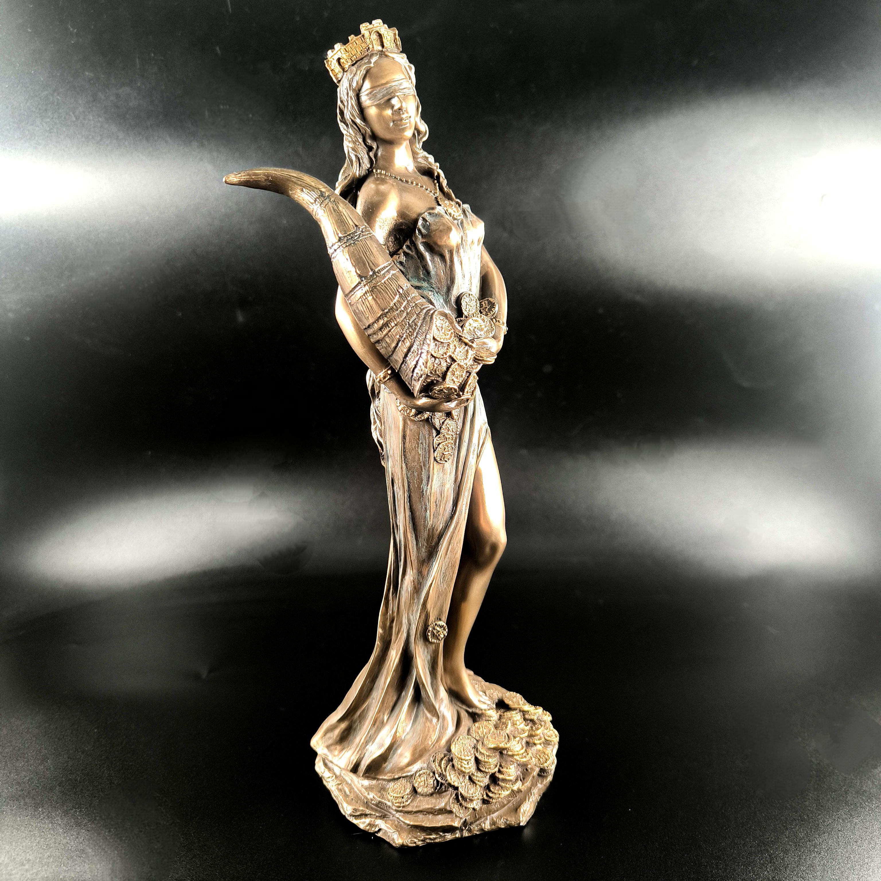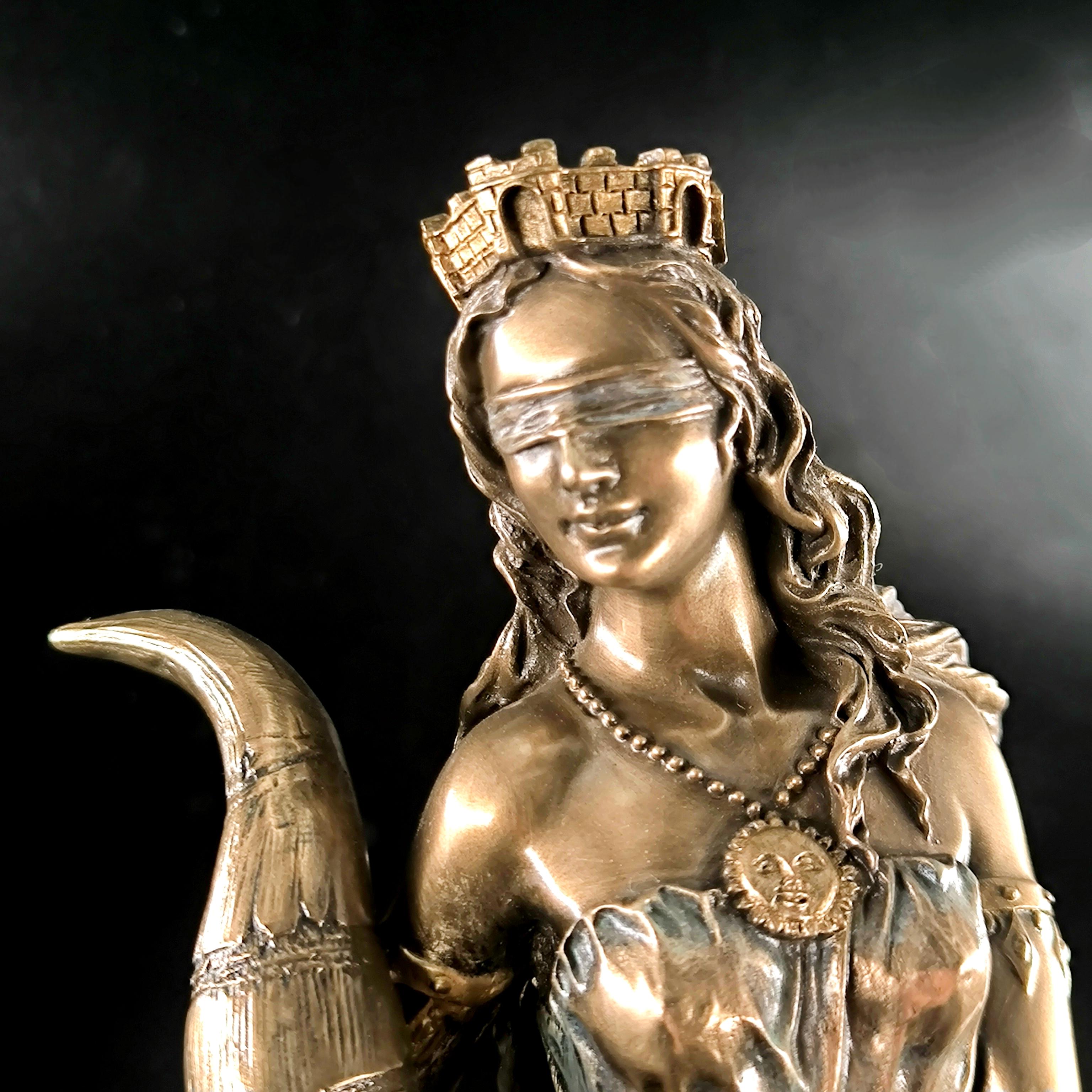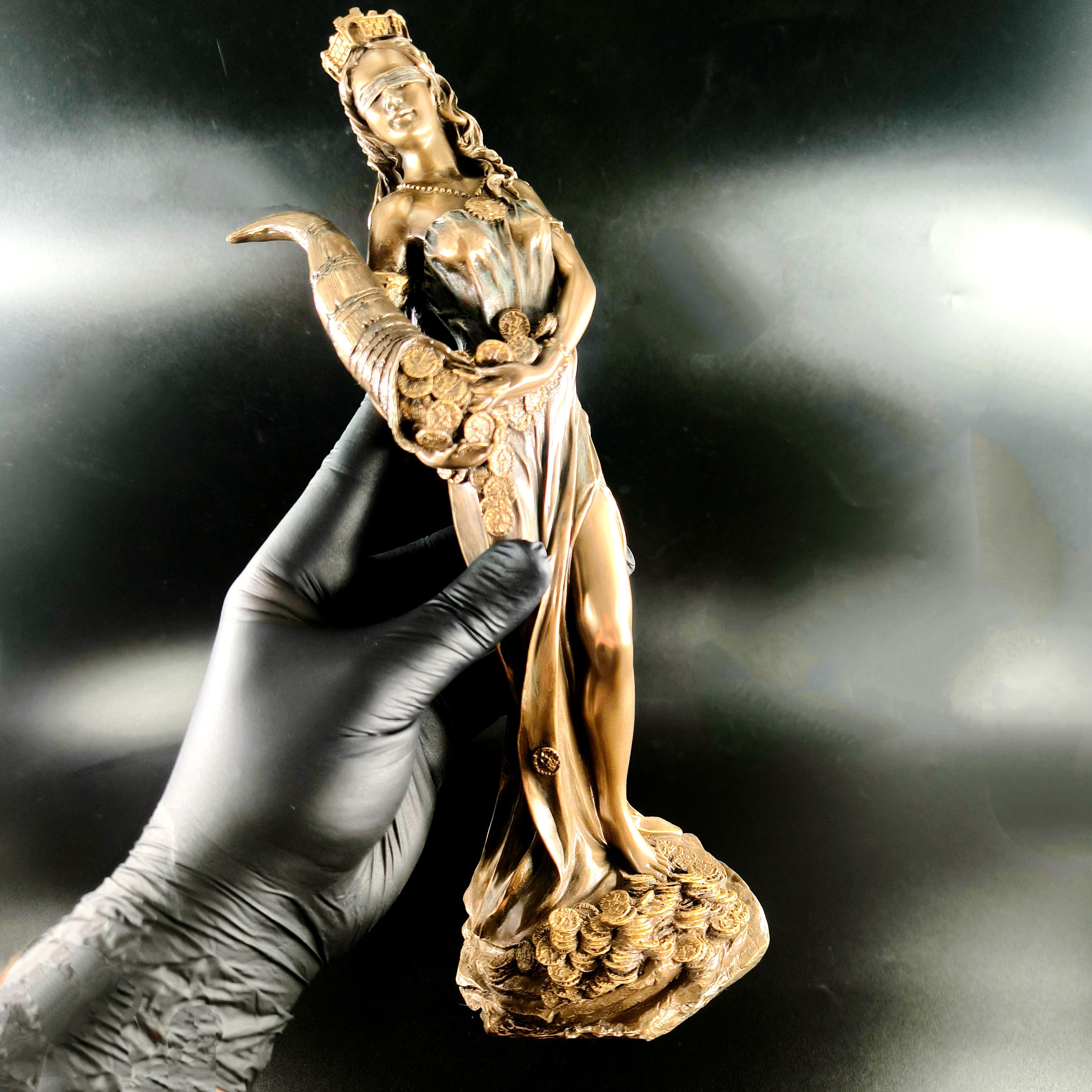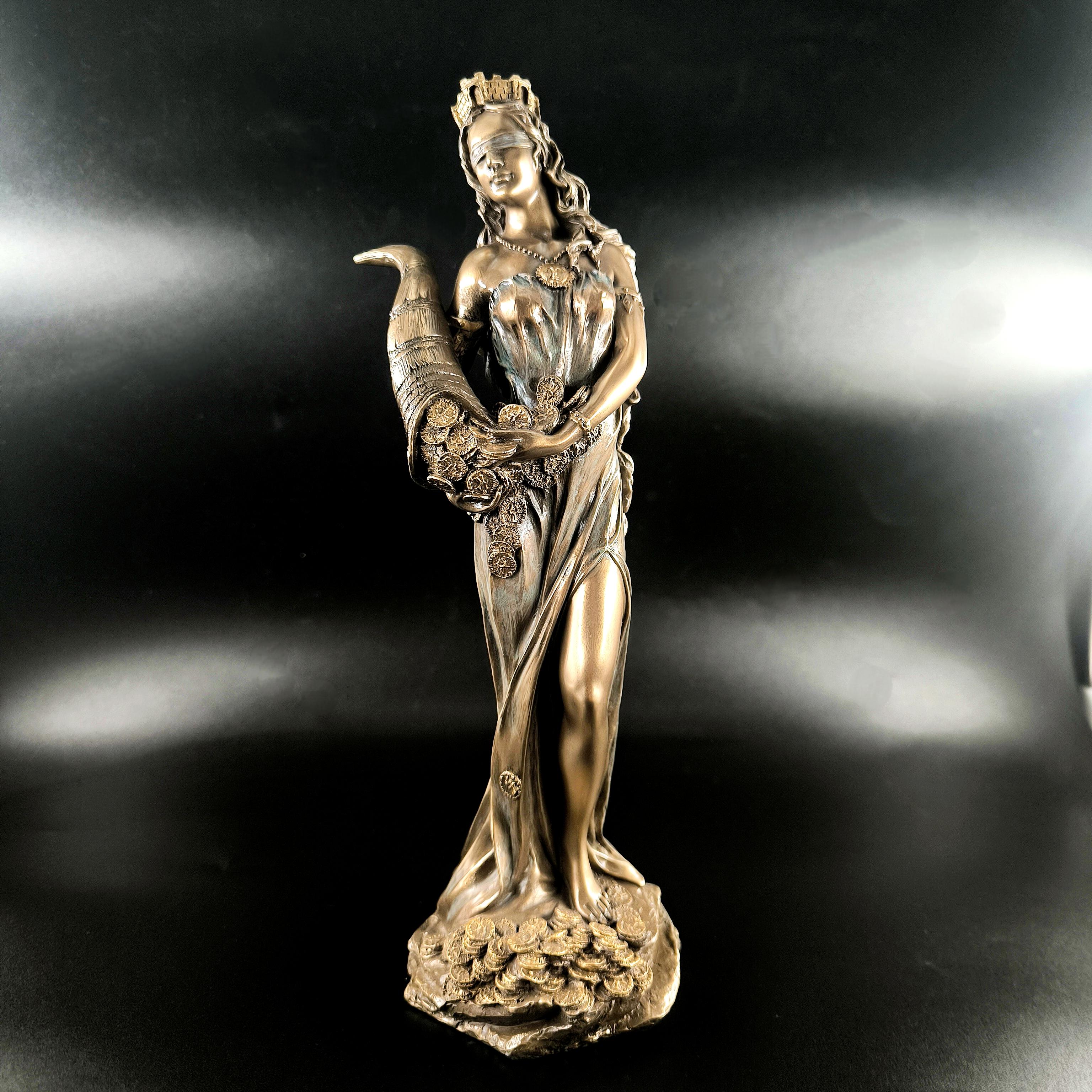 Veronese imzalı Bereket Tanrıçası heykeli, bolluğun ve talihin simgesi olan Cornucopia’yı zarafetle taşıyan figürüyle yaşamın cömertliğini temsil eder; bronz efektli ince detay işçiliği ve etkileyici duruşuyla bulunduğu ortama asil, güçlü ve bereketli bir atmosfer katan özel bir koleksiyon parçasıdır. Mermer ve kemik tozu karışımı özel bir madde ile şekillendirilmiş, usta sanatçılar tarafından itinayla boyanmış olup çok detaylı ve gerçekçi ayrıntılara sahiptir. Veronese markası dünya çapında ince işçiliğiyle öne çıkan, farklı tarihlerde sınırlı koleksiyonlar sunan saygın bir firmadır; marka ve tarih damgası ürünün üzerinde yer almaktadır.
