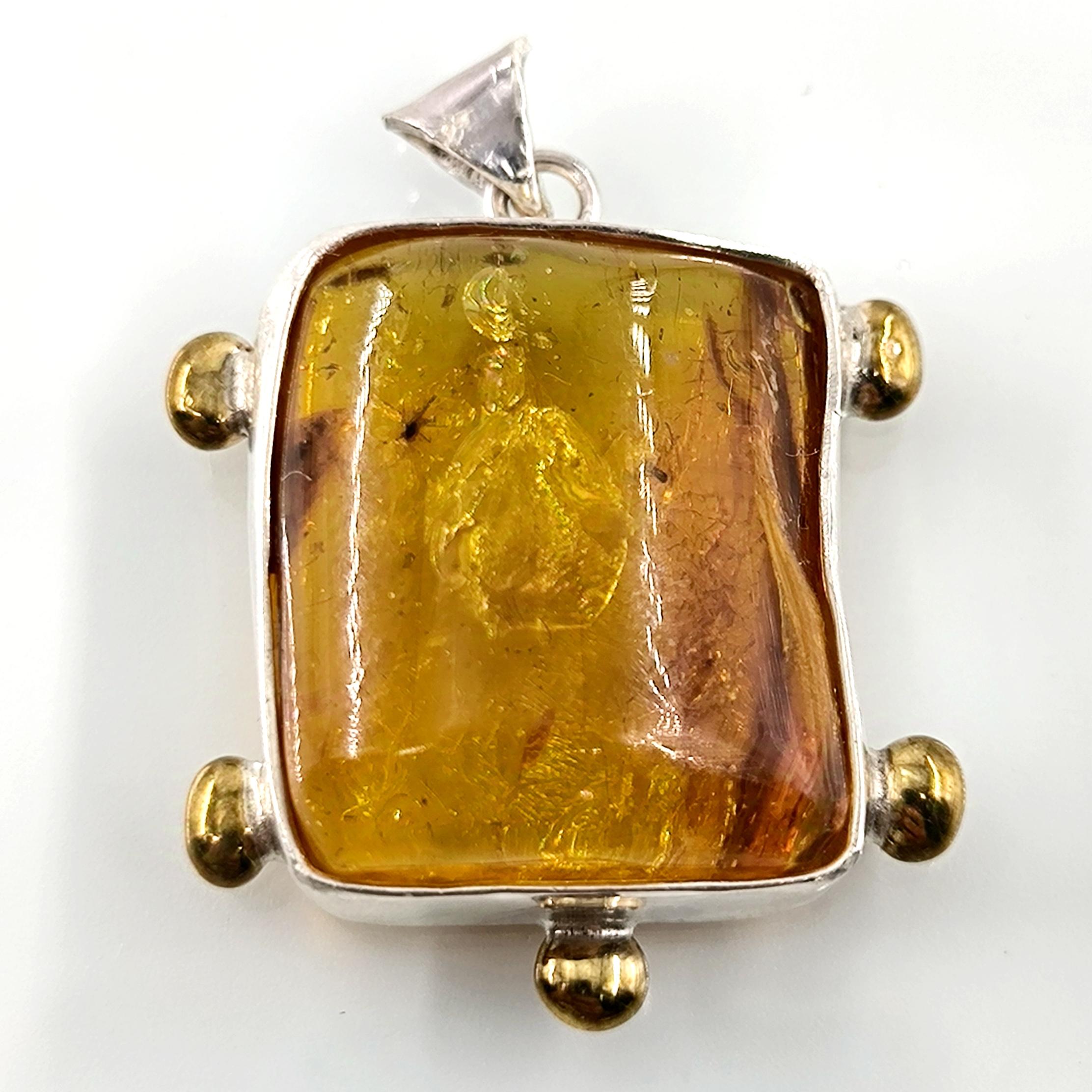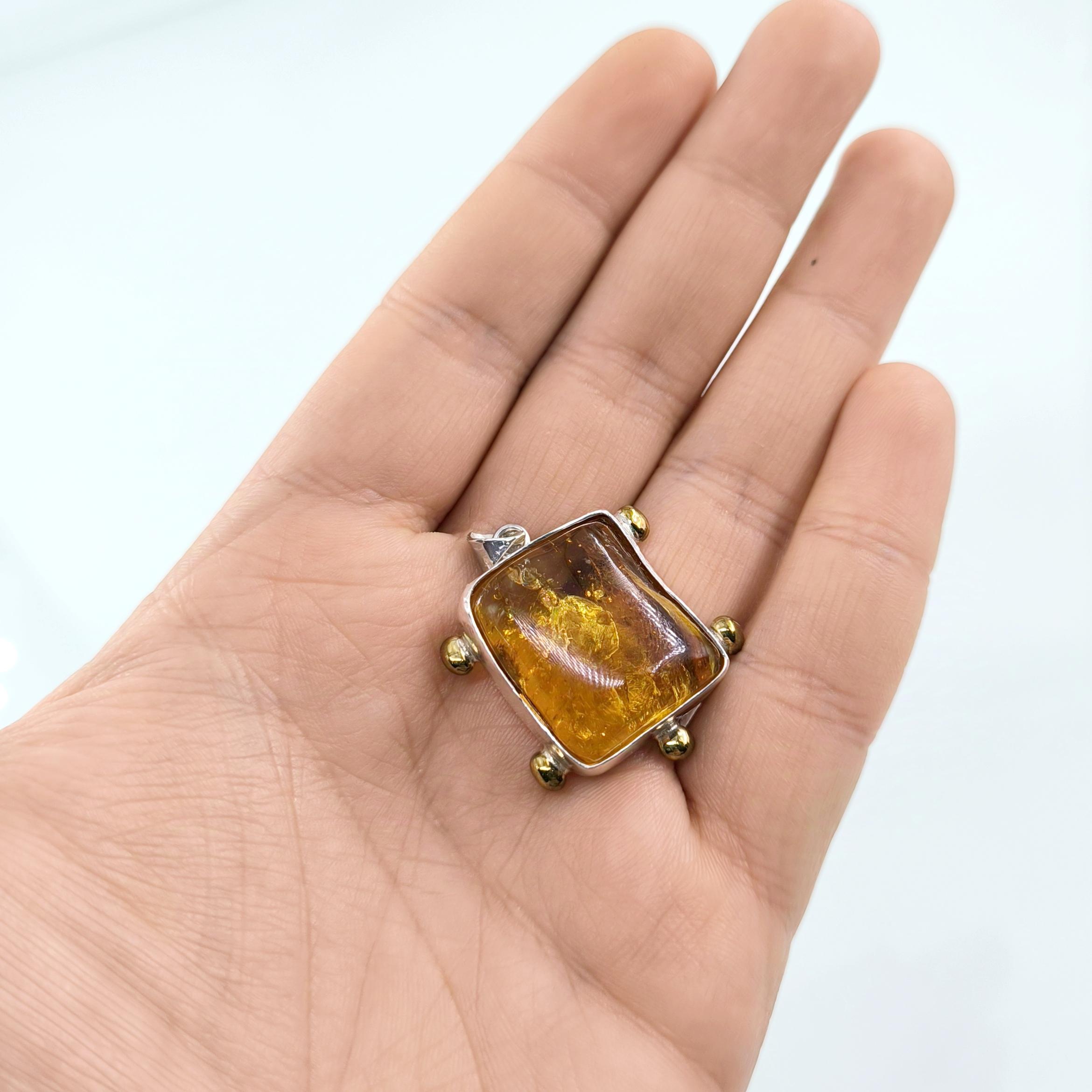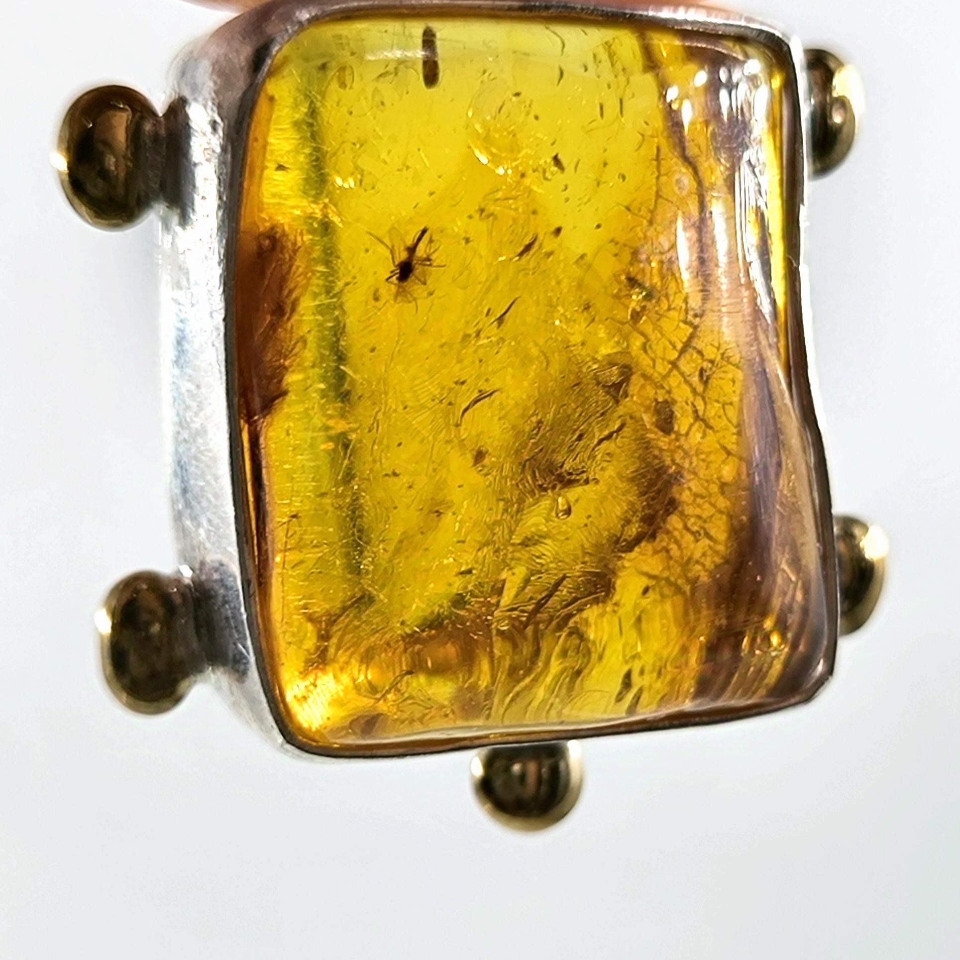 Sinek Fosilli Baltık Damla Kehribar 925 Ayar Gümüş çerçeveli kolyemiz!