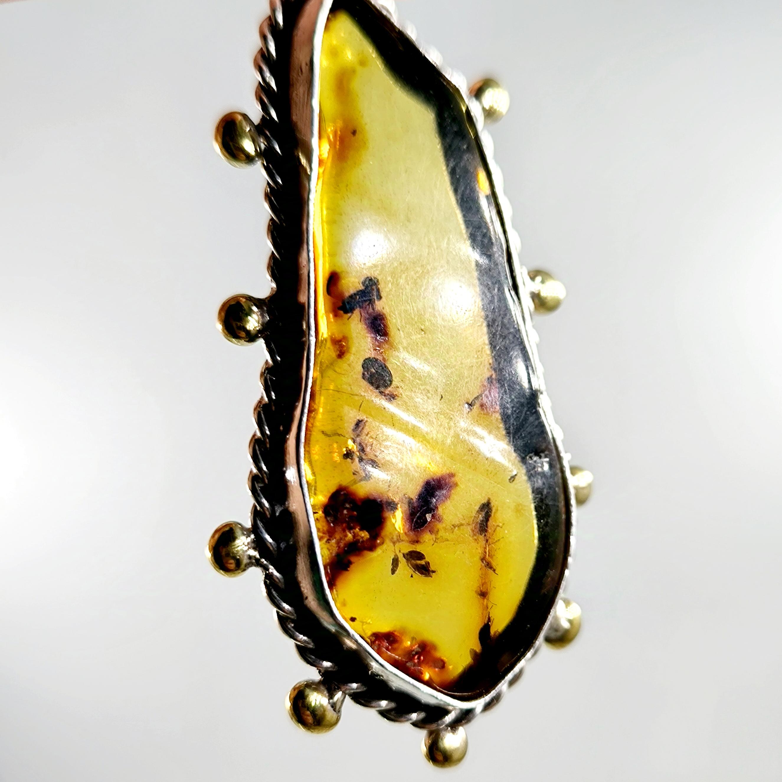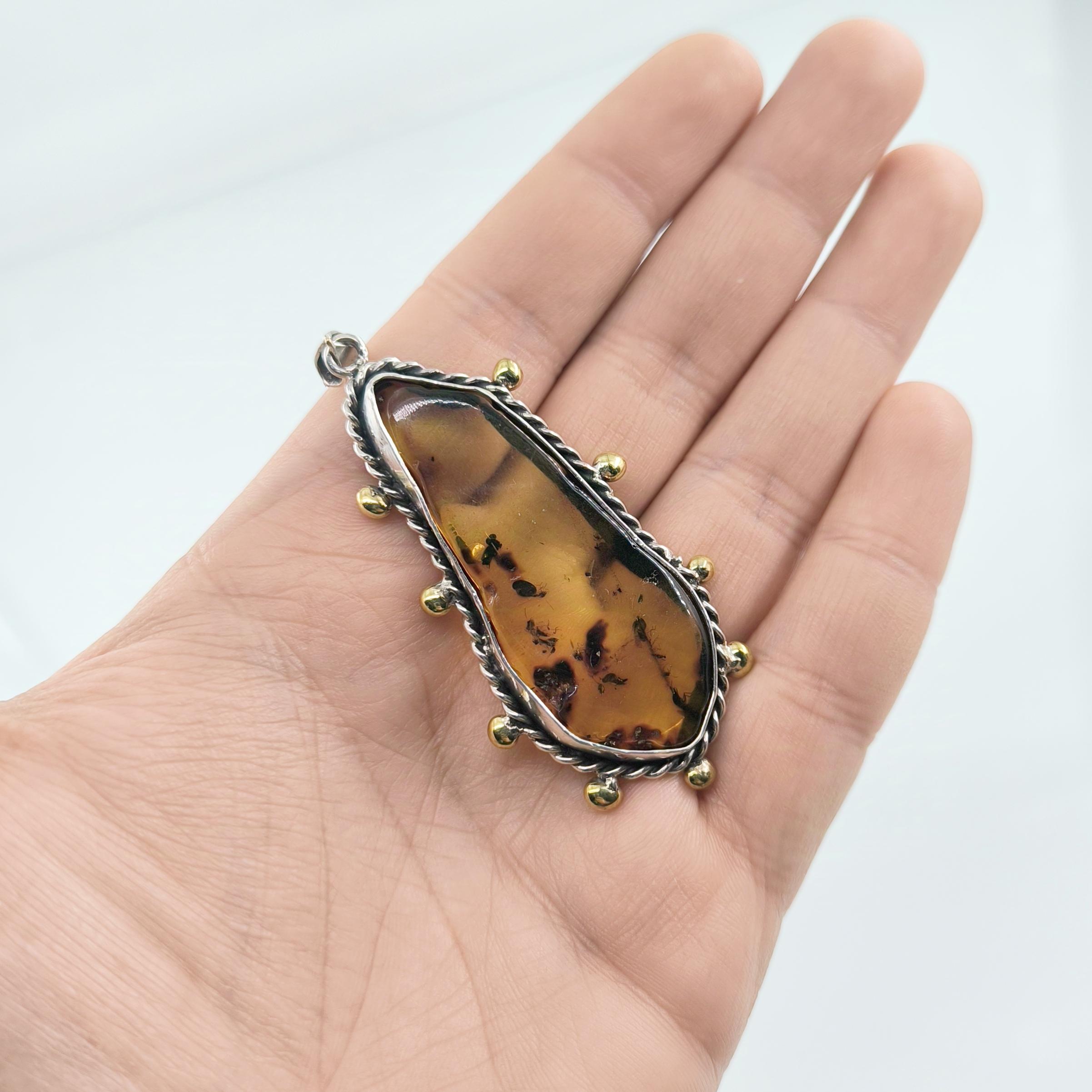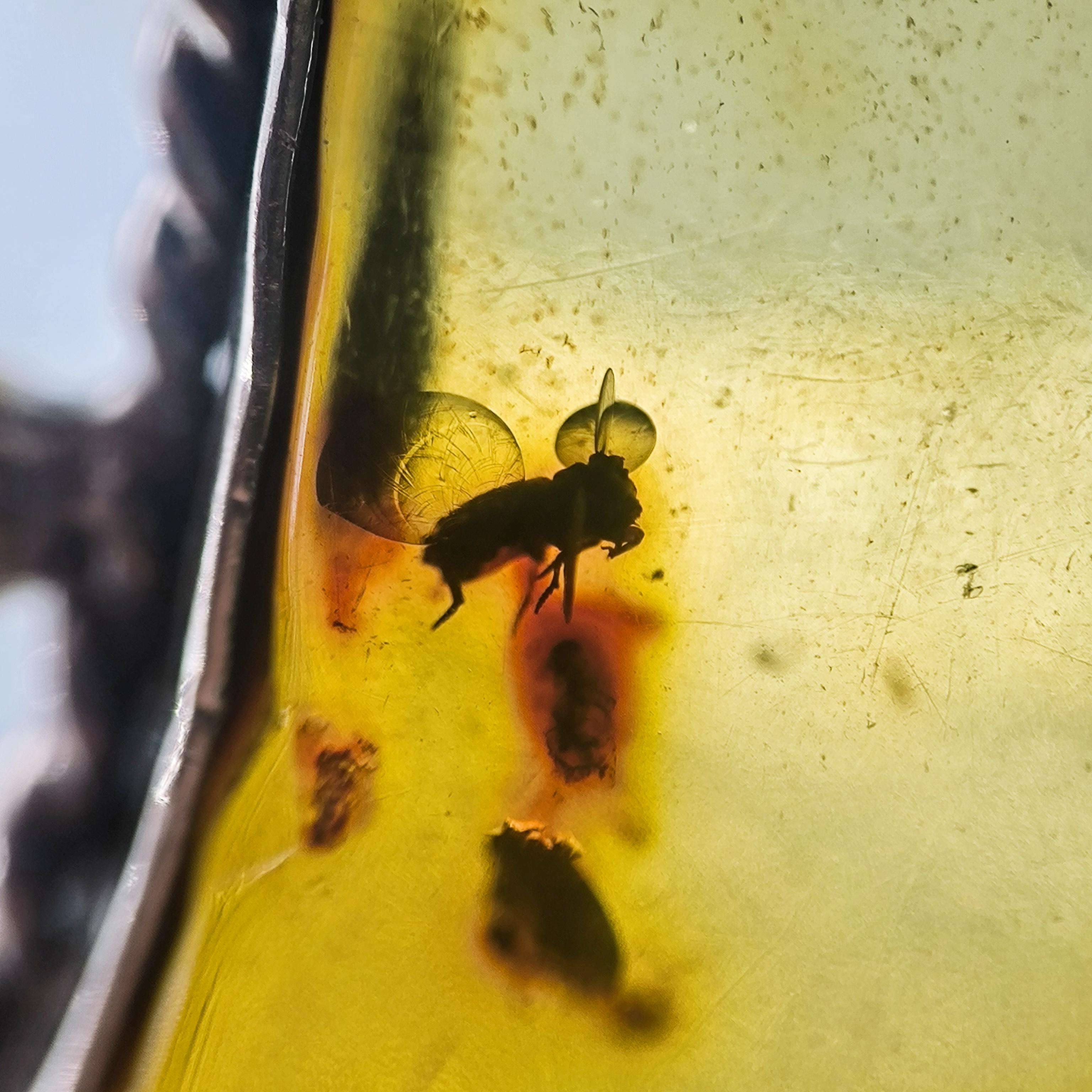 Sinek Fosilli Doğu Karayipler Damla Kehribar 925 Ayar Gümüş çerçeveli kolyemiz!