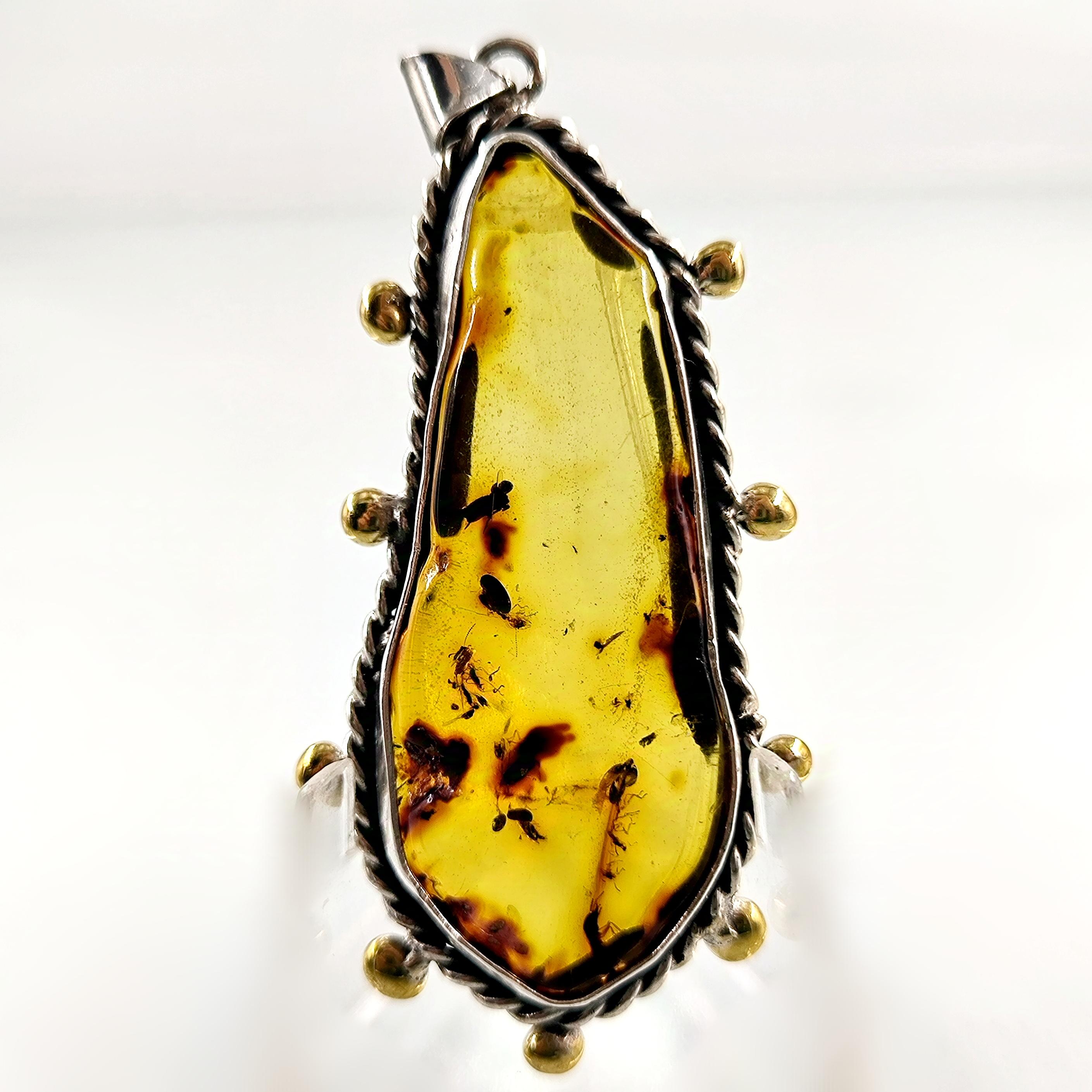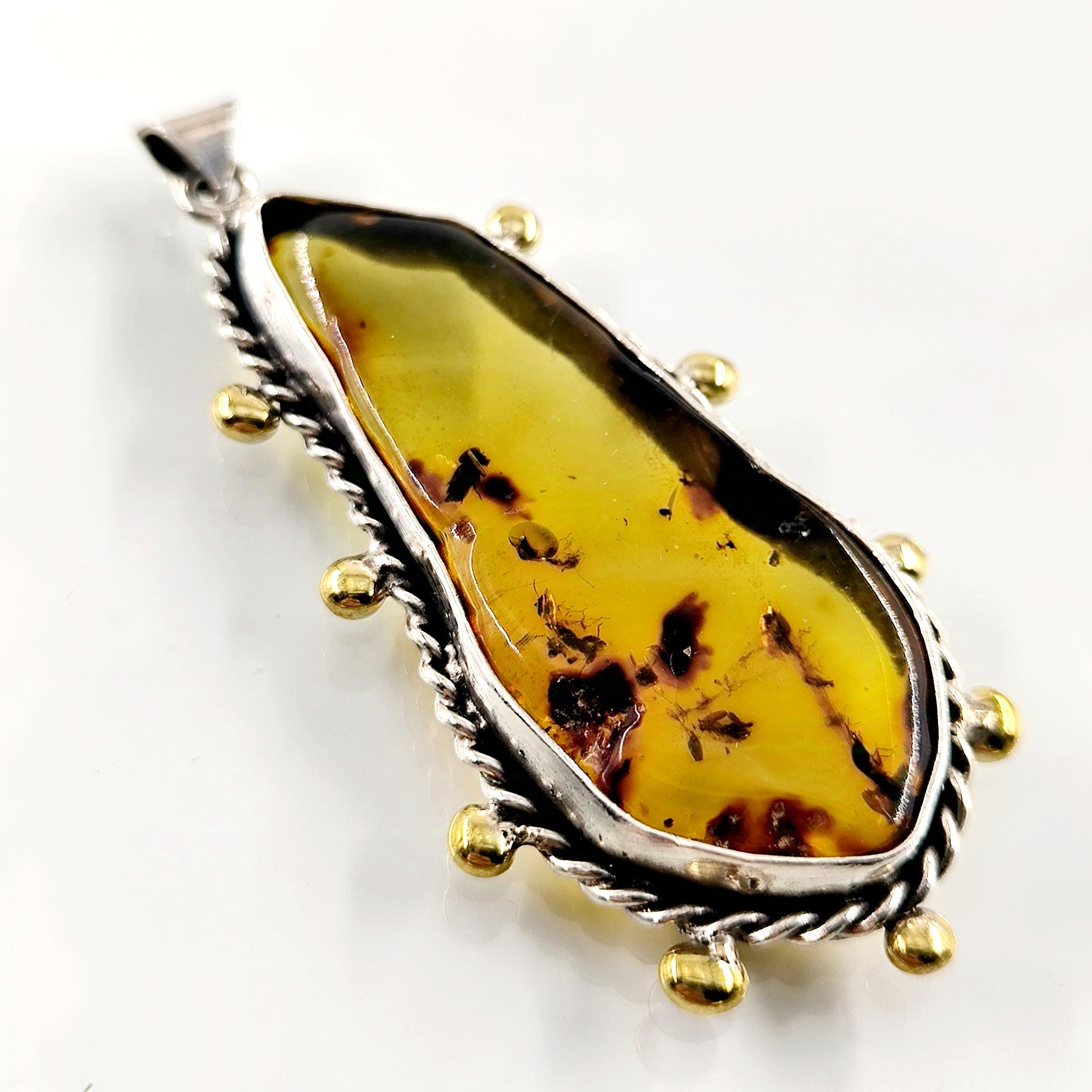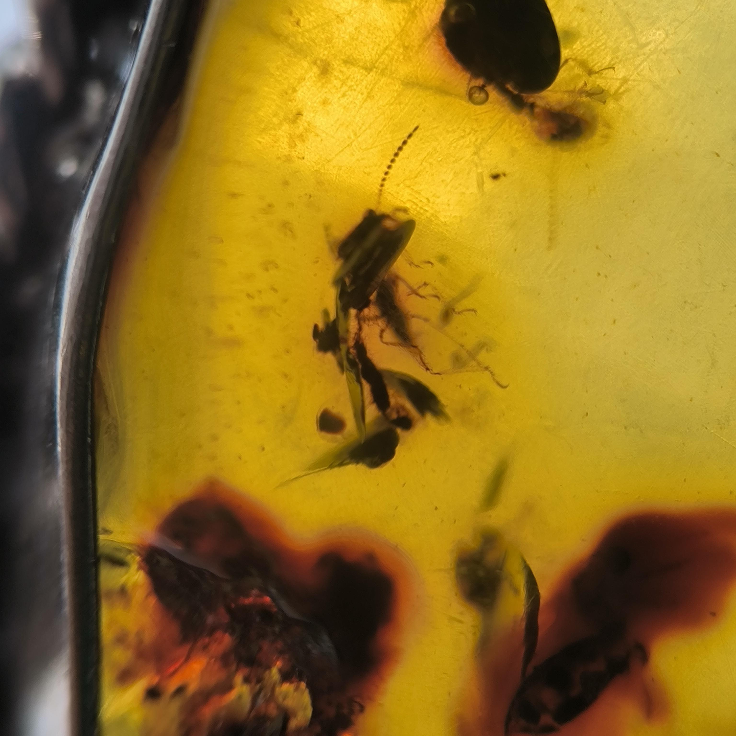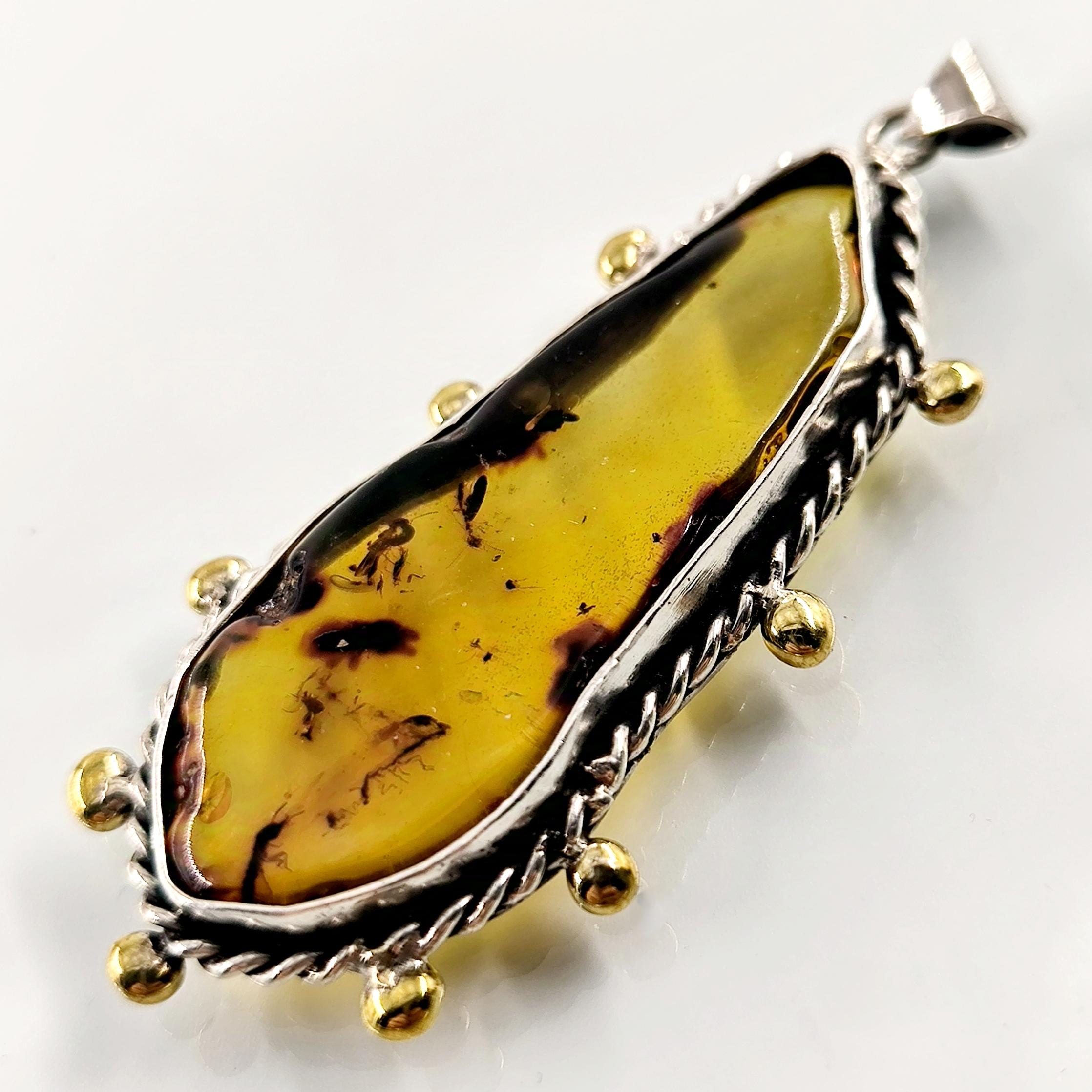 Sinek Fosilli Doğu Karayipler Damla Kehribar 925 Ayar Gümüş çerçeveli kolyemiz!