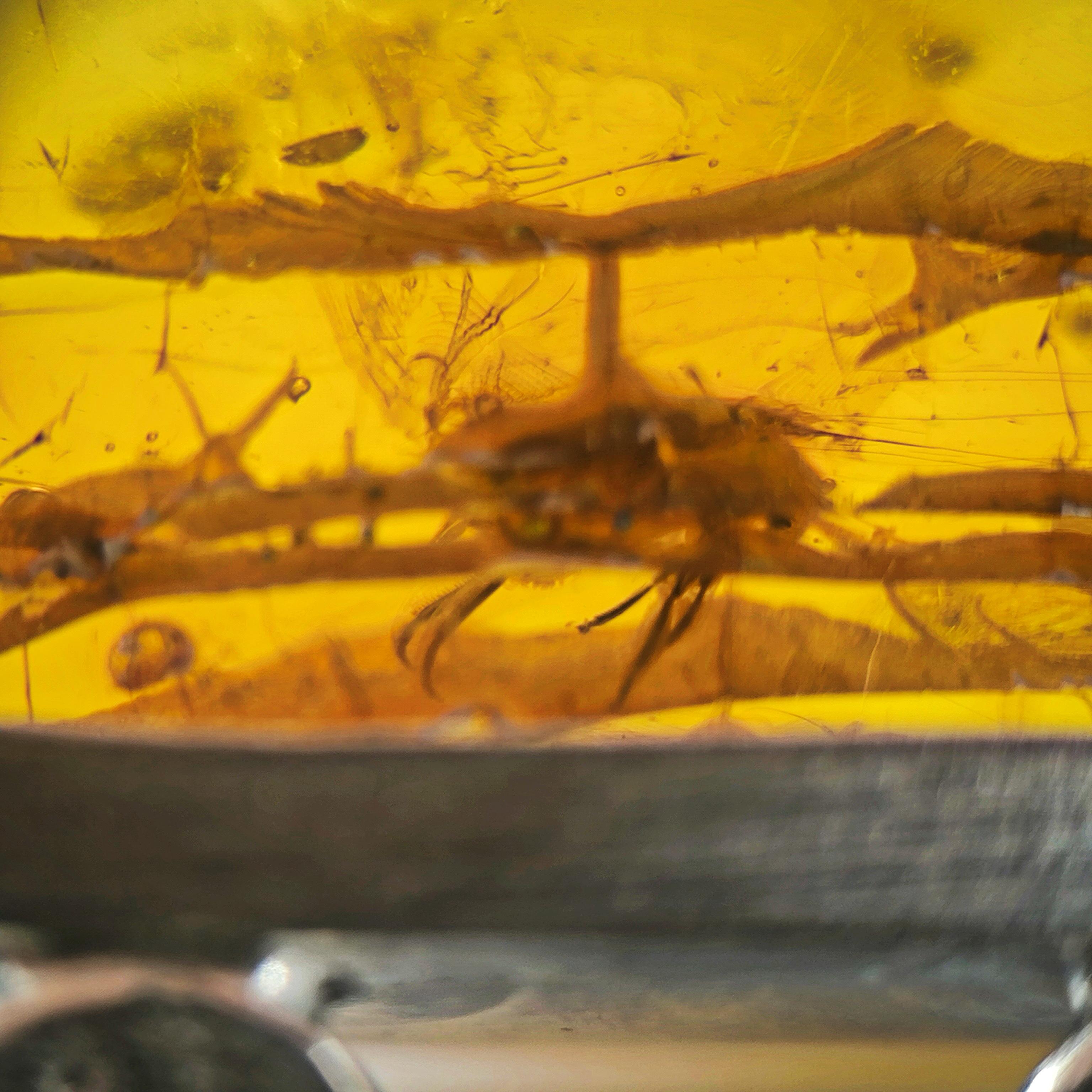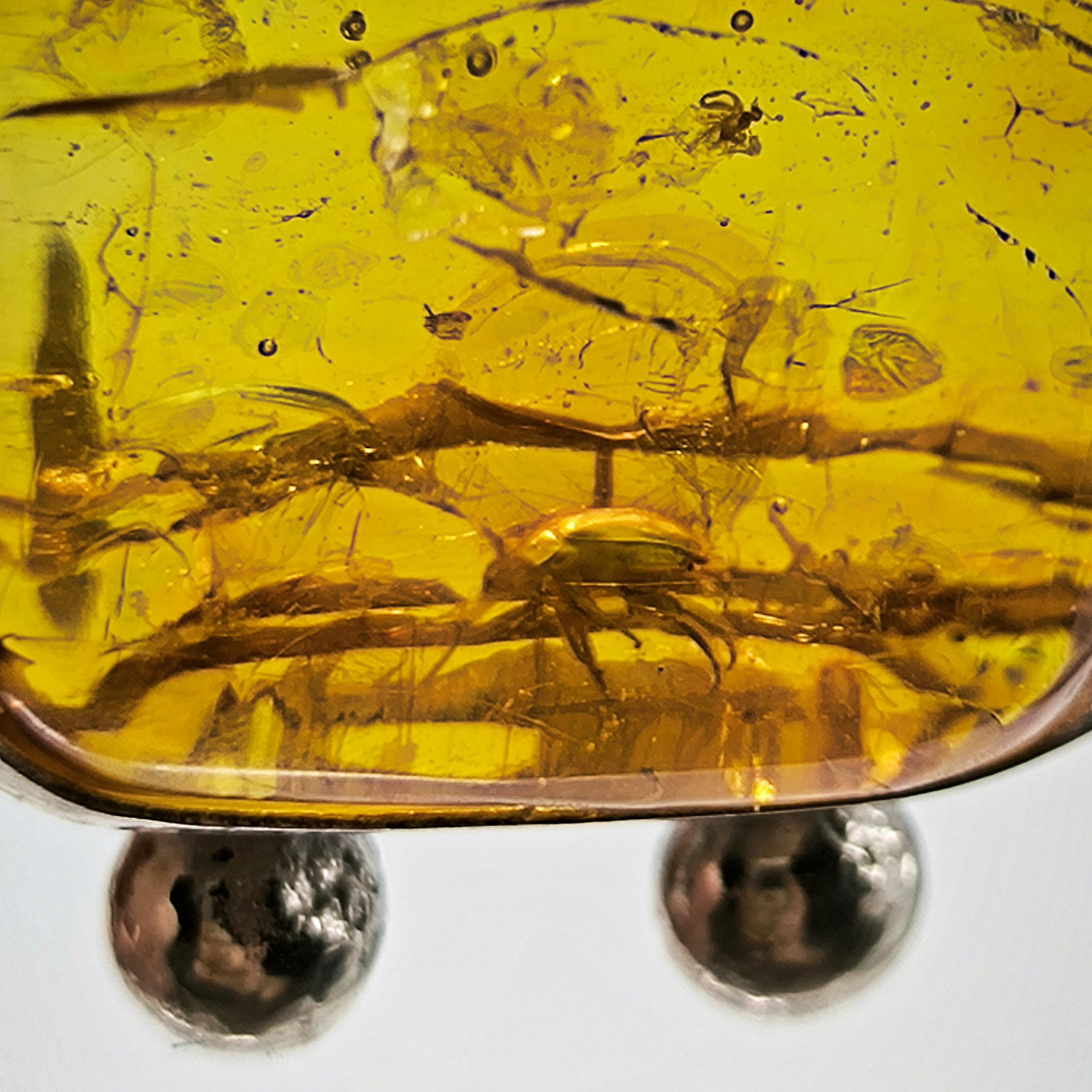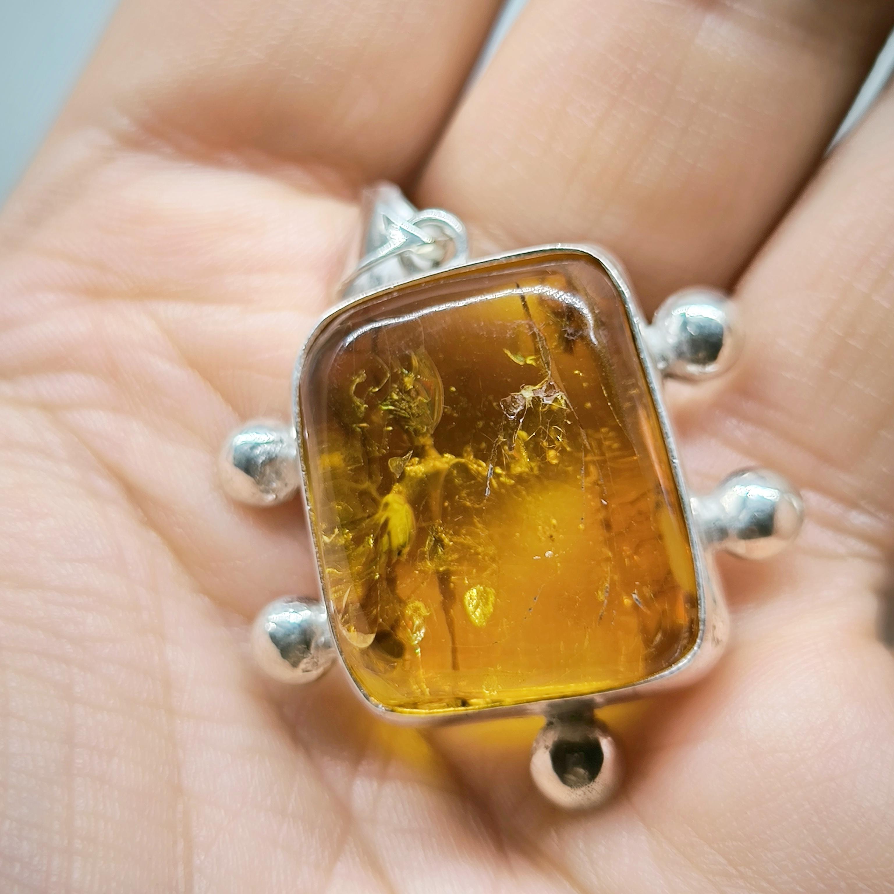 İçerisinde doğanın mumyaladığı ''PİRE'' fosili bulunan ÇOK NADİR çıkacak, Natürel Damla Kehribar 925 Ayar Gümüş çerçeveli ''mEdusA'' tasarım özel kehribar kolyemiz!