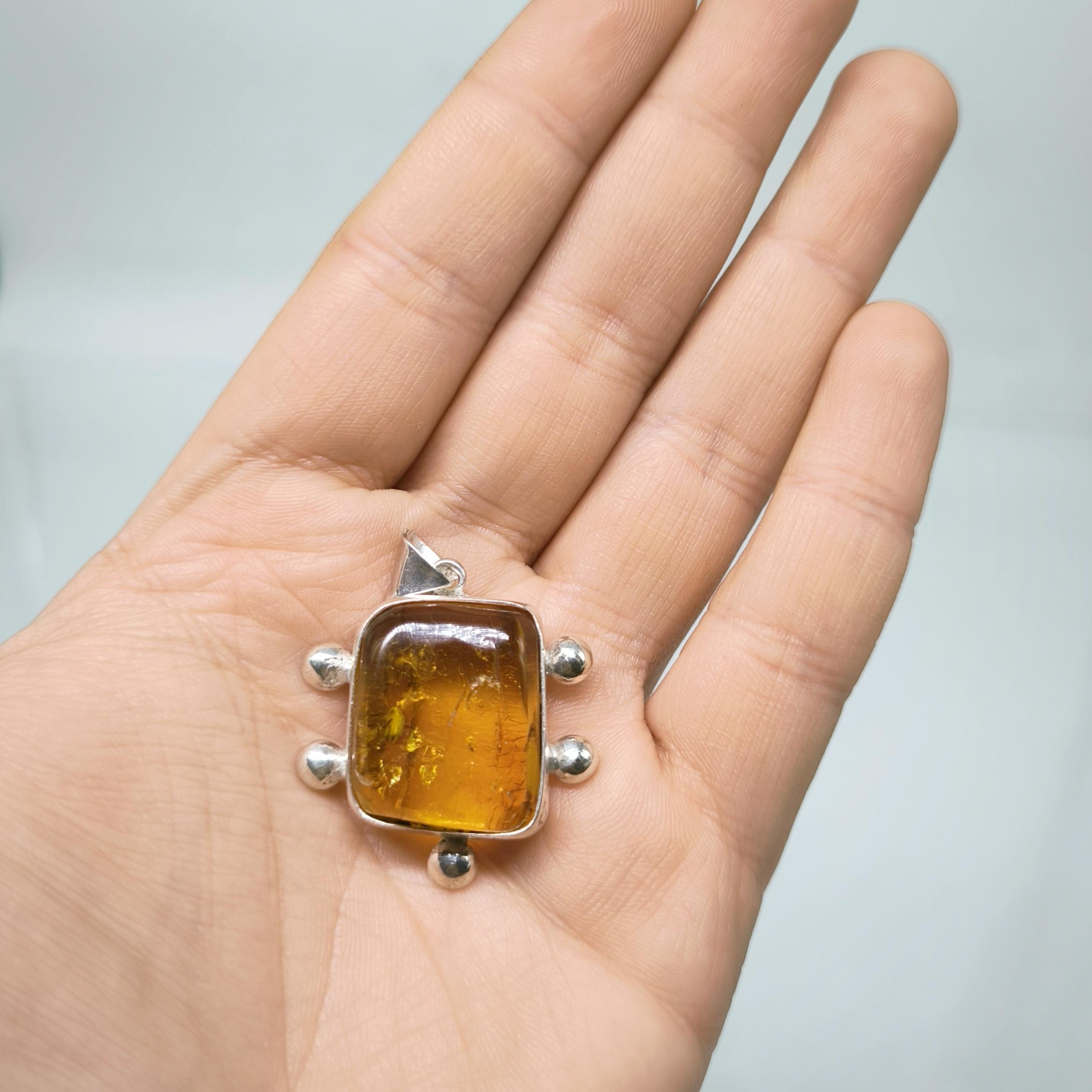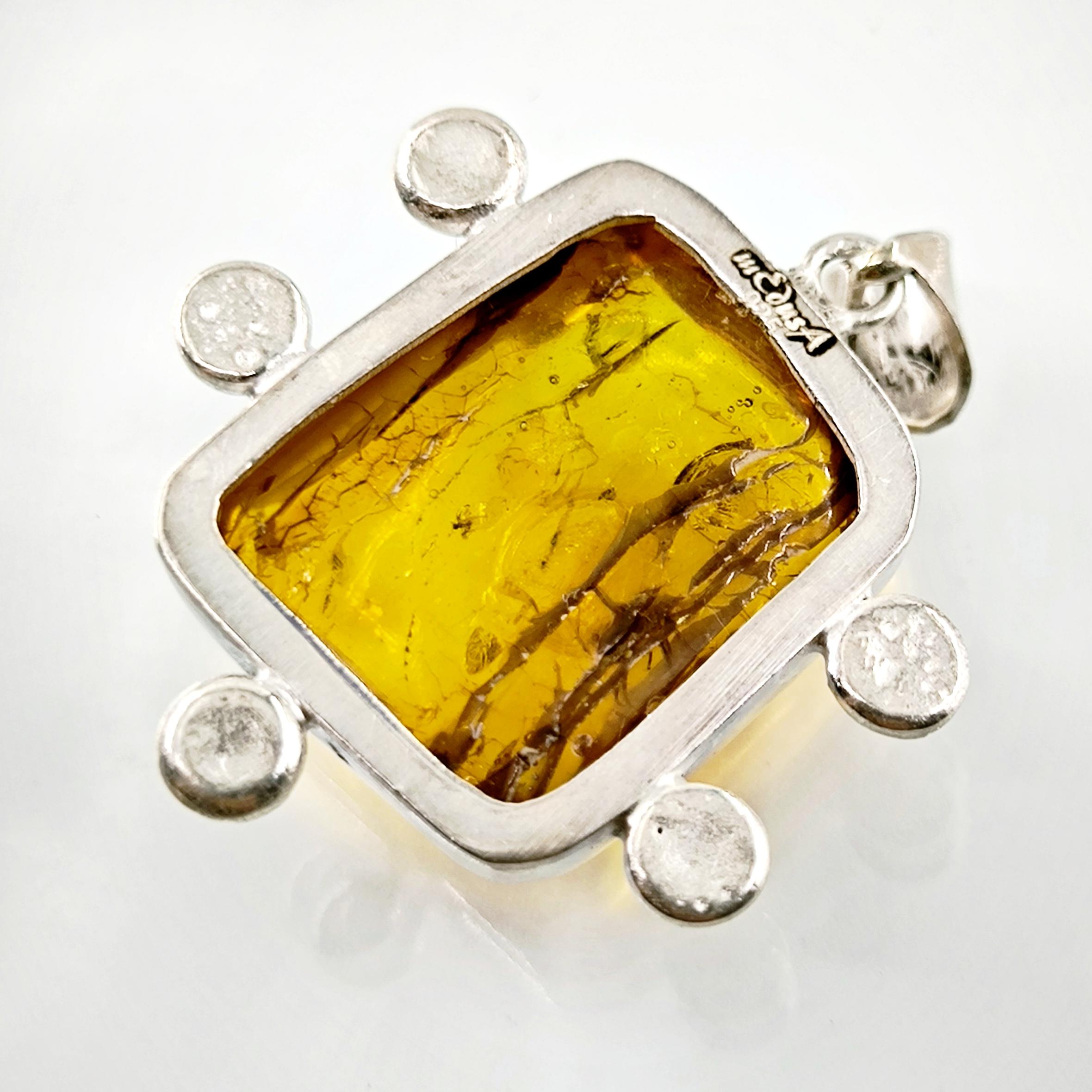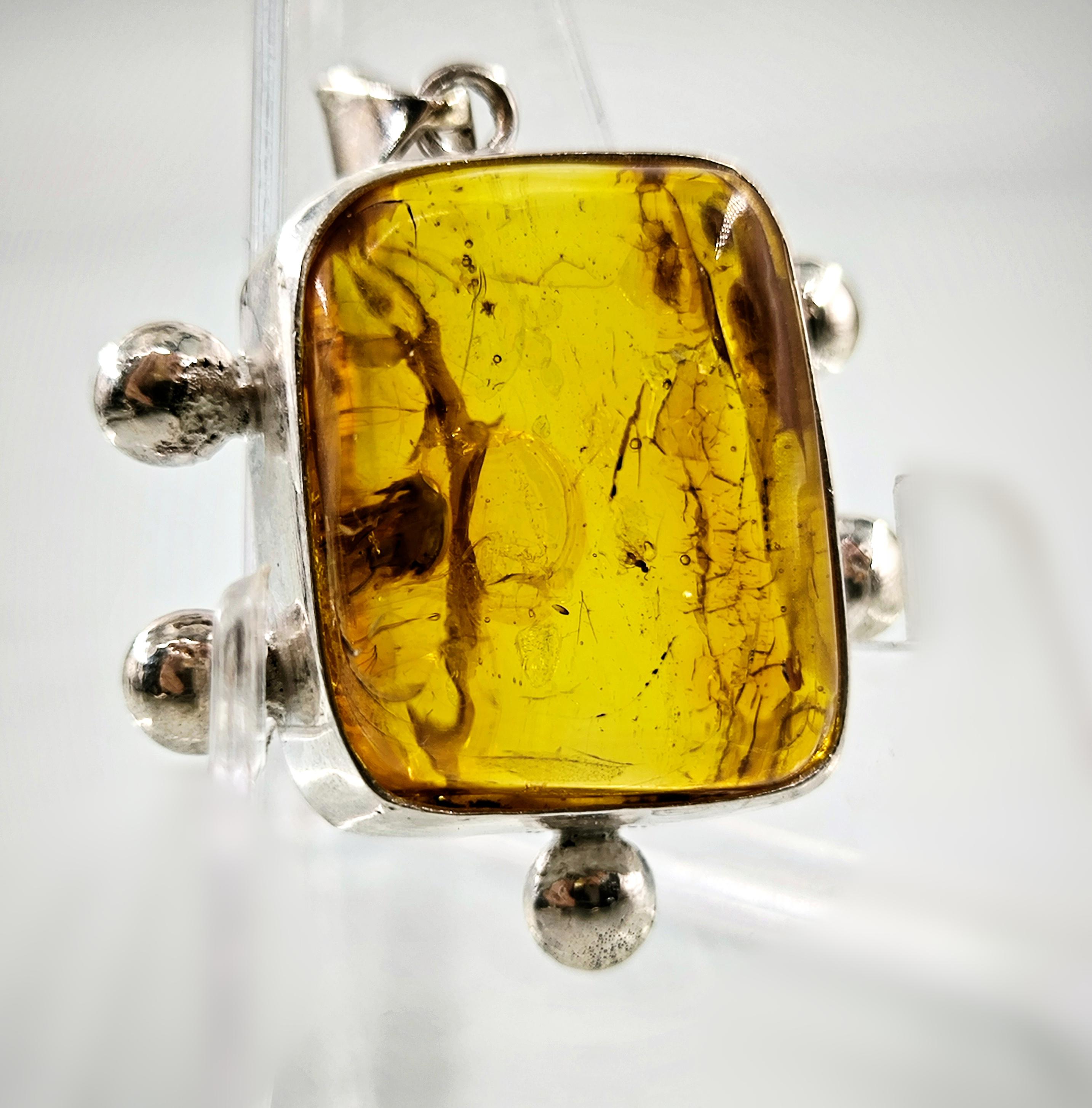 İçerisinde doğanın mumyaladığı ''PİRE'' fosili bulunan ÇOK NADİR çıkacak, Natürel Damla Kehribar 925 Ayar Gümüş çerçeveli ''mEdusA'' tasarım özel kehribar kolyemiz!