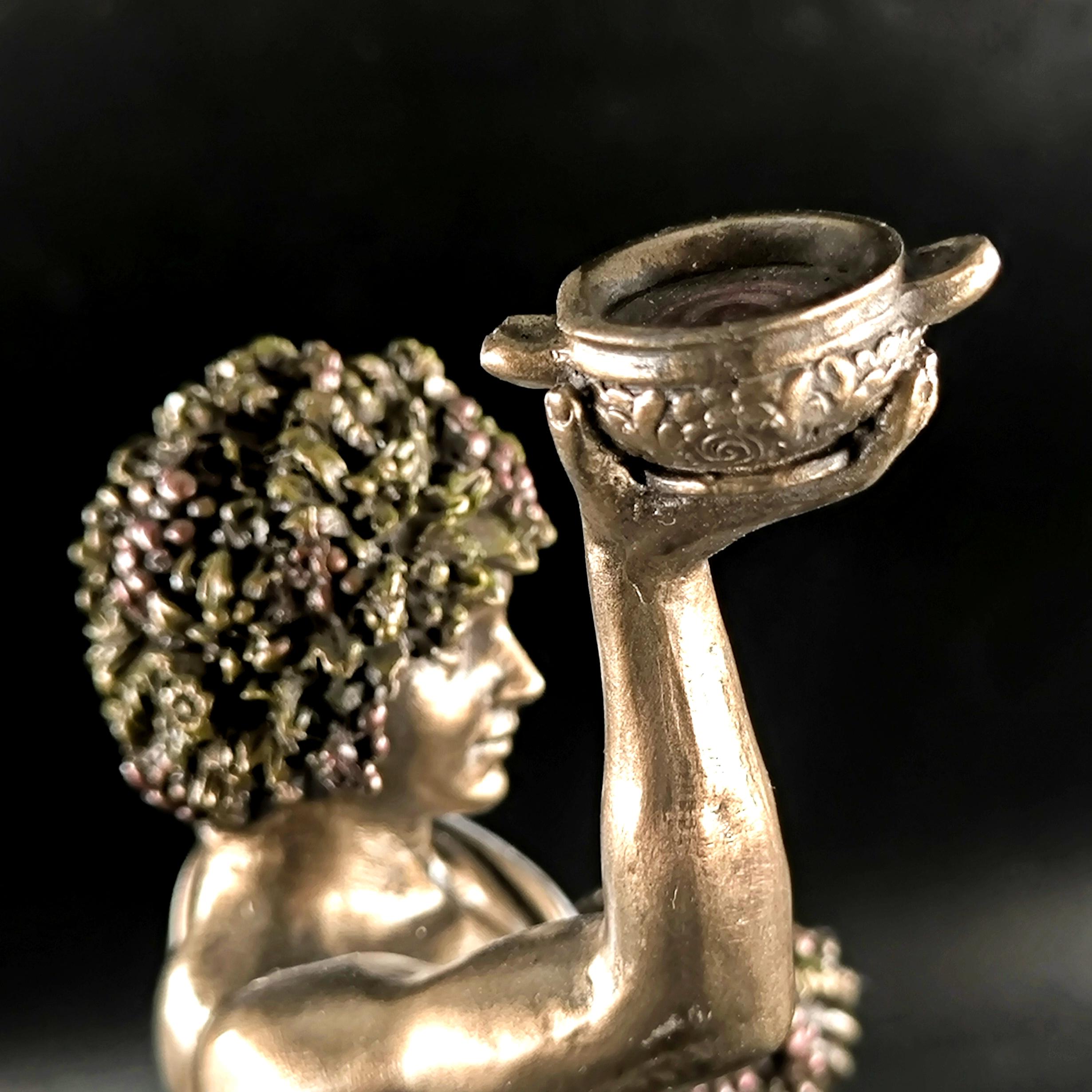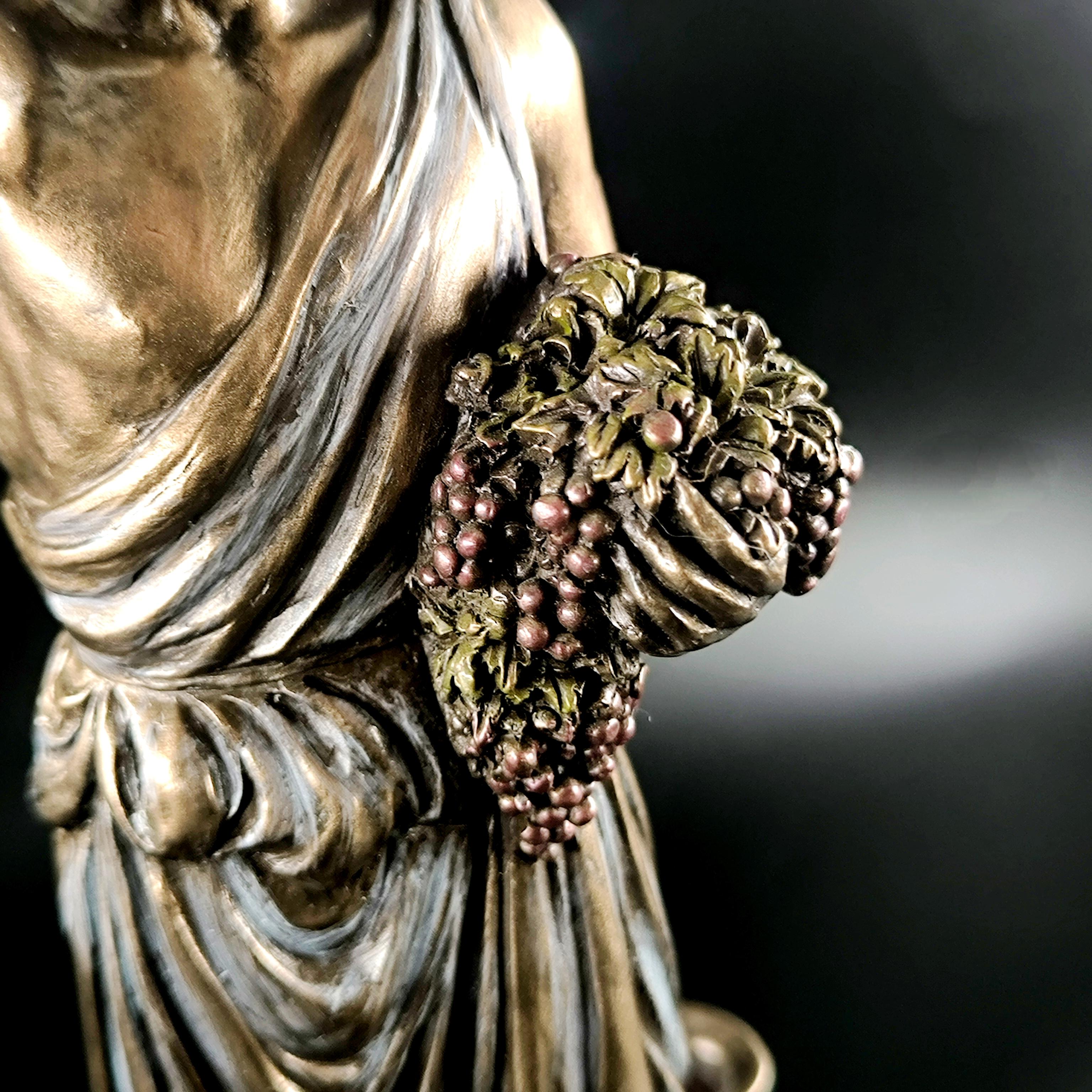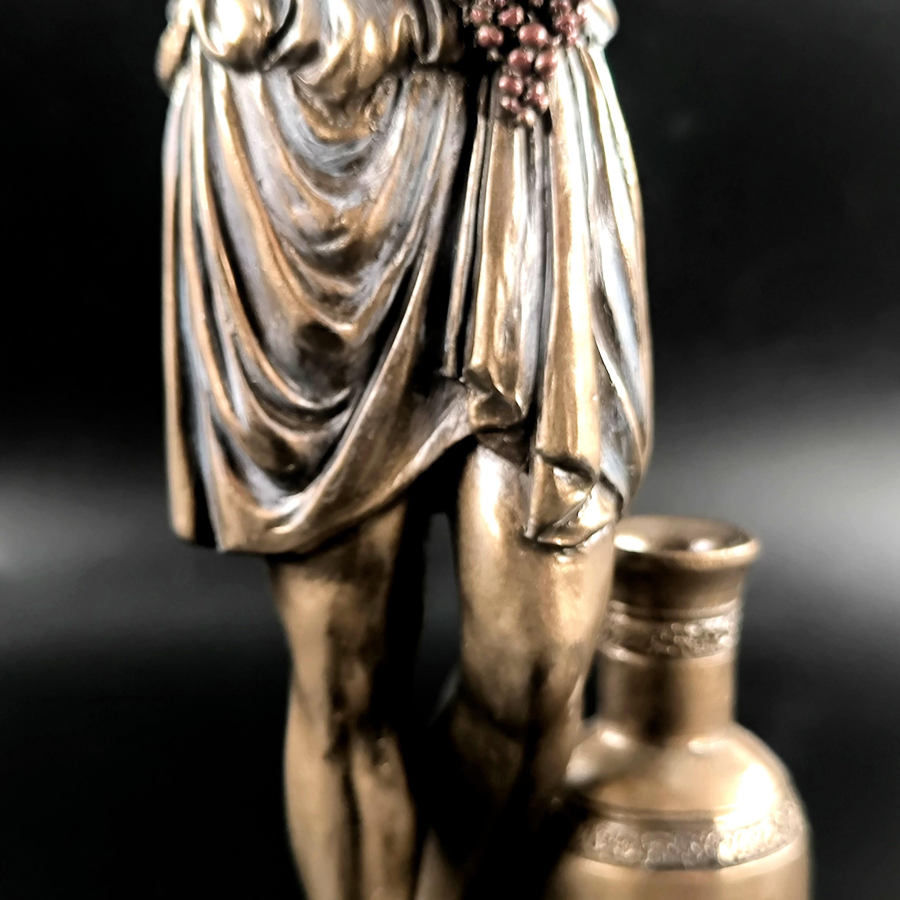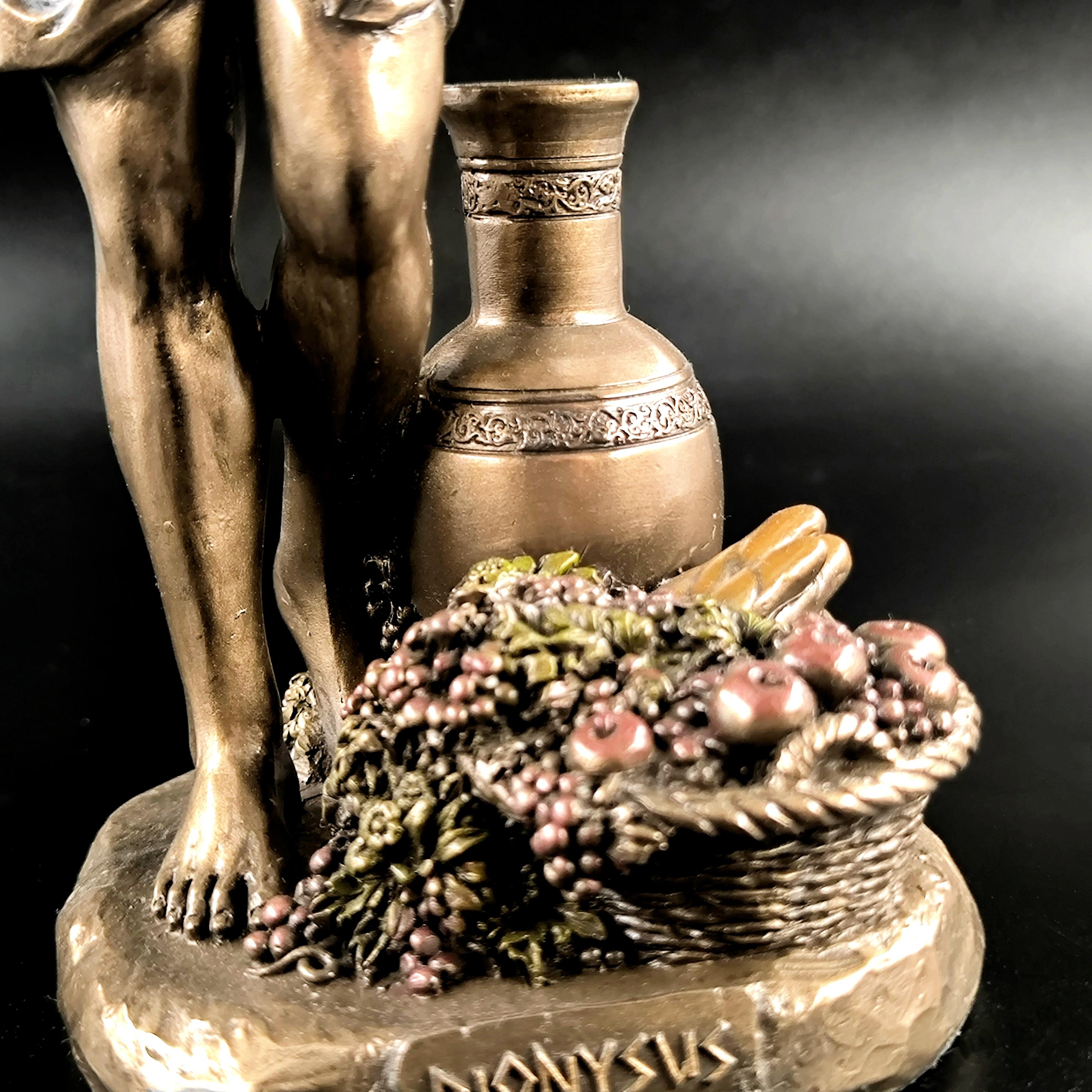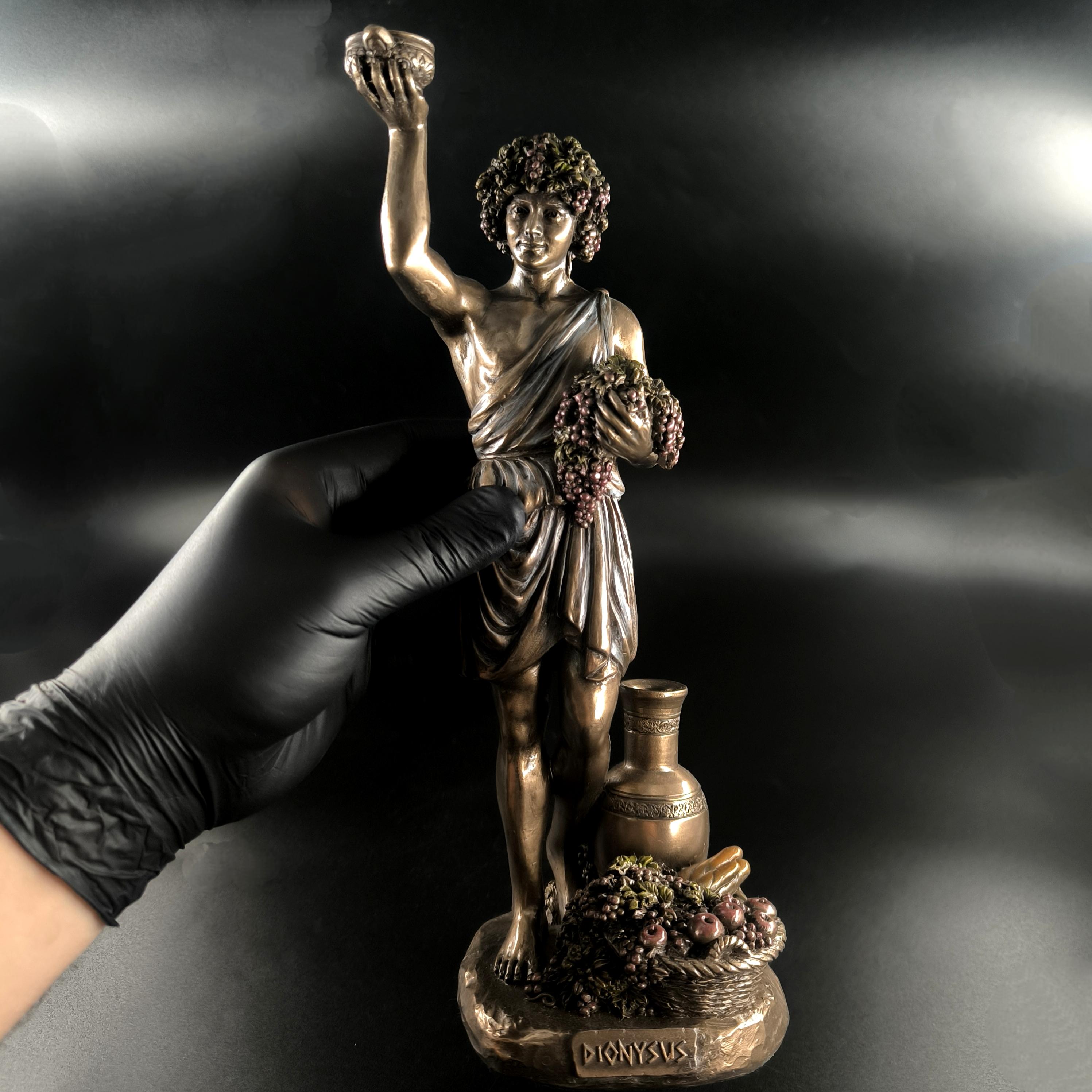 Veronese imzalı Dionysos heykeli, şarap, bereket ve coşkun yaşam enerjisinin tanrısını en ince detaylarıyla betimleyen, klasik mitolojinin güçlü sembollerinden biridir; elinde tuttuğu kadehle özgürlüğü ve neşeyi, kolundaki üzüm salkımlarıyla bereketi ve bolluğu simgeleyen figür, bulunduğu ortama görkemli ve sanatsal bir atmosfer katar. Mermer ve kemik tozu karışımı özel bir madde ile şekillendirilmiş, usta sanatçılar tarafından itinayla boyanmış olup son derece gerçekçi ve detaylı bir işçiliğe sahiptir. Veronese markası dünya çapında işçilikteki ayrıntı ile öne çıkan saygın bir firmadır; marka ve tarih damgası ürünün üzerinde yer almaktadır.