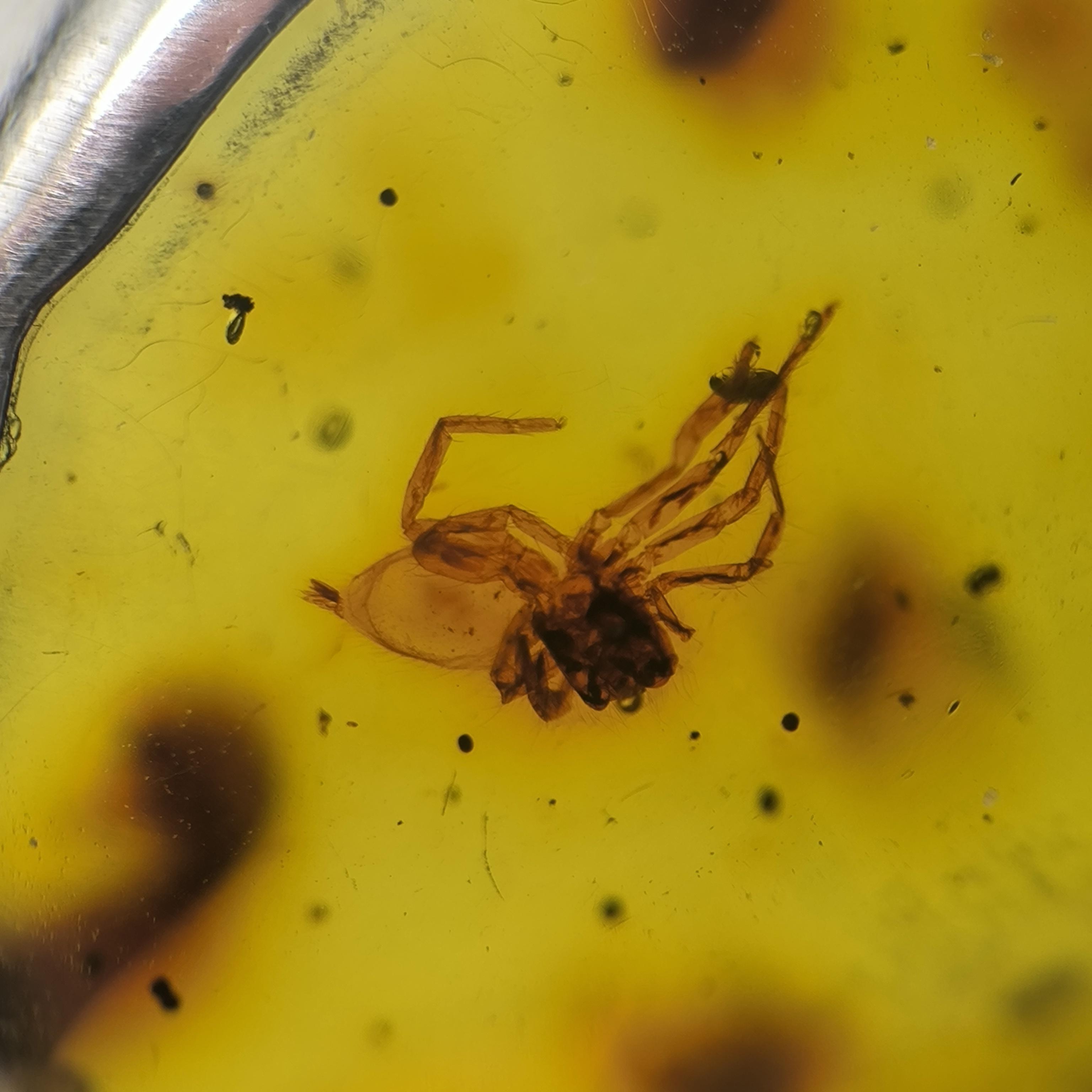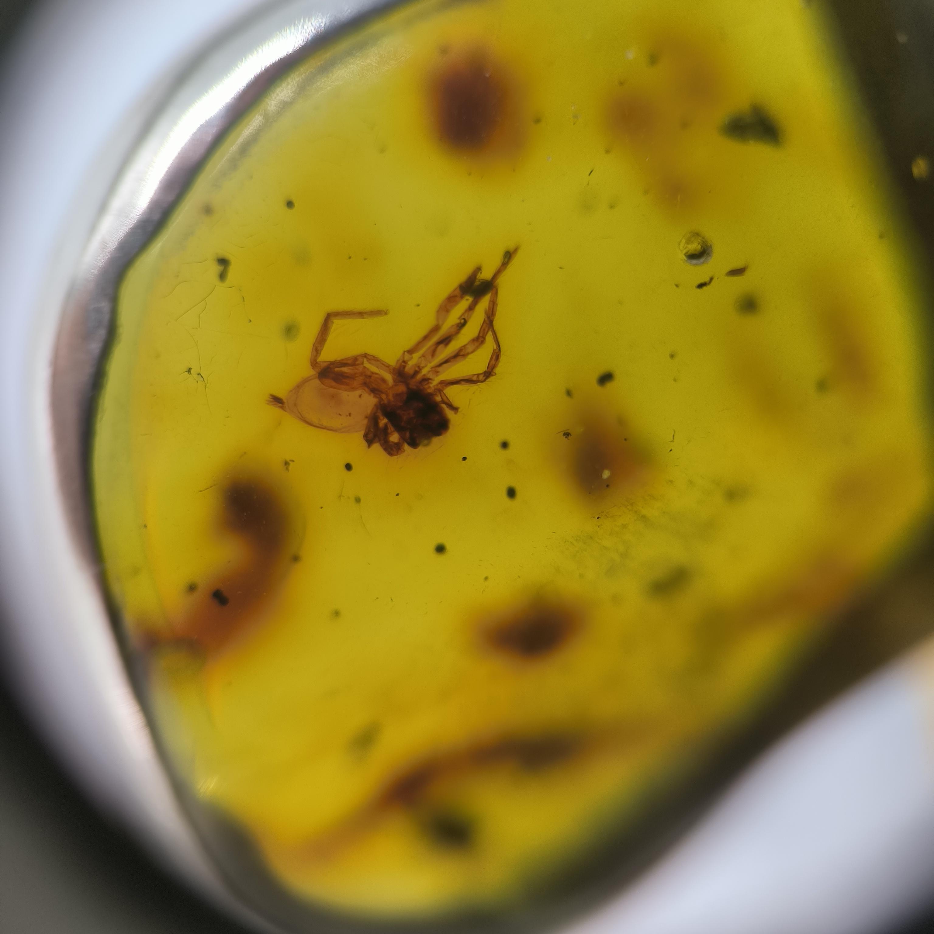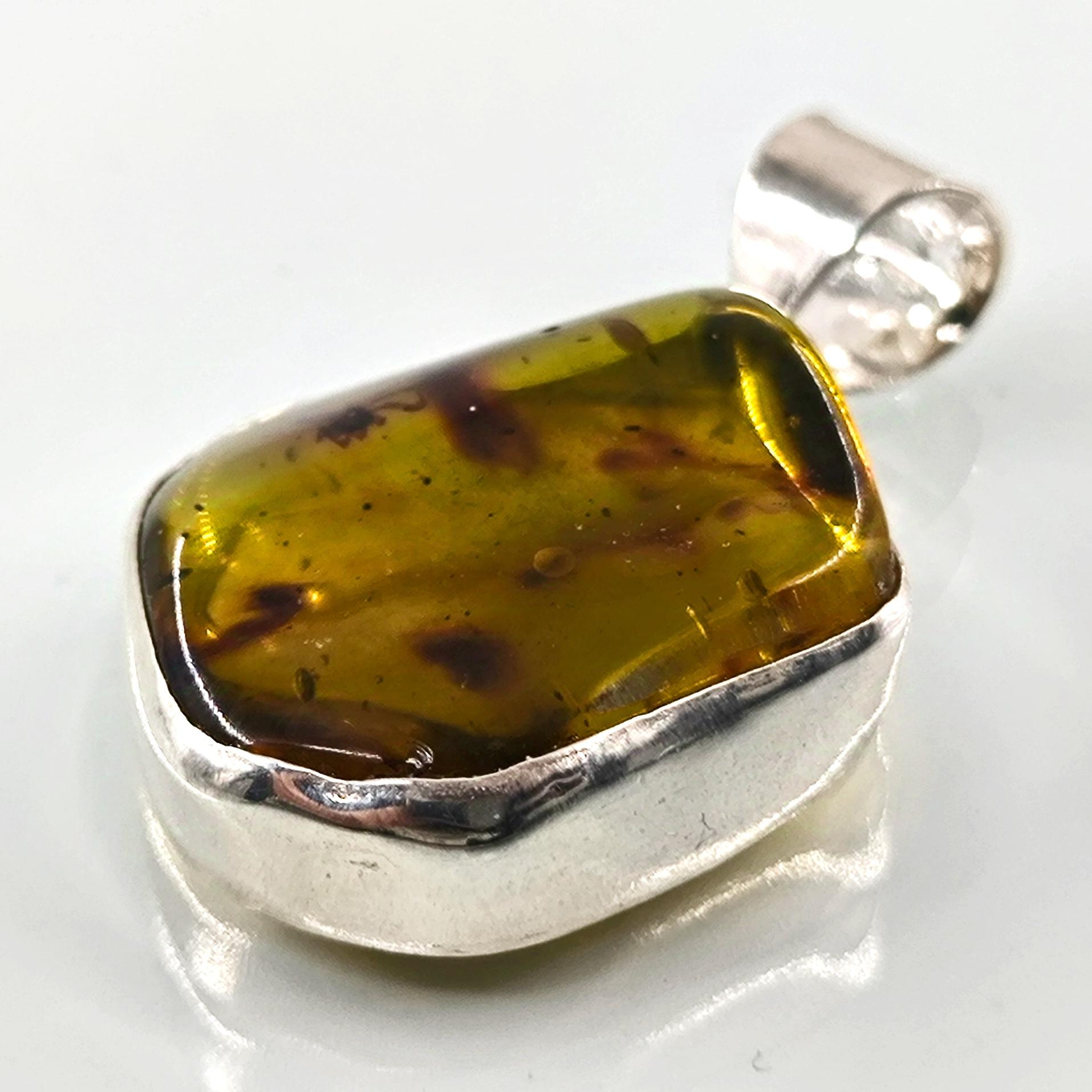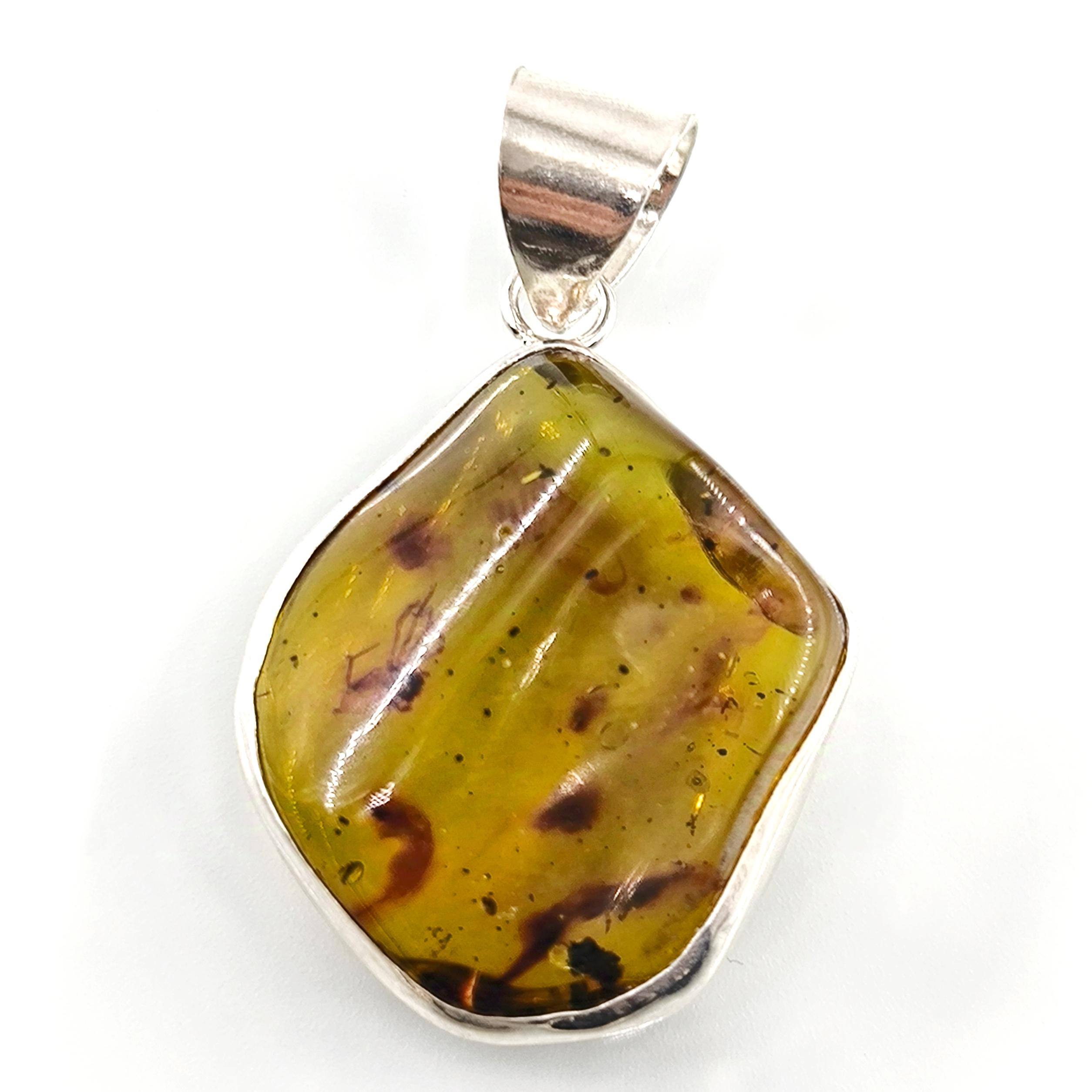 İçerisinde örümcek sinek fosili bulunan Doğu Karayipler Damla Kehribar 925 Ayar Gümüş çerçeveli kolyemiz!
