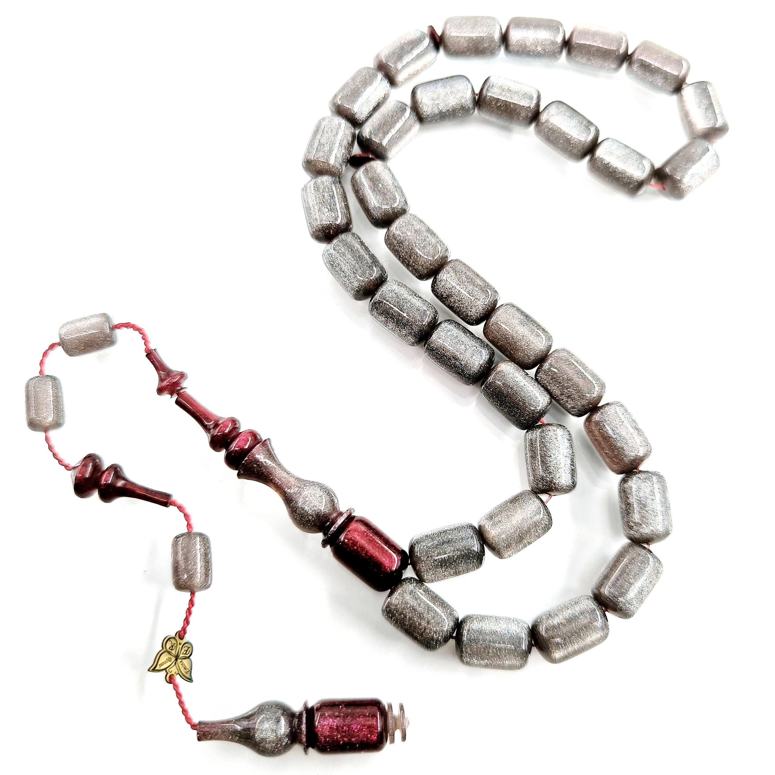 Malzeme: Kül rengi Sedefli & simli sıkma kehribar