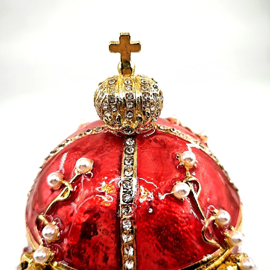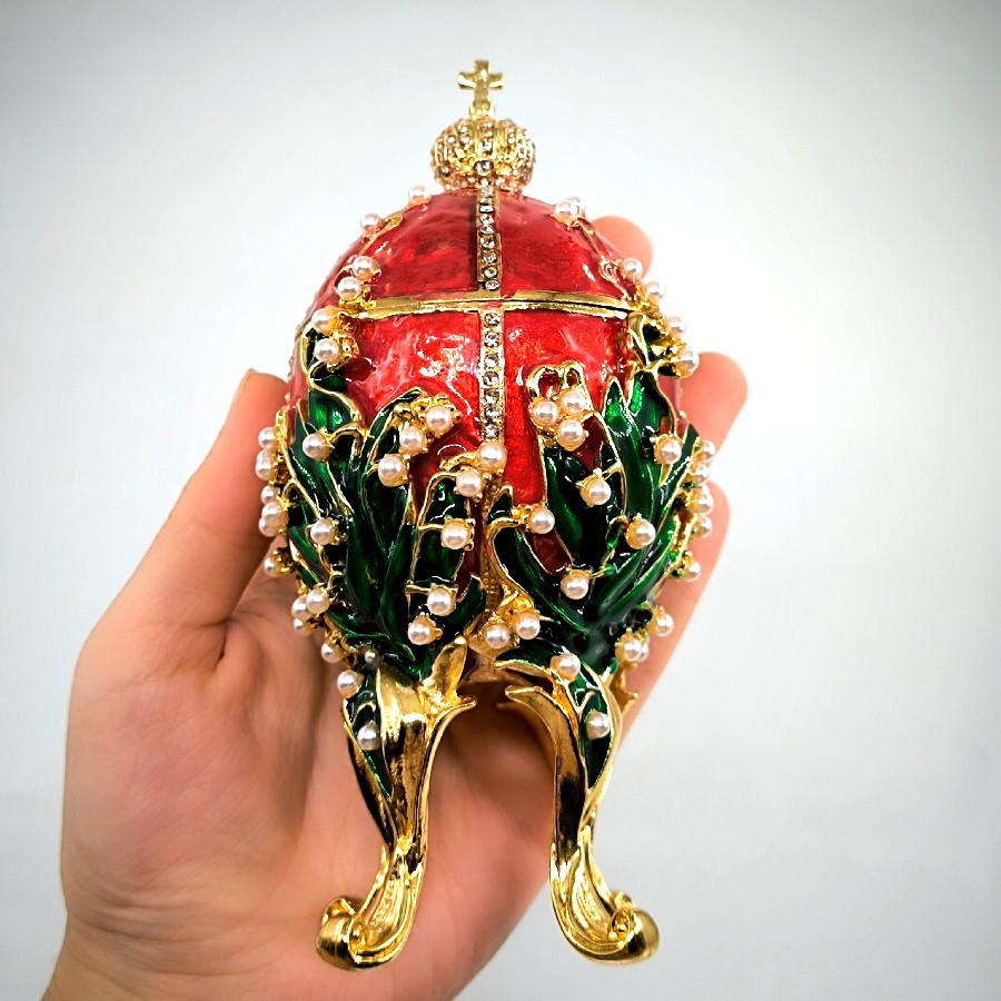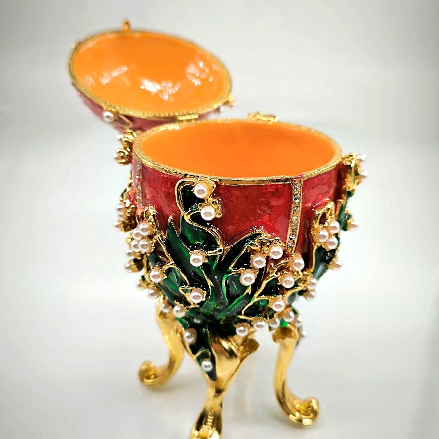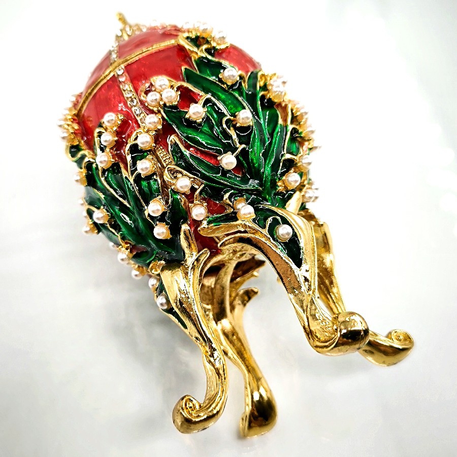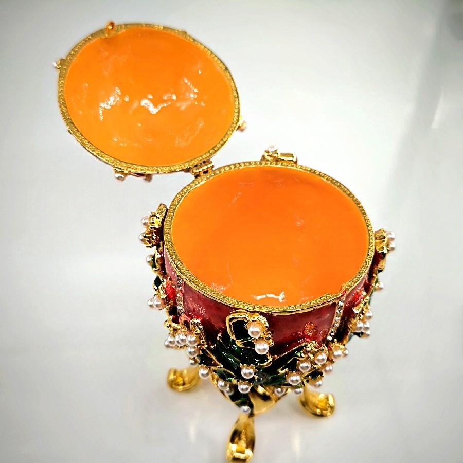Bu özel mücevher kutusu, Faberge'nin güçlü mirasını yansıtan zarif bir yumurta formuna sahiptir. Yumurta, doğanın yeniden doğuş ve büyüme sembolüdür. Bu lüks tasarım da aynı şekilde, yeniden doğuş ve büyümeyi sembolize eder ve sahip olduğu Swarovski taşları ile de göz kamaştırıcı bir parlaklığa sahiptir.