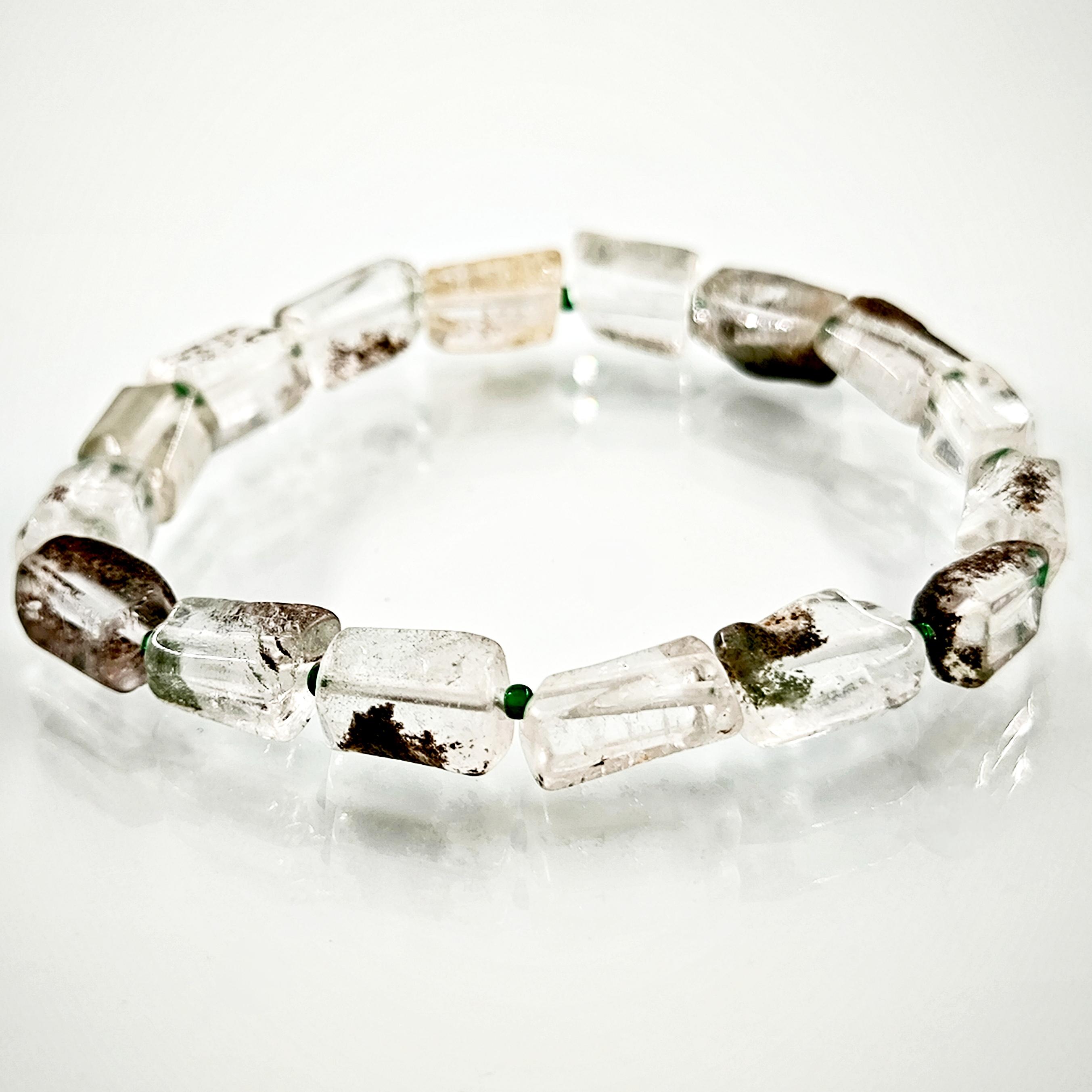 Bu bileklik, doğal kuvars taşlarının el işçiliğiyle özenle seçilerek bir araya getirilmesiyle oluşmuştur. Her taşın kendine has bir enerjisi ve görünümü vardır, bu nedenle her bileklik benzersizdir. Tasarımında kullanılan kuvars taşları, bedeninizle uyum içinde çalışarak enerjinizi dengelemeye ve sakinleştirmeye yardımcı olabilir.
