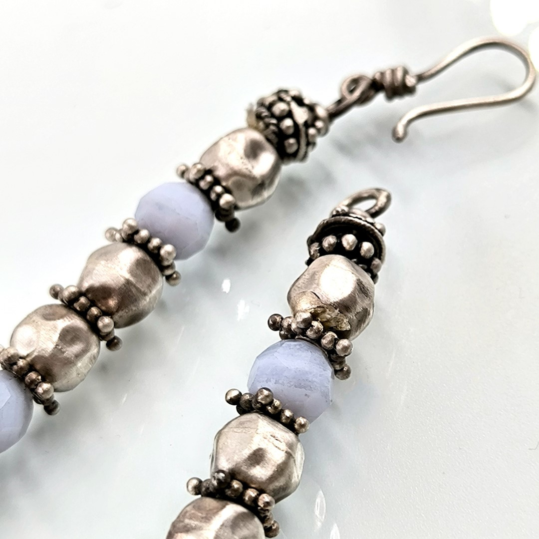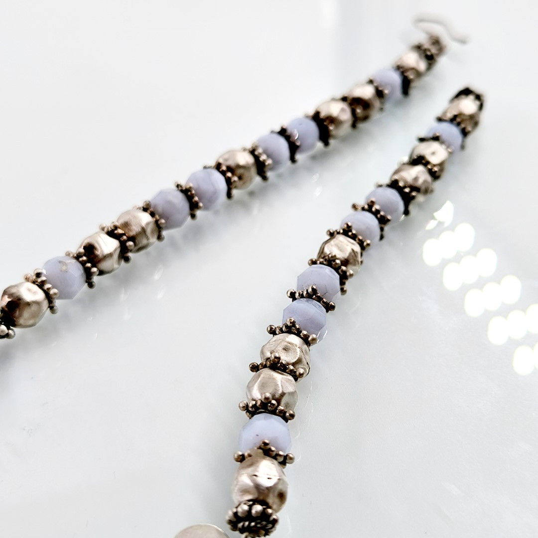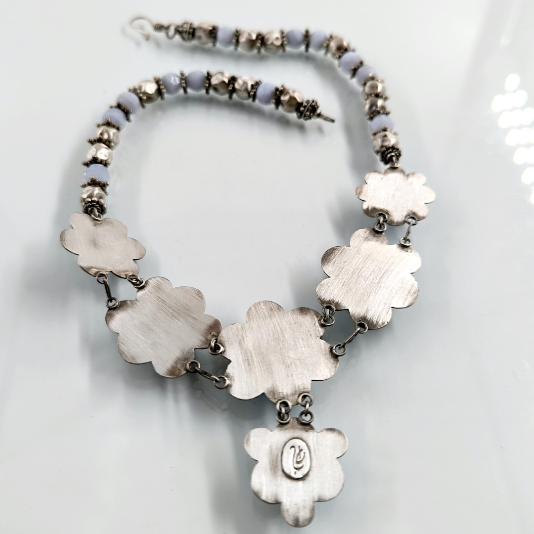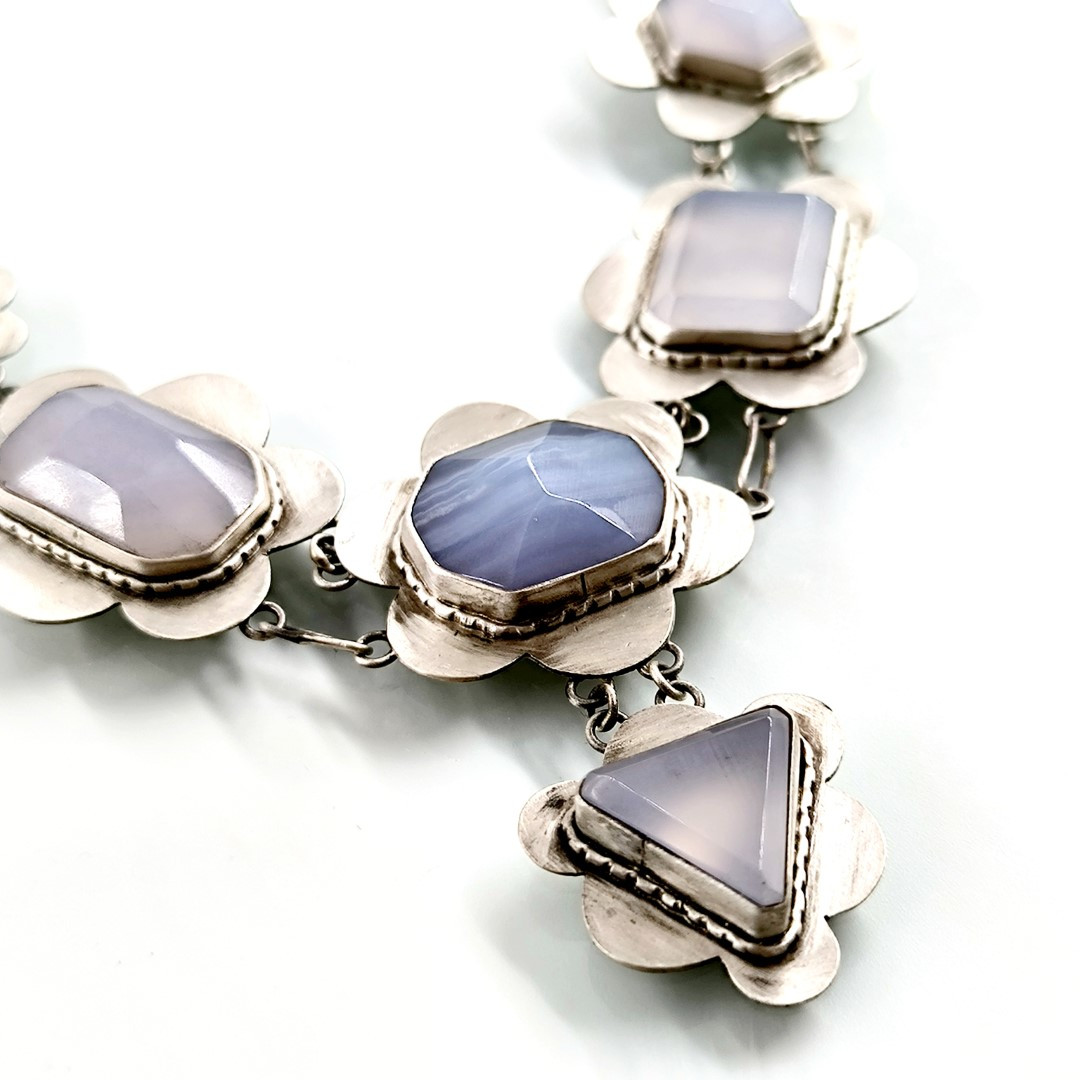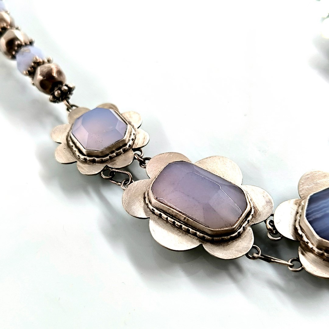 Eski vintage yapım 925 Ayar Gümüşten sanatçı imzalı Kalsedon taşlarla bezeli müthiş bir doğaltaş gerdanlık!