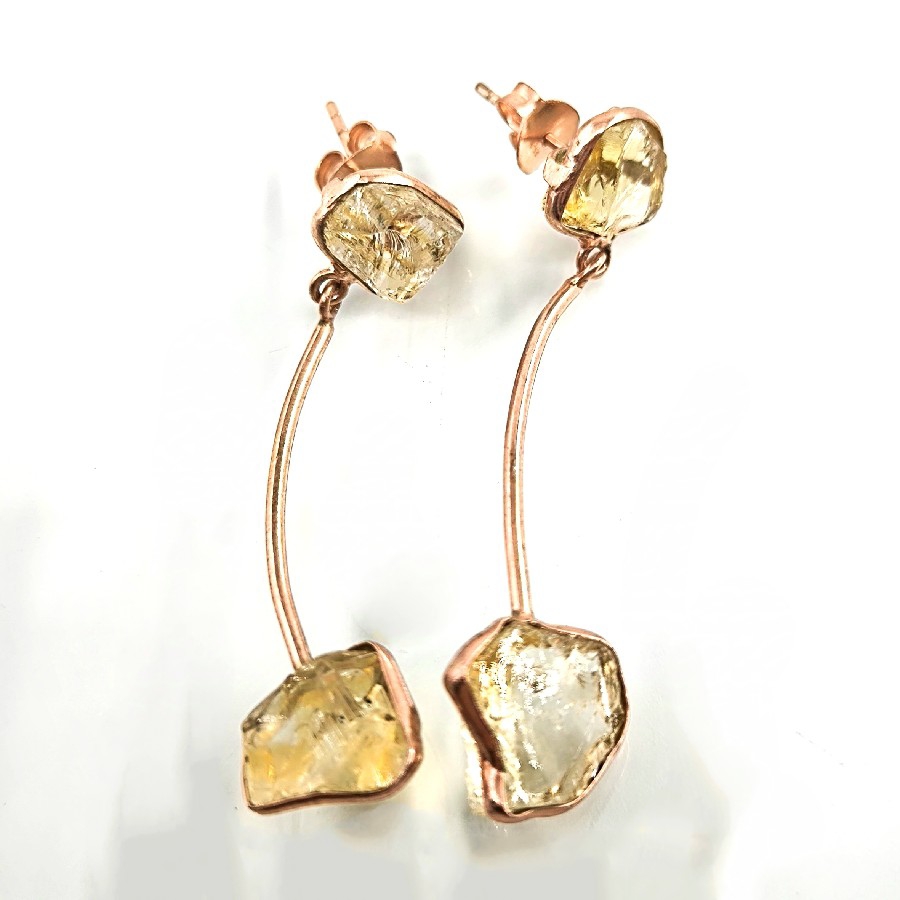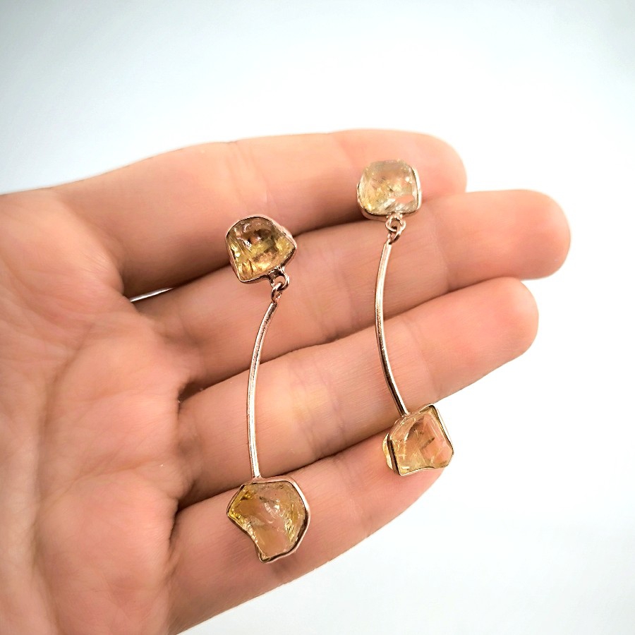 HAM SİTRİN TAŞLI KÜPELER, göz alıcı tasarımı ve zarif görünümüyle dikkatleri üzerine çeken bir üründür. Doğadan ilham alınarak tasarlanmış olan bu küpelerin her biri özenle seçilmiş doğal ham sitrin taşlarından üretilmiştir.