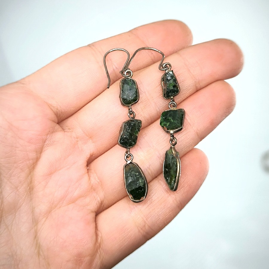 Doğanın gücüyle birleşen zarif tasarımı ile bu ham turmalin taşlı küpeler, her kadının isteyeceği bir aksesuar. Her zaman doğal ve pozitif bir ruh halinde kalmak, aynı zamanda da şık ve zarif görünmek isterseniz, bu küpeler tam size göre. Kendinizi ve sevdiklerinizi doğanın büyülü dünyasıyla şımartın ve bu özel küpelerle stilinize yeni bir boyut katın.