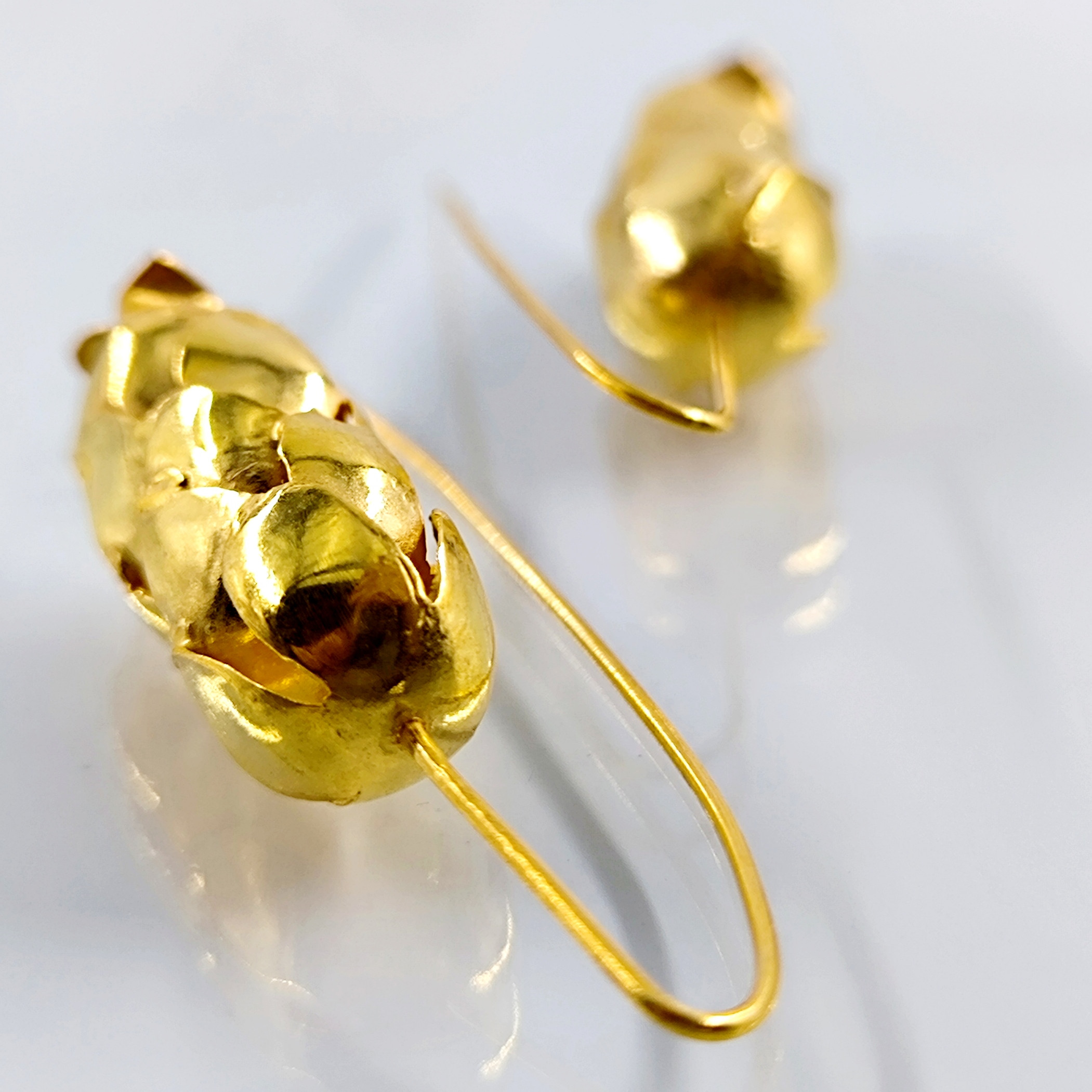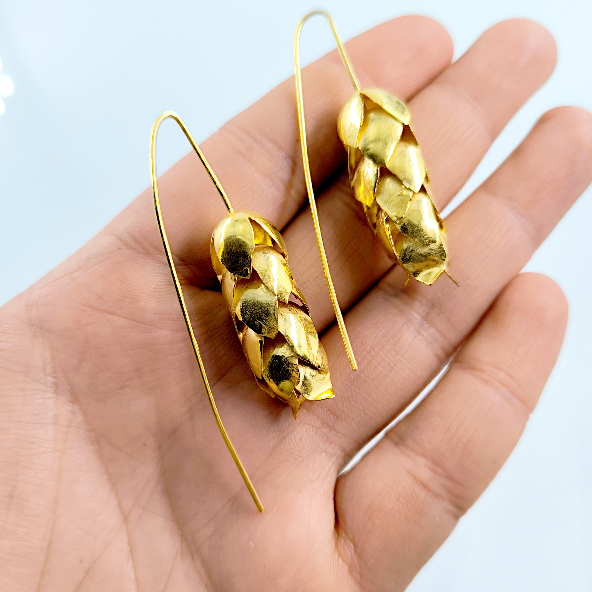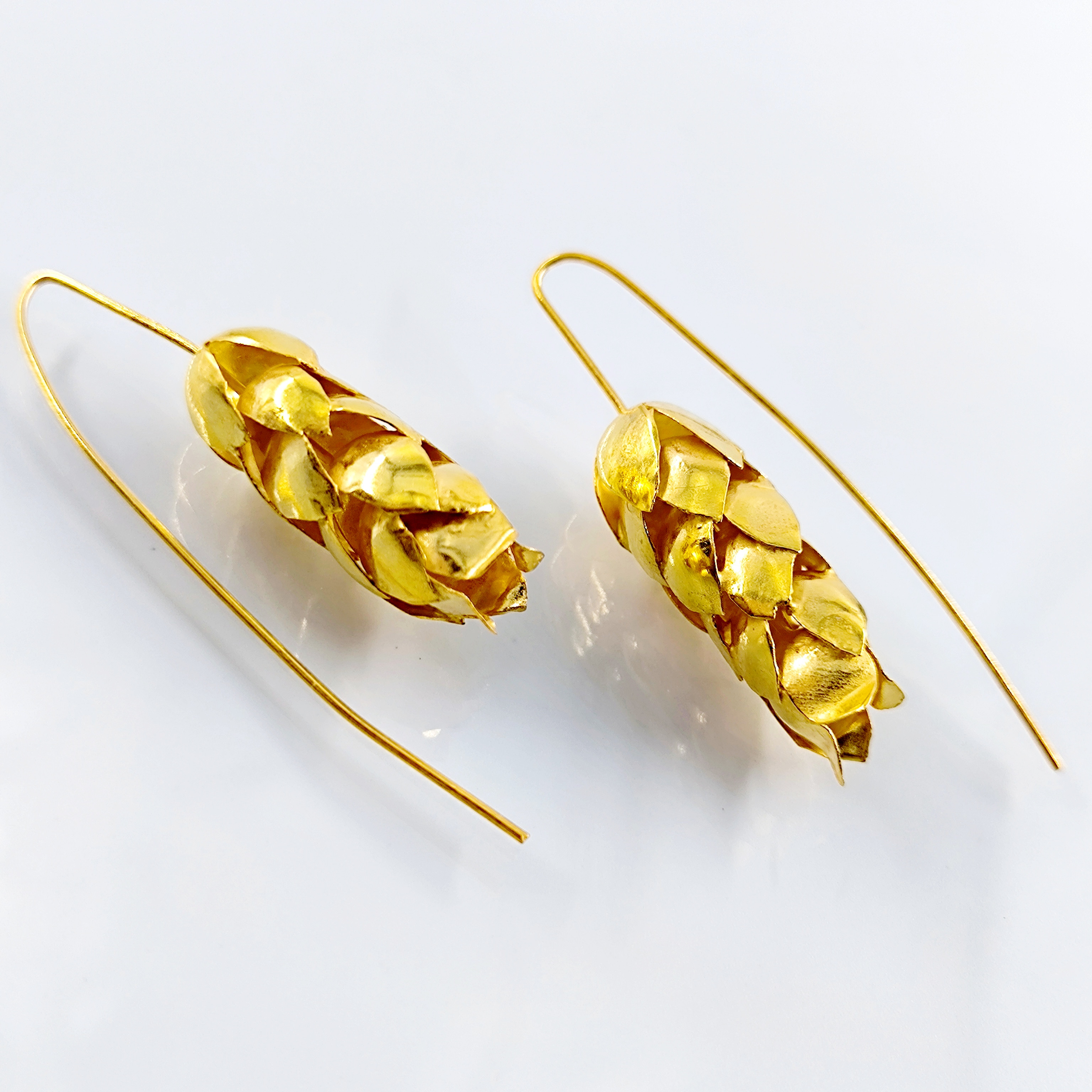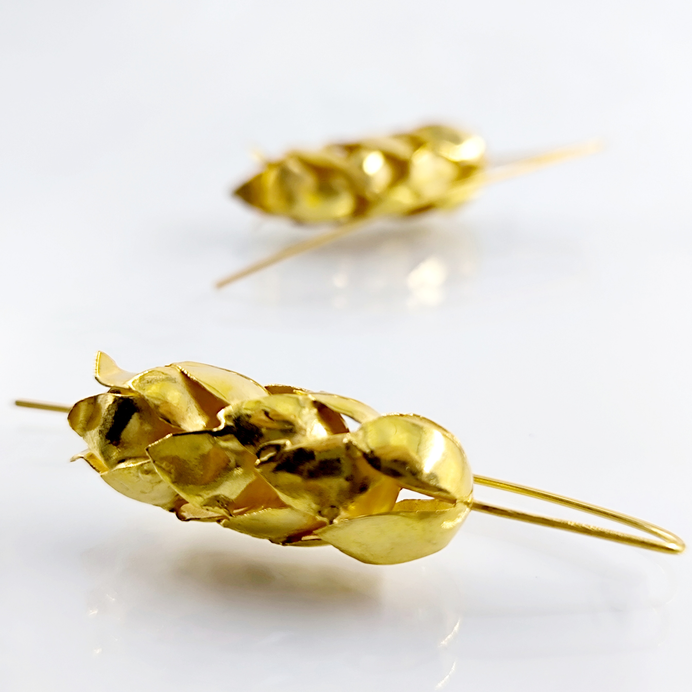 Helenistik dönem yansıması olan Antik stilde Başak formlu küpelerimiz ! Tamamen gümüş üzeri altın kaplama olup tamamı el işçiliğimiz olan eşsiz bir mücevher!