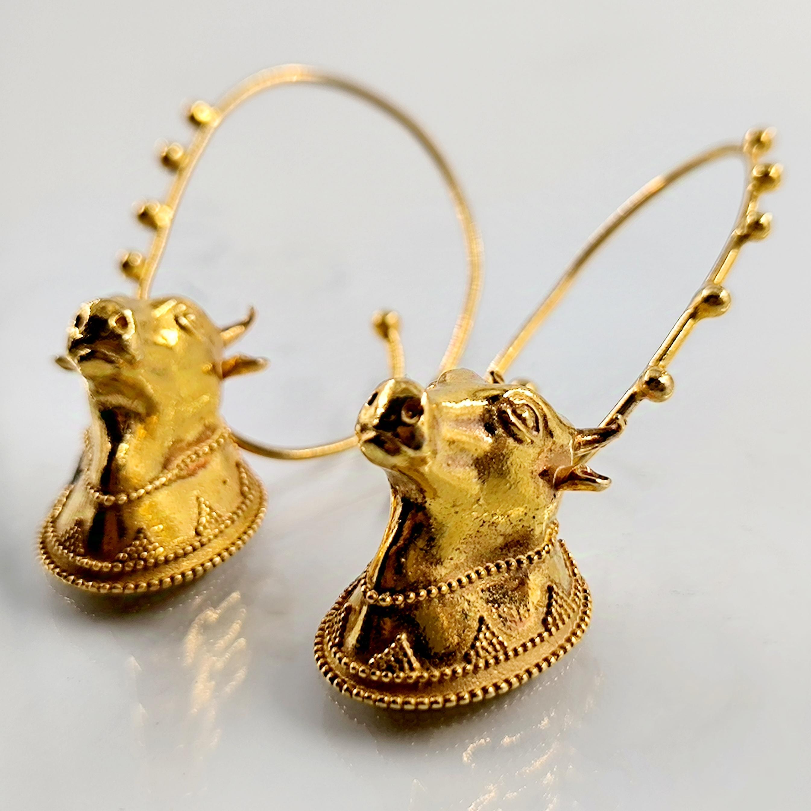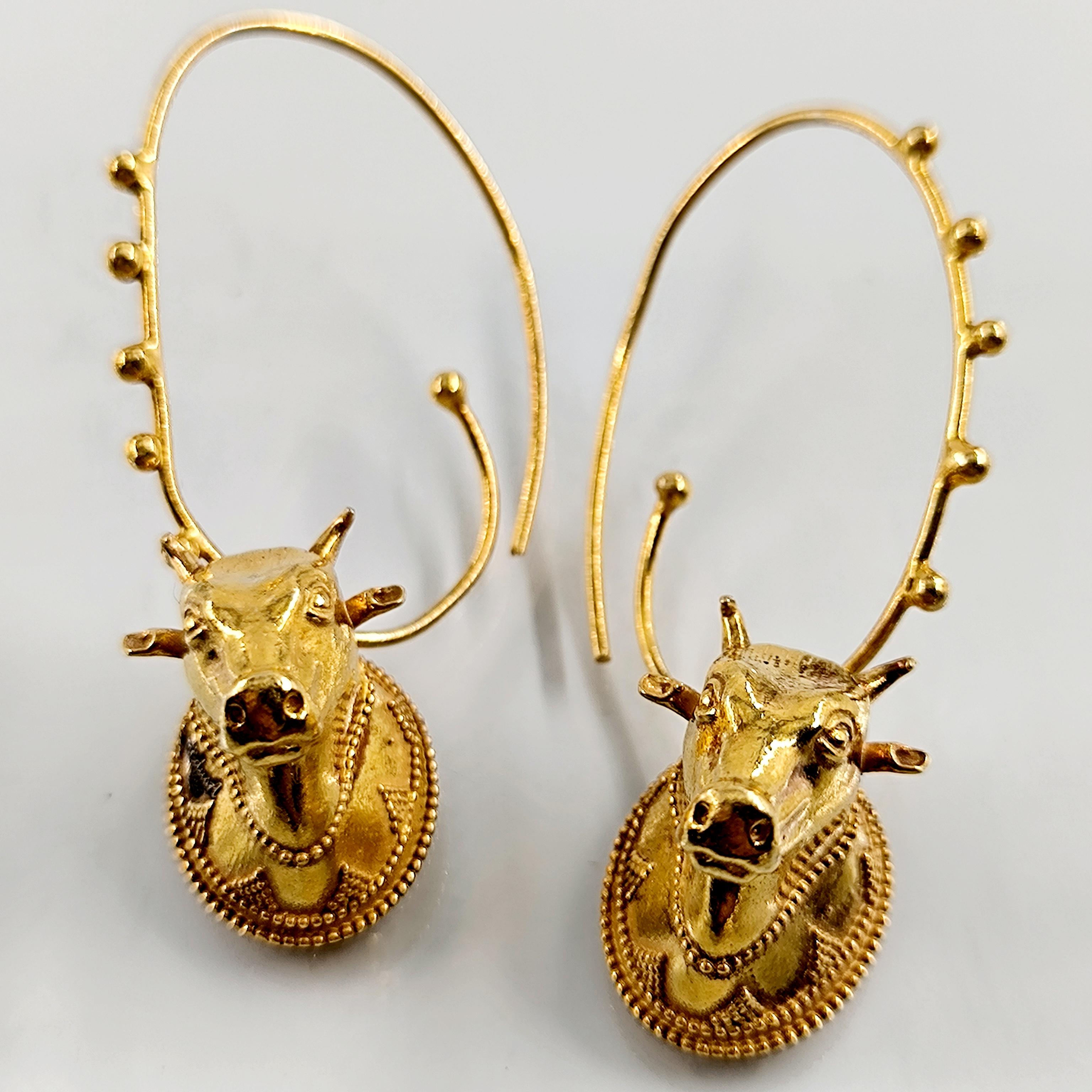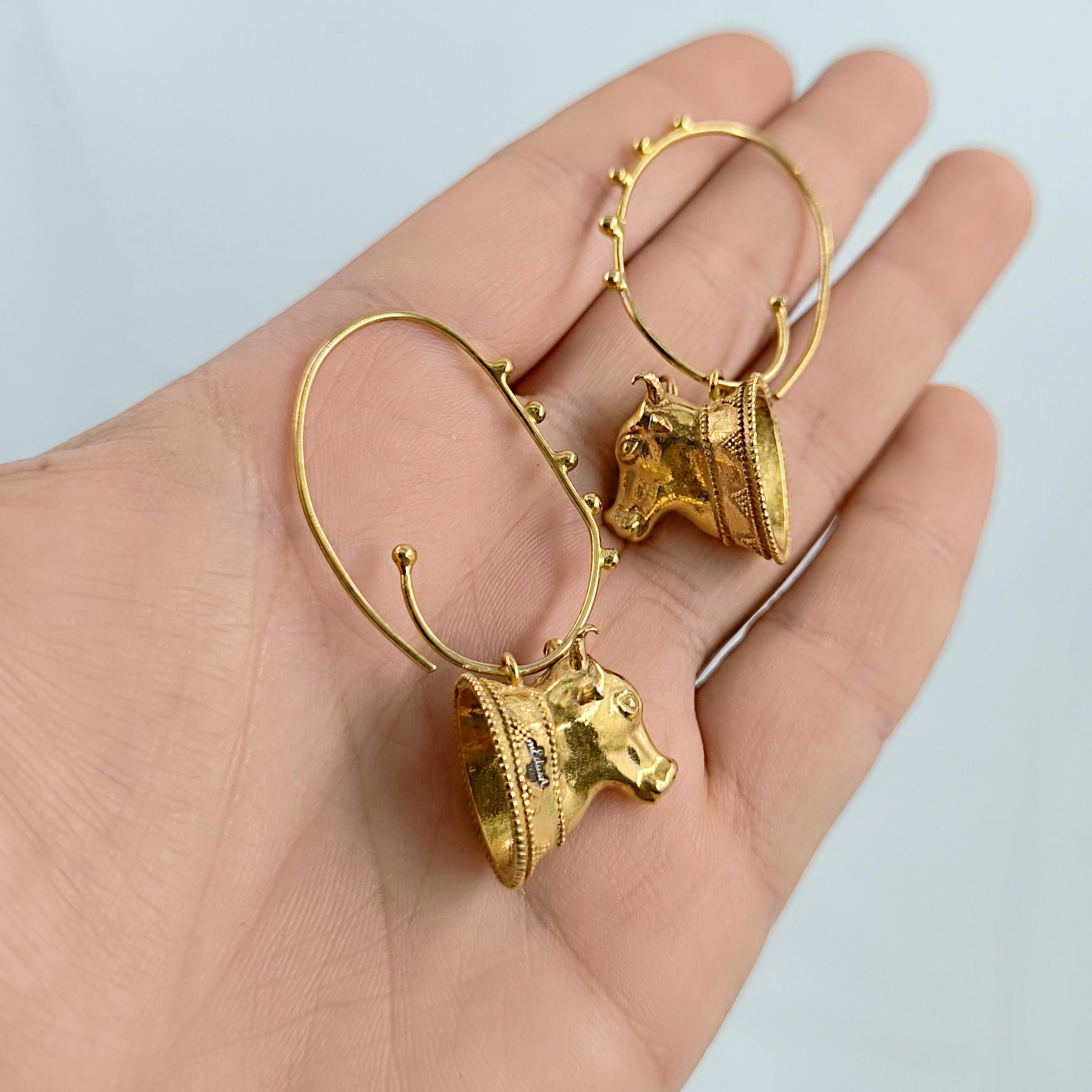 Helenistik dönem mücevherlerinden ilham alarak tasarladığımız, Boğa başlı yoğun güverse işçilikli İnek başlı 925 Ayar Gümüş üzeri altın kaplama küpelerimiz!