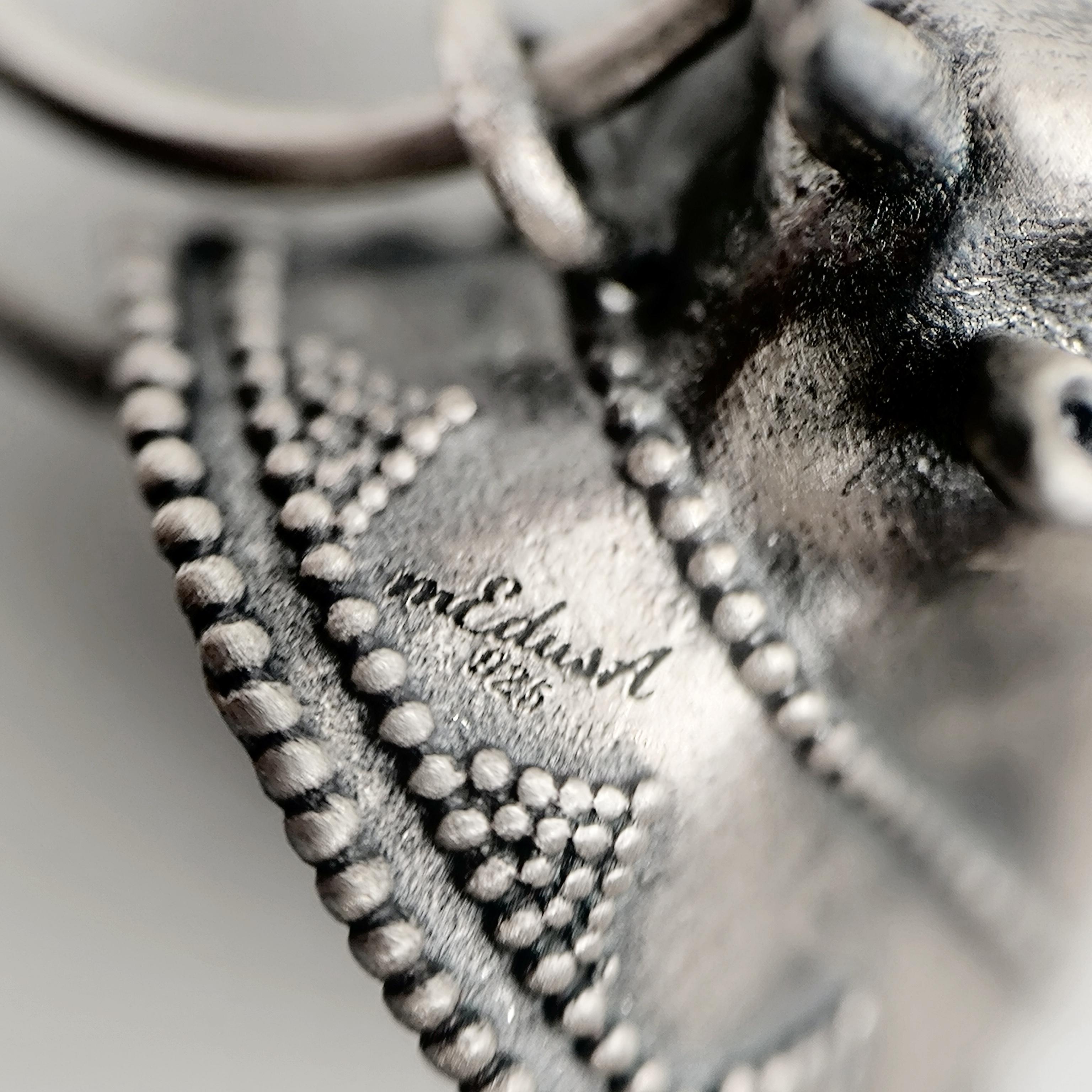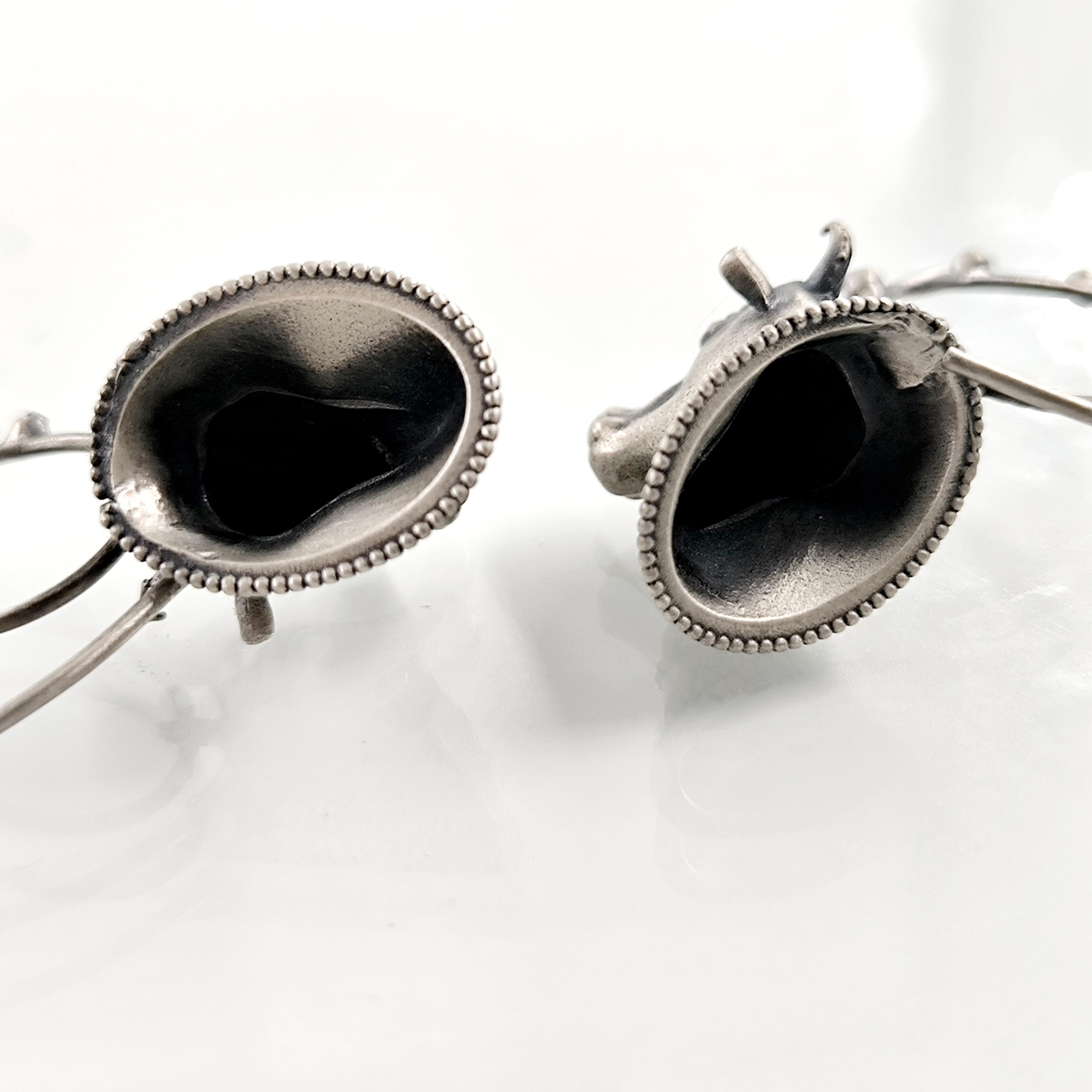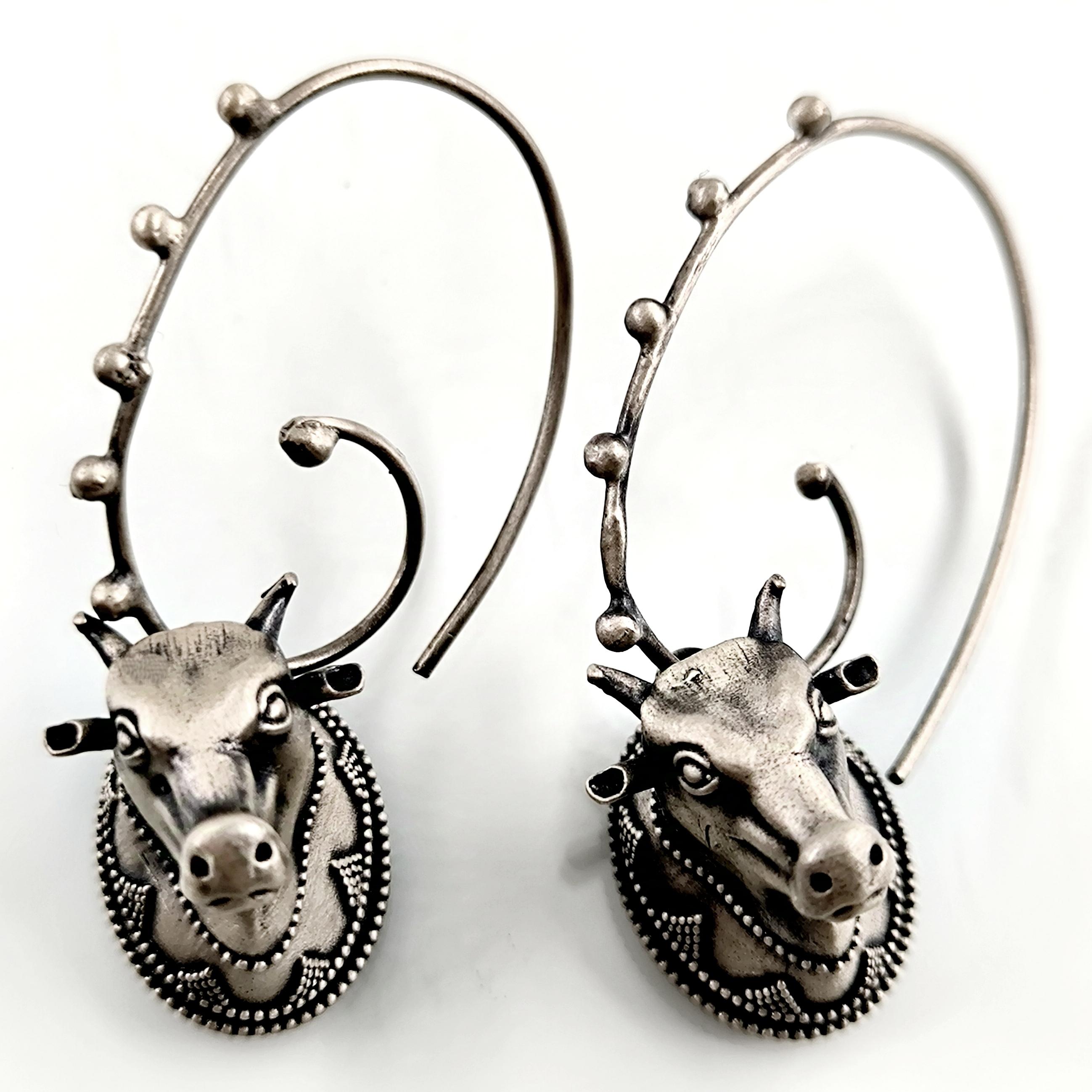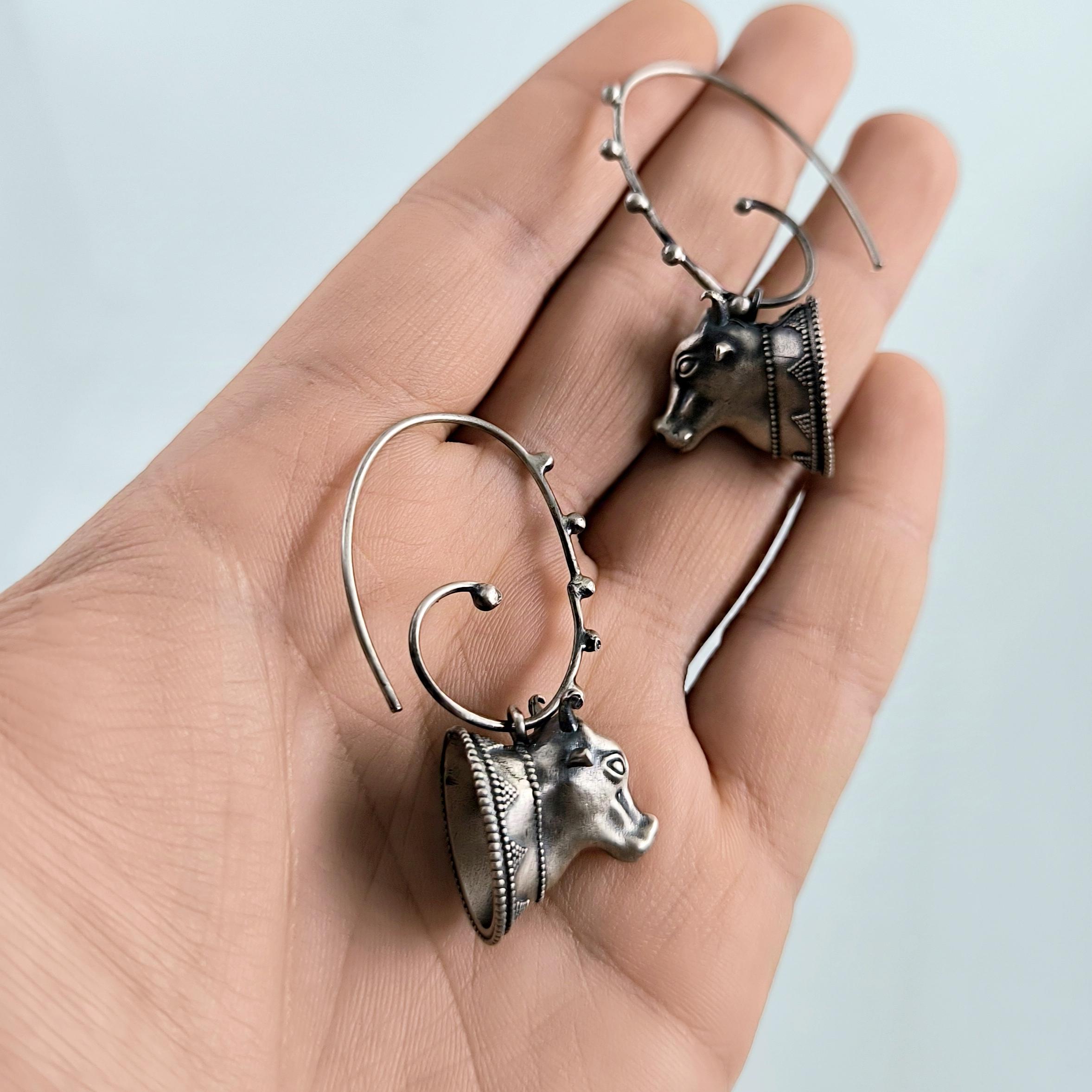 Helenistik dönem mücevherlerinden ilham alarak tasarladığımız, Boğa başlı yoğun güverse işçilikli İnek başlı 925 Ayar Gümüş küpelerimiz!