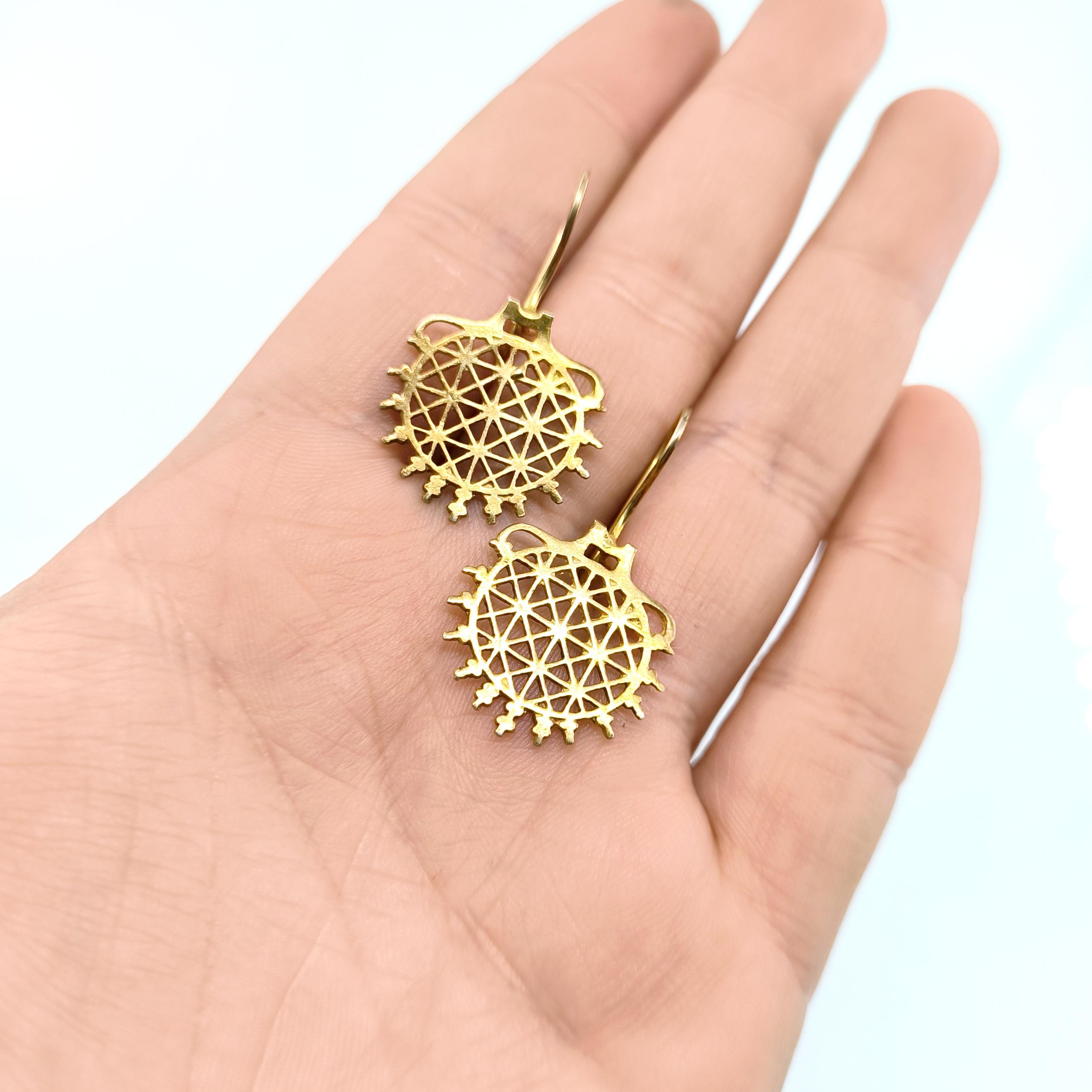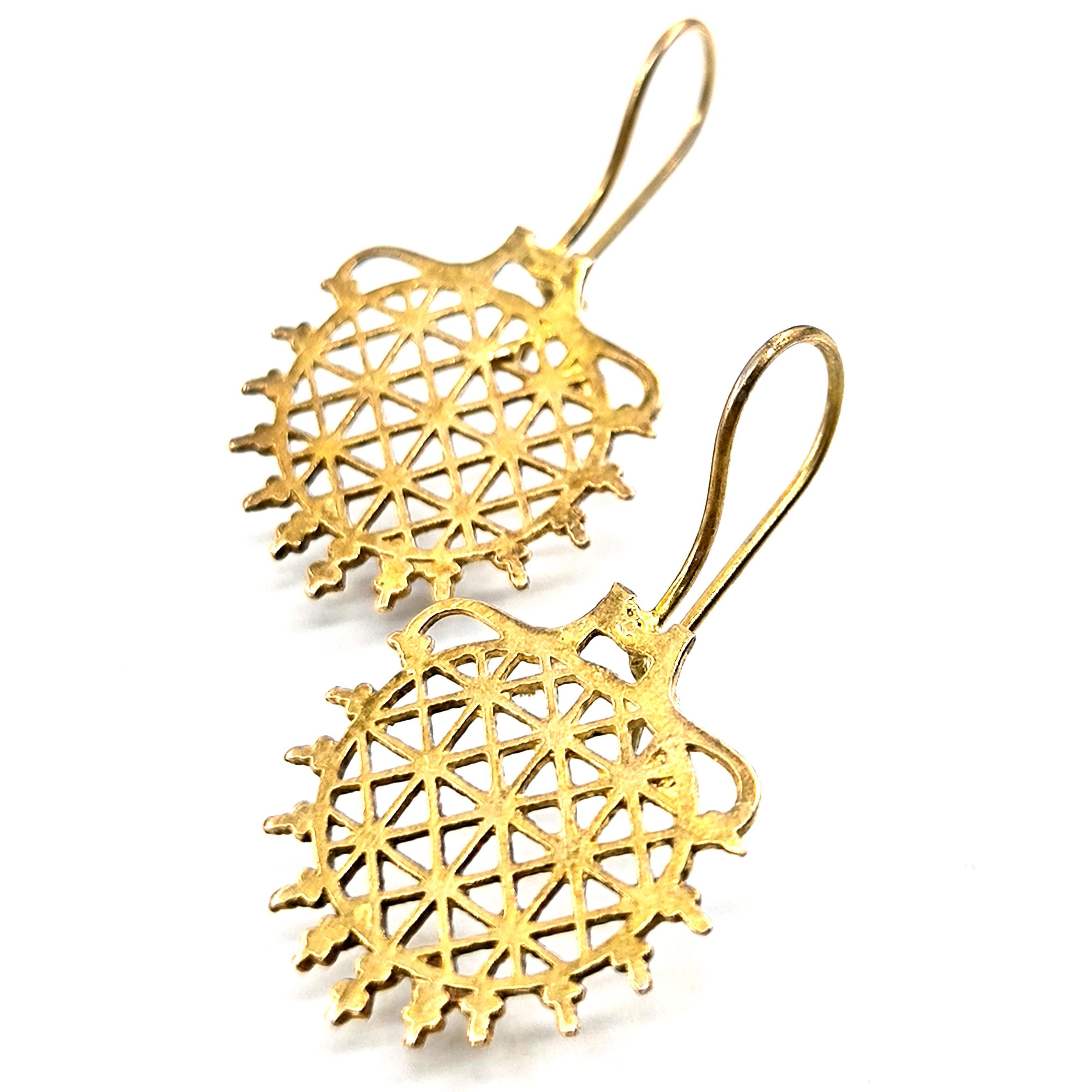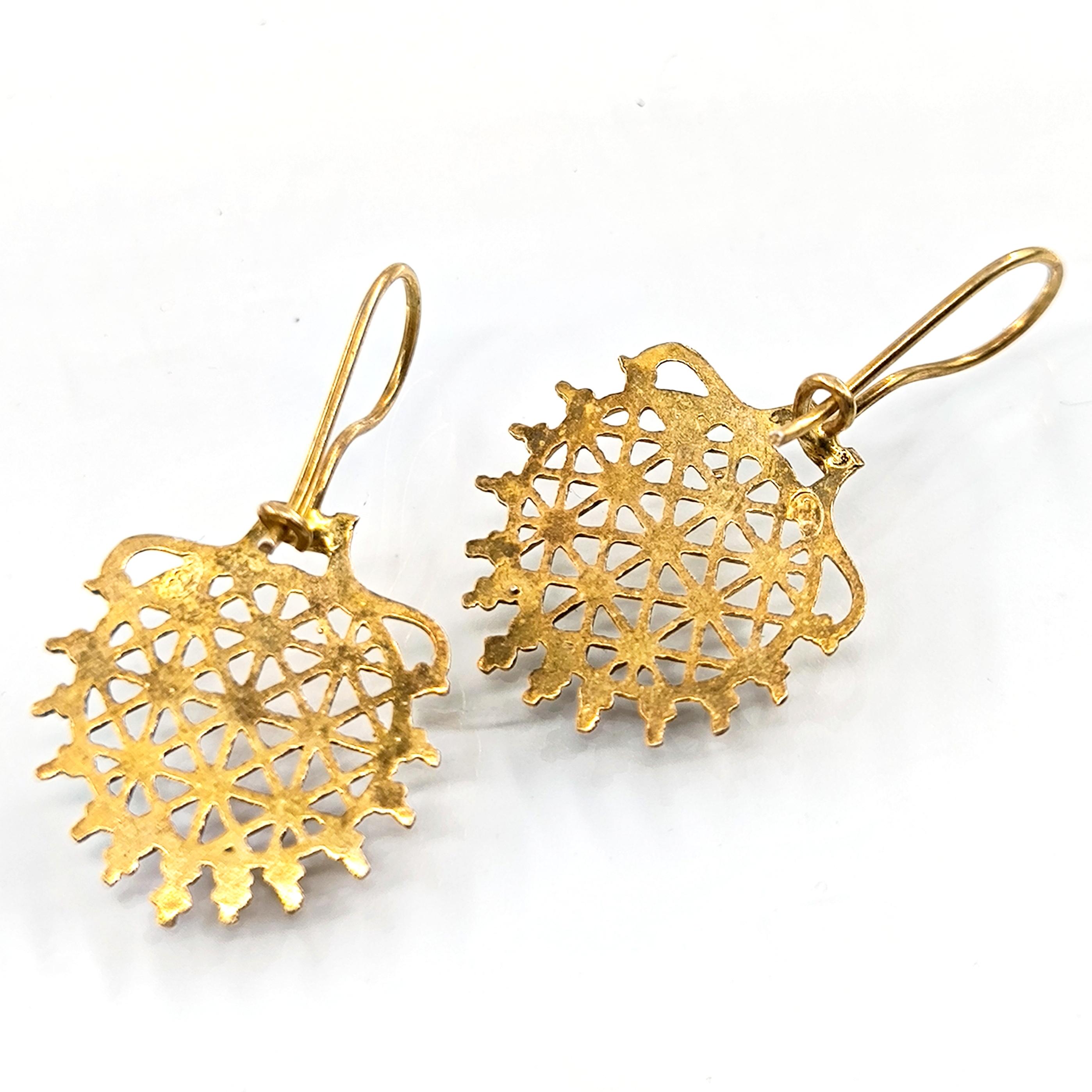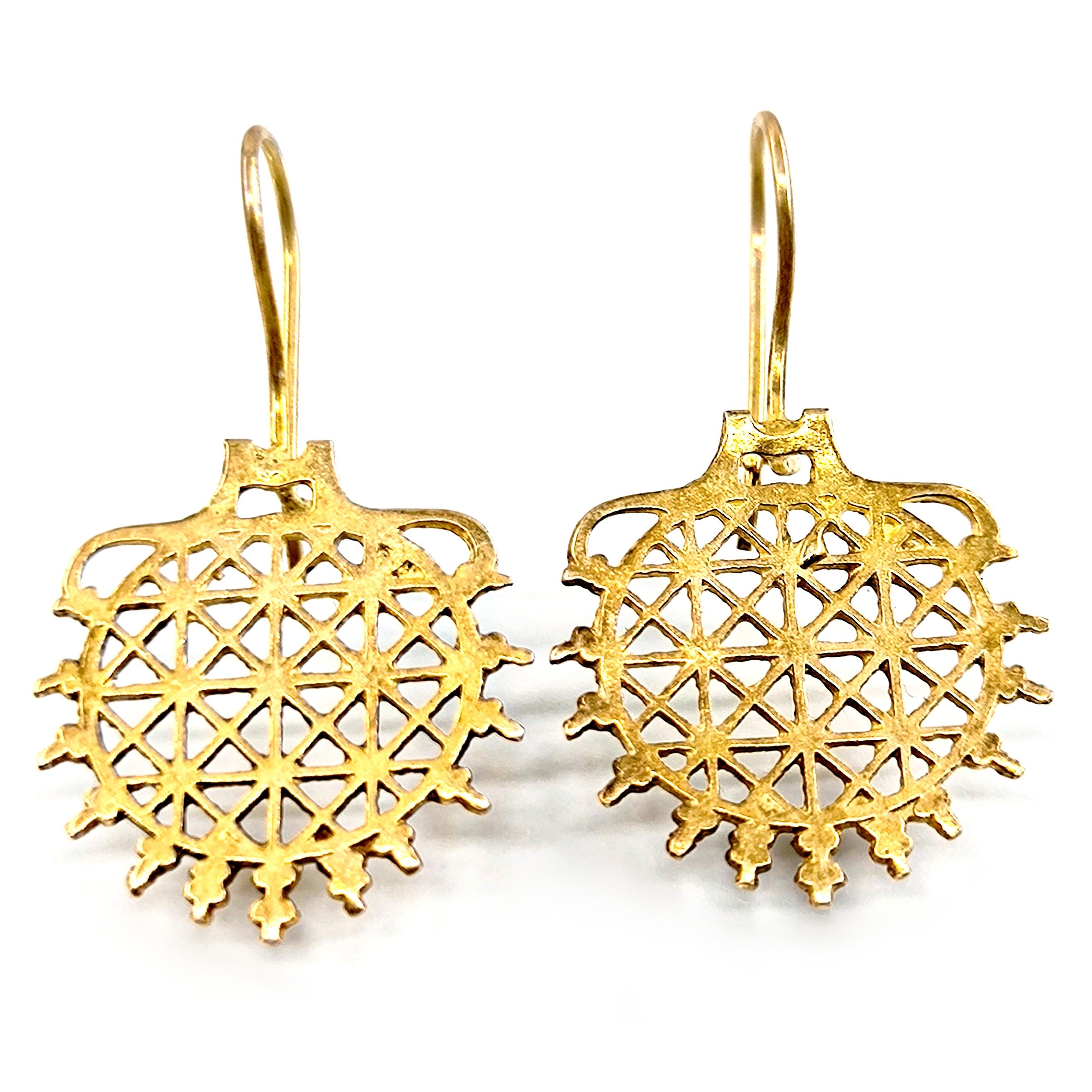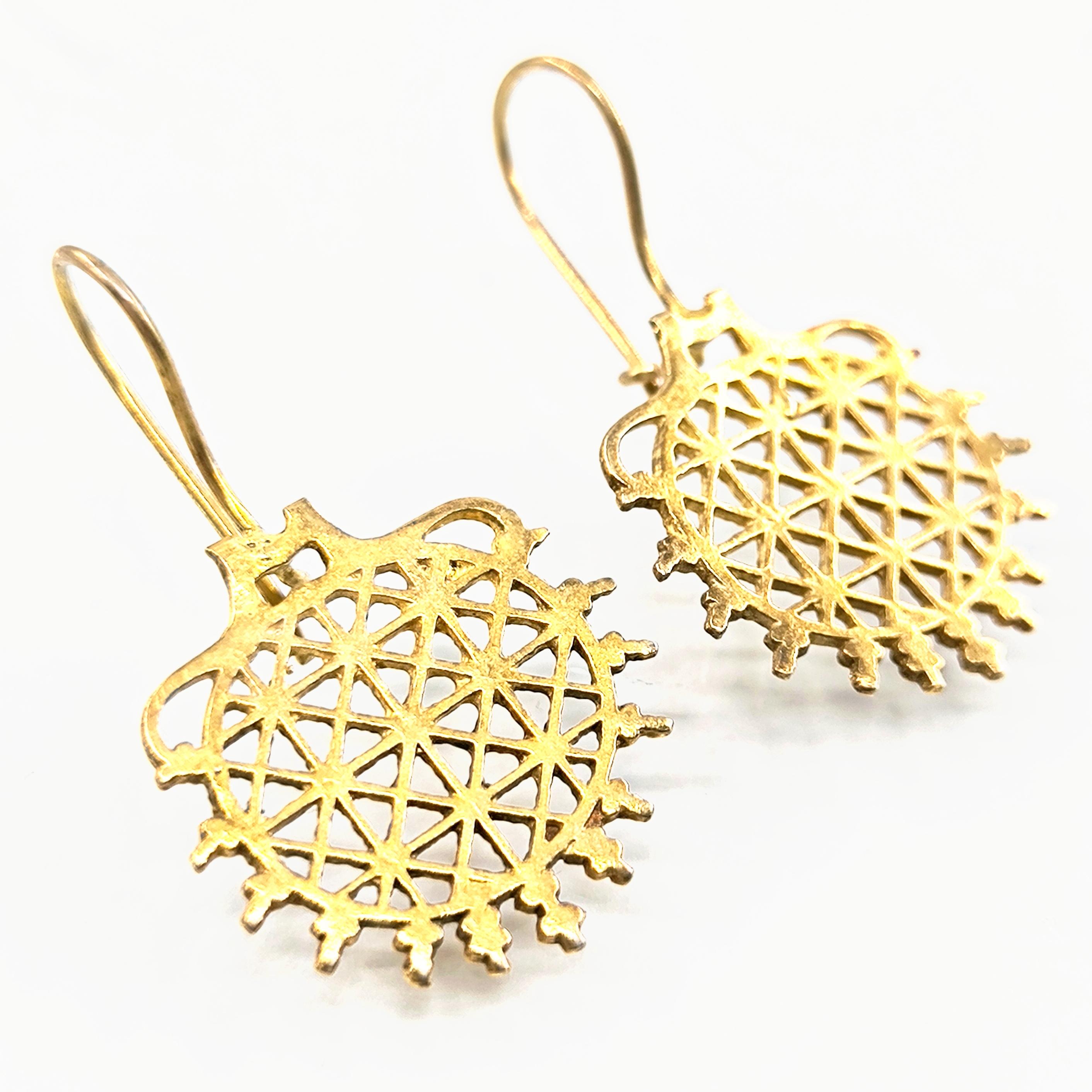 Anadolu uygarlıklarının en güçlü sembollerinden biri olan “Güneş Kursu”, Hititlerden günümüze uzanan bereketi, gücü, sonsuzluğu ve ışığın hükümranlığını temsil eder. Bu küpeyi tasarlarken, arkeolojik buluntulardaki özgün çizgileri modern bir yorumla yeniden hayata geçirdim. Her detay ince işçilikle elde kesilip şekillendirildi, ardından 925 ayar gümüş üzerine altın kaplama uygulanarak tarihi ihtişamıyla bütünleşen sıcak bir parlaklık kazandırıldı. Hem tarihî bir sembol taşıyan hem de şık bir aksesuar olma niteliğiyle özel günlerde olduğu kadar günlük kullanımda da etkileyici bir duruş sunar. Anadolu’nun kadim gücünü üzerinde taşımak isteyenler için benzersiz bir parça.