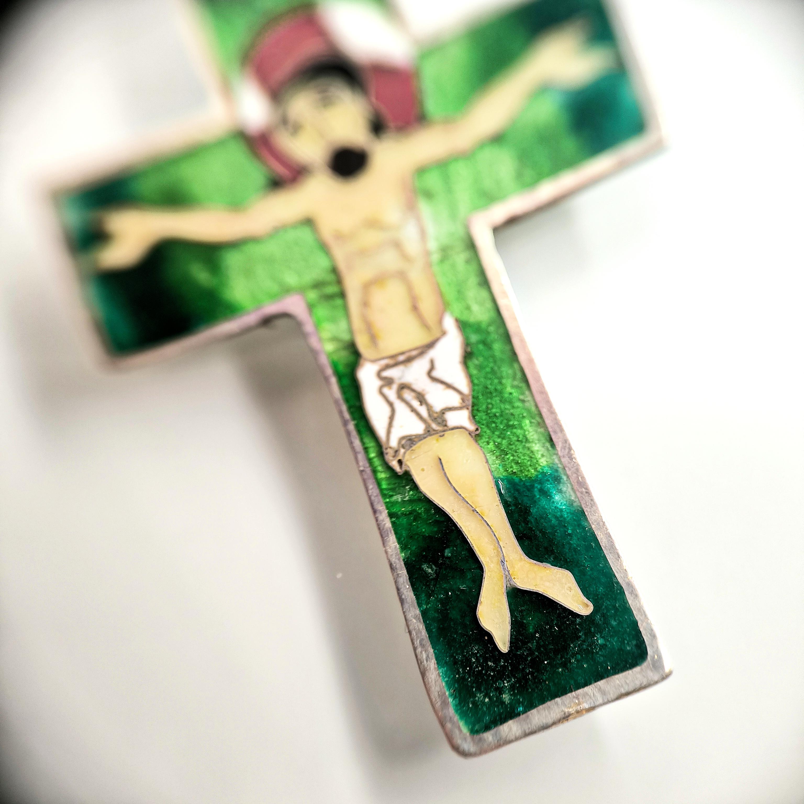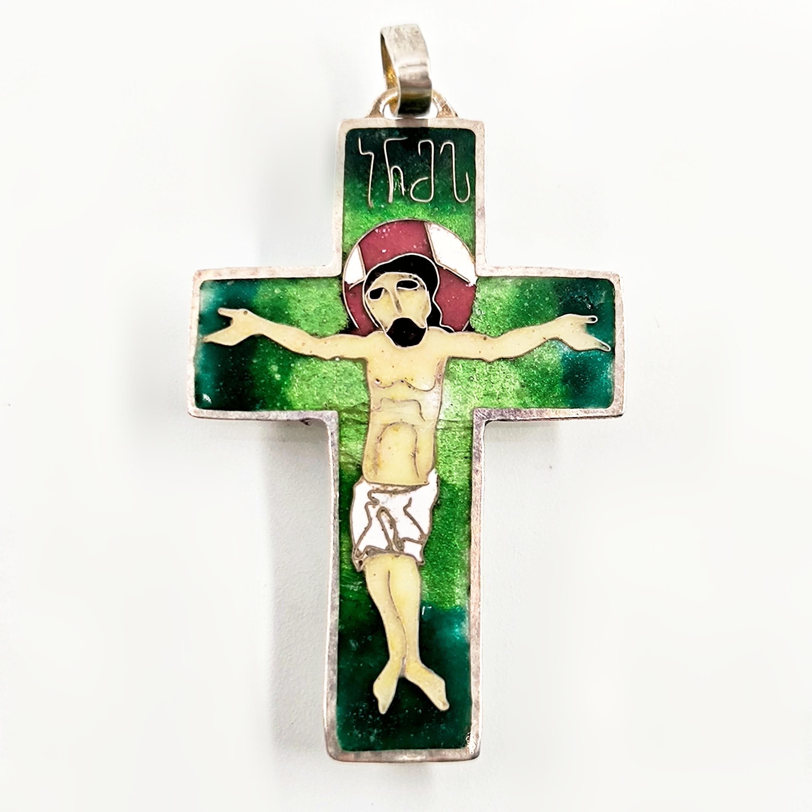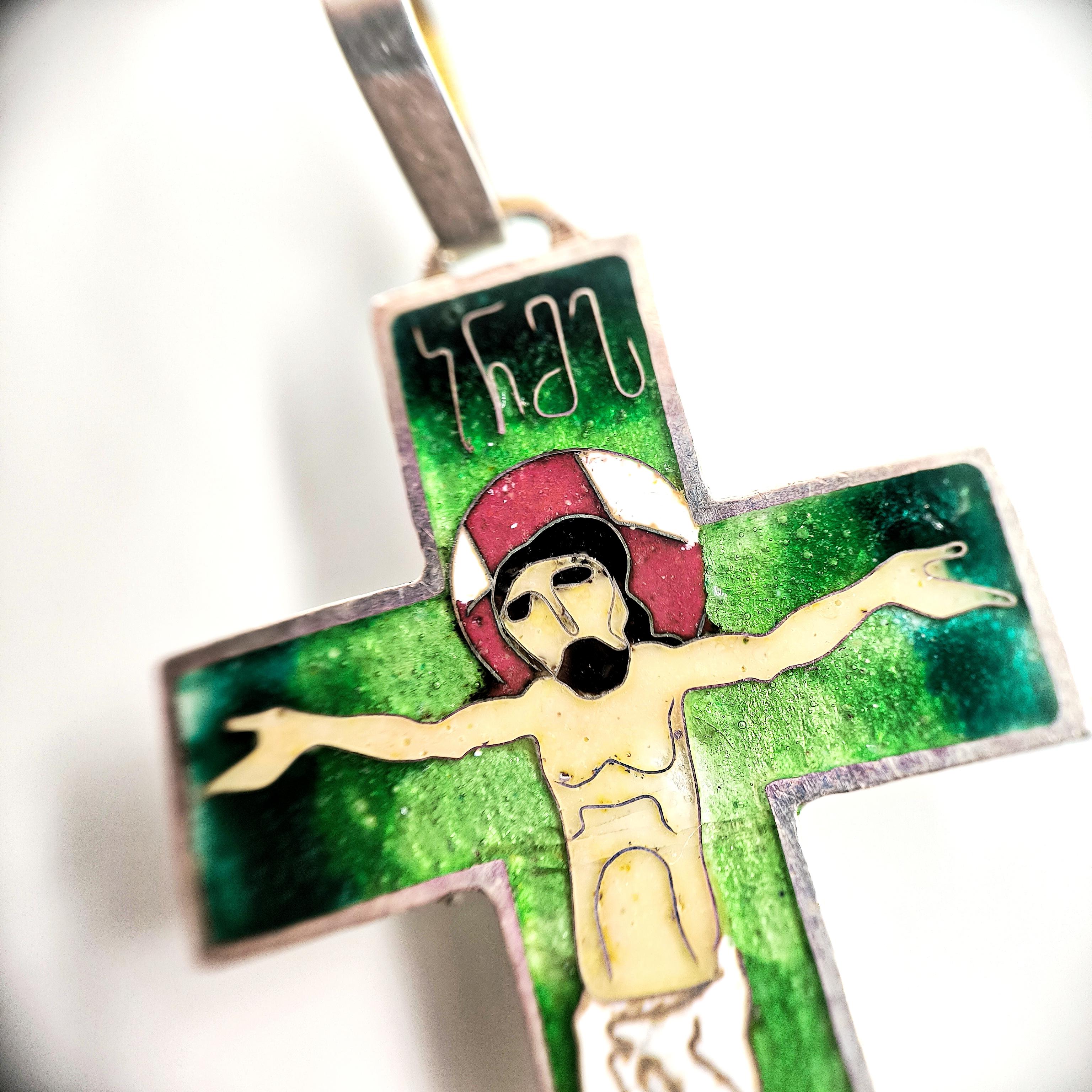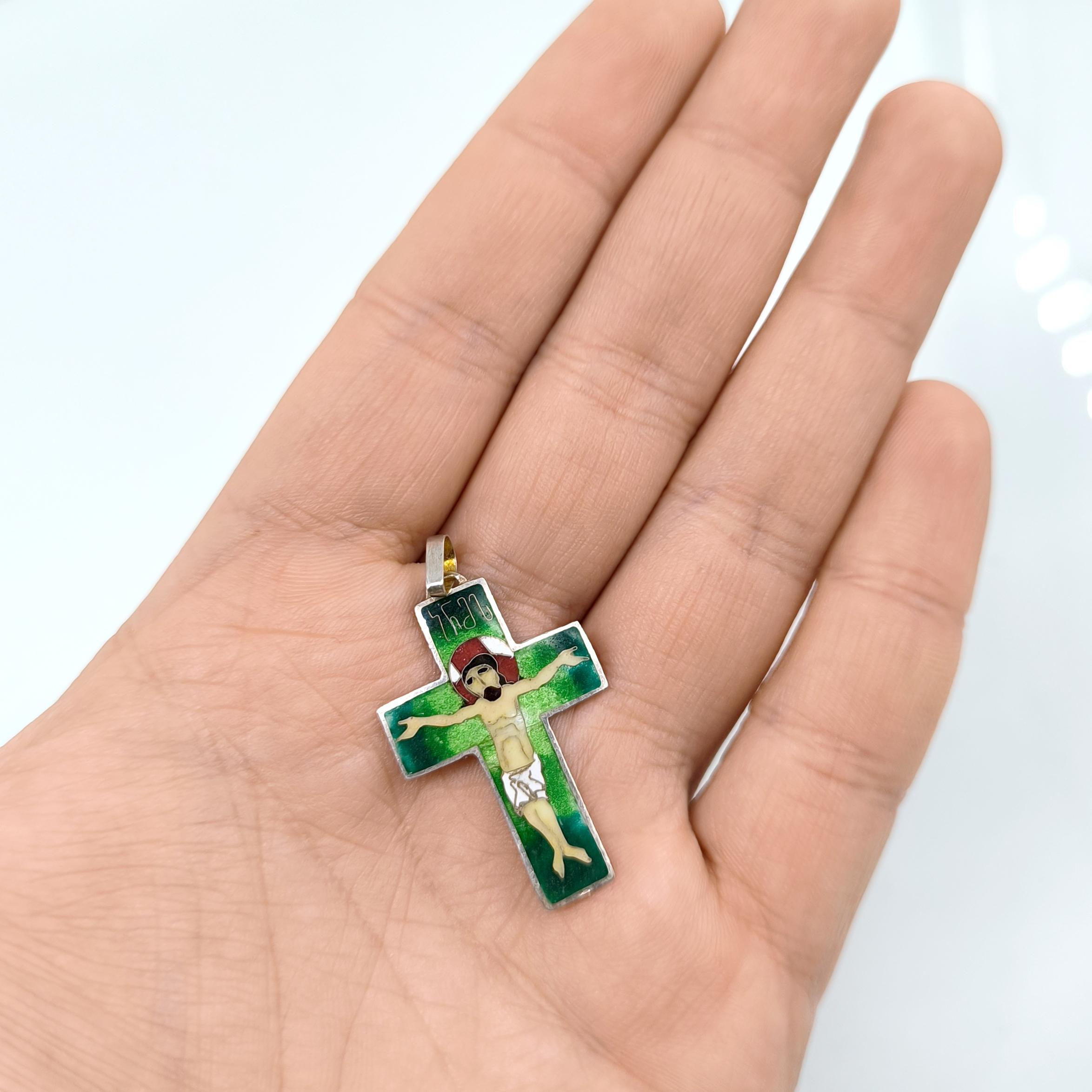 Gürcü mine işçiliğiyle hayat bulan bu yeni üretim haç kolye, Hz. İsa’nın çarmıha gerilişini simgeler. Yeşilin ruhani tonları ve zarif emaye detaylar, 925 ayar gümüşün zarafetiyle buluşuyor. İnanç, sanat ve zanaatın birleştiği özel bir parça...