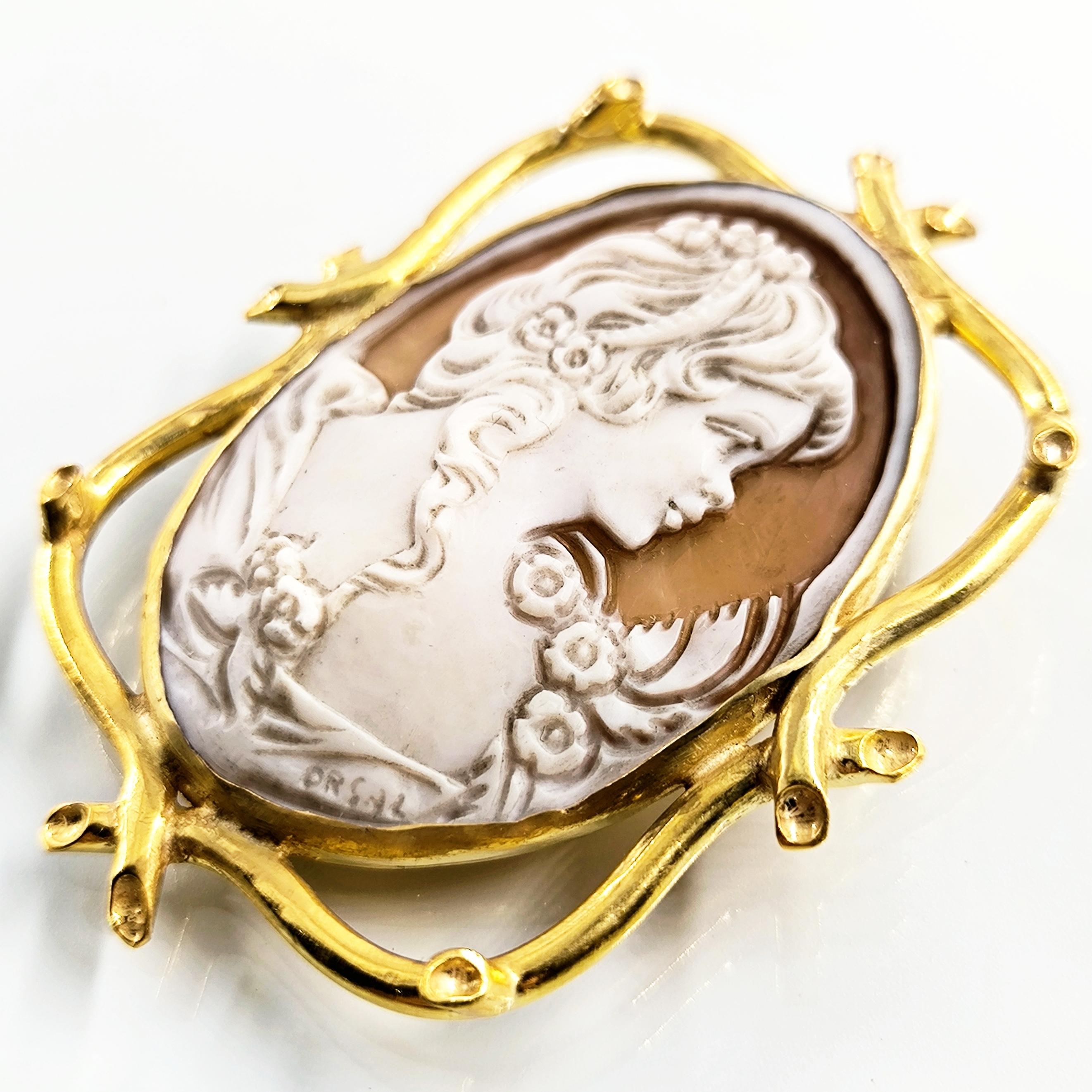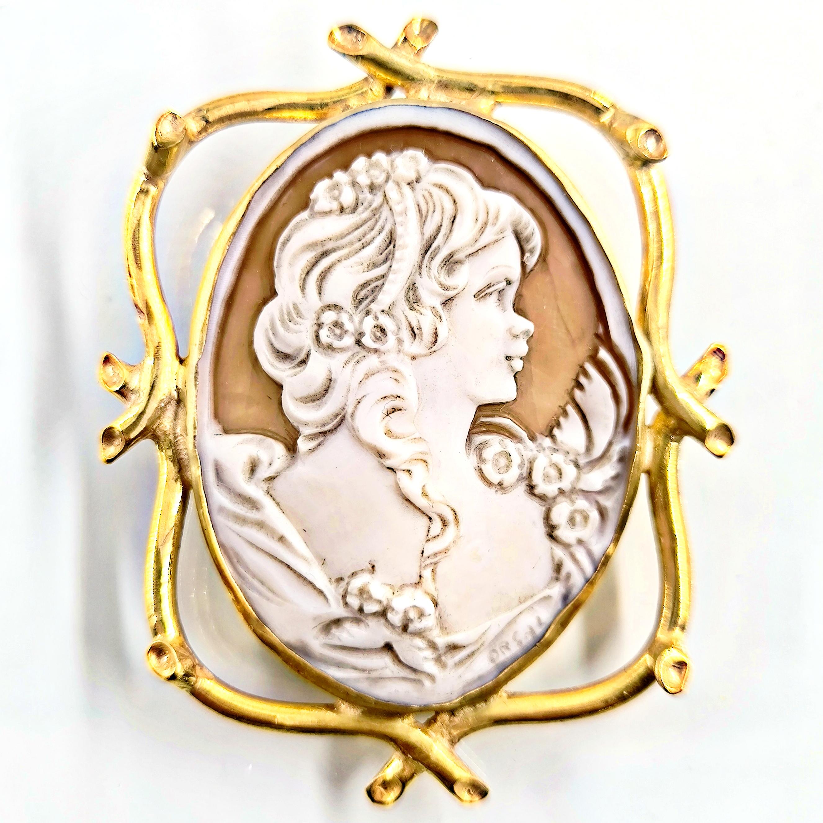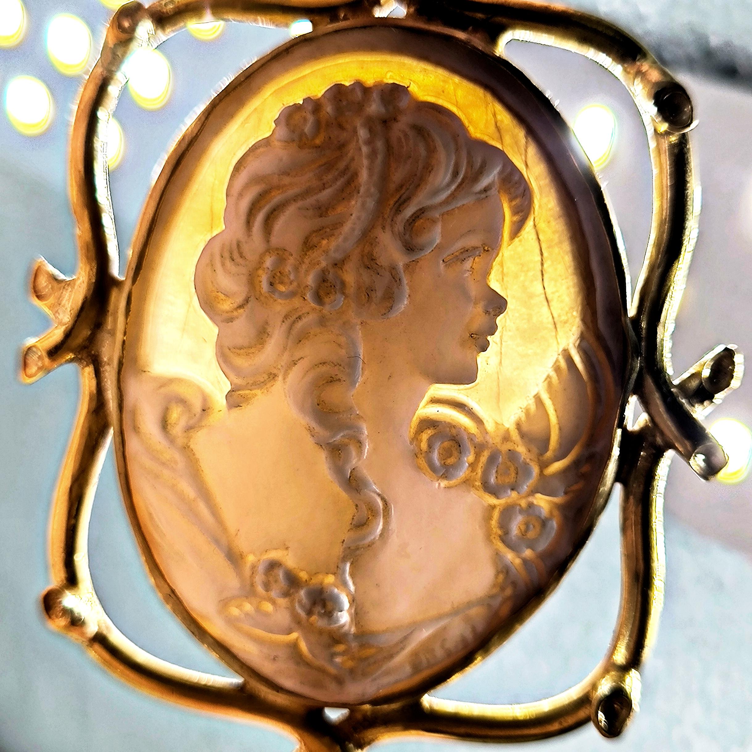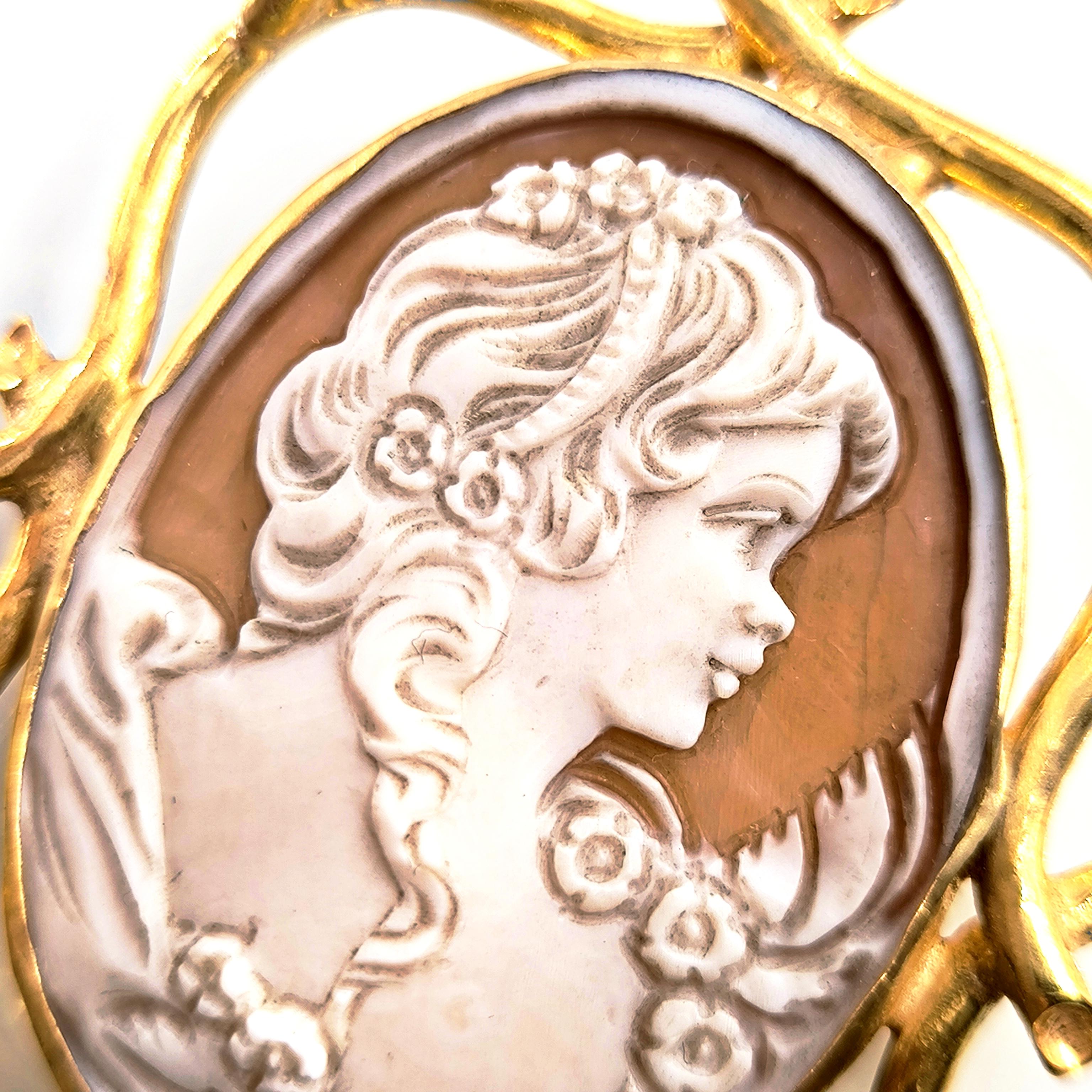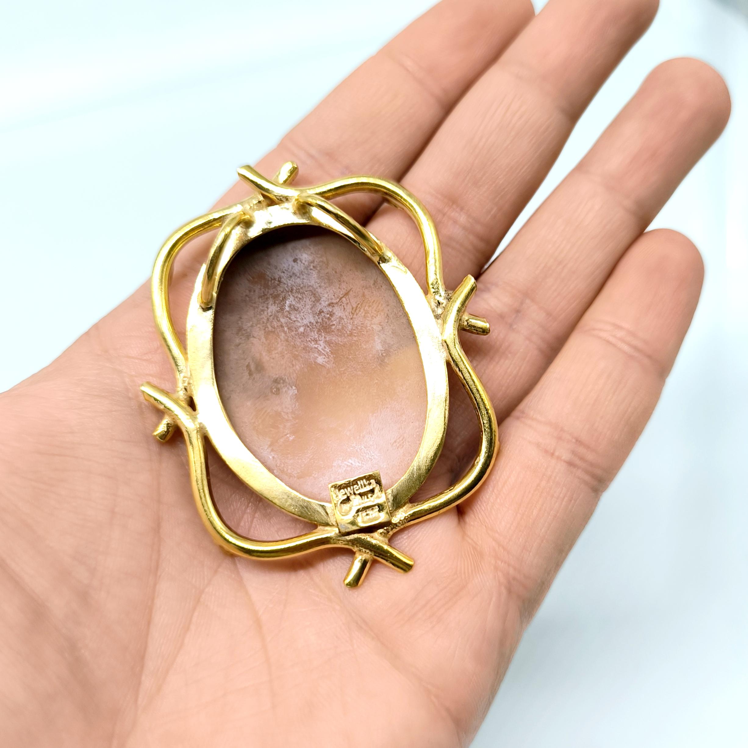 1990’lar yapımı bu zarif cameo, ince oyma detayları ve imzalı yüzeyiyle nadide bir sanat parçası.
