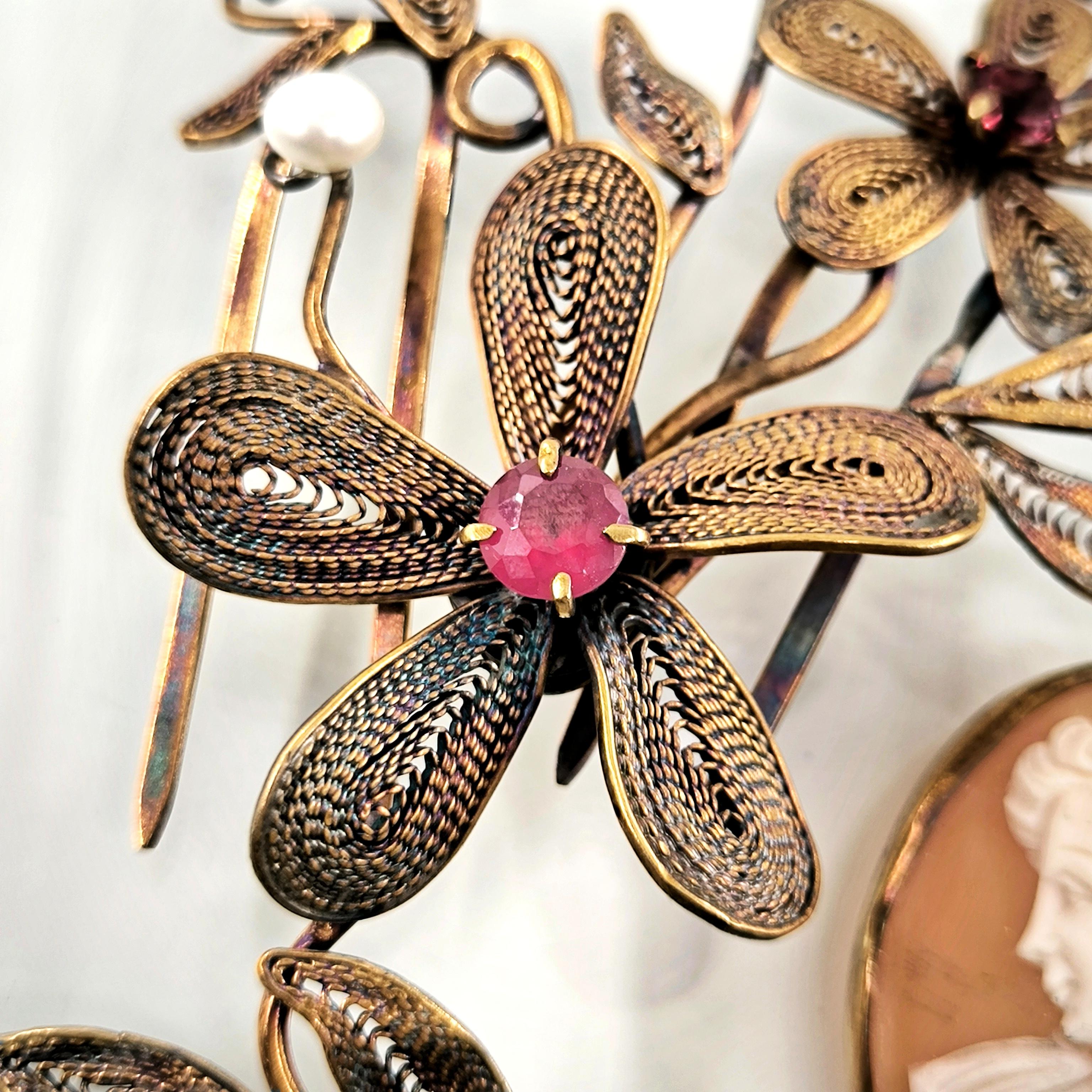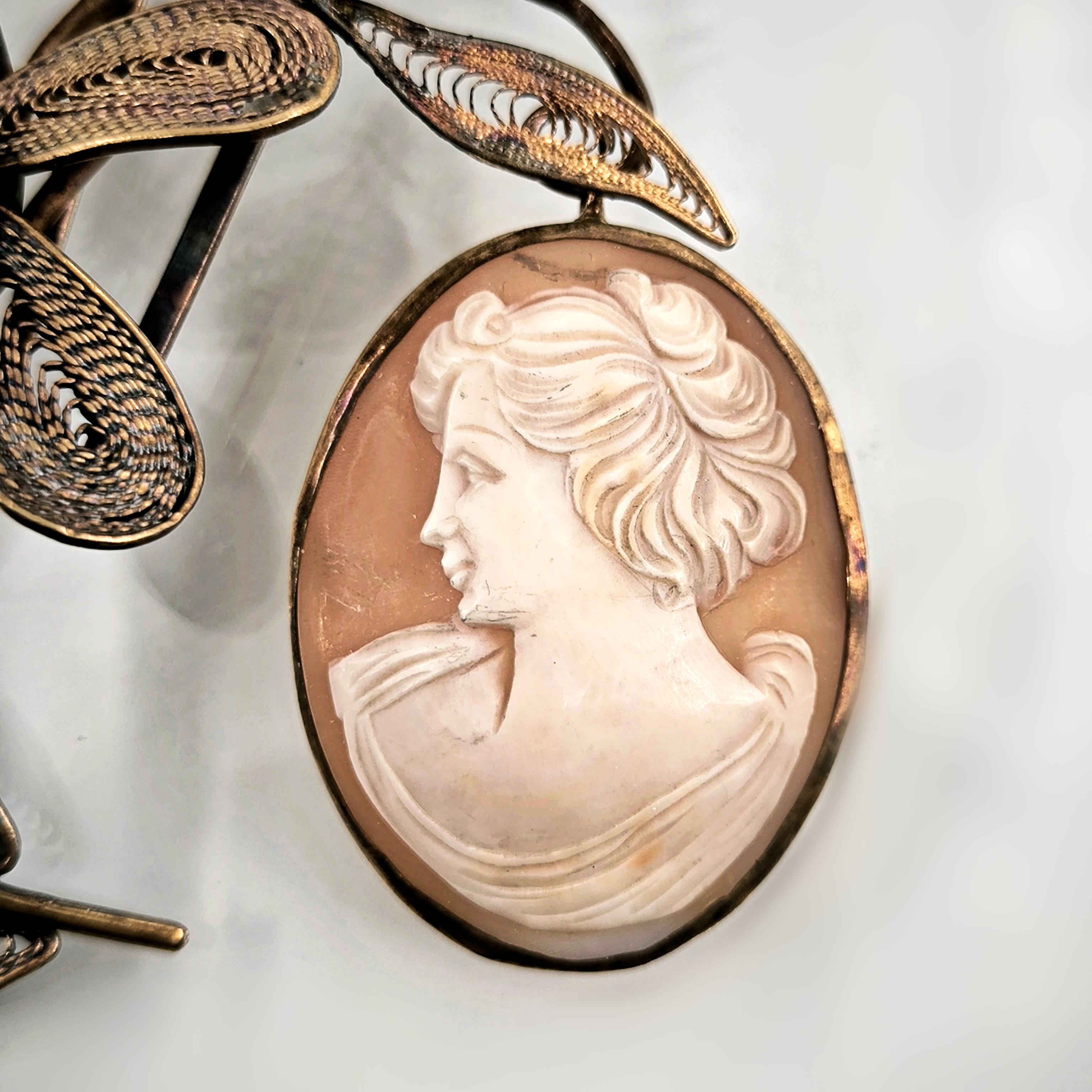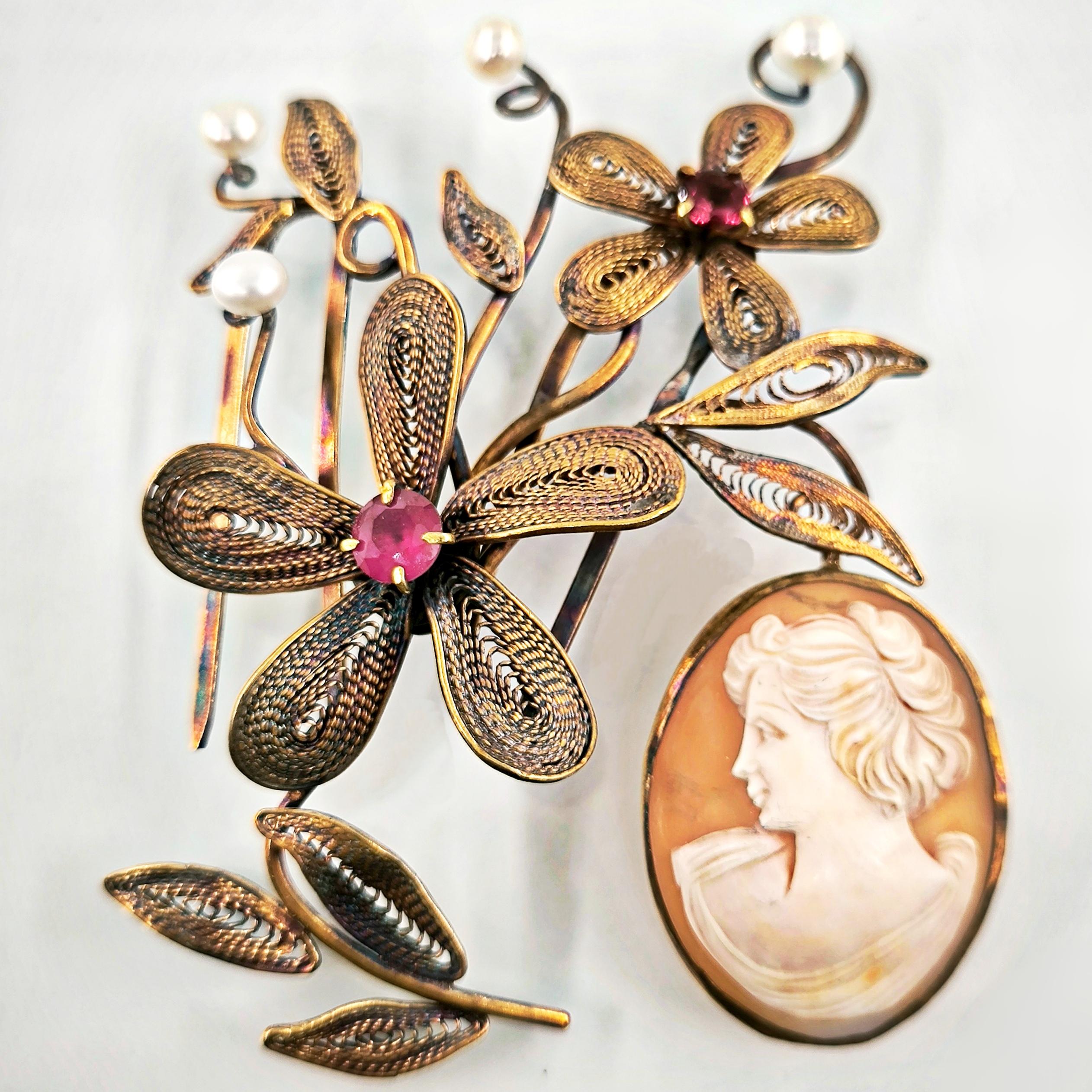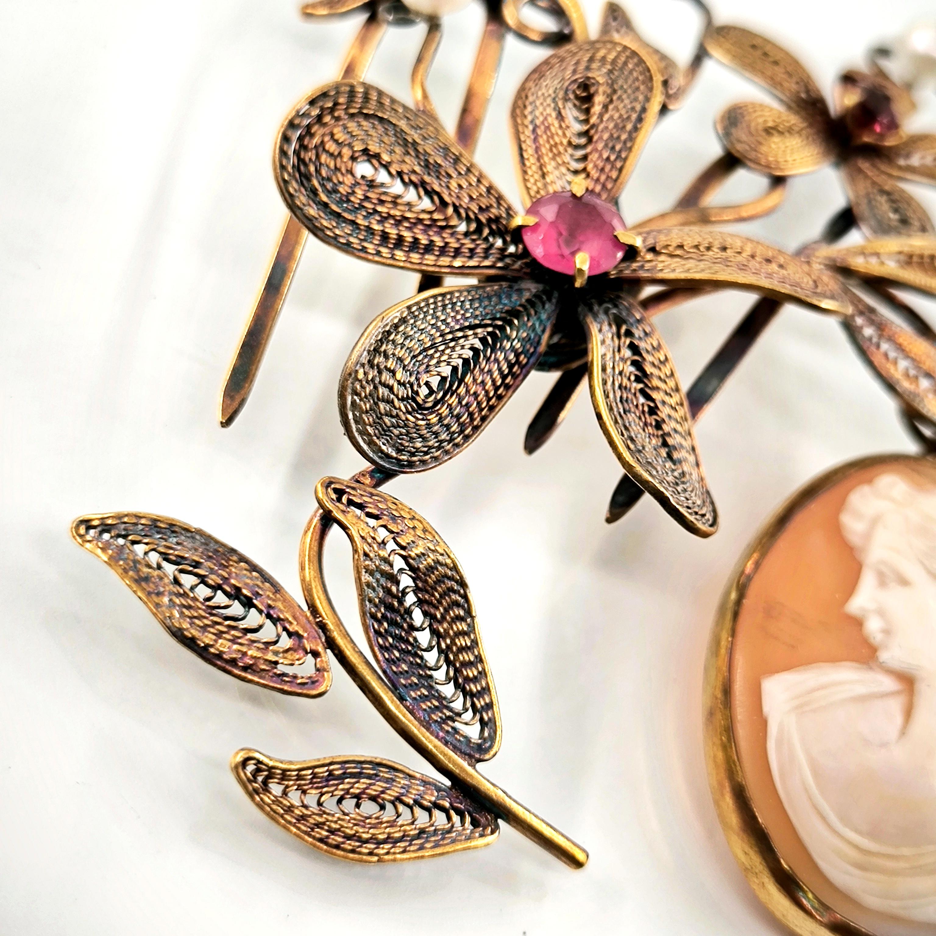 Viktorya dönemindeki sosyete ve asillerin en gözde takısı Cameolar! Deniz kabuğu Üzerine "Leydi" kabartması çalışılmış, gerçek bir Antika mücevher! Eski cameo bir gerdanlıktan çıkarıp mEdusA dokunuşu ve telkari işçiliğimiz ile muntazam bir cameo saç tokasına dönüştürdük! Tamamı 925 Ayar gümüş olup üzeri altın kaplama eşsiz ve aykırı, marjinal mücevherimiz, cameo saç tokamız! Cameo sallantı formunda tasarlanmıştır, tokamız üzerindeki inciler natürel incilerdir.