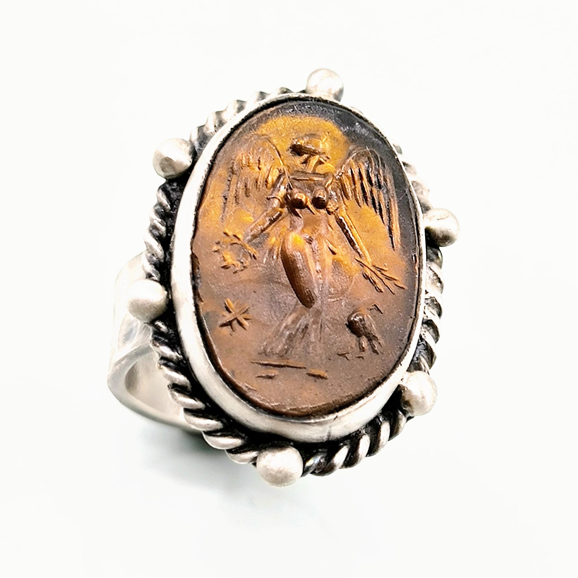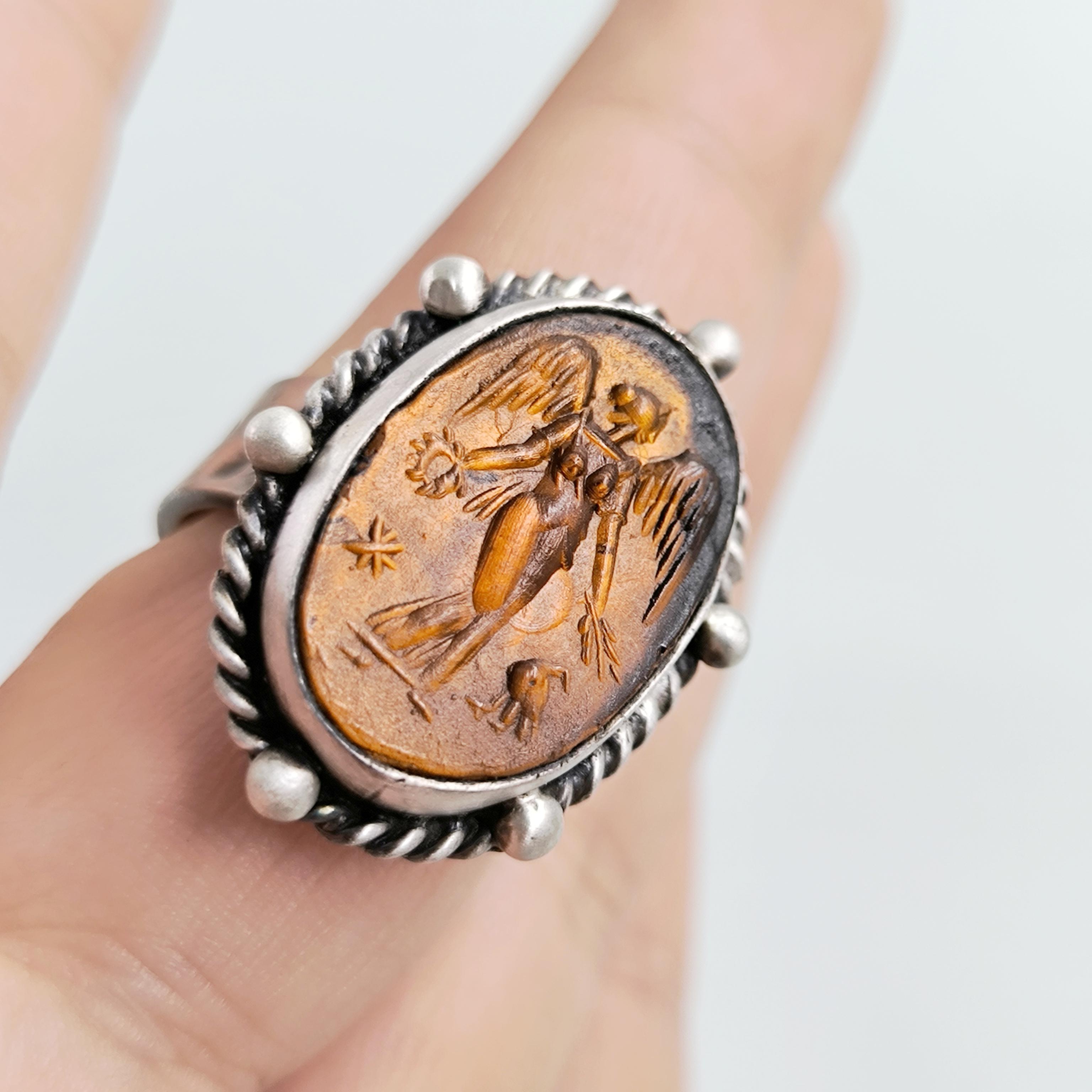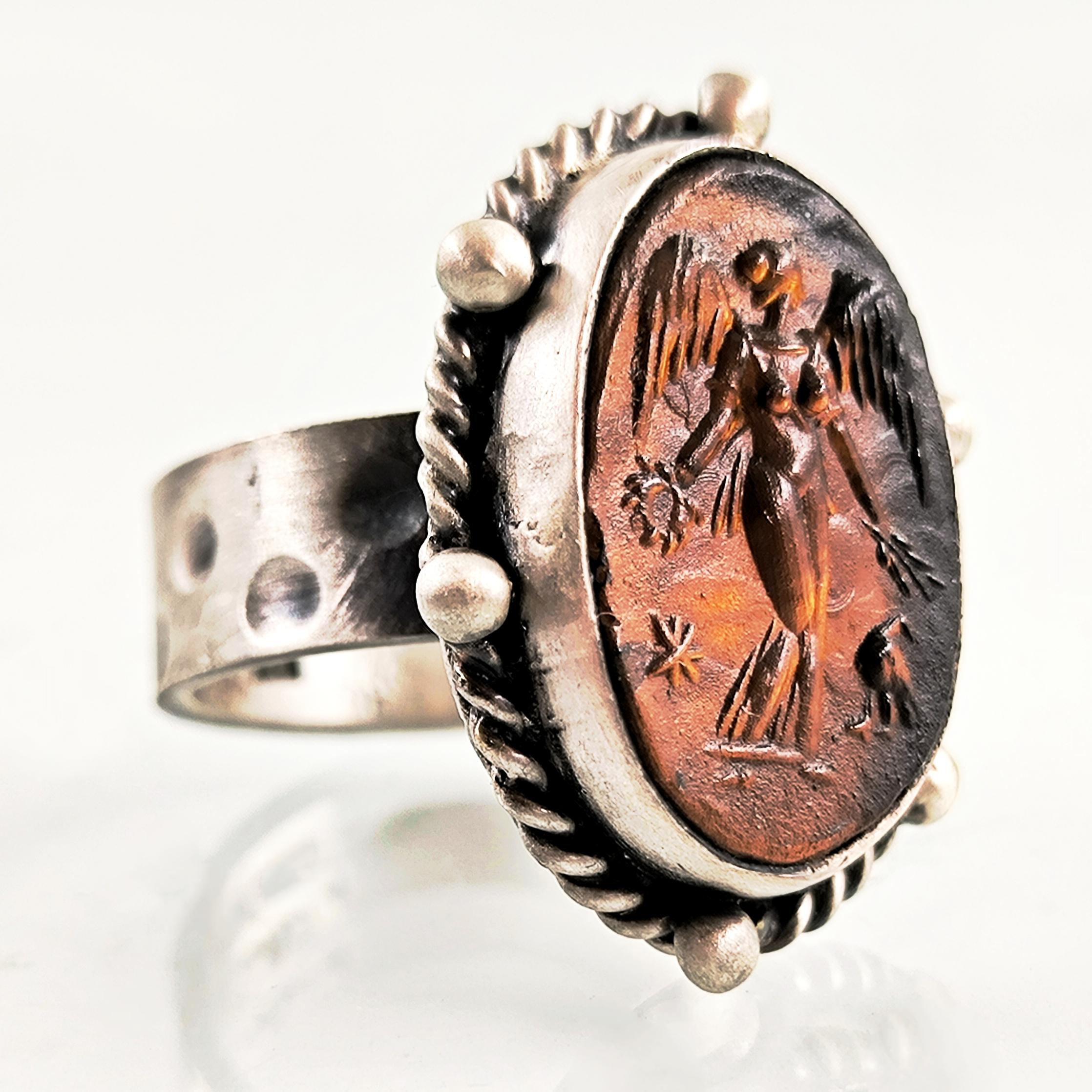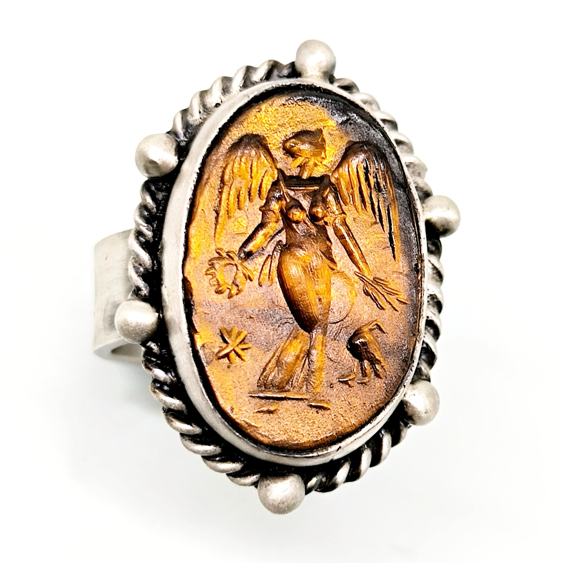 KANATLARIN GÖLGESİNDE CAM ÜZERİ TANRIÇA 925 AYAR YÜZÜK