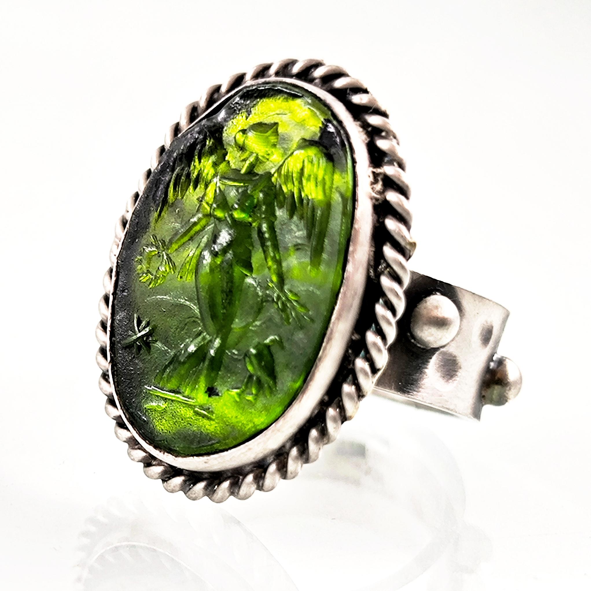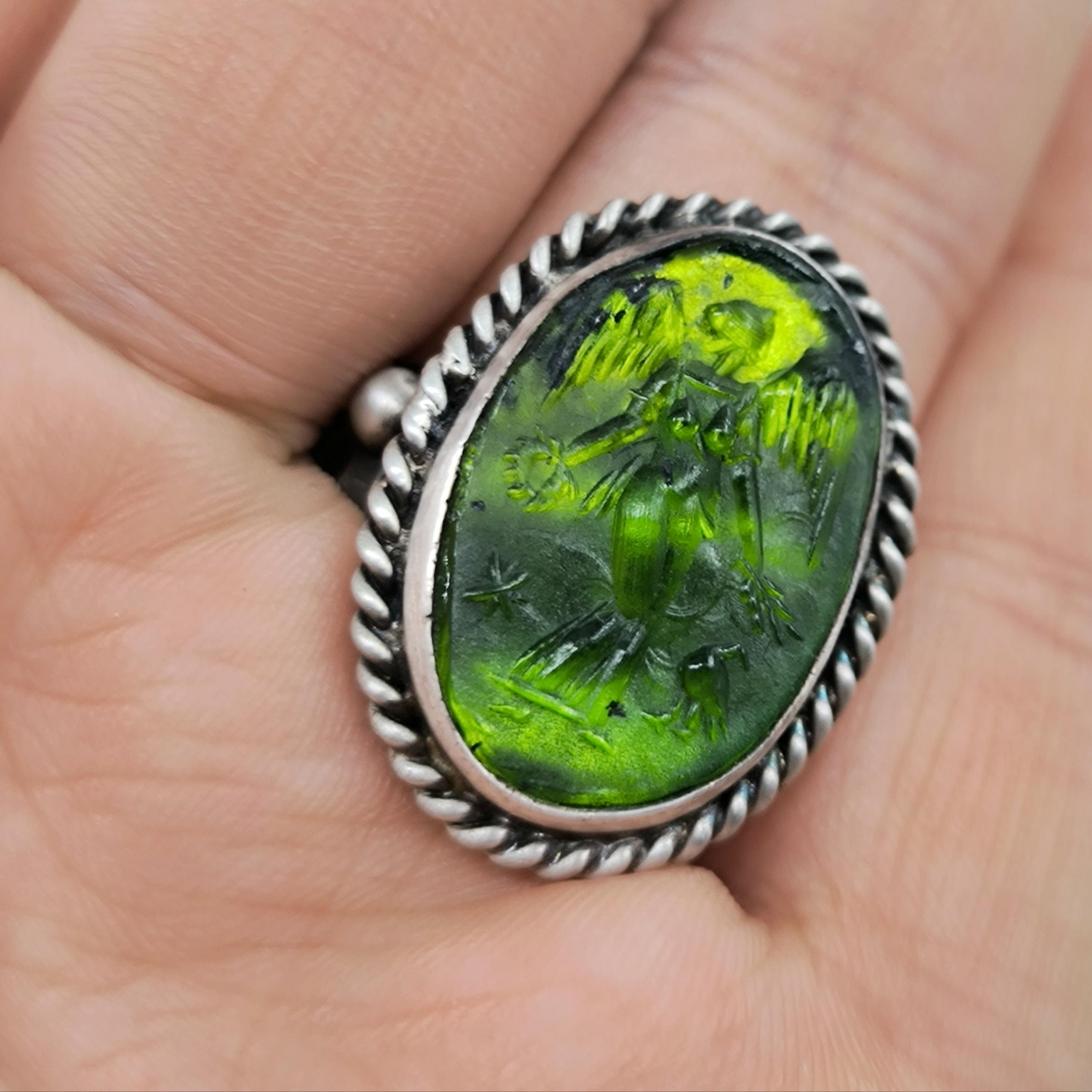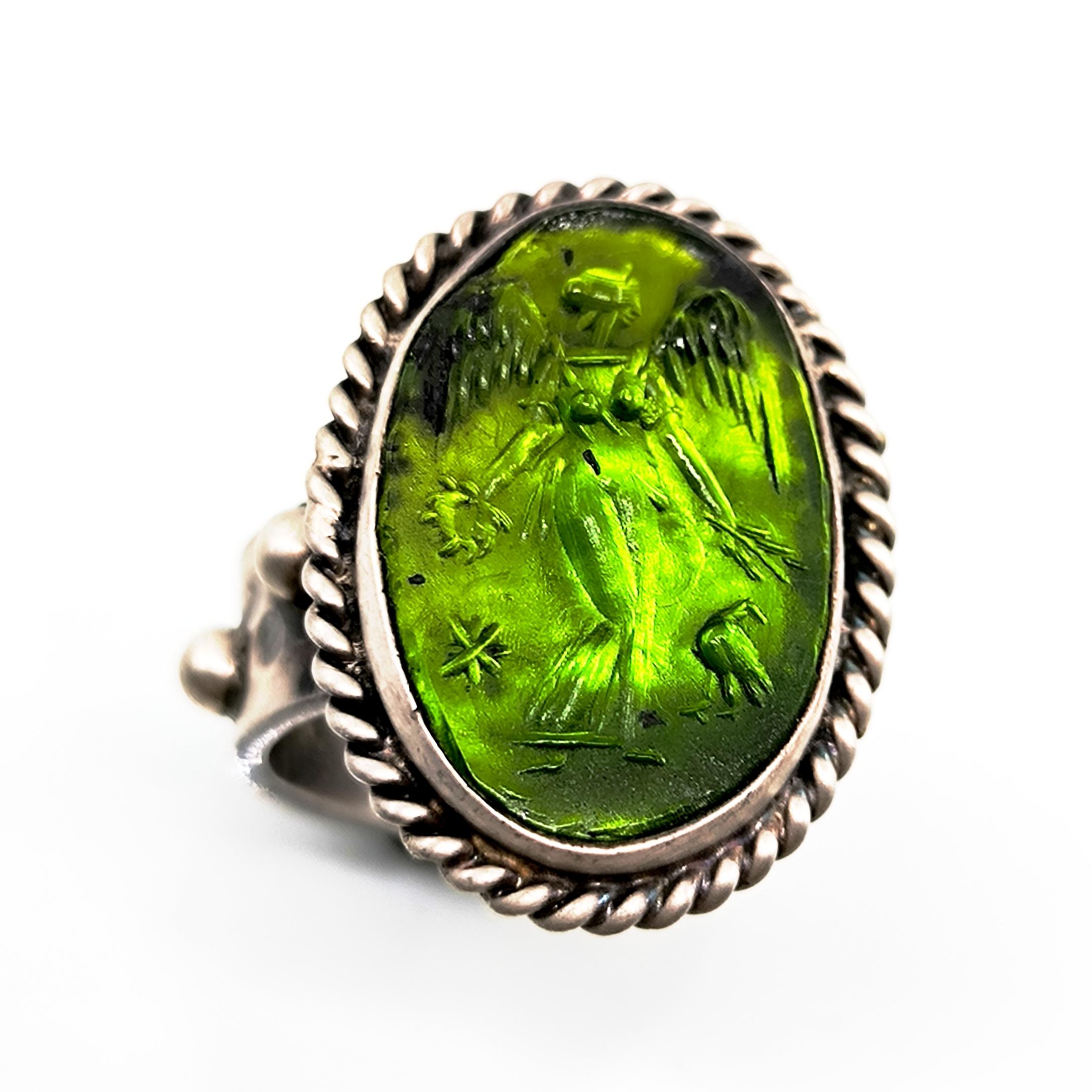 KANATLARIN IŞIĞINDA YEŞİL TANRIÇA 925 AYAR GÜMÜŞ YÜZÜK